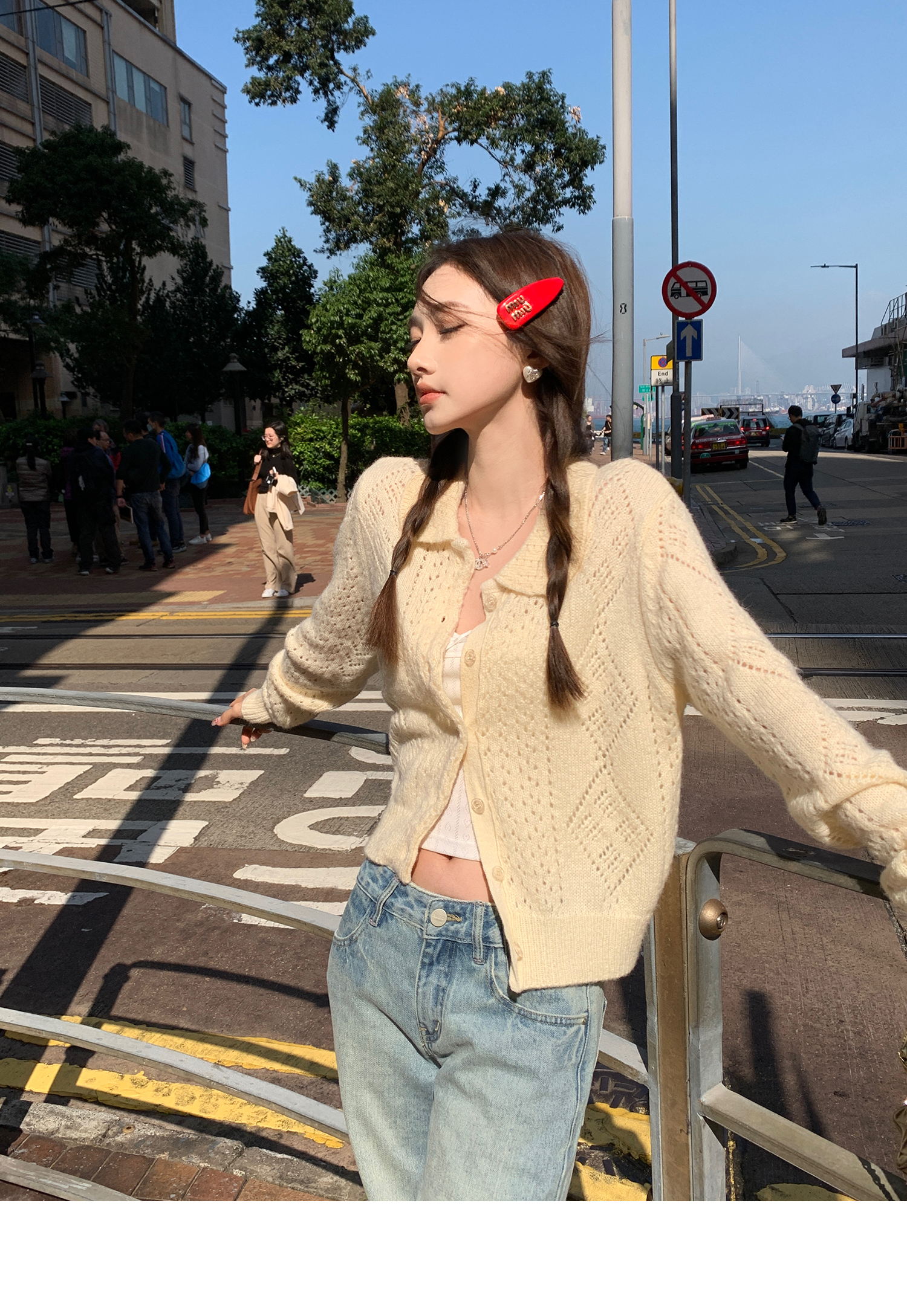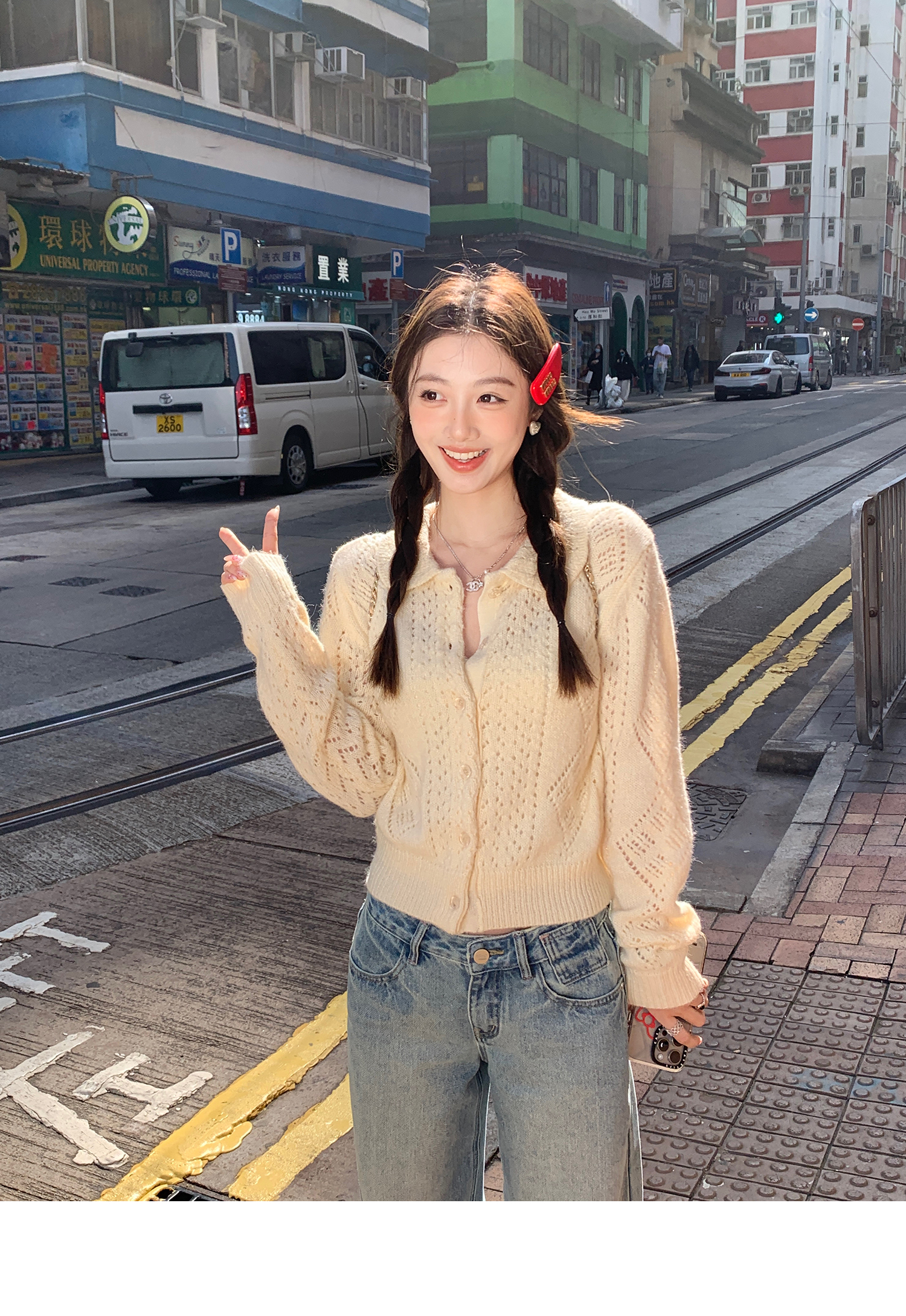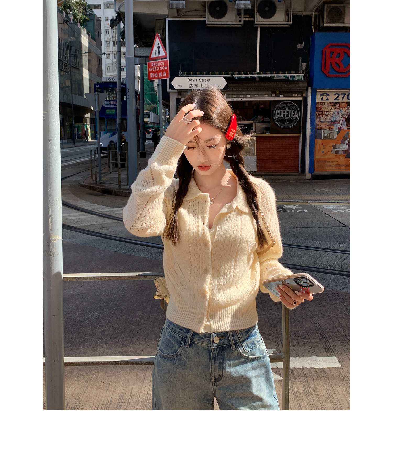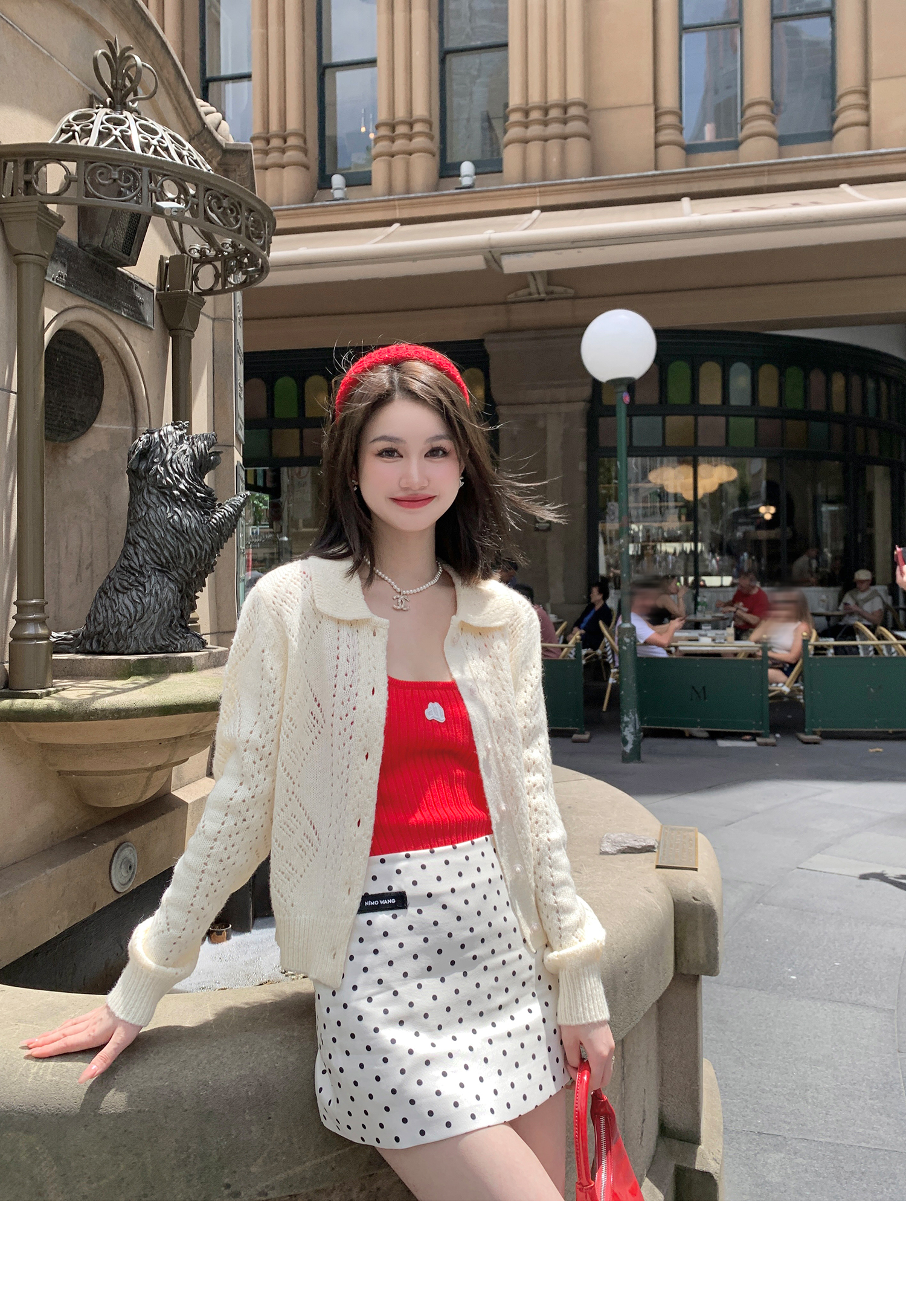 [Manhattan Girl] Loose Doll Collar Knitted Cardigan - Cute Summer Top