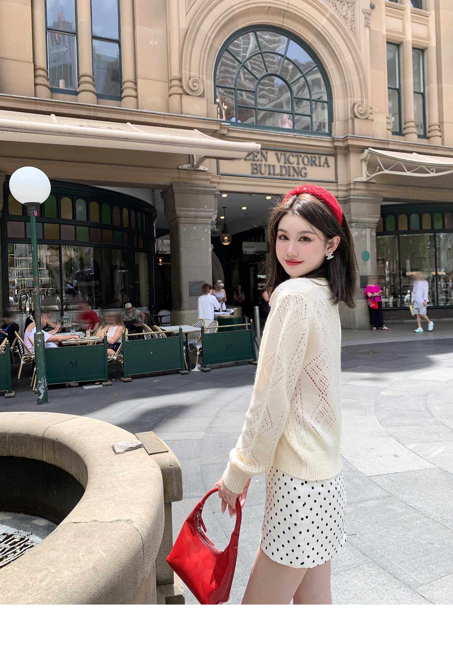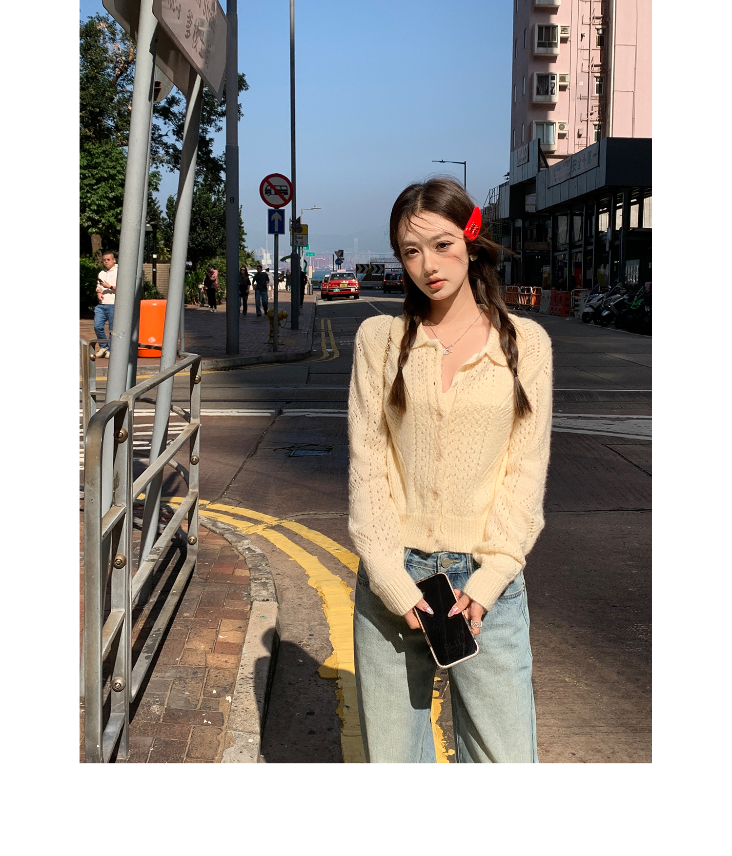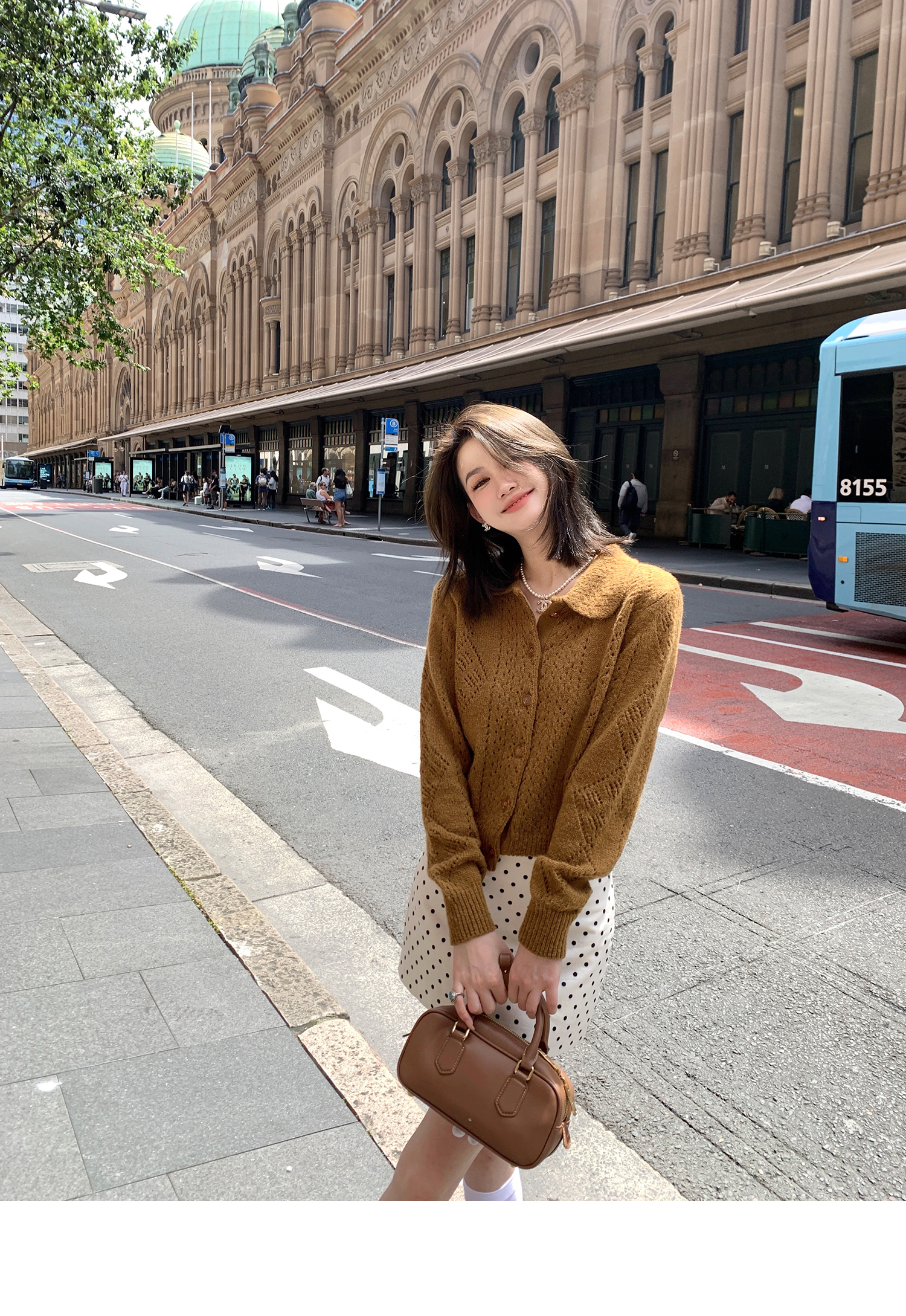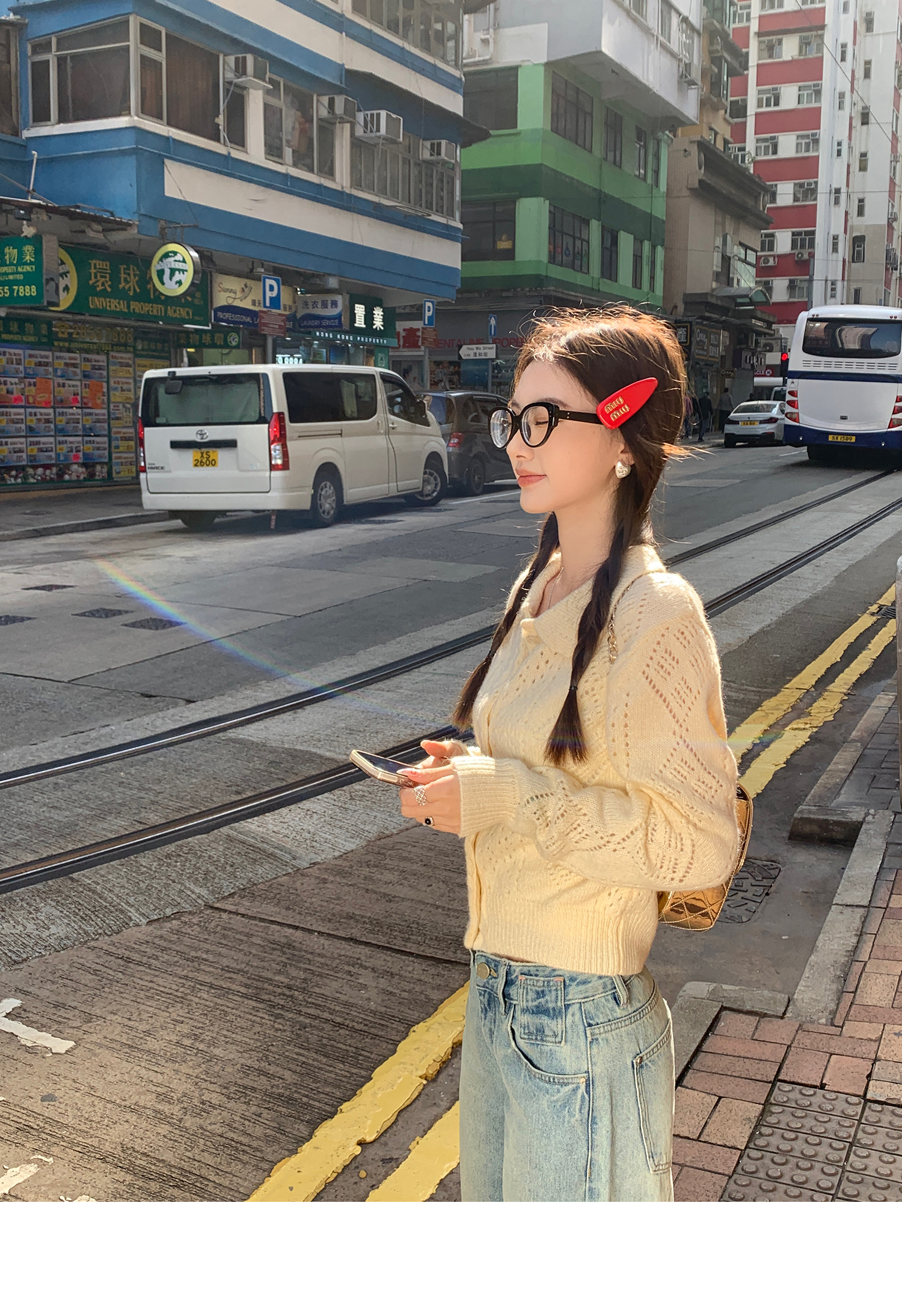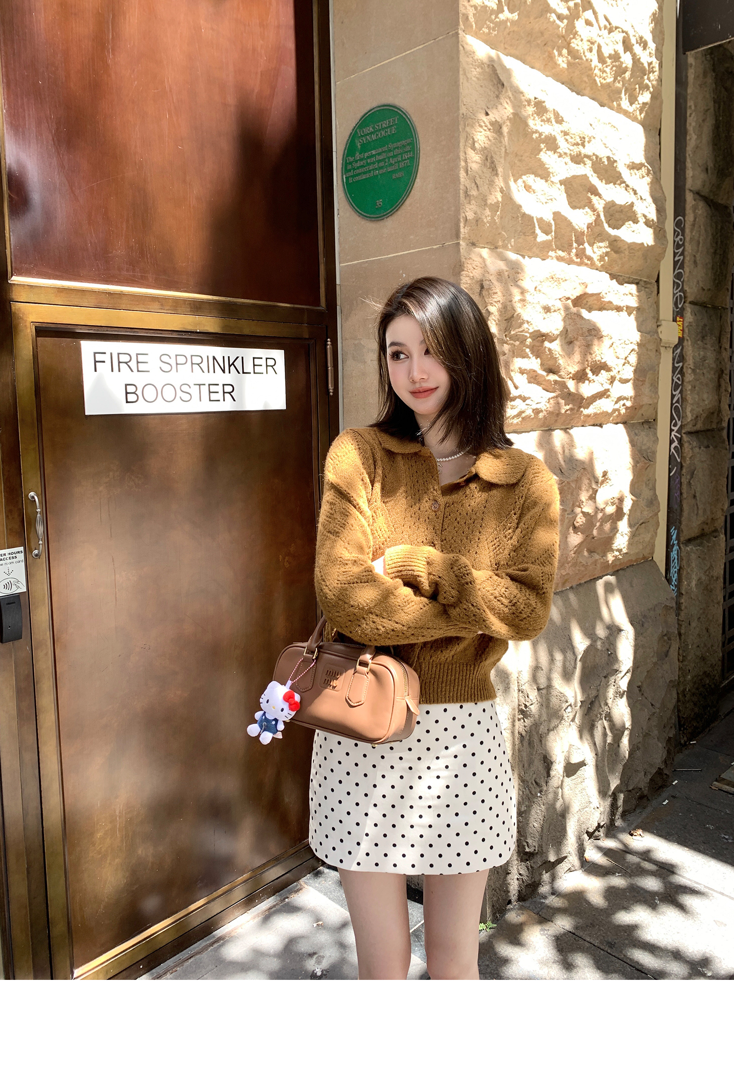 [Manhattan Girl] Loose Doll Collar Knitted Cardigan - Cute Summer Top