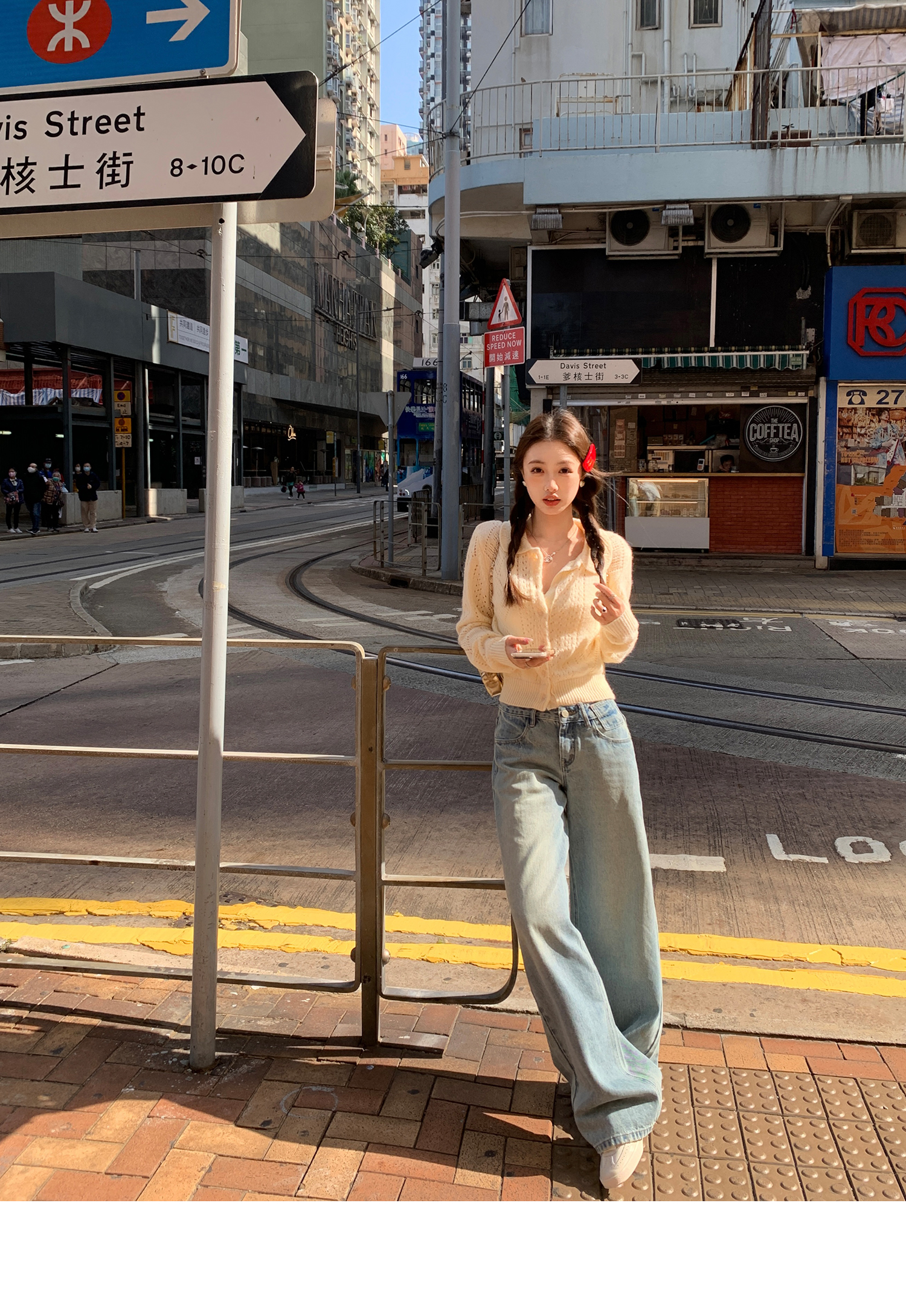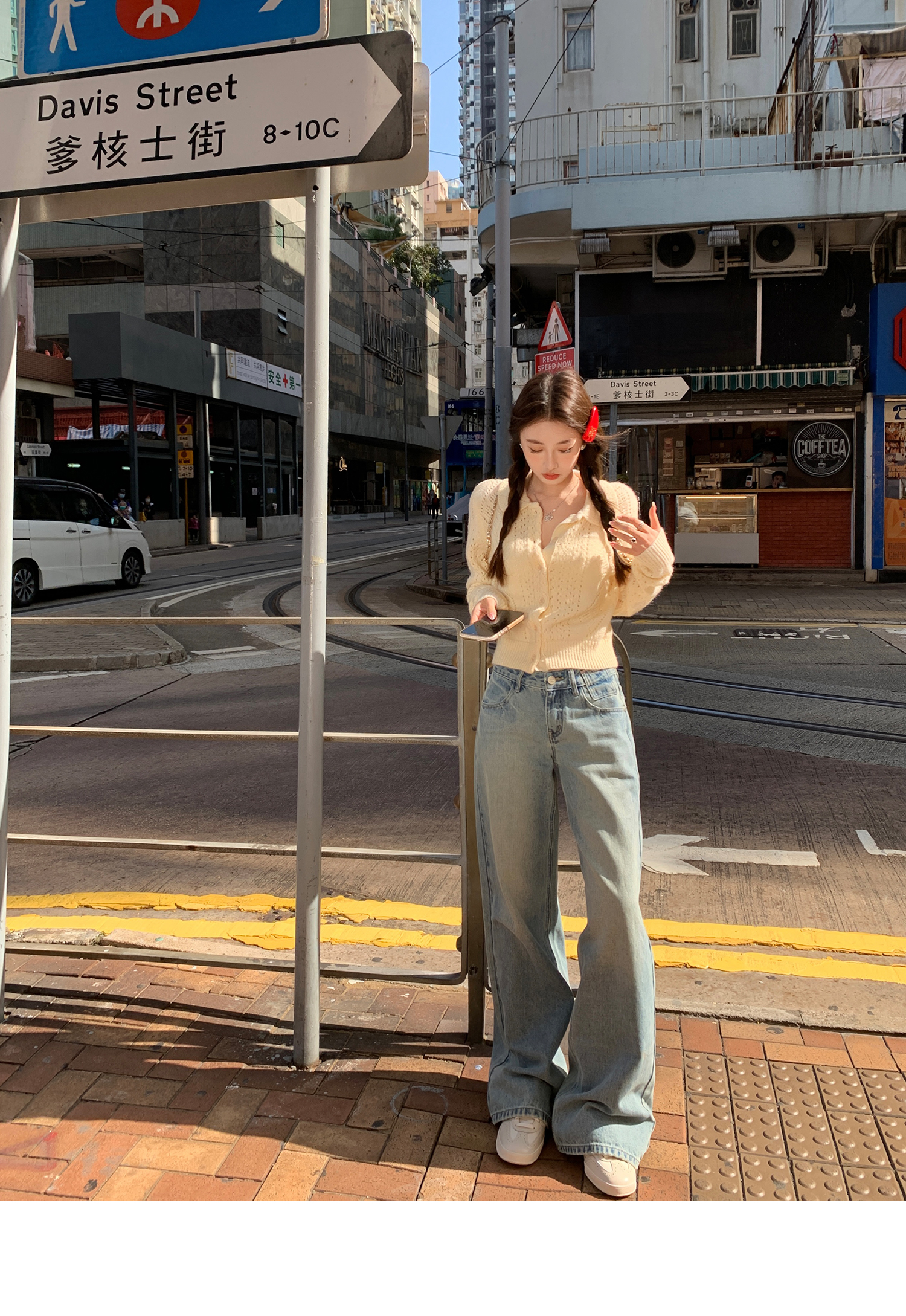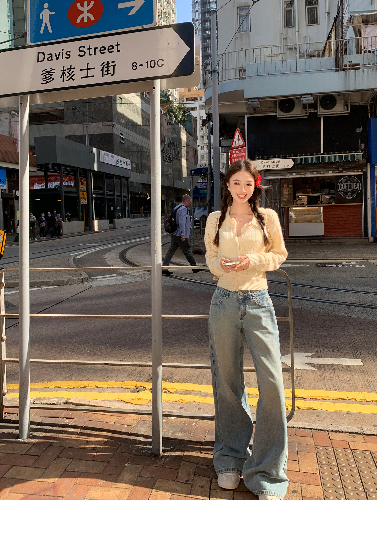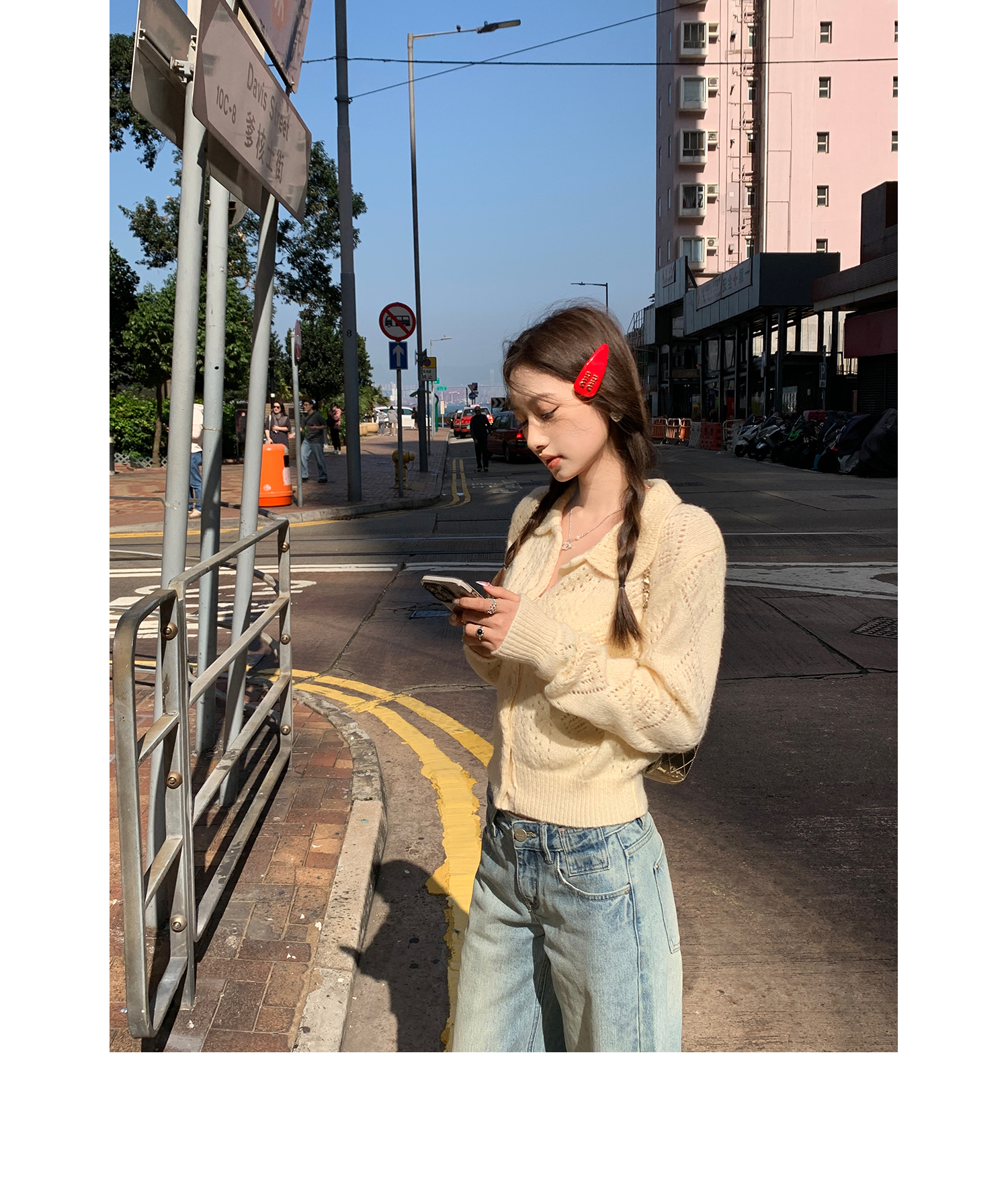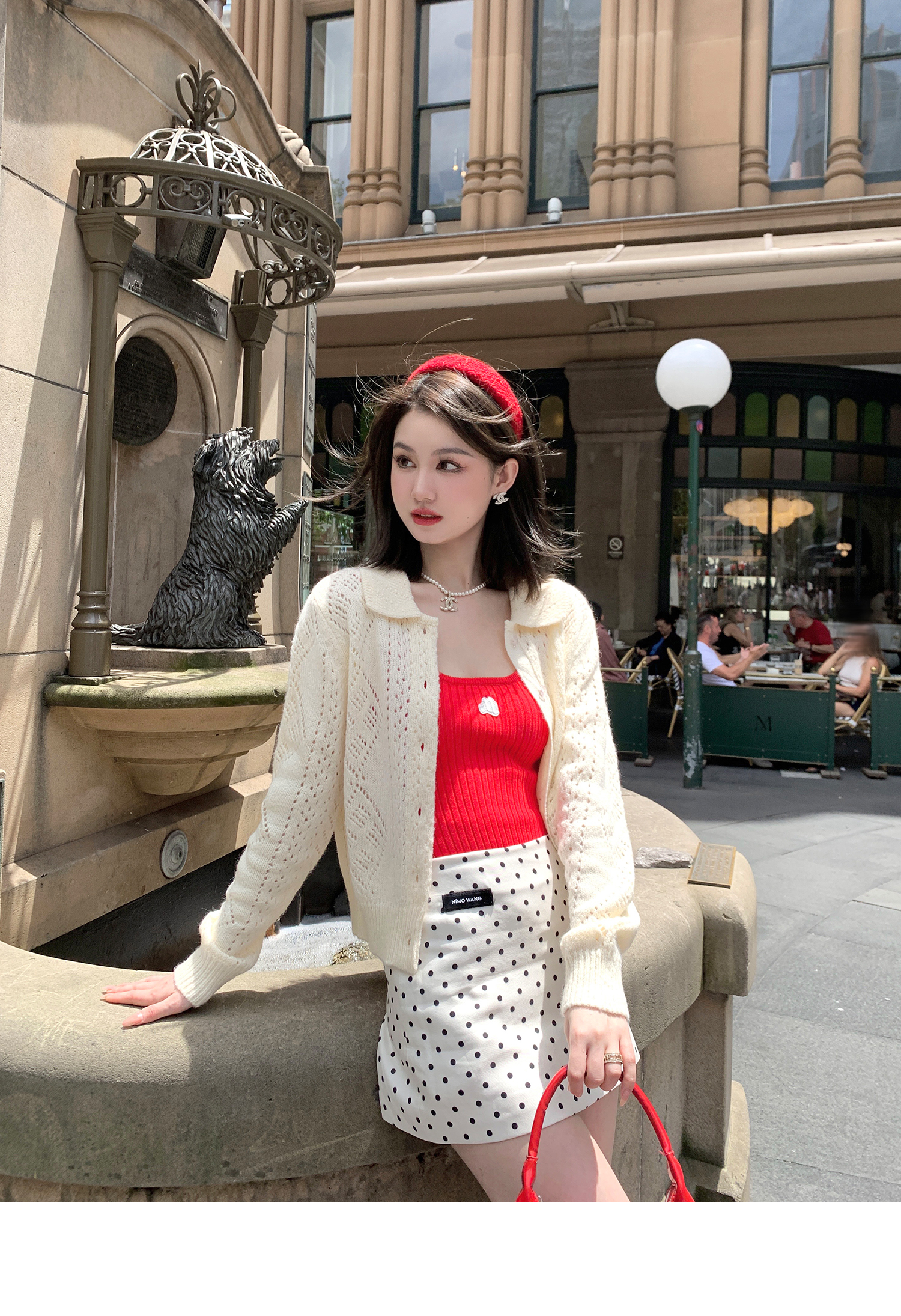 [Manhattan Girl] Loose Doll Collar Knitted Cardigan - Cute Summer Top