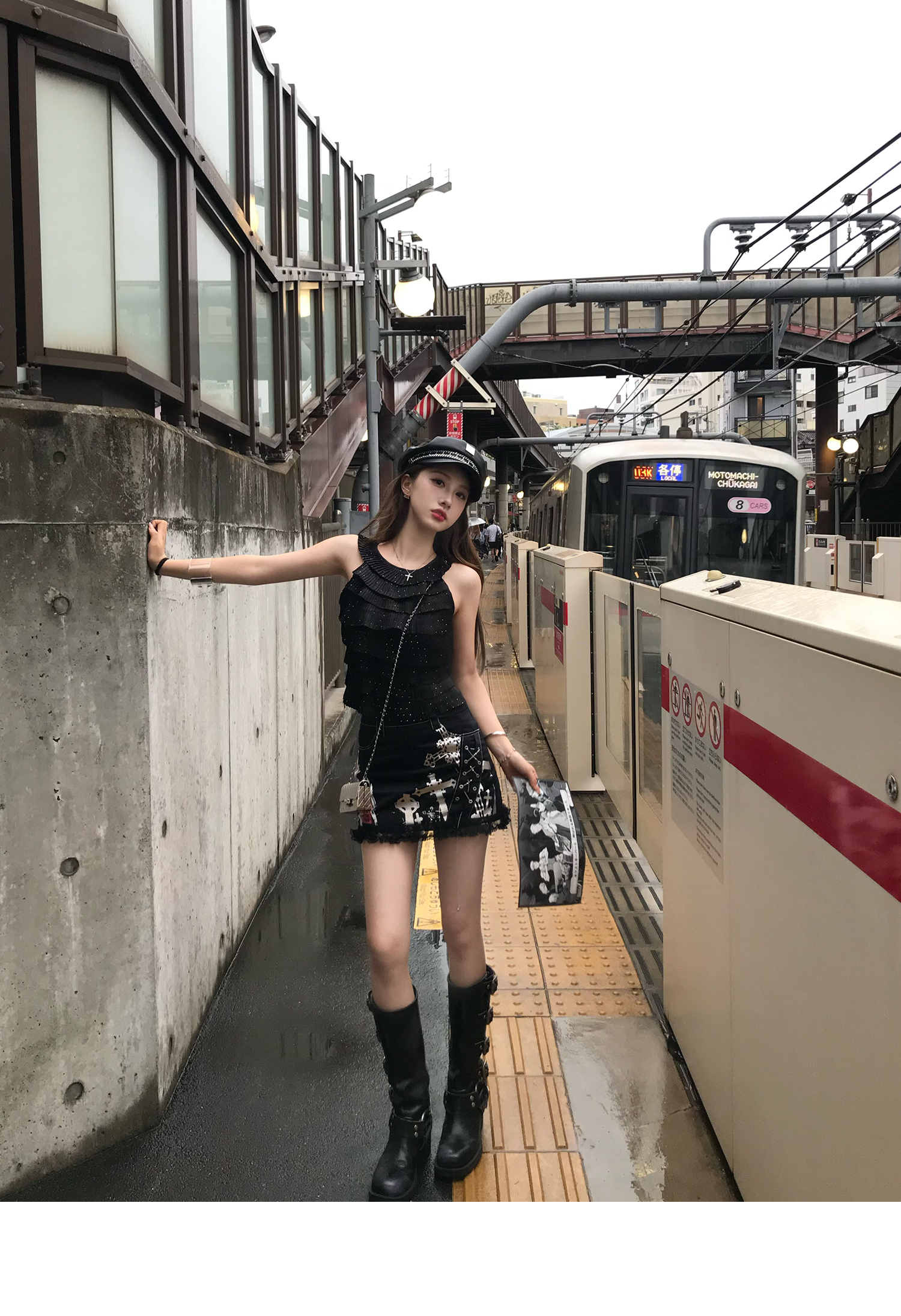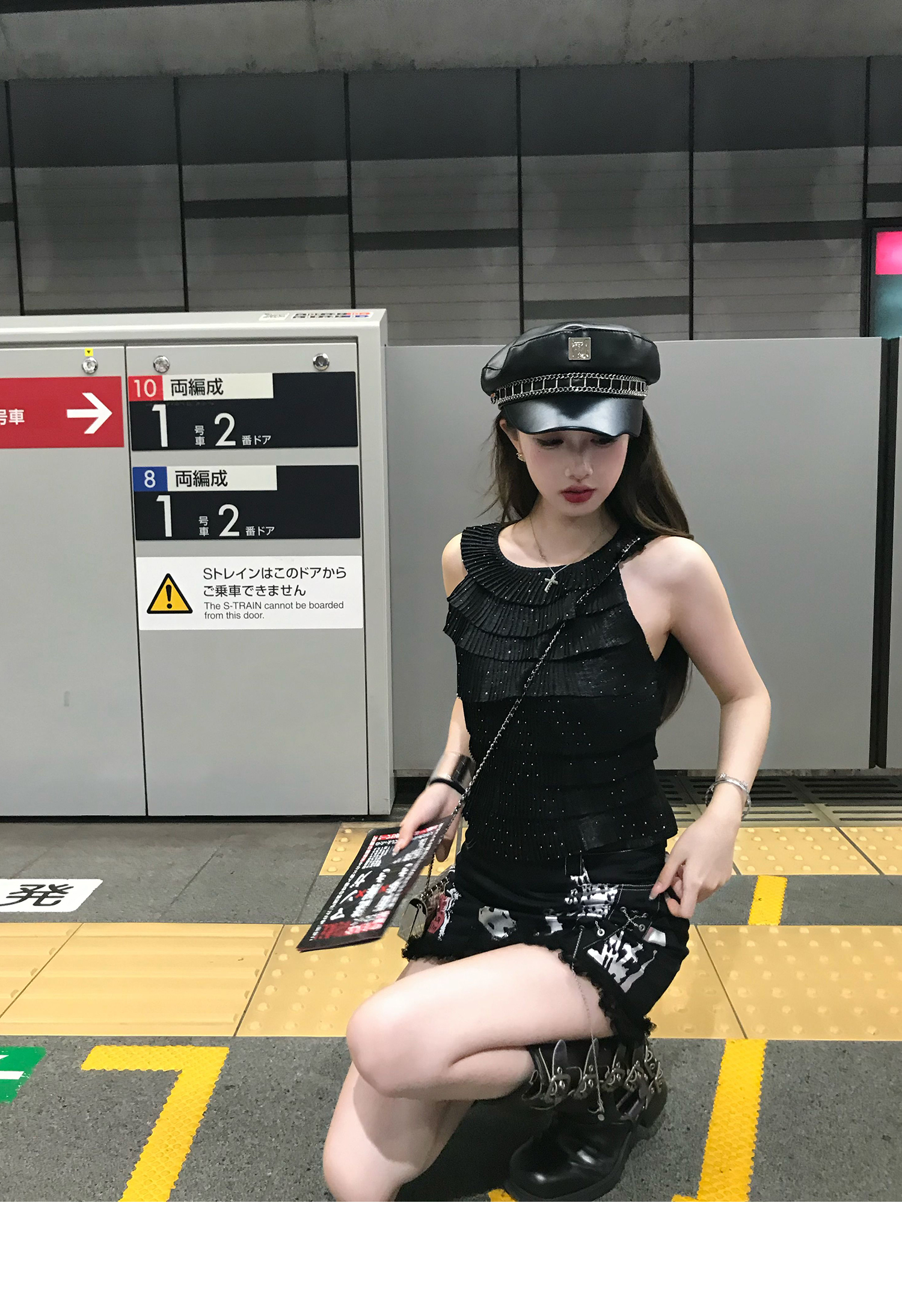 [No Man's Land Midnight] Black Halterneck Top - Premium Niche Design