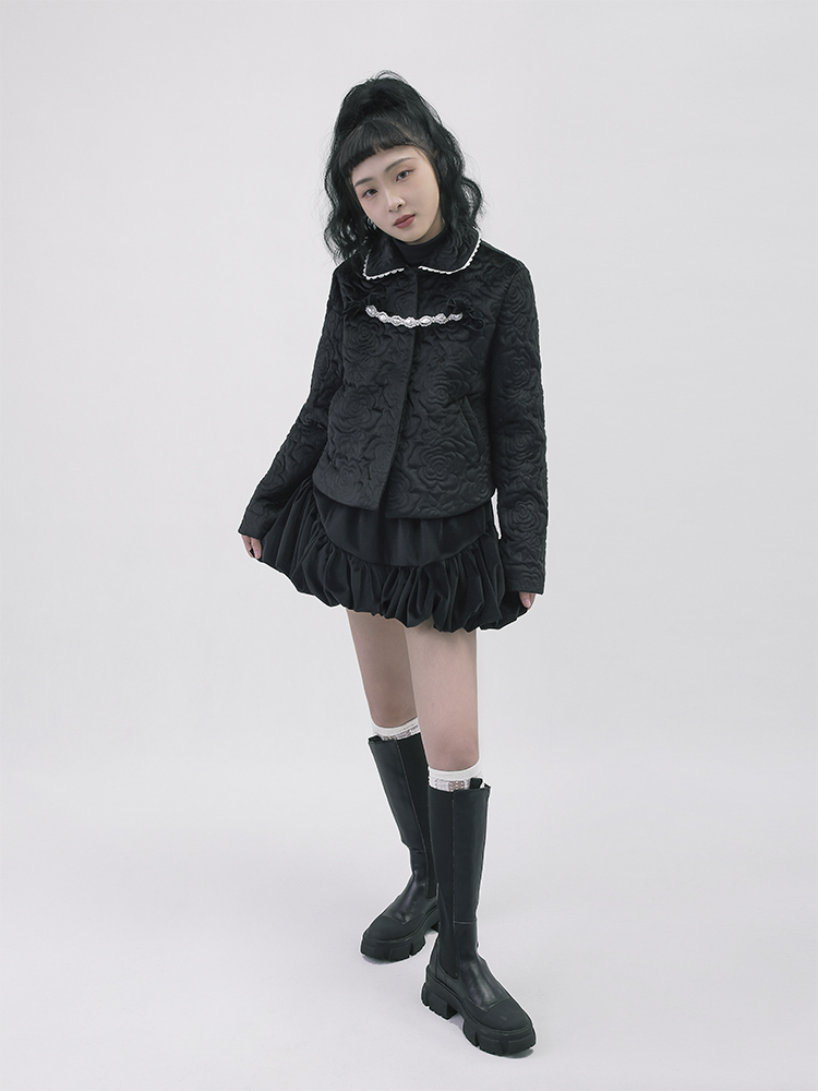 Autumn/Winter Flower Velvet Rose Jacket with Cotton Clip