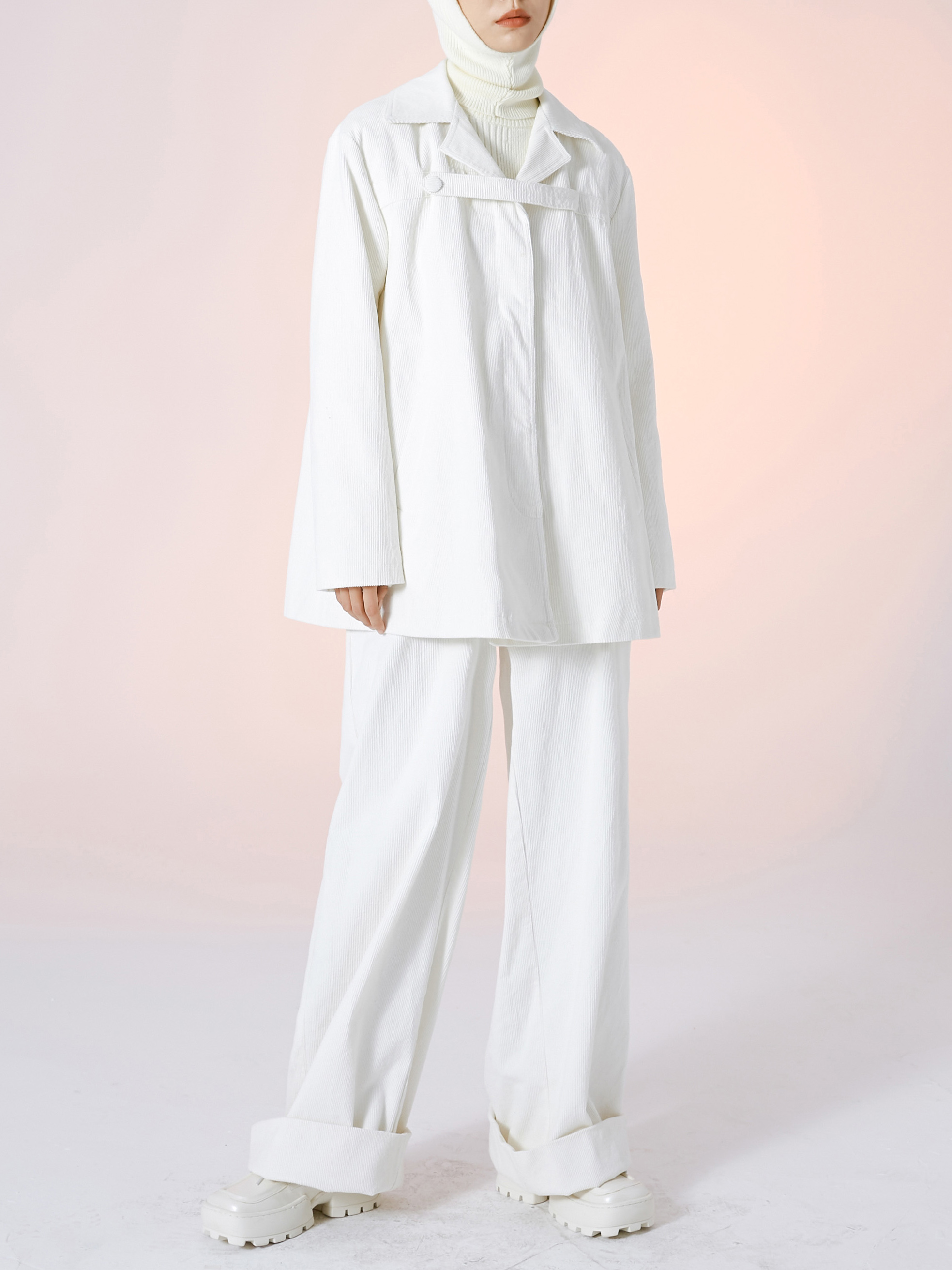Autumn/Winter White Corduroy Wide Leg Casual Pants