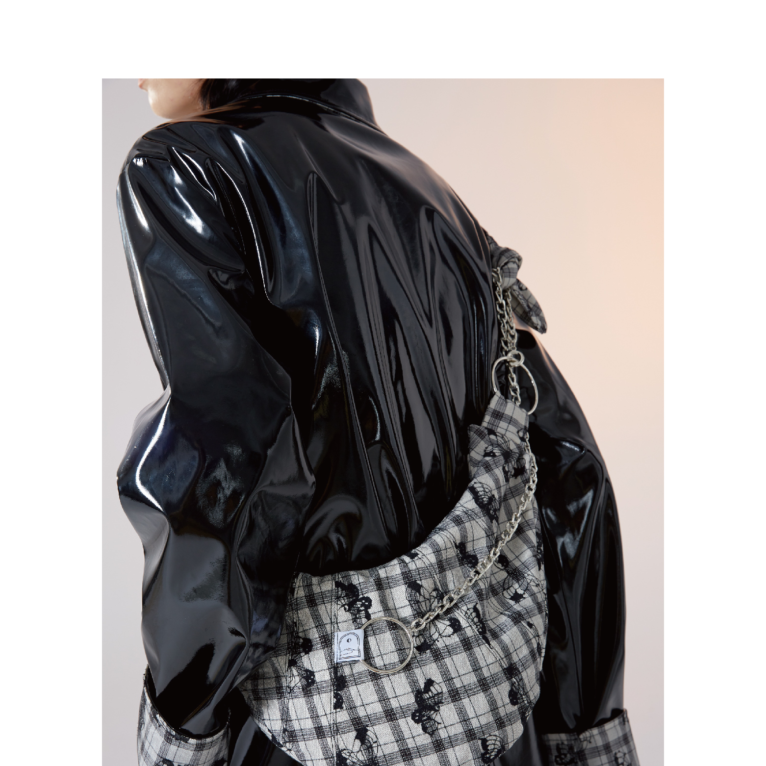 Checkered Butterfly Pattern Diagonal Waist Chain Bag