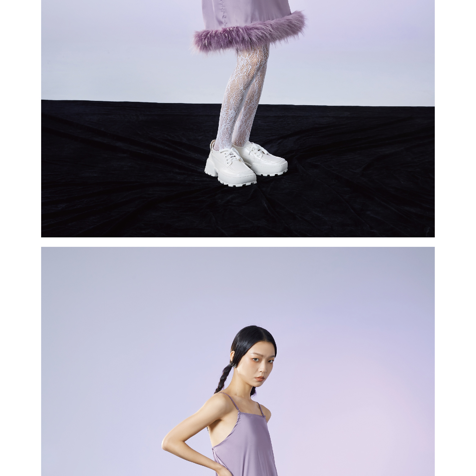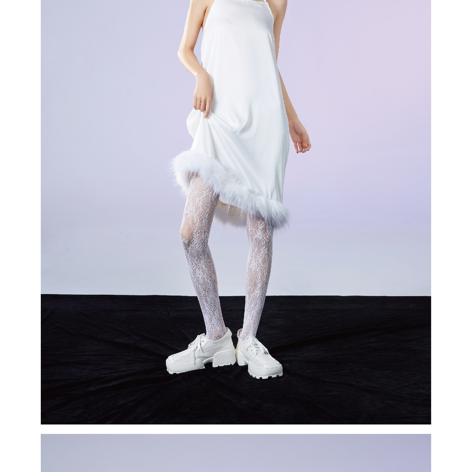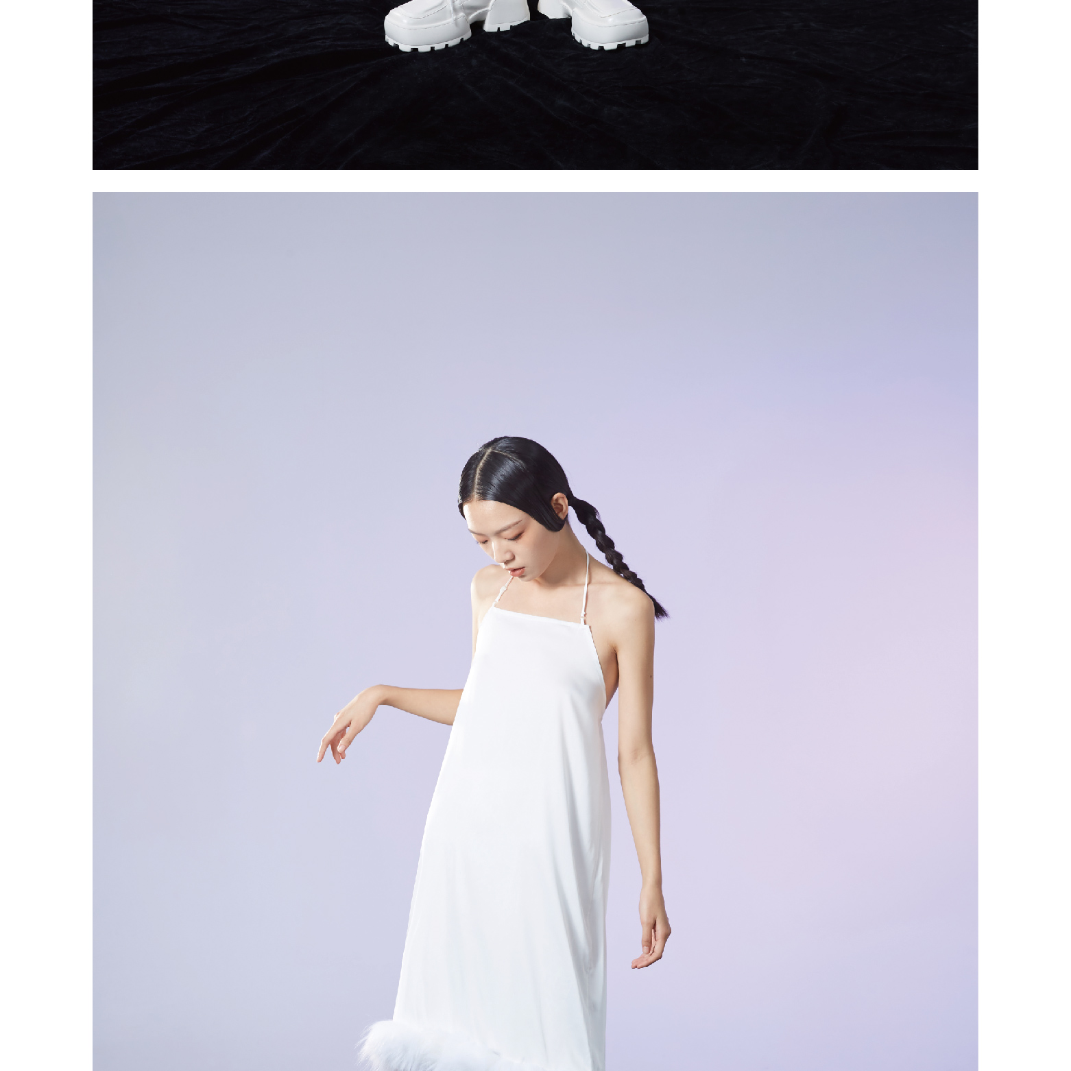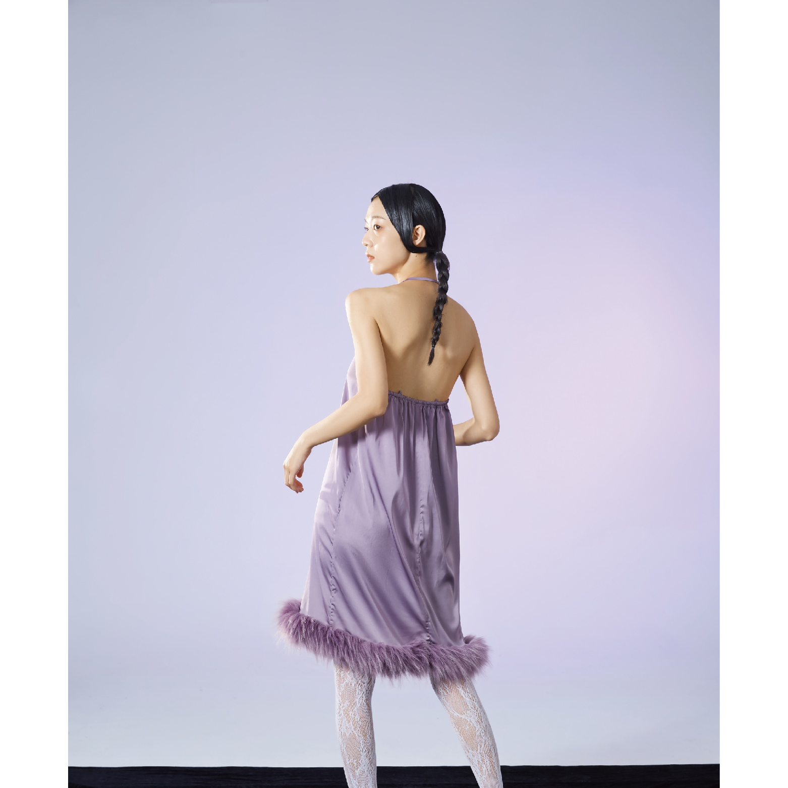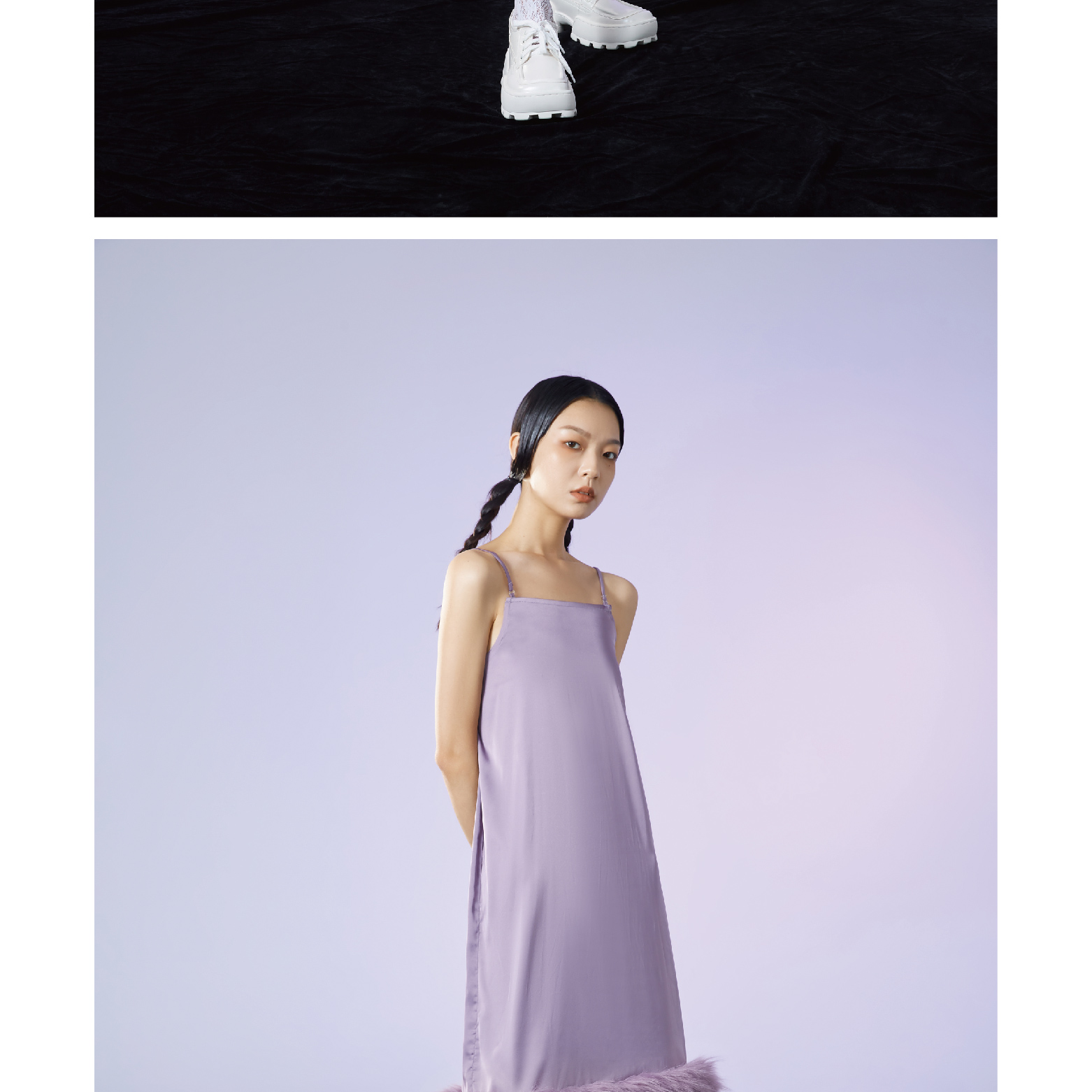Early Spring Plush Hem Satin Faux Fur Suspender Skirt