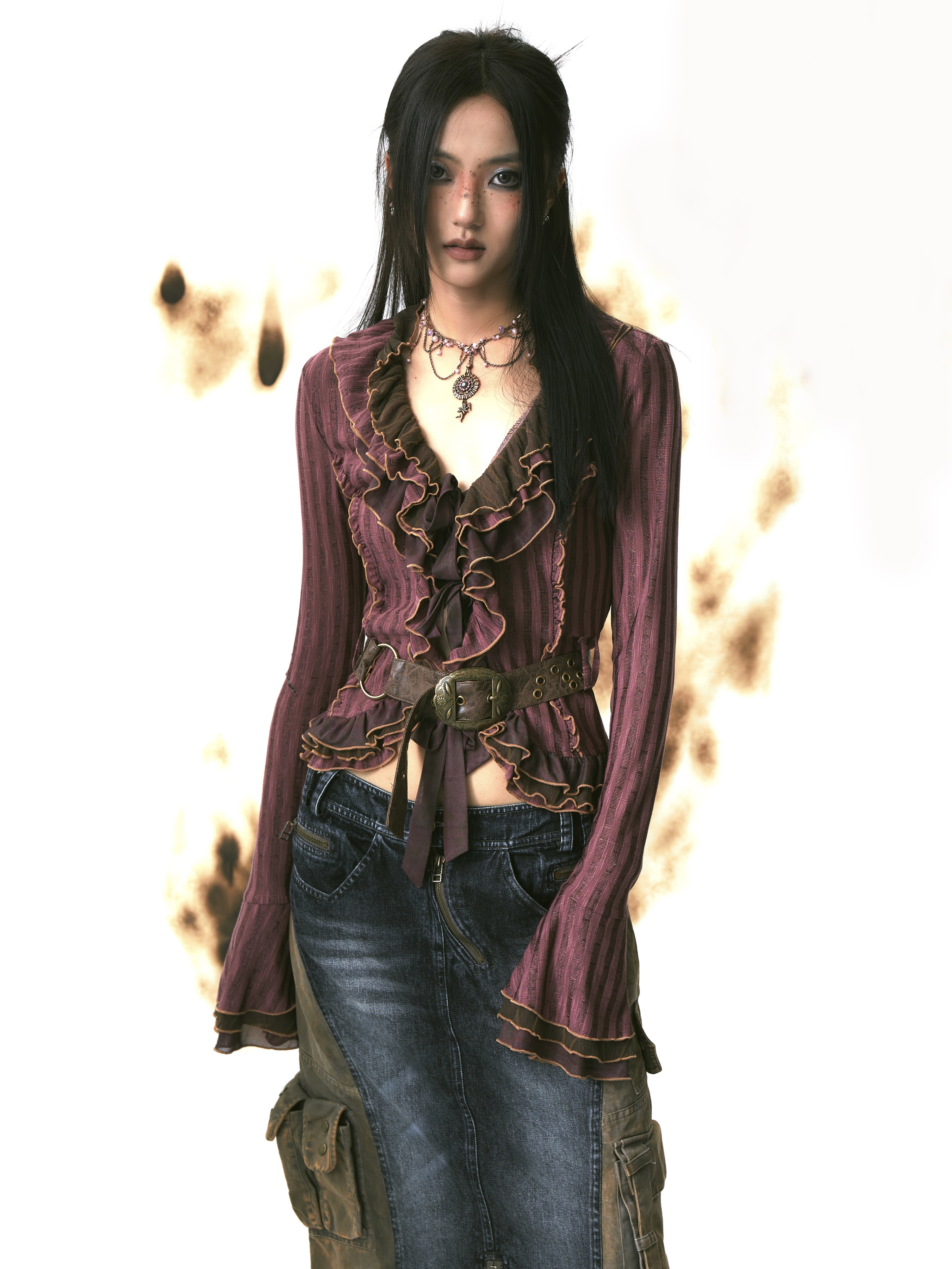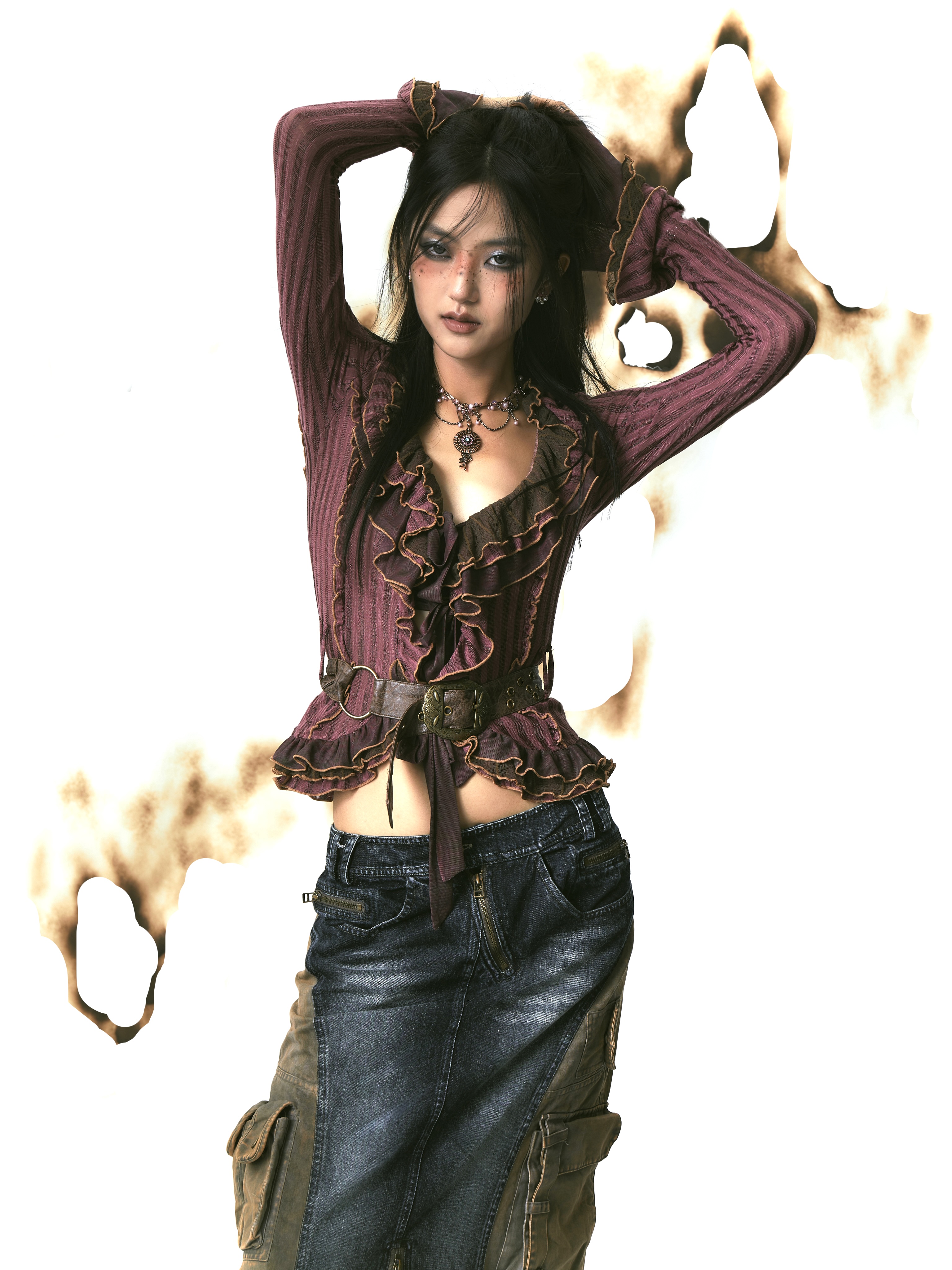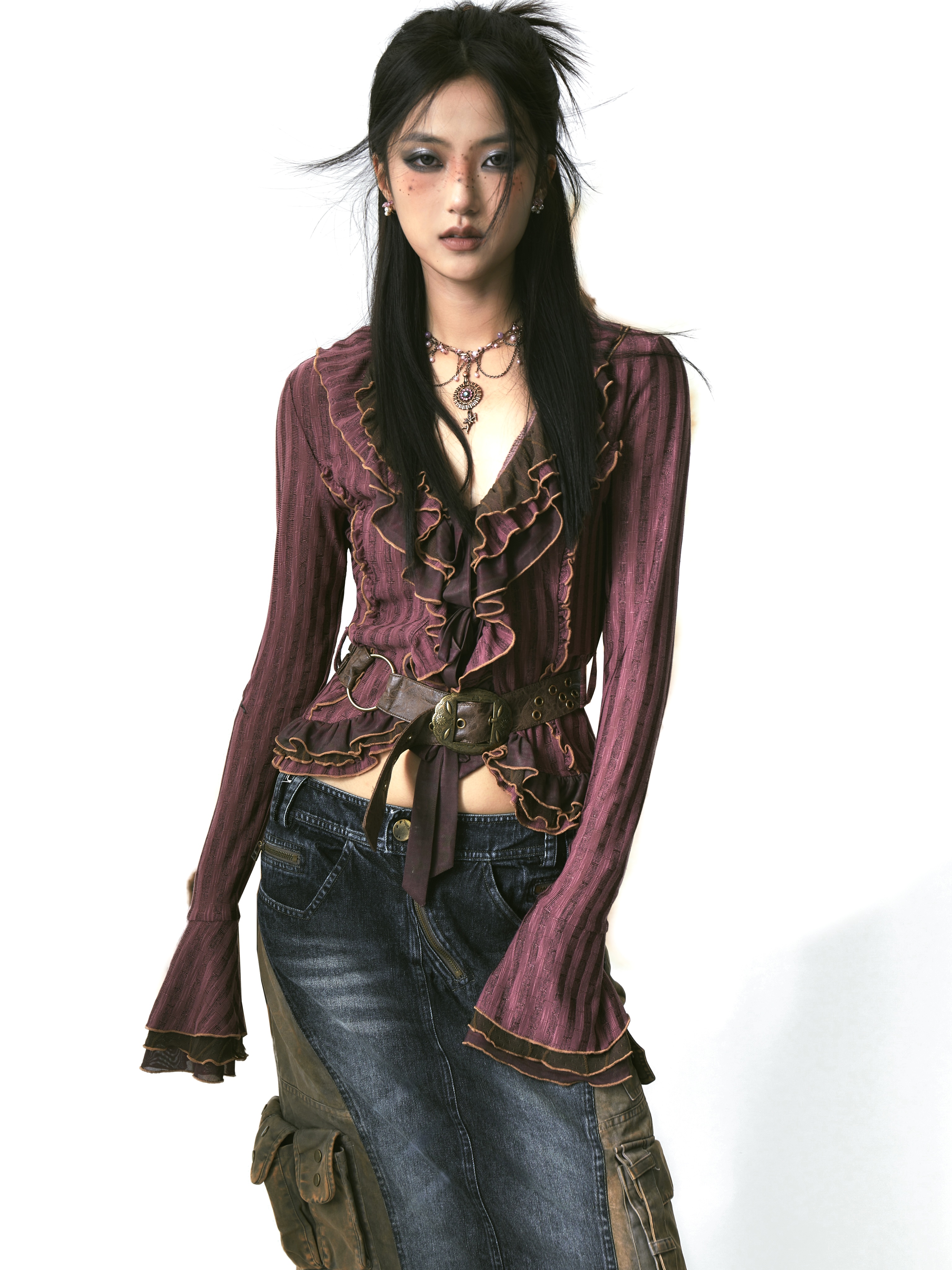 Mesh Splicing Knit Shirt with Belt