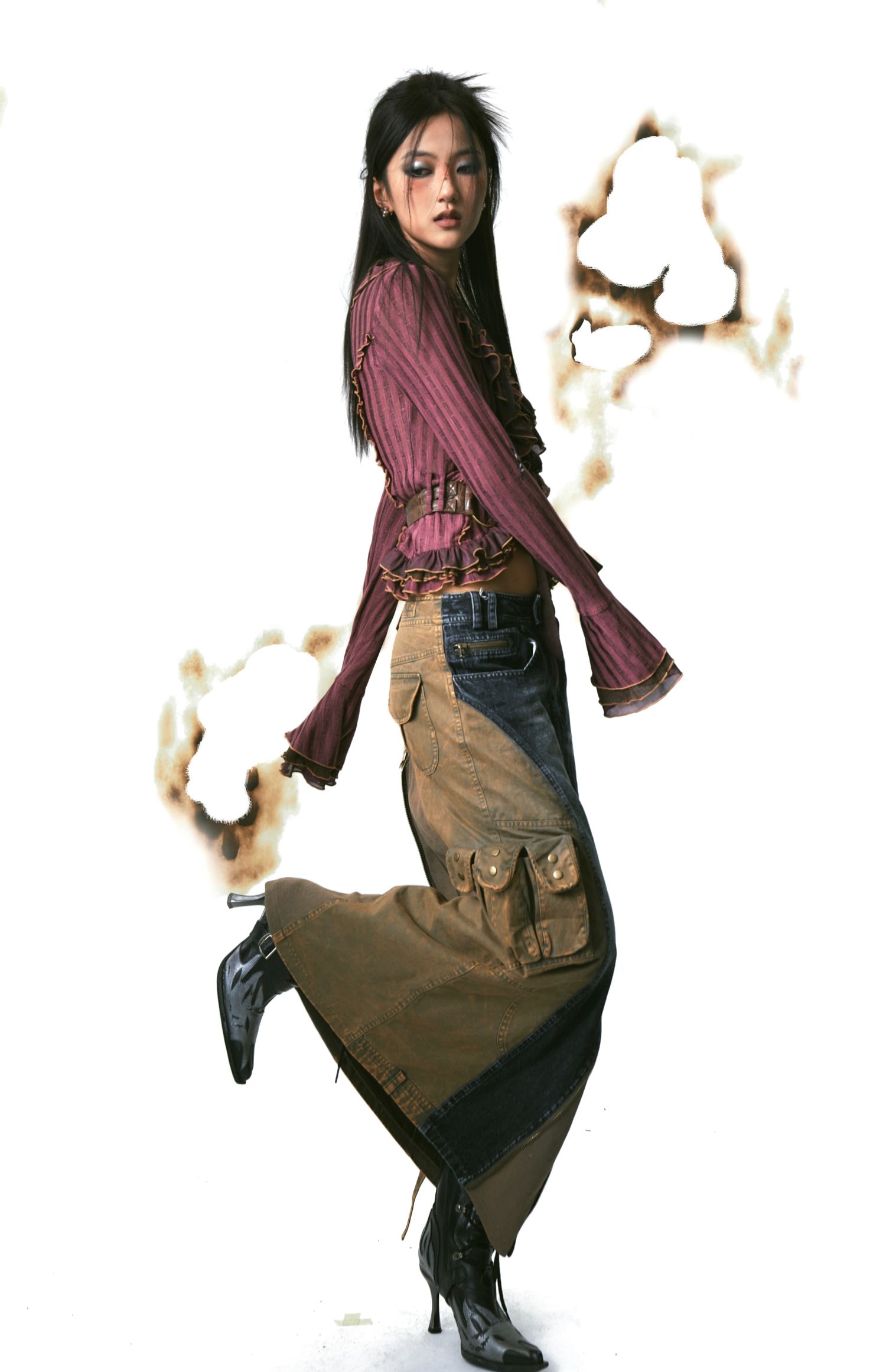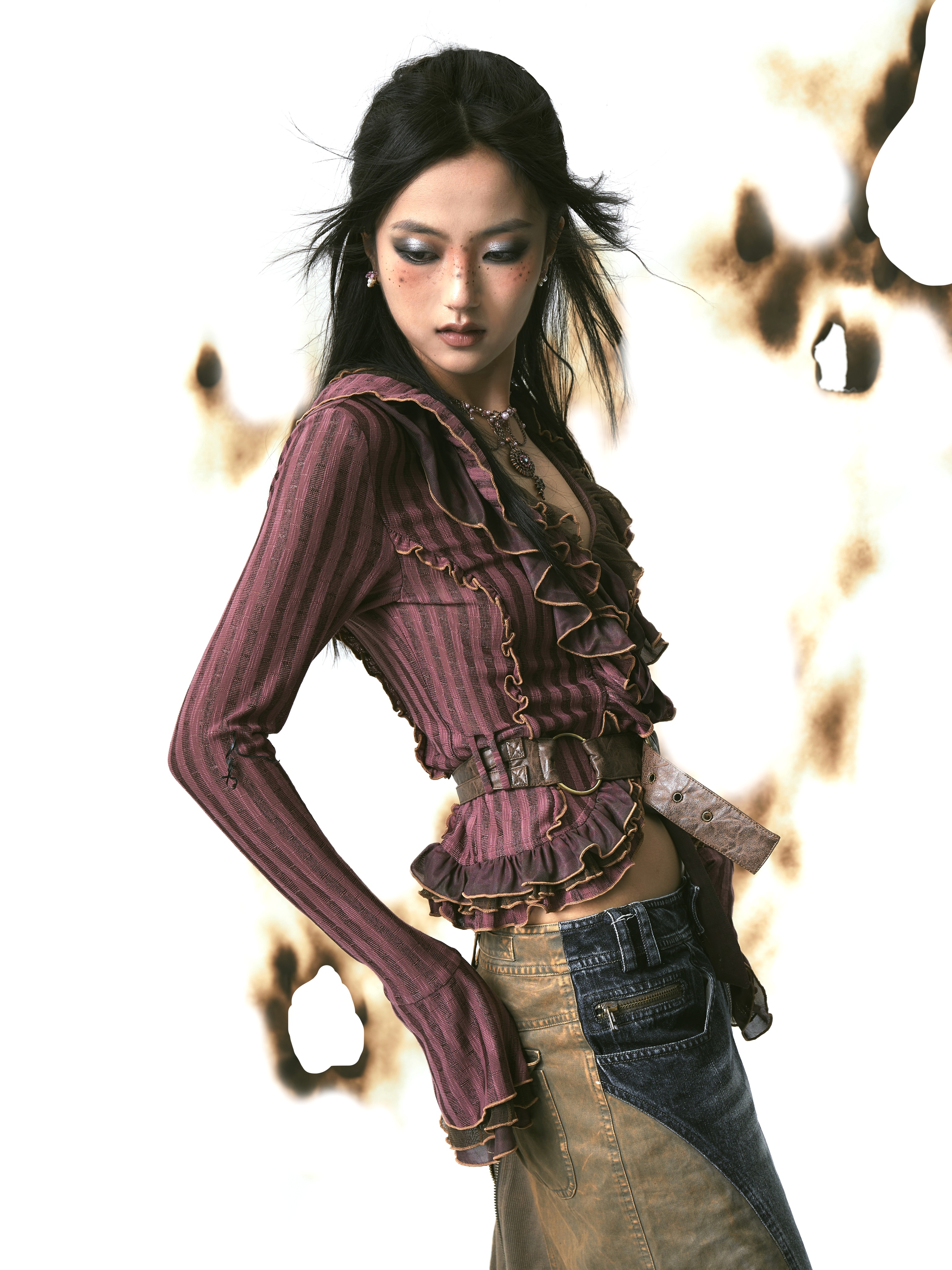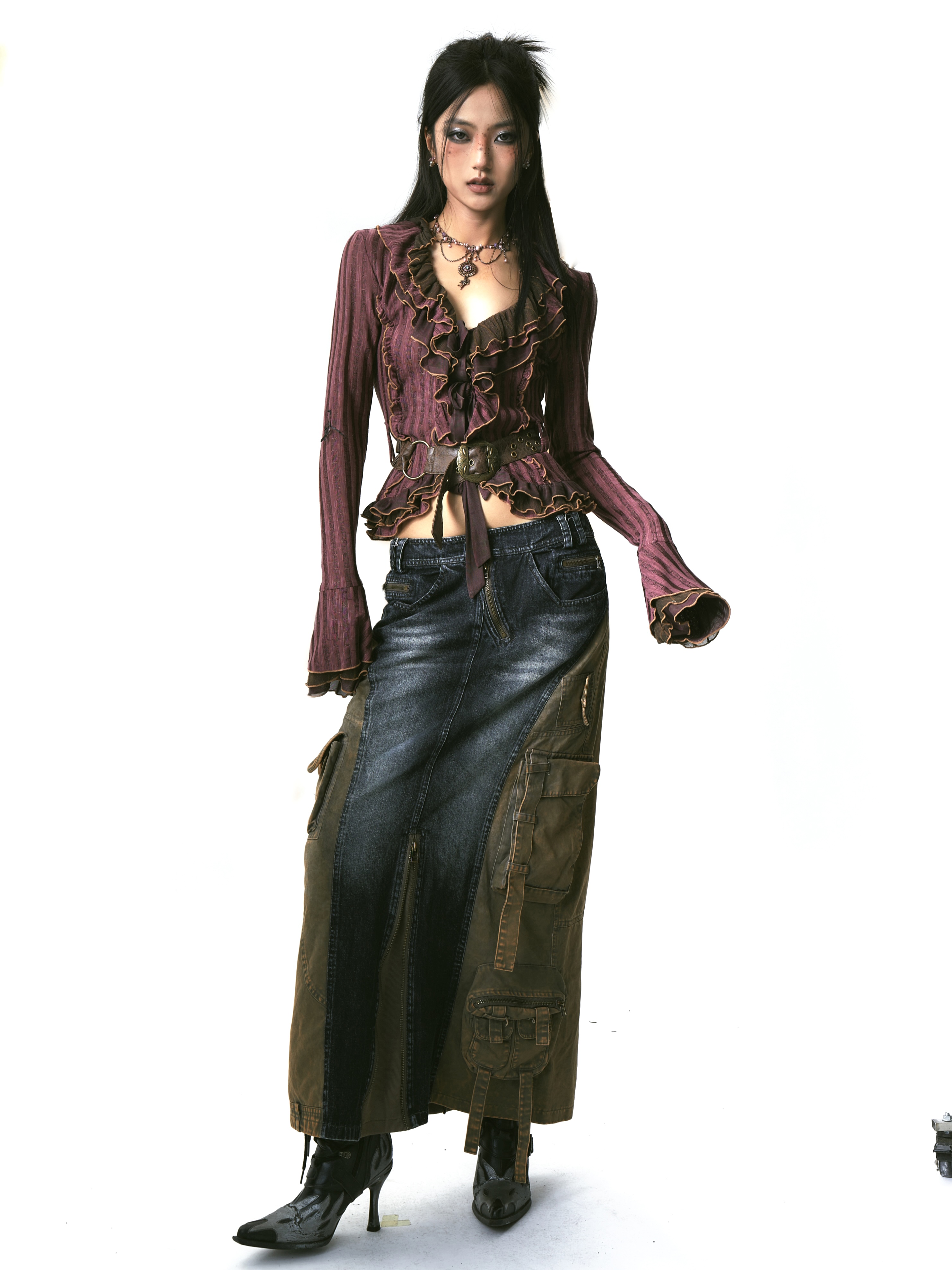 Mesh Splicing Knit Shirt with Belt