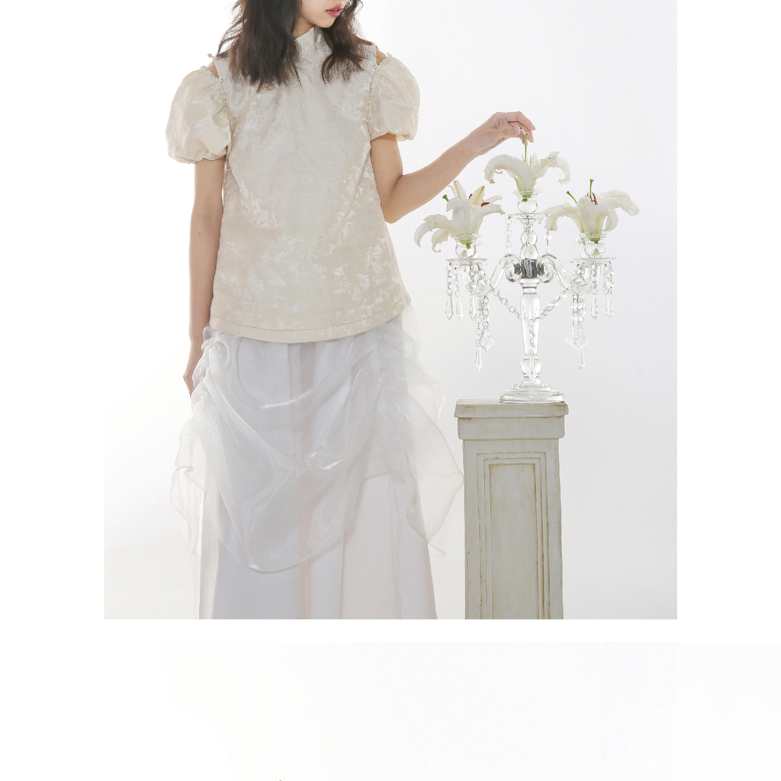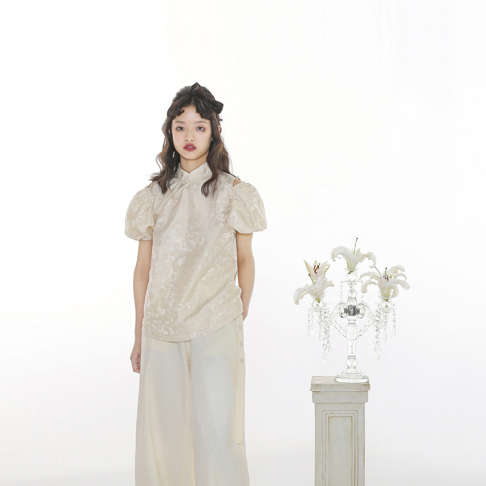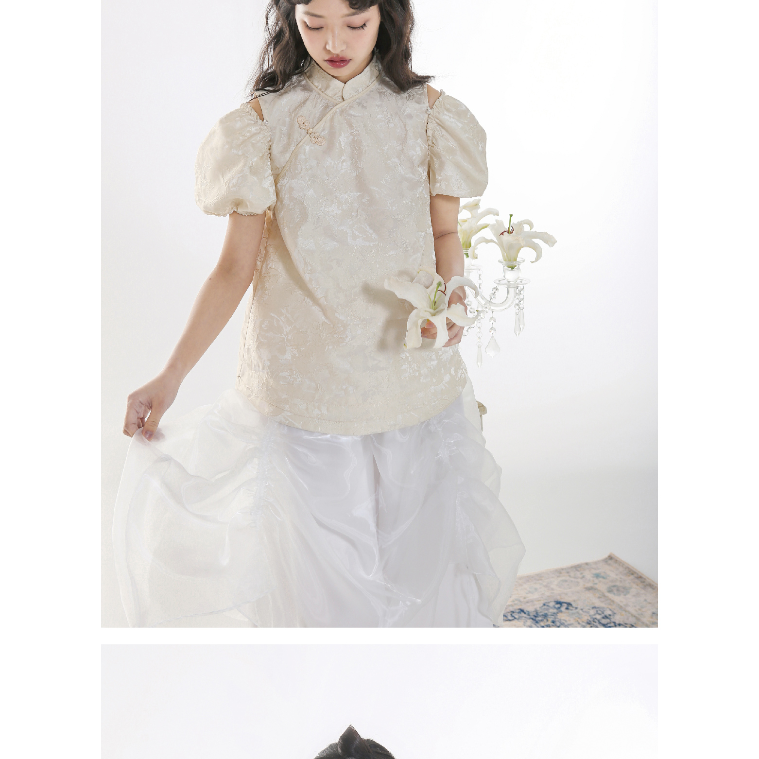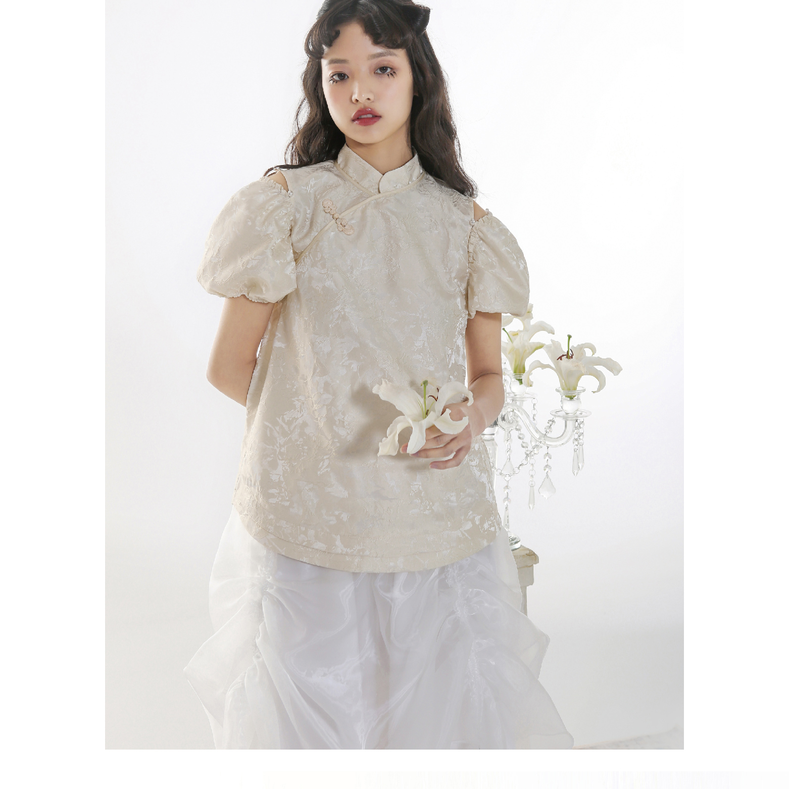 New Chinese Improved Cheongsam Collar Bubble Sleeve Top