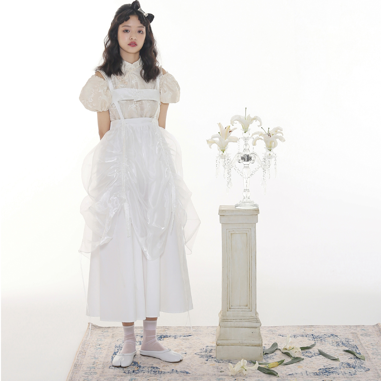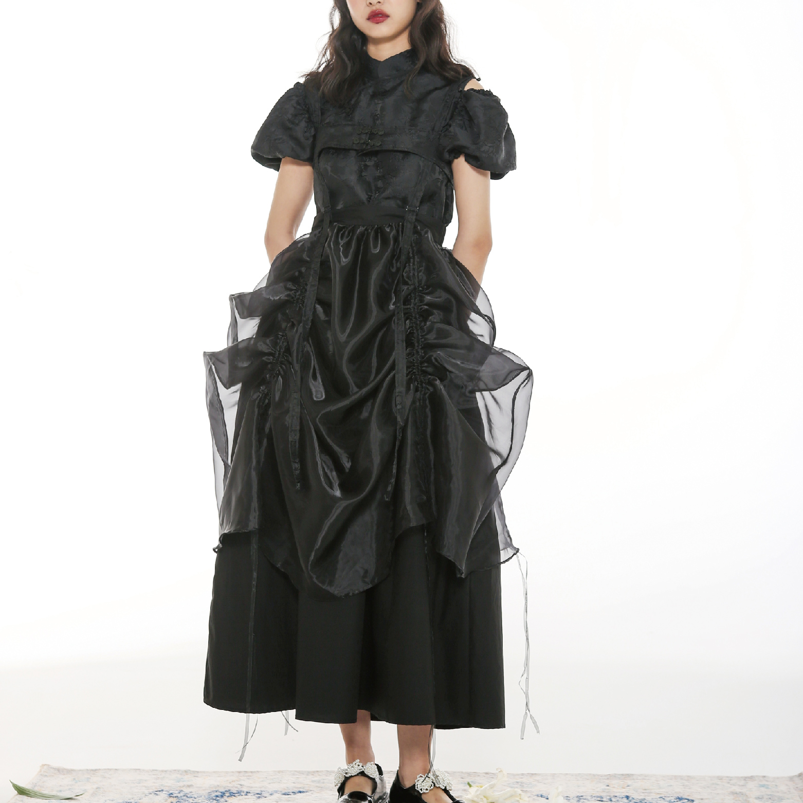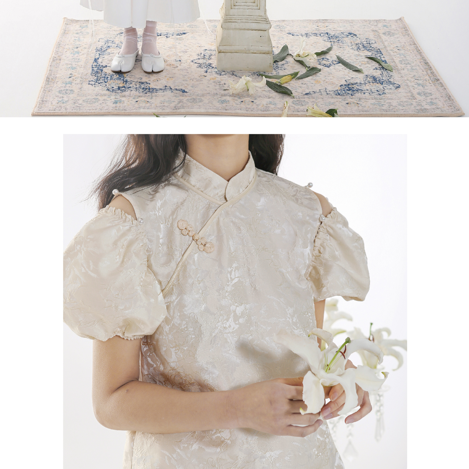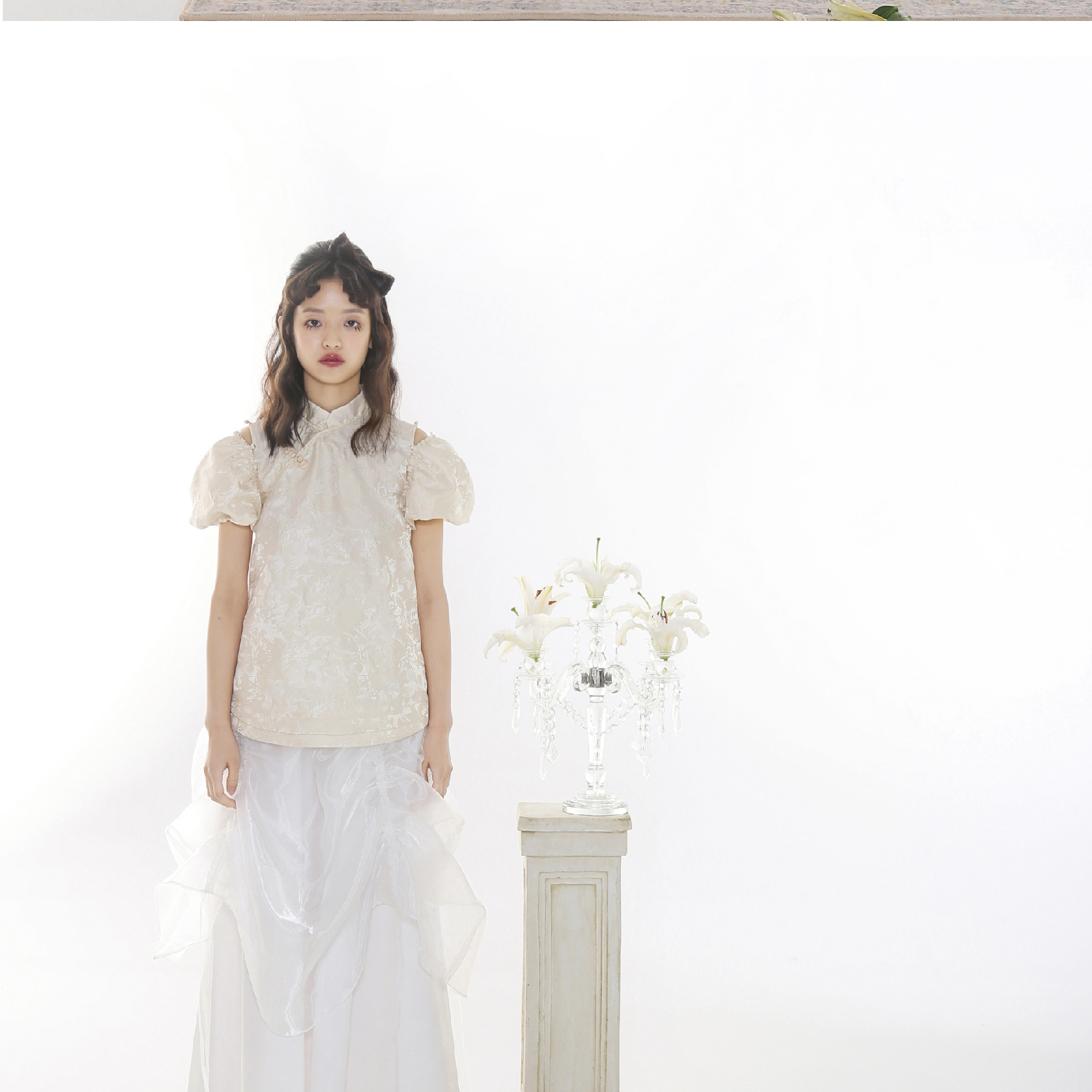 New Chinese Improved Cheongsam Collar Bubble Sleeve Top