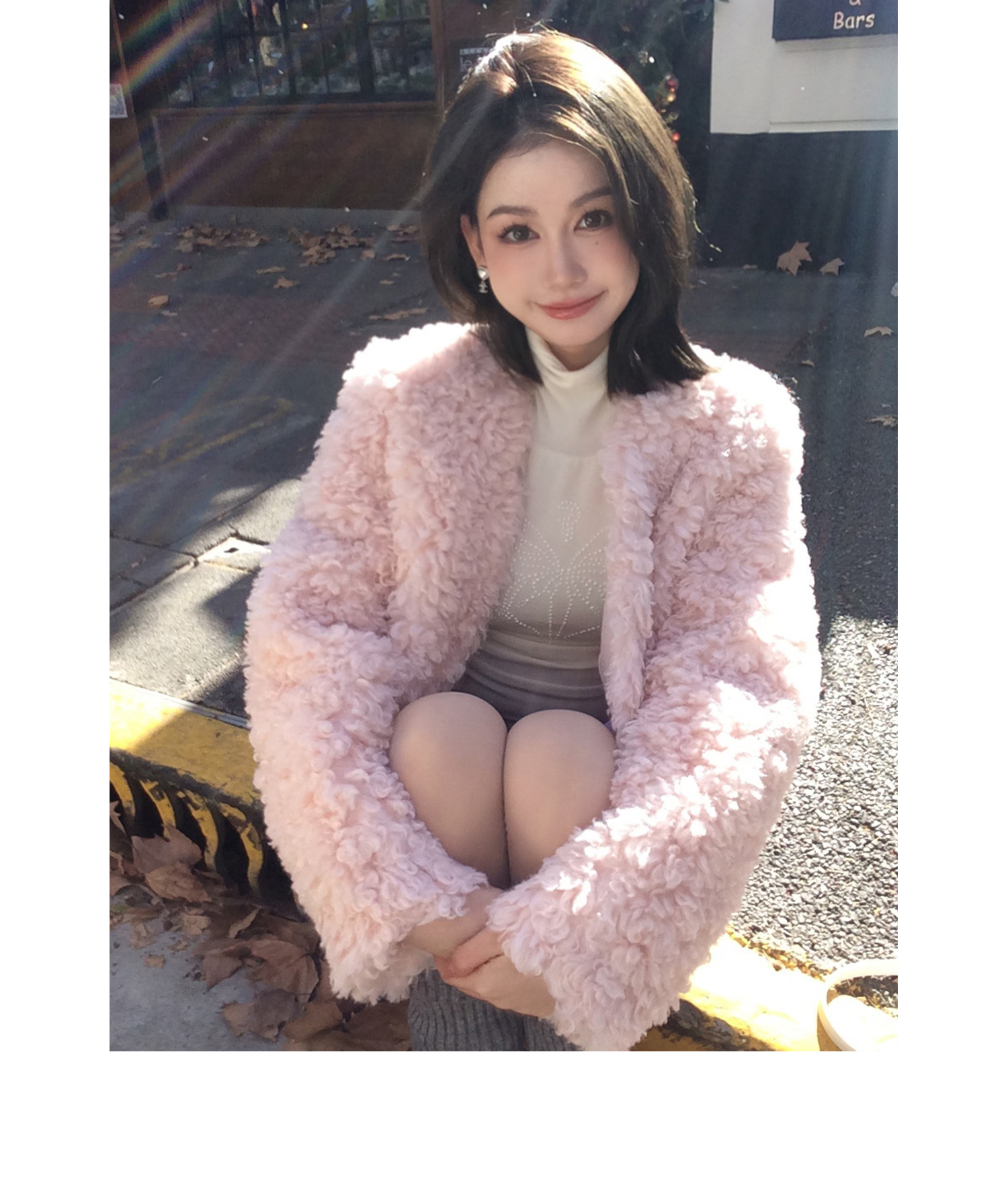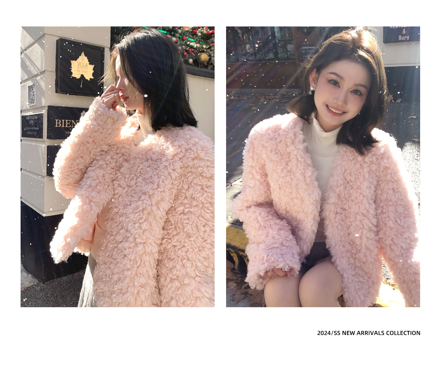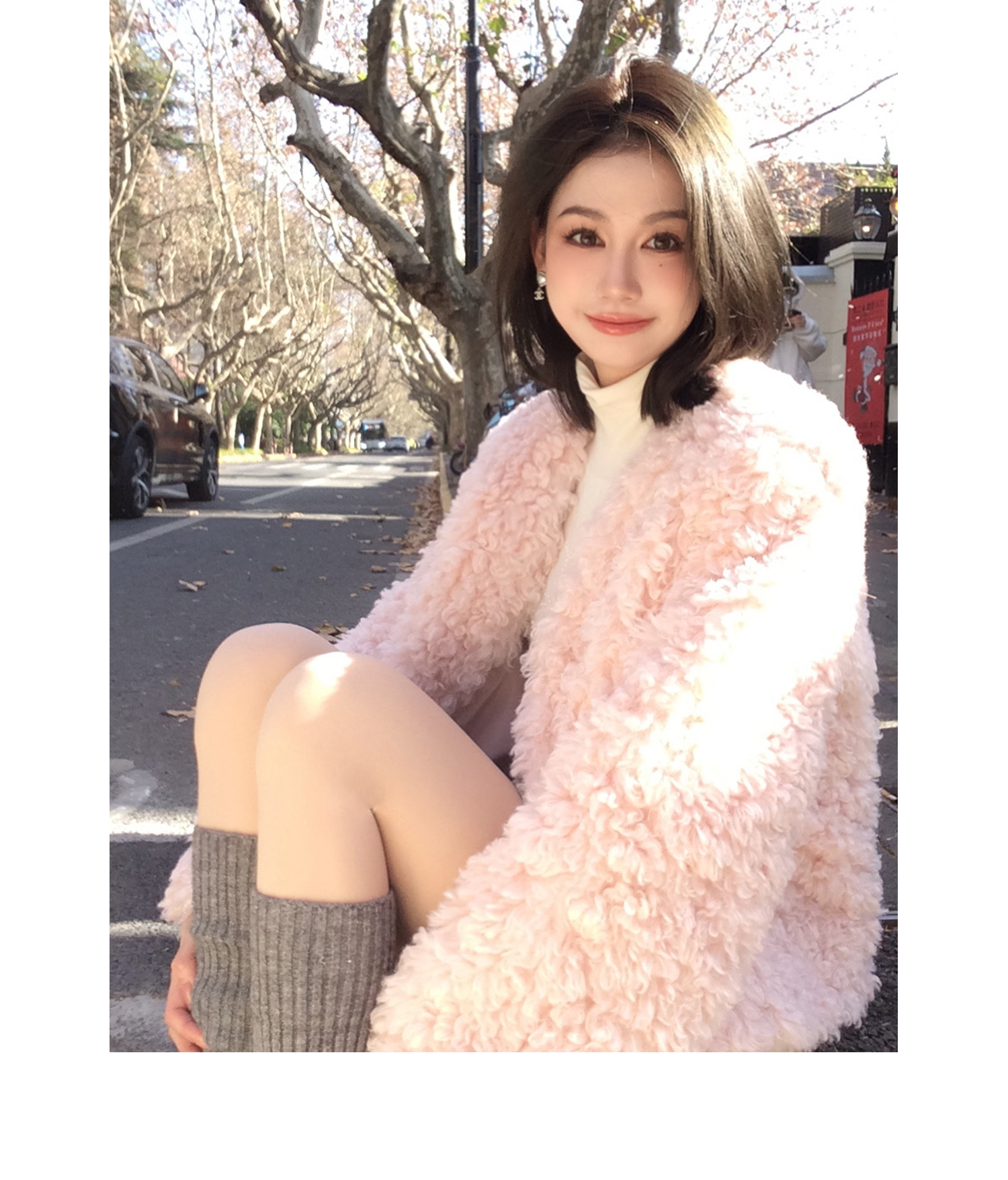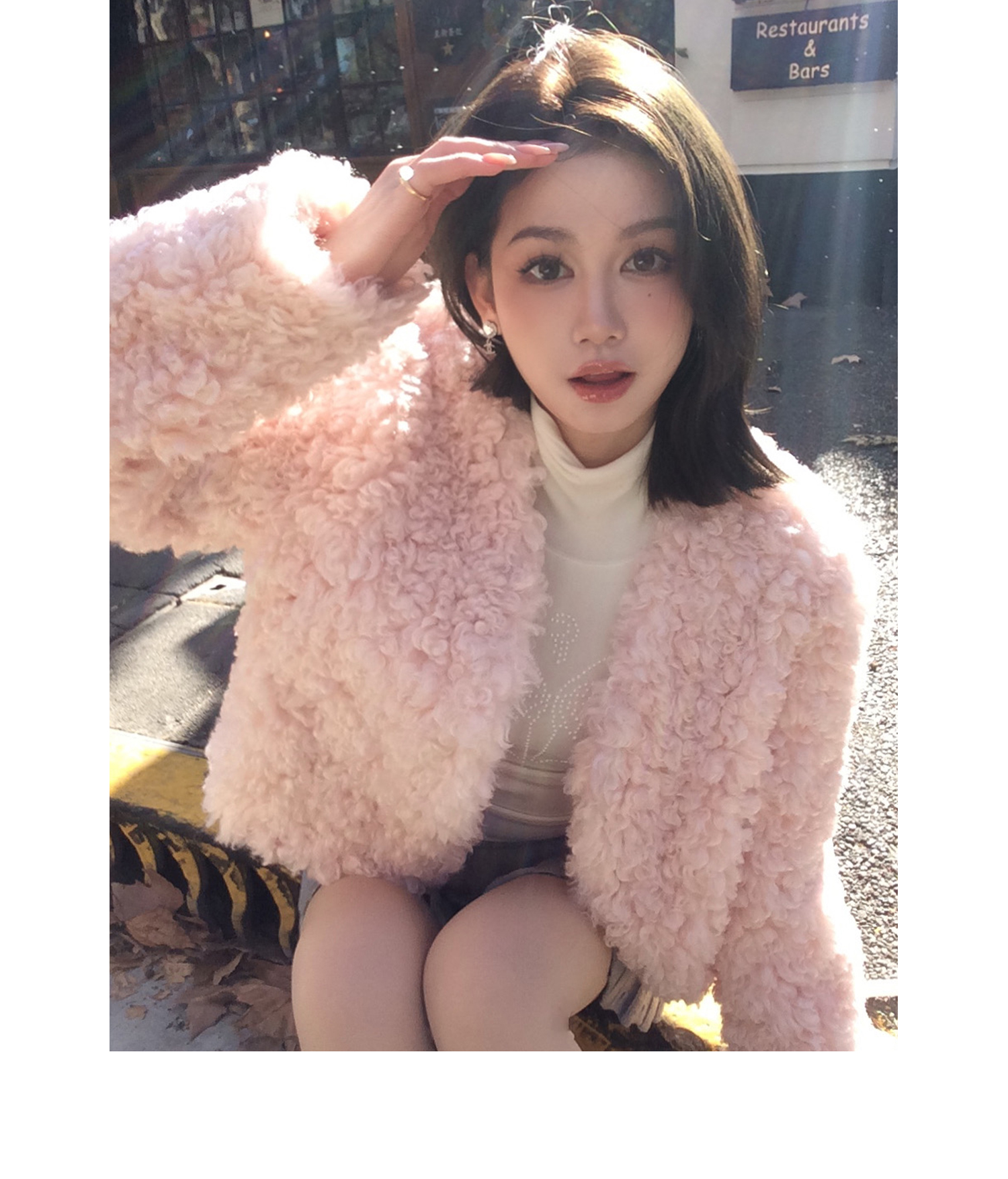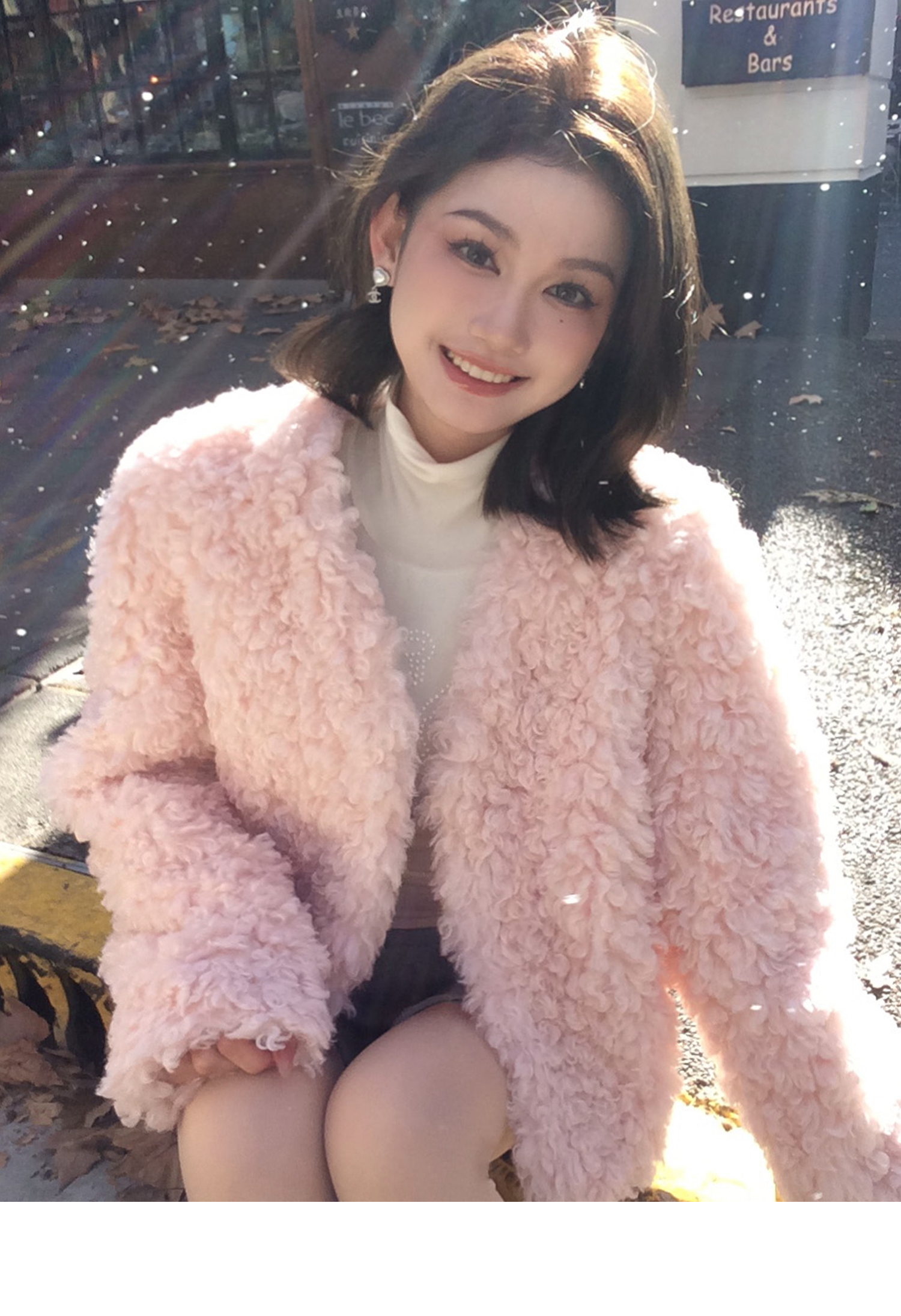 Pink Eco-Friendly Fur Coat - Women's Autumn/Winter Short Wool Curly Fit