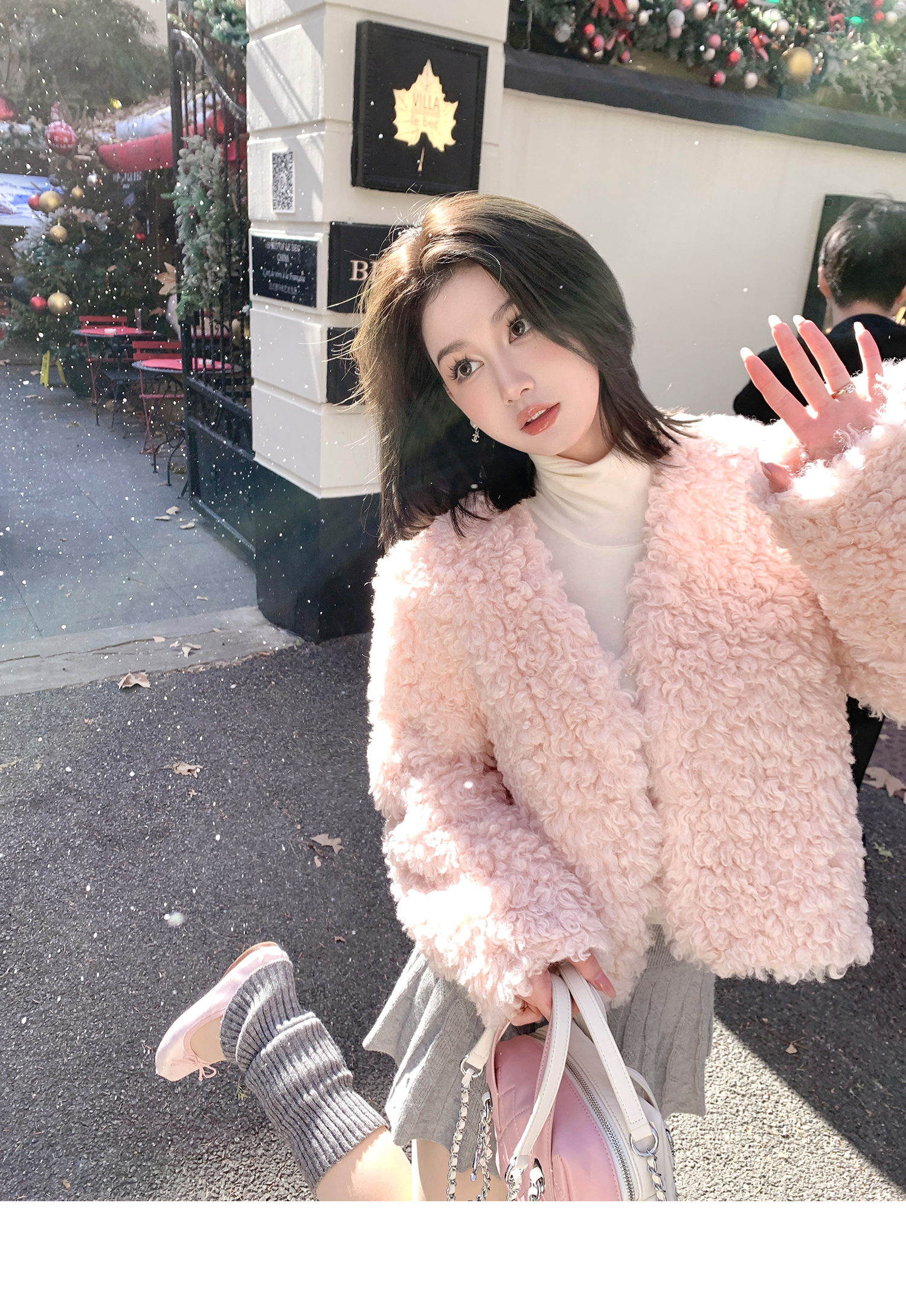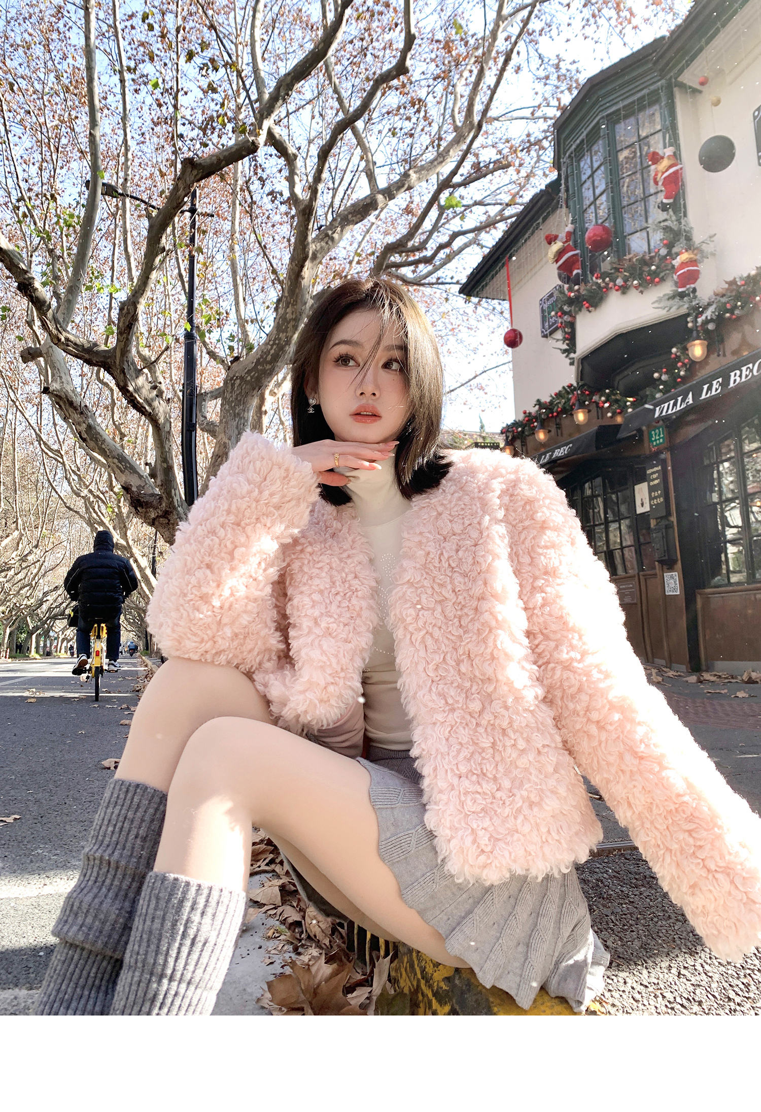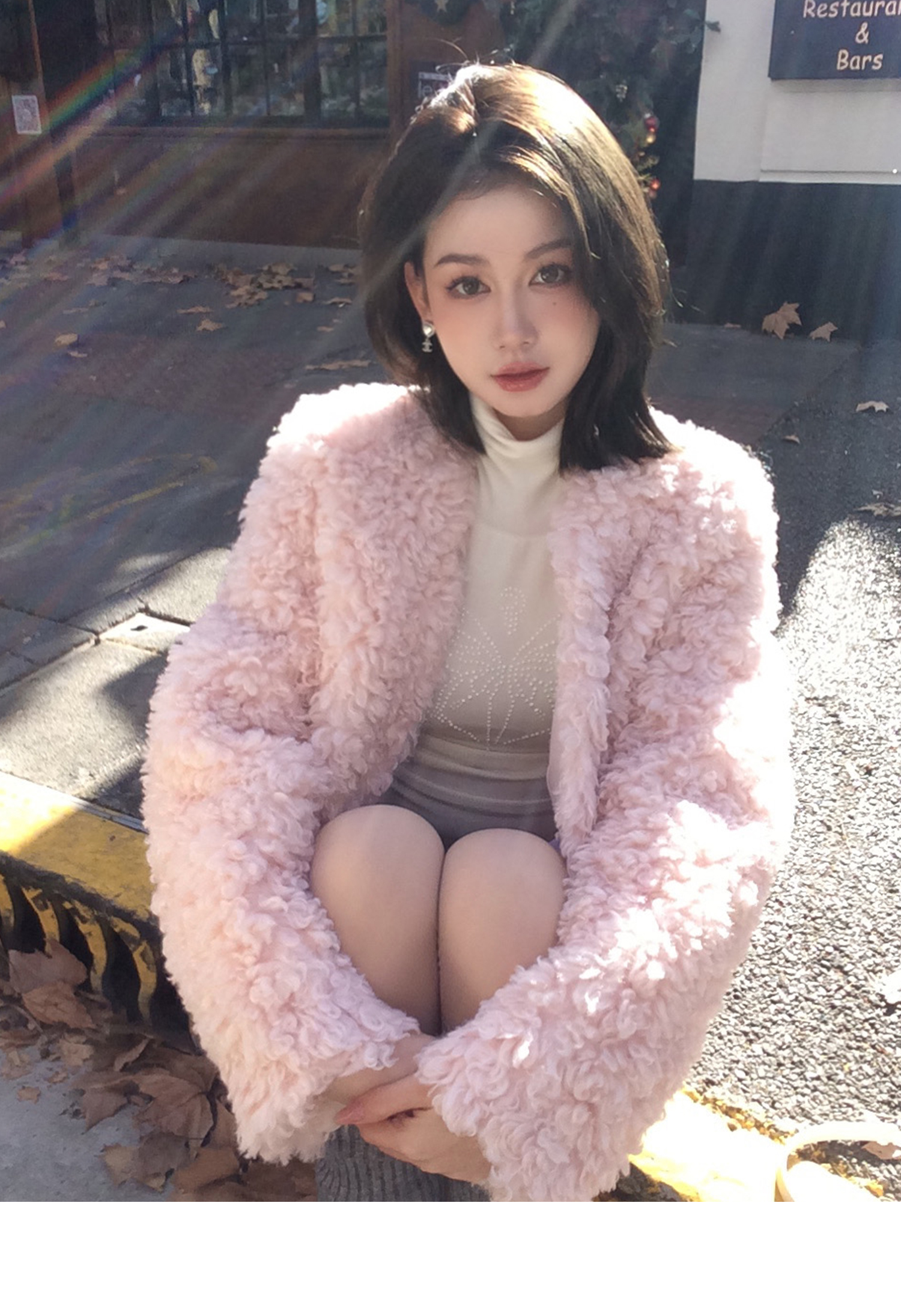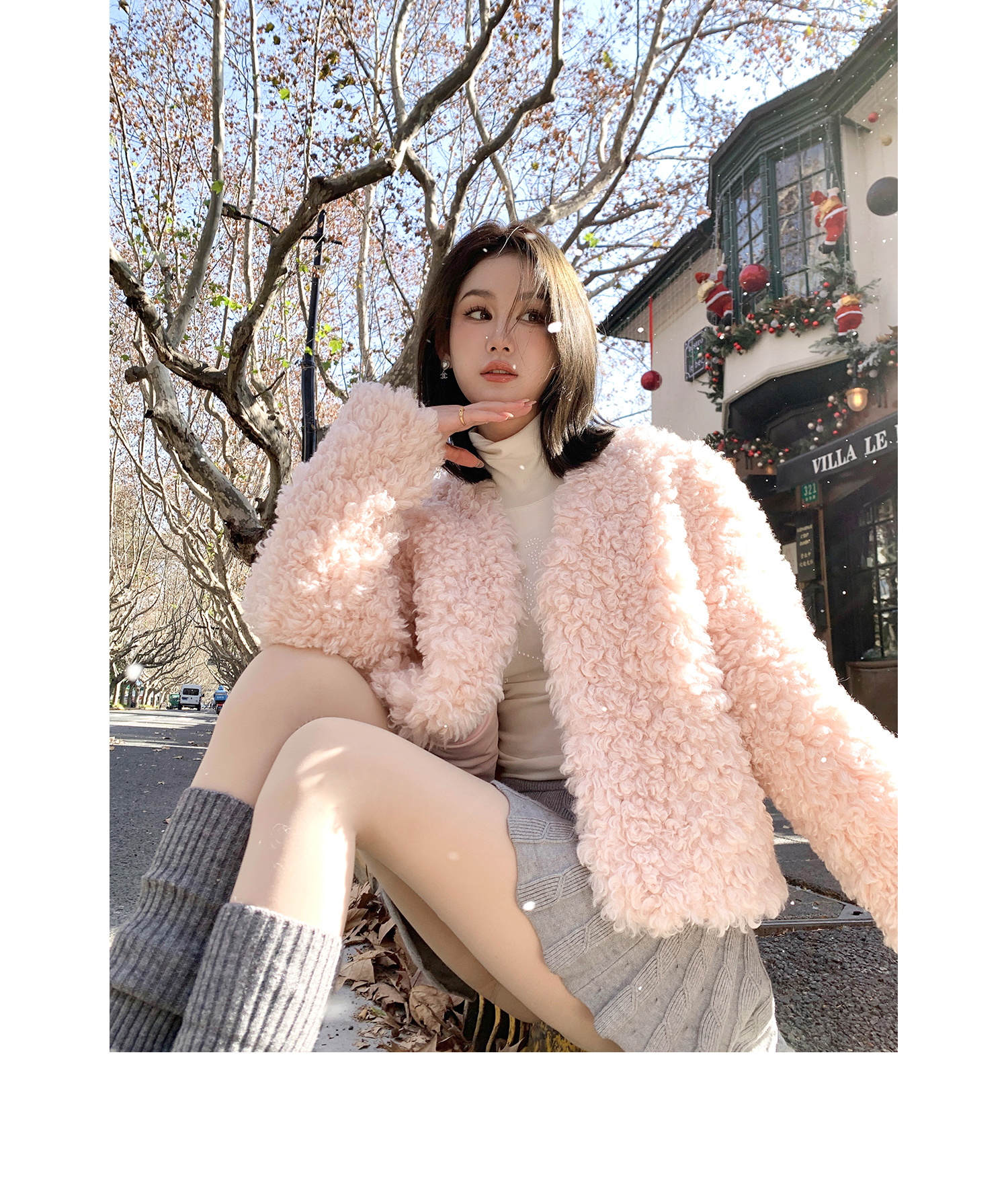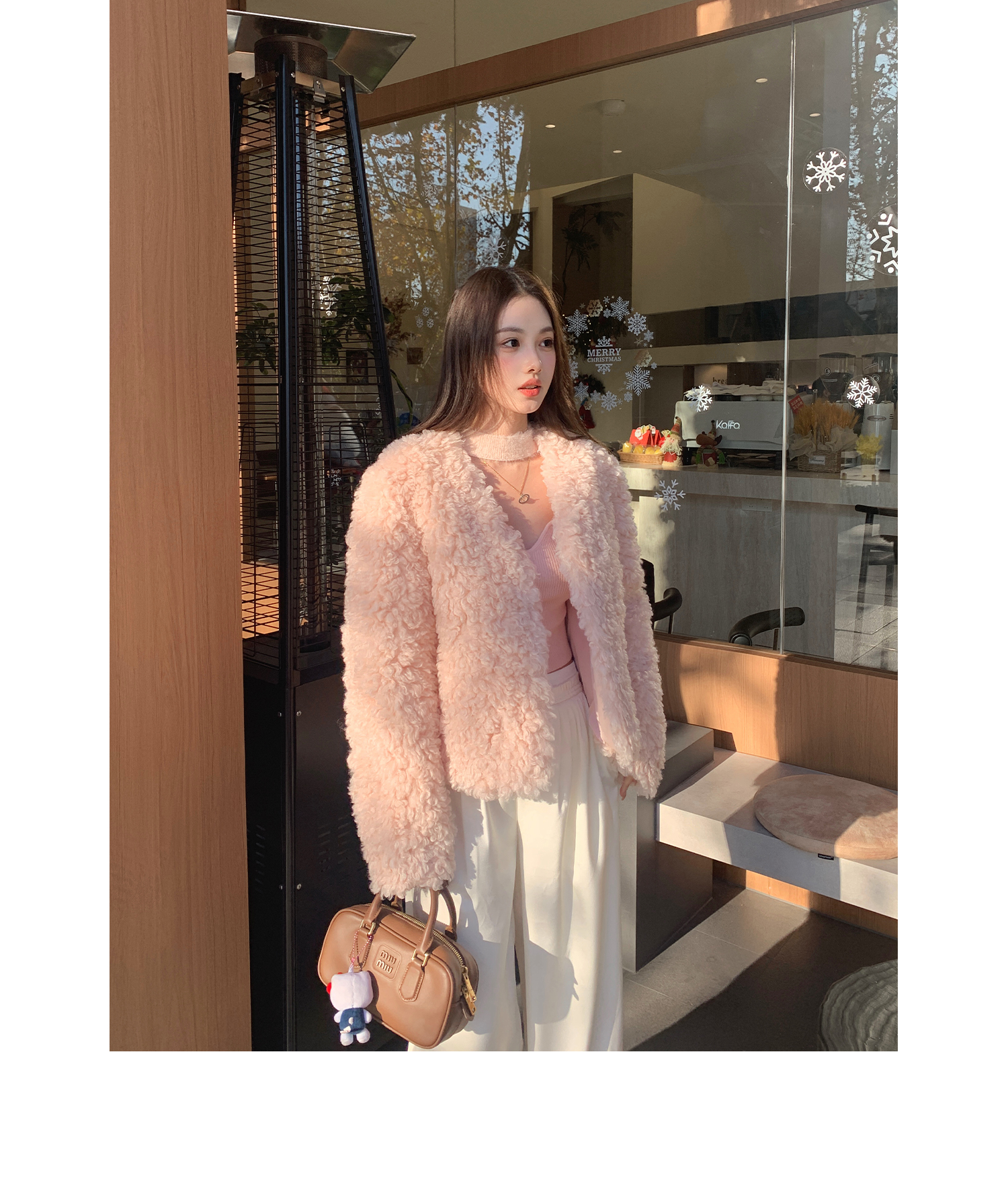 Pink Eco-Friendly Fur Coat - Women's Autumn/Winter Short Wool Curly Fit