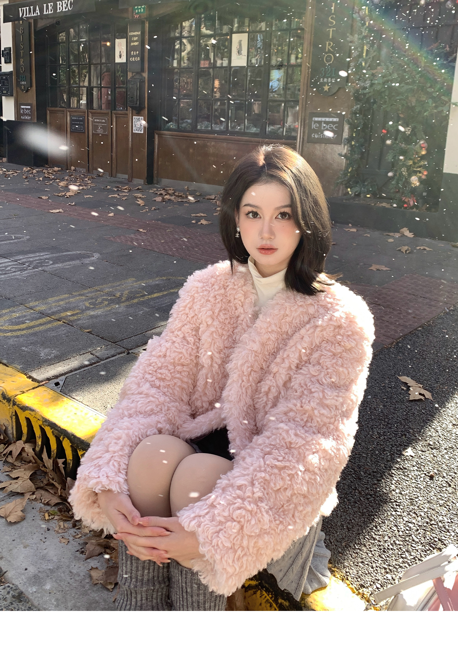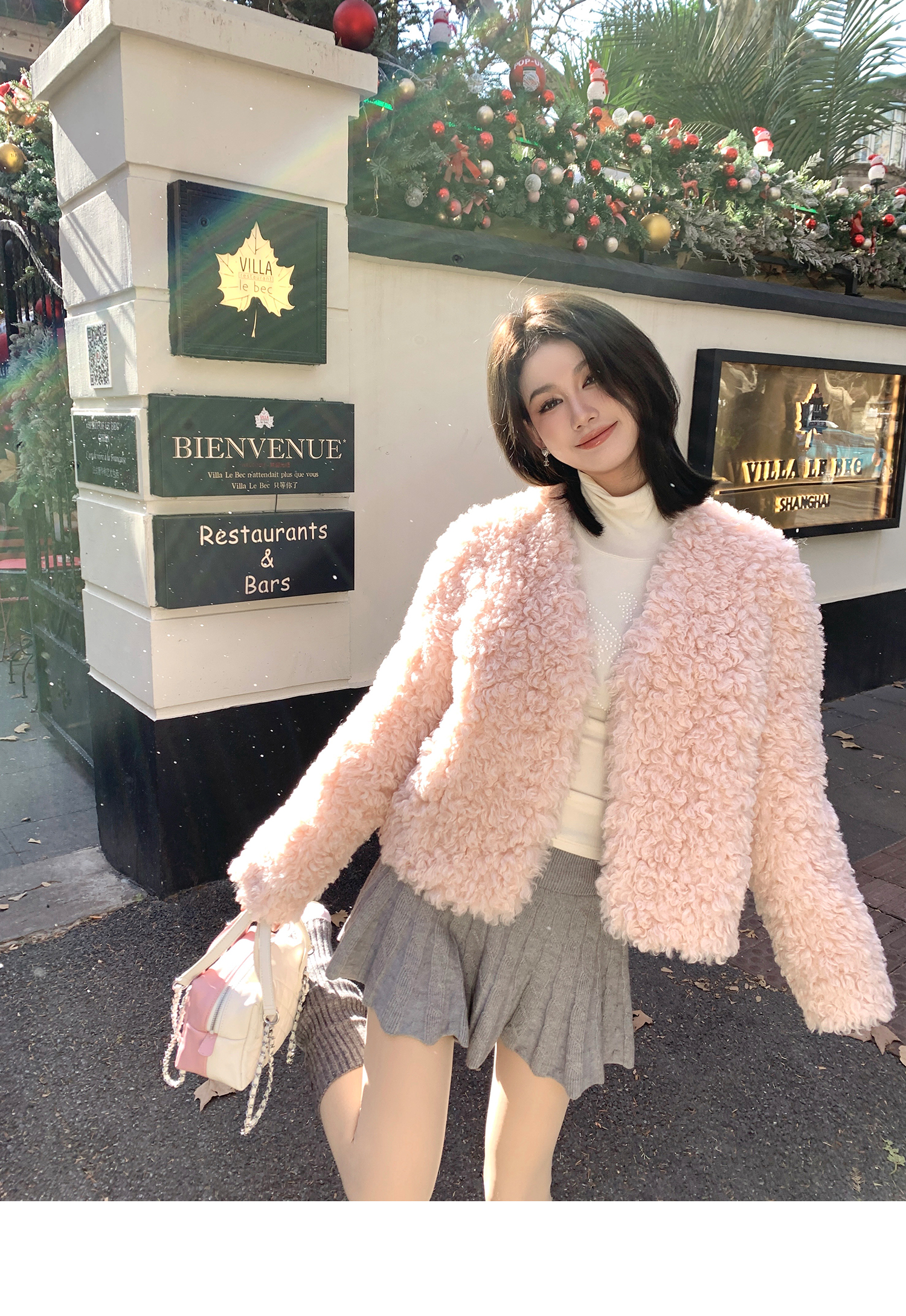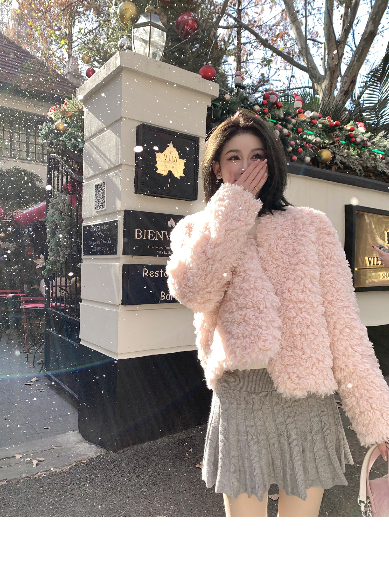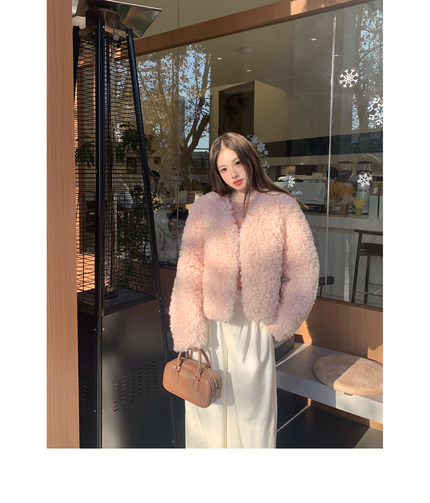 Pink Eco-Friendly Fur Coat - Women's Autumn/Winter Short Wool Curly Fit