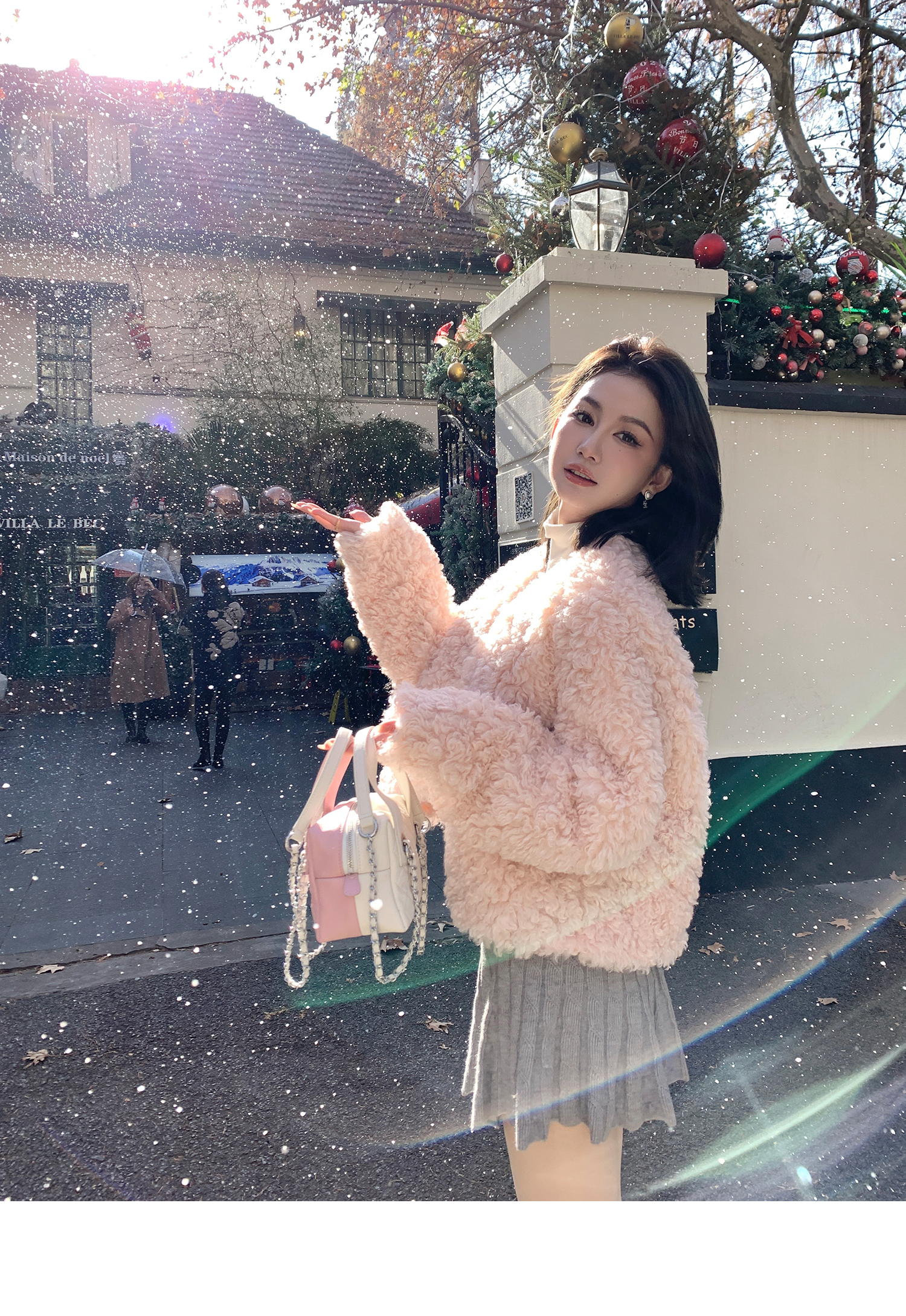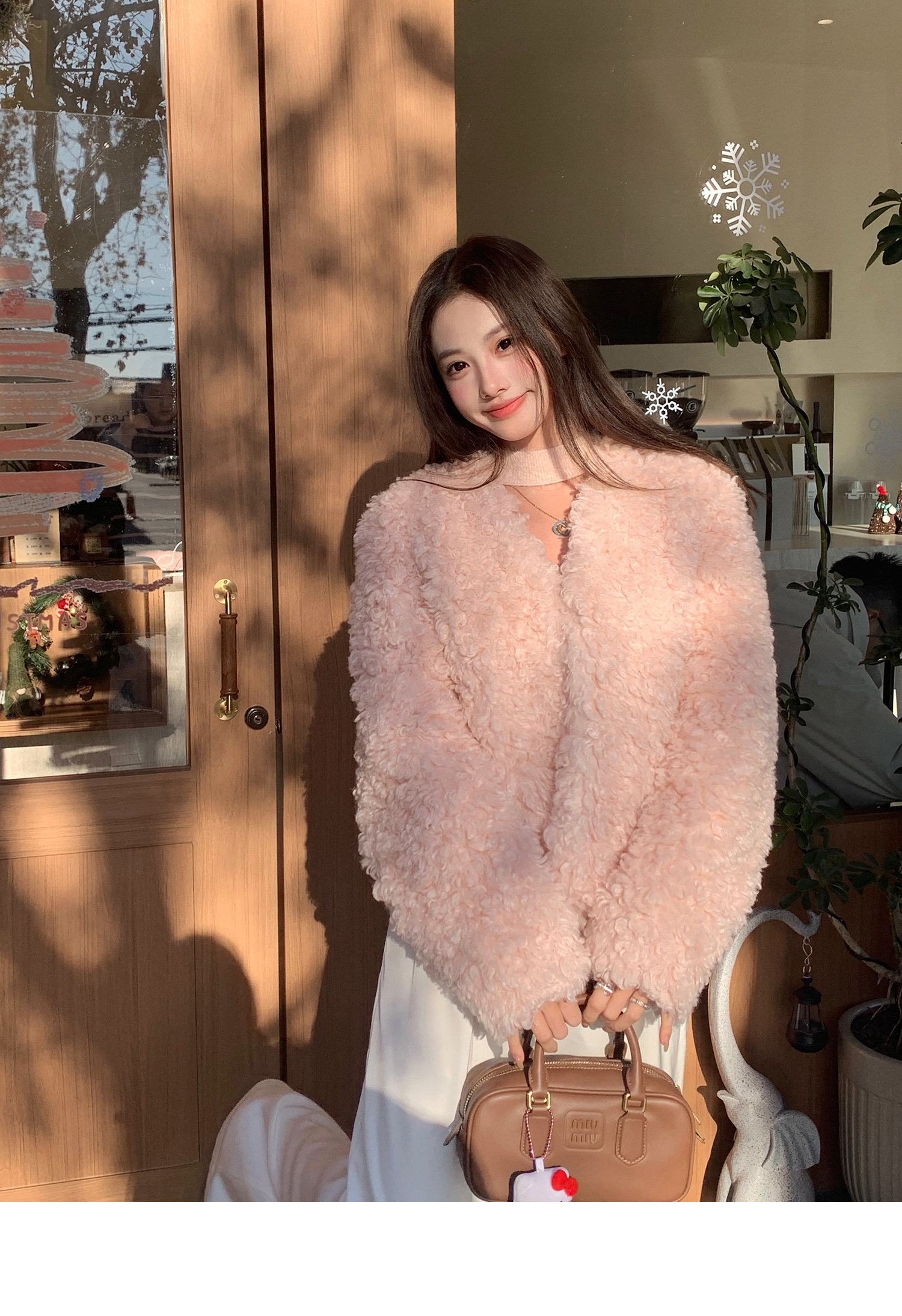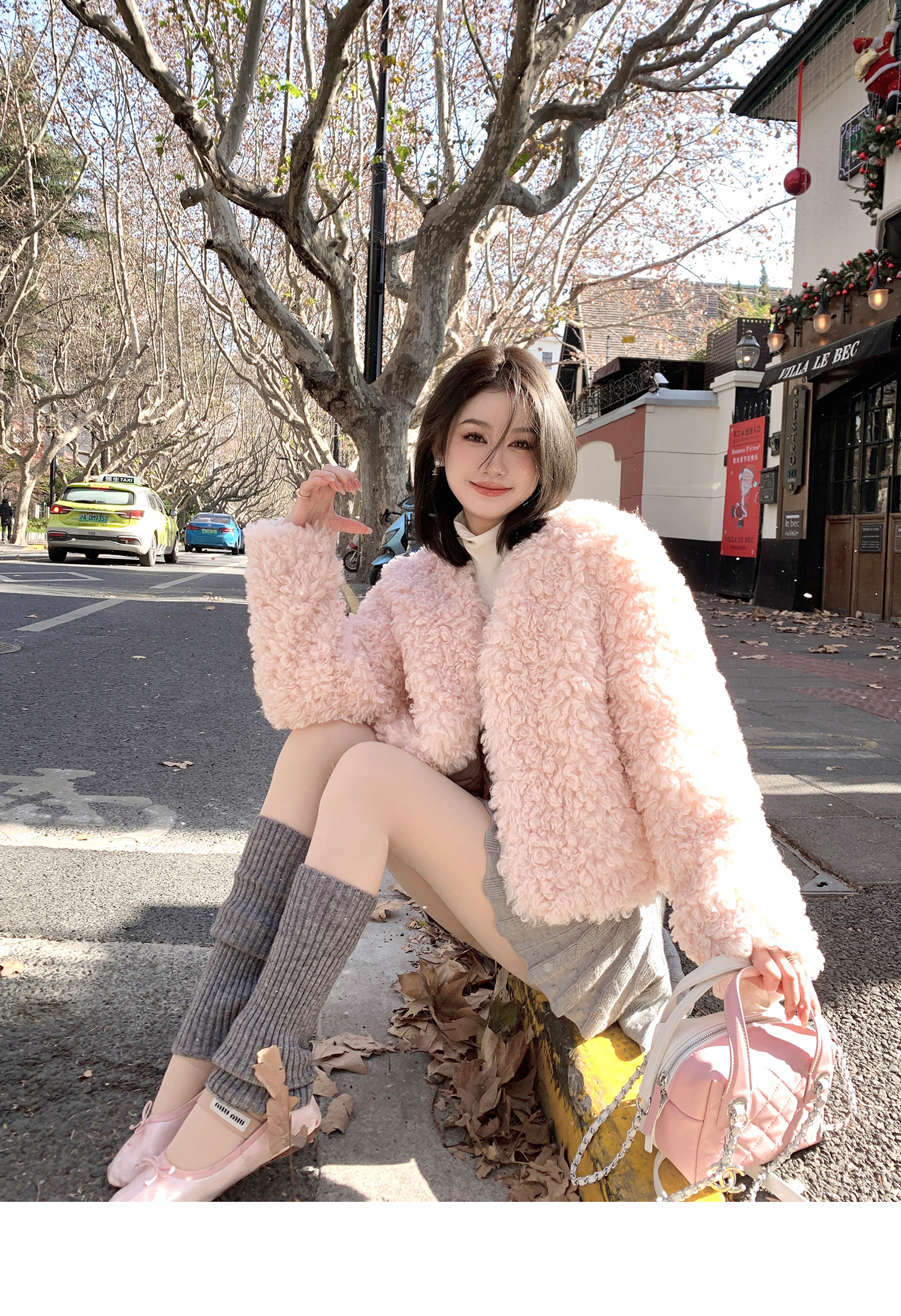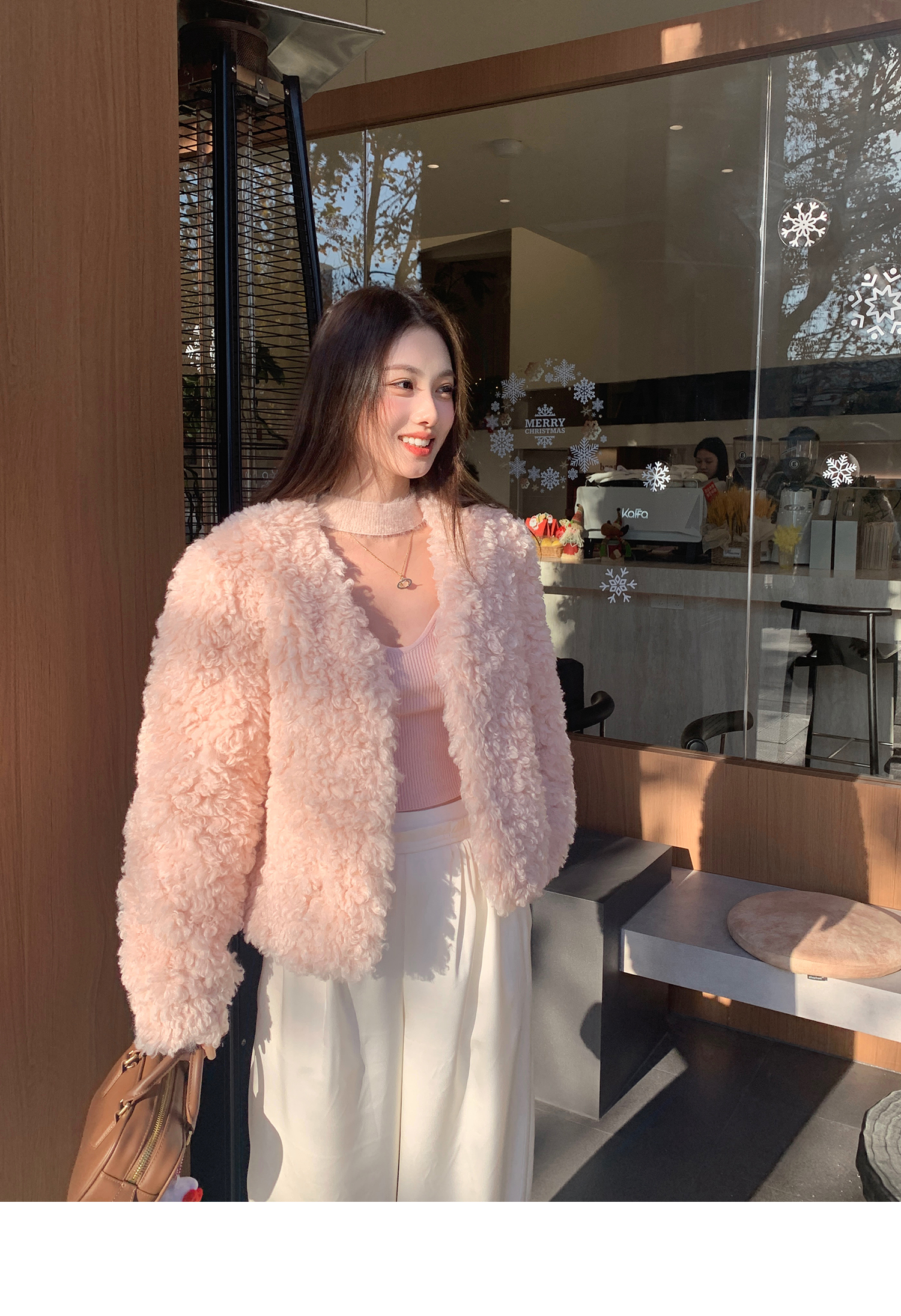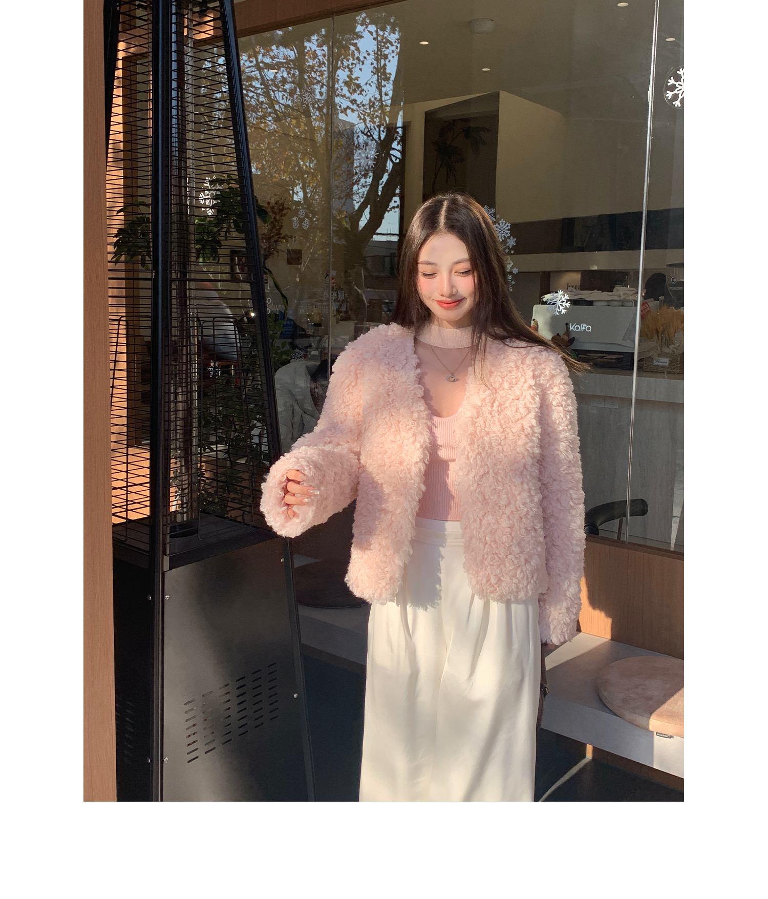 Pink Eco-Friendly Fur Coat - Women's Autumn/Winter Short Wool Curly Fit
