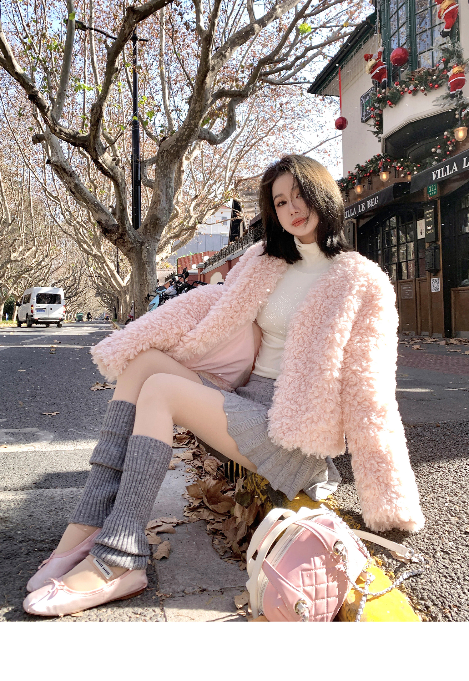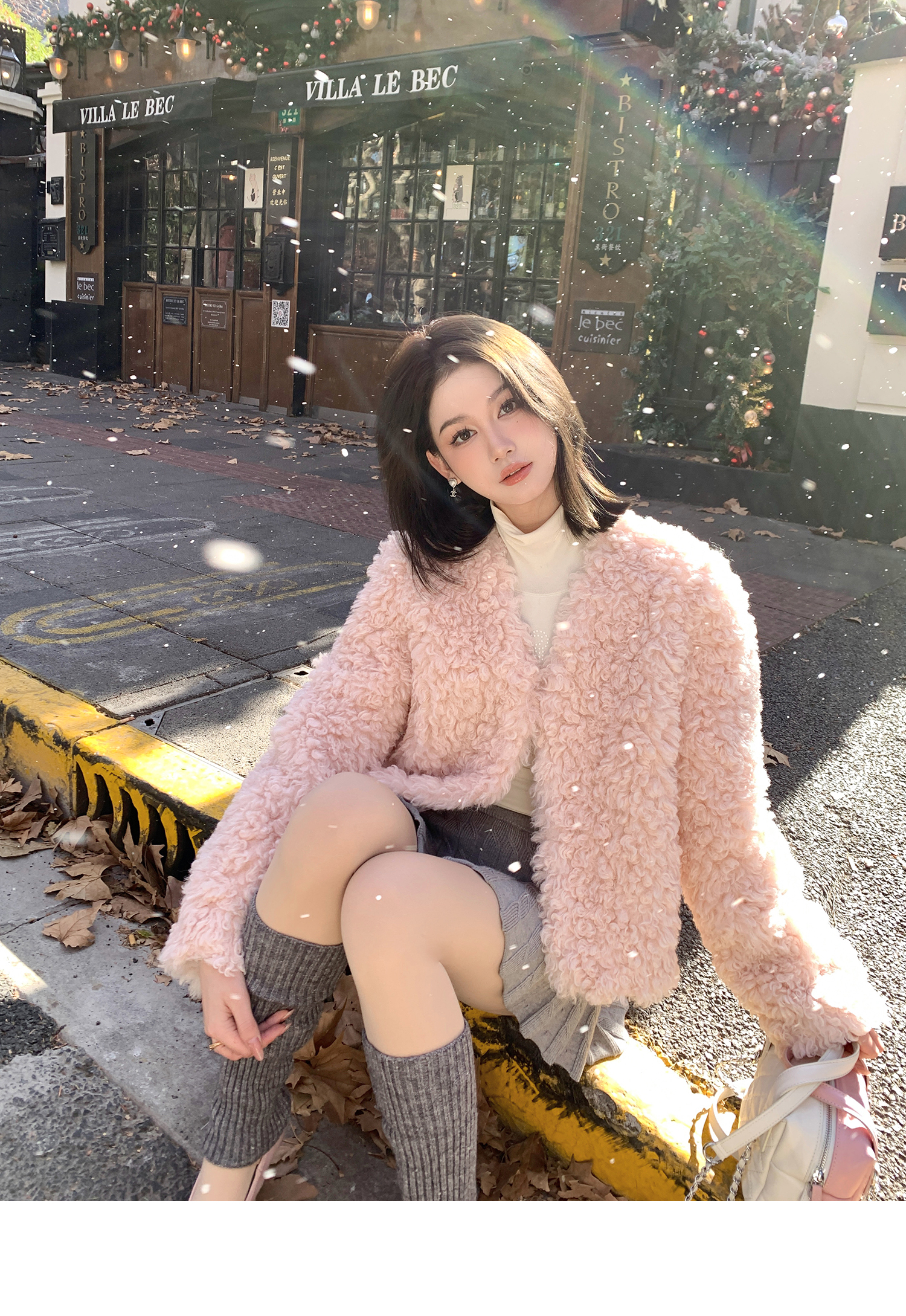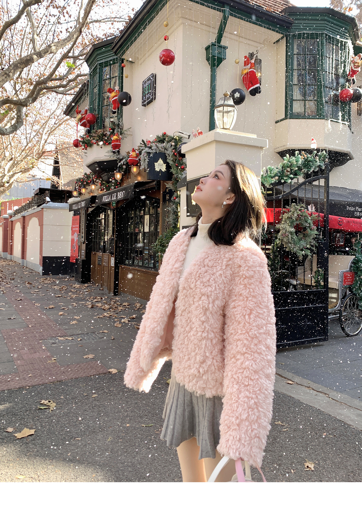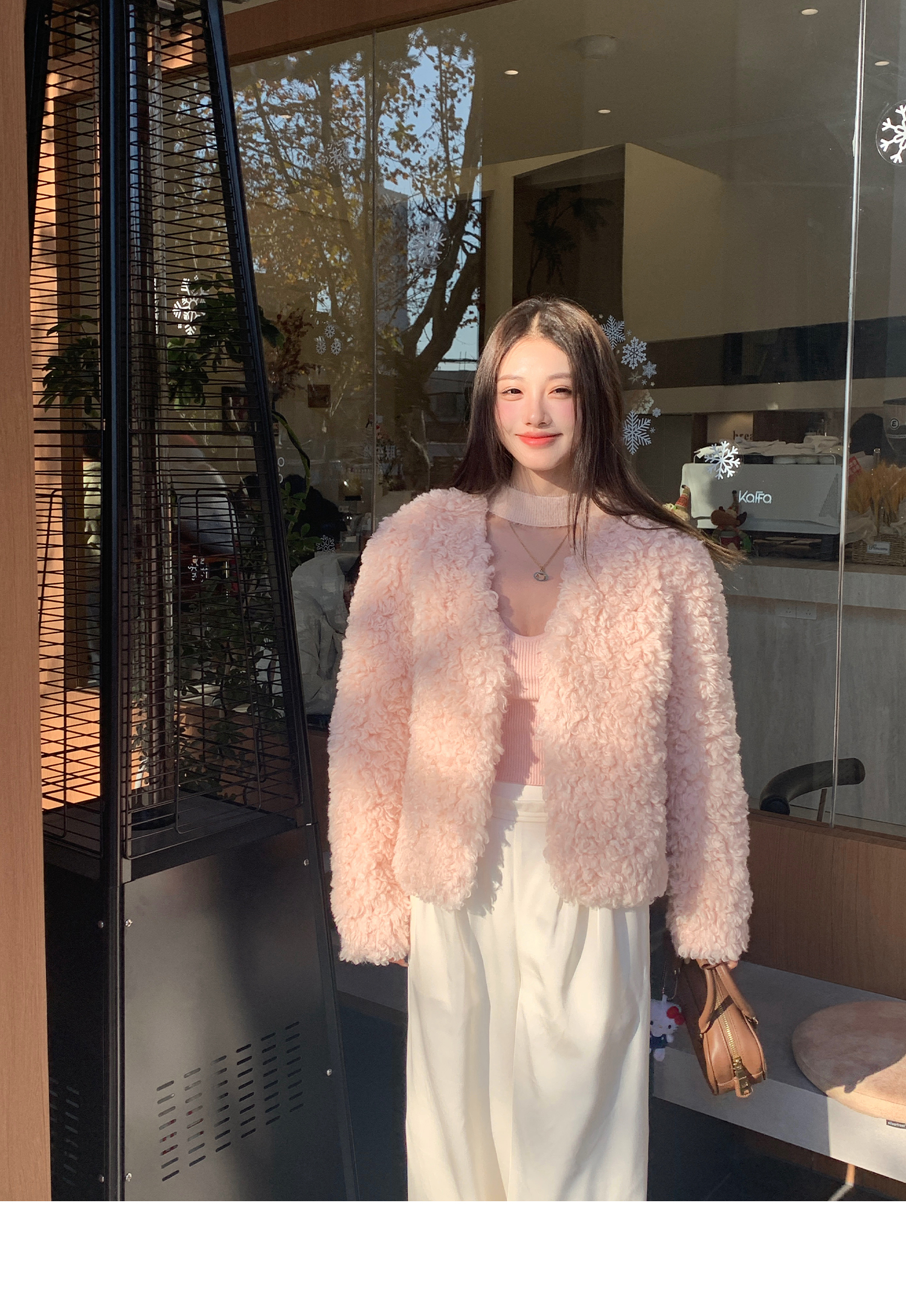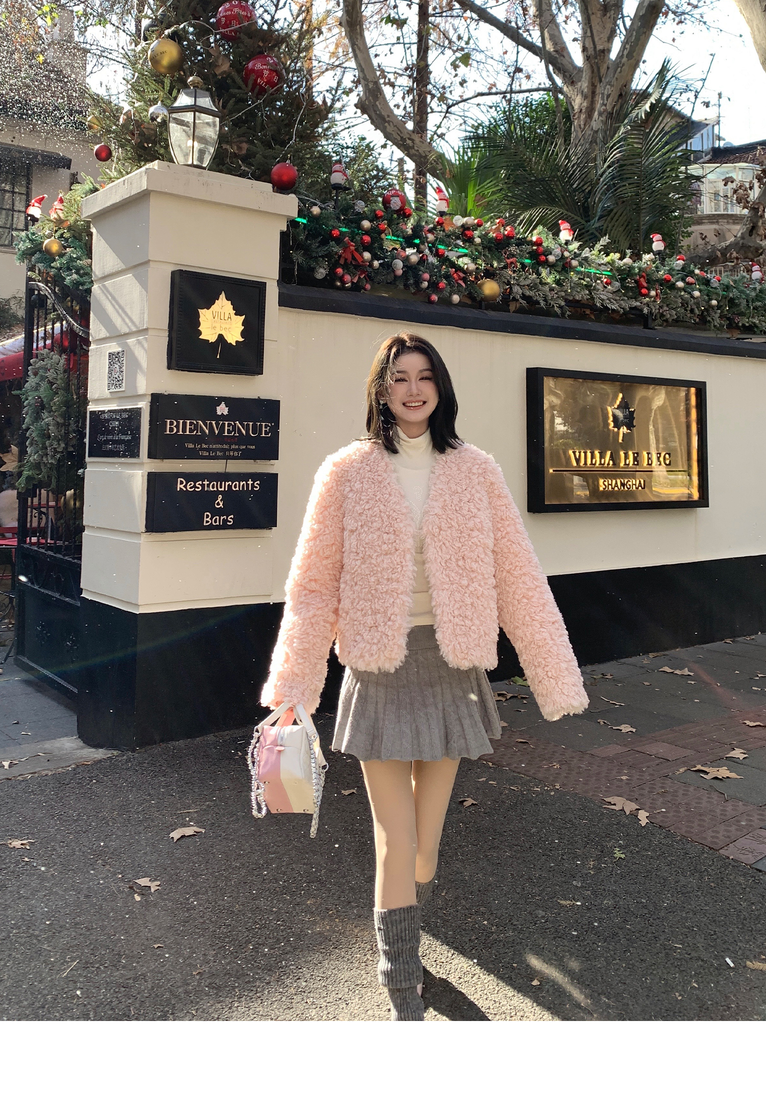 Pink Eco-Friendly Fur Coat - Women's Autumn/Winter Short Wool Curly Fit