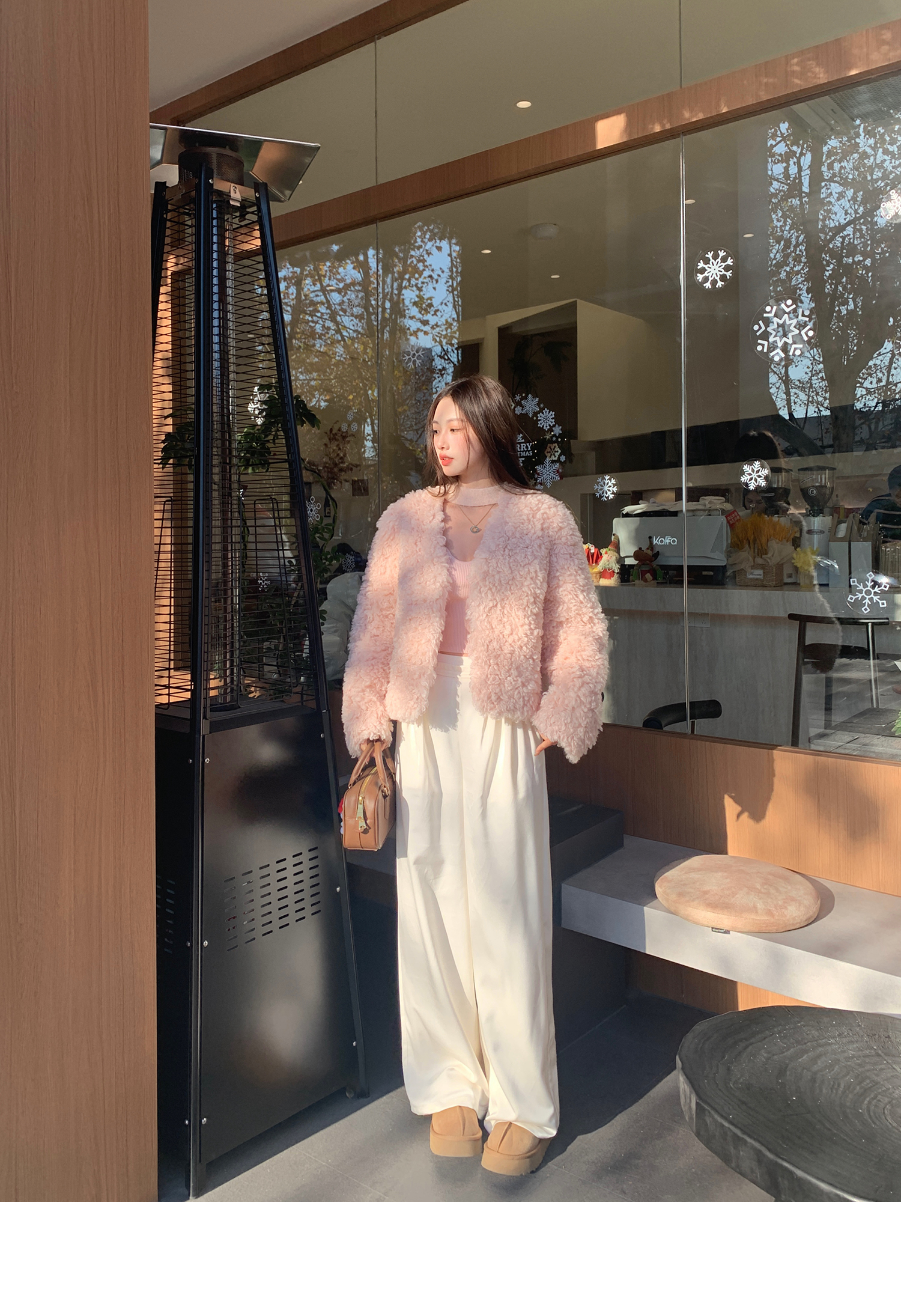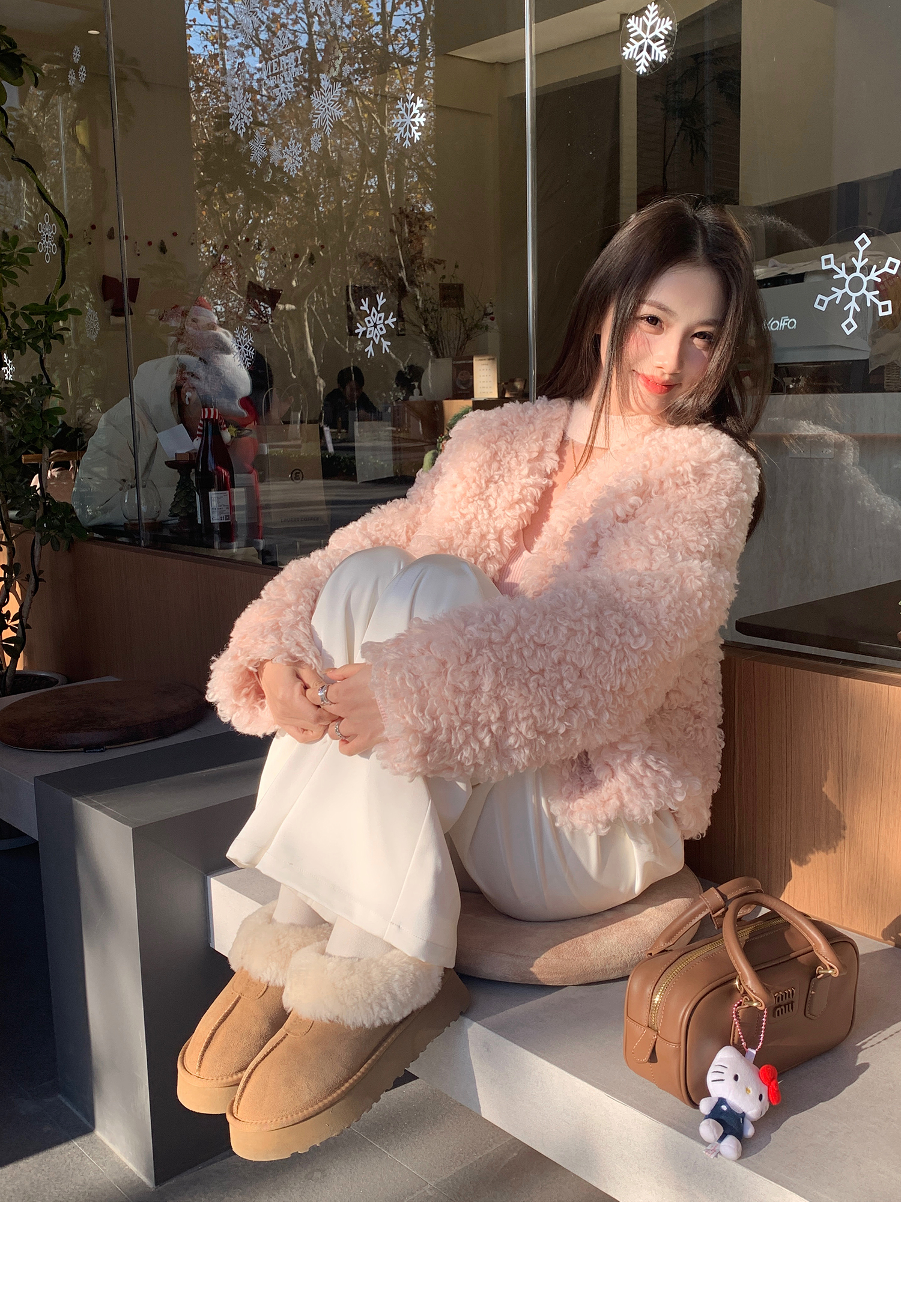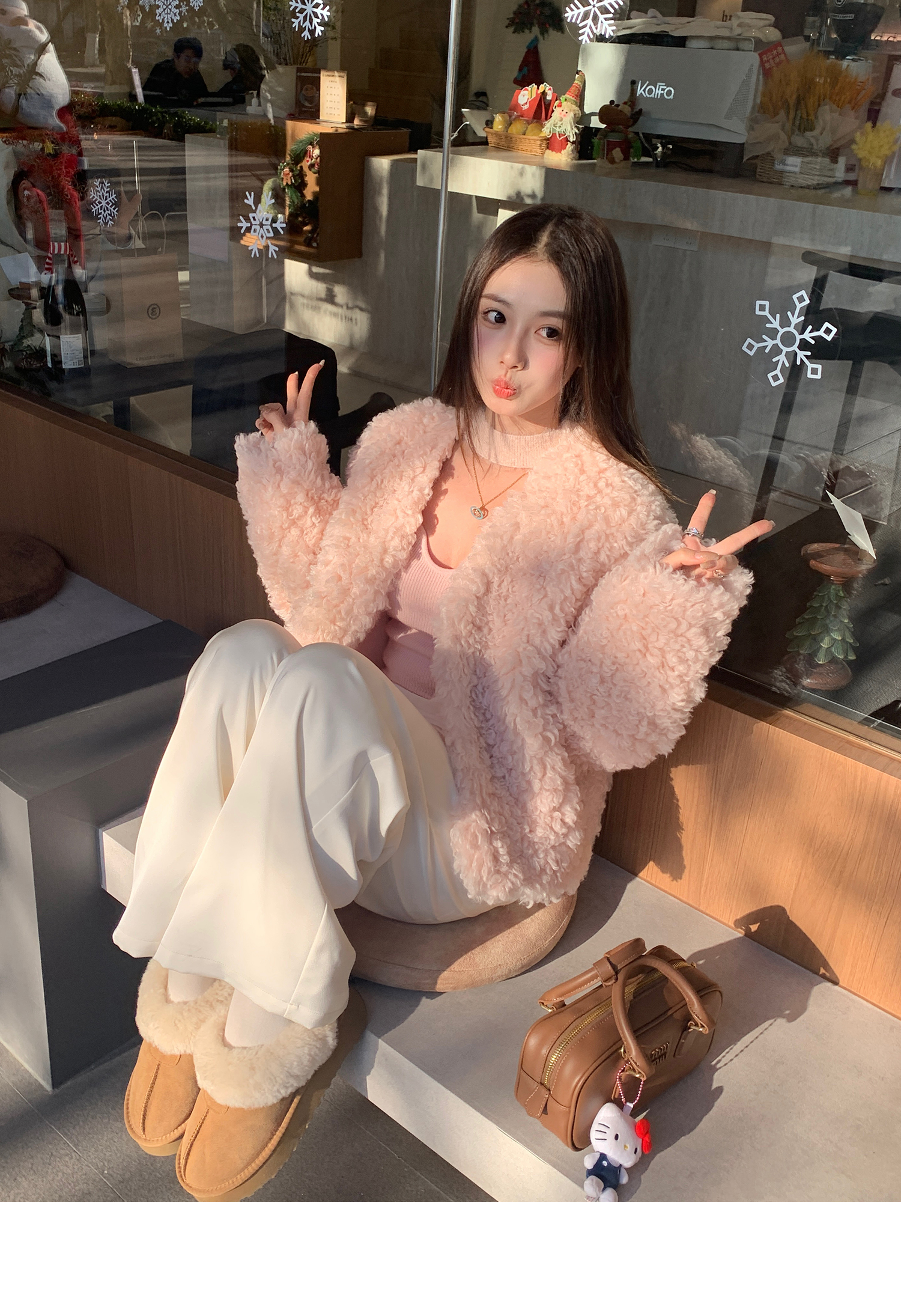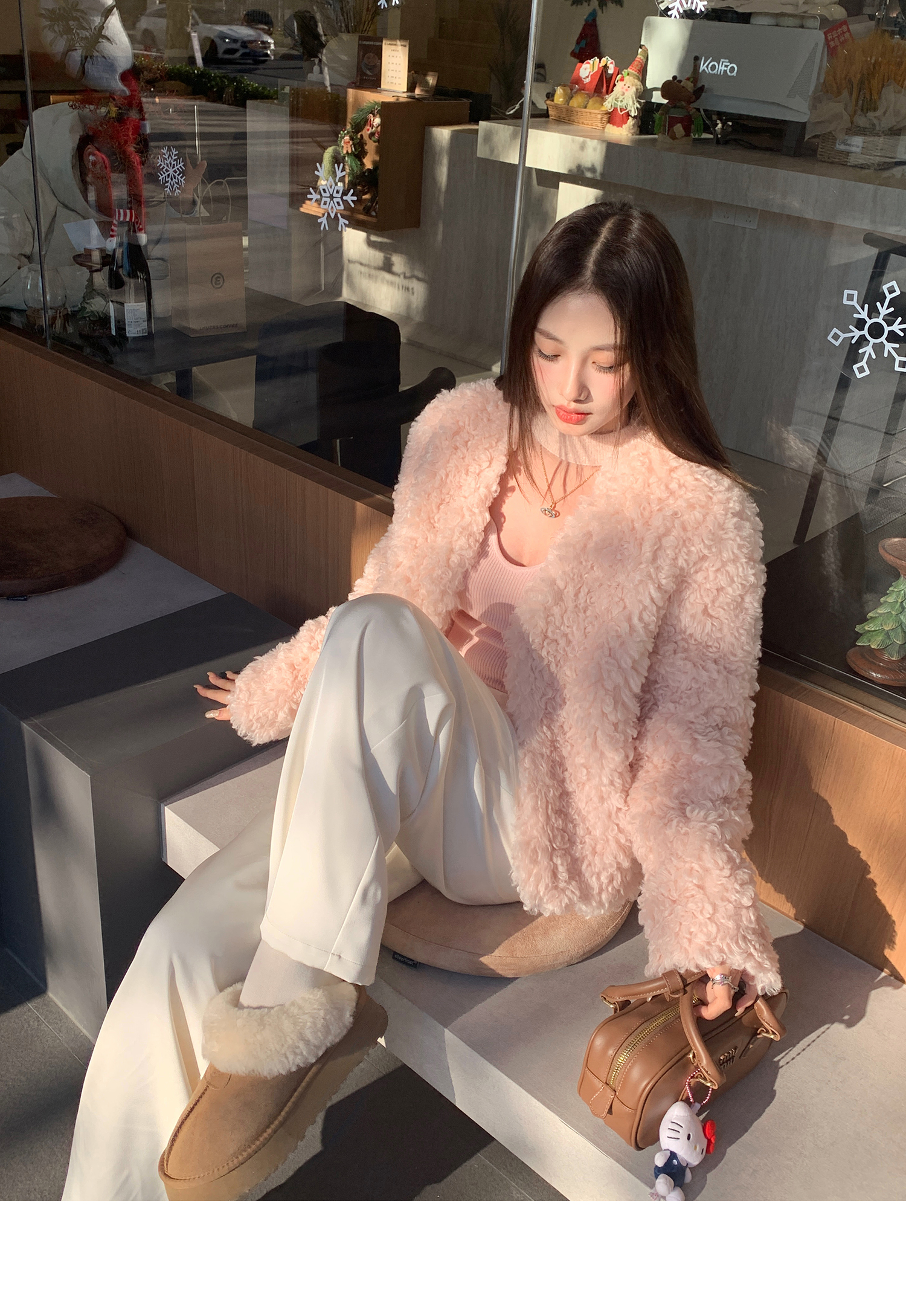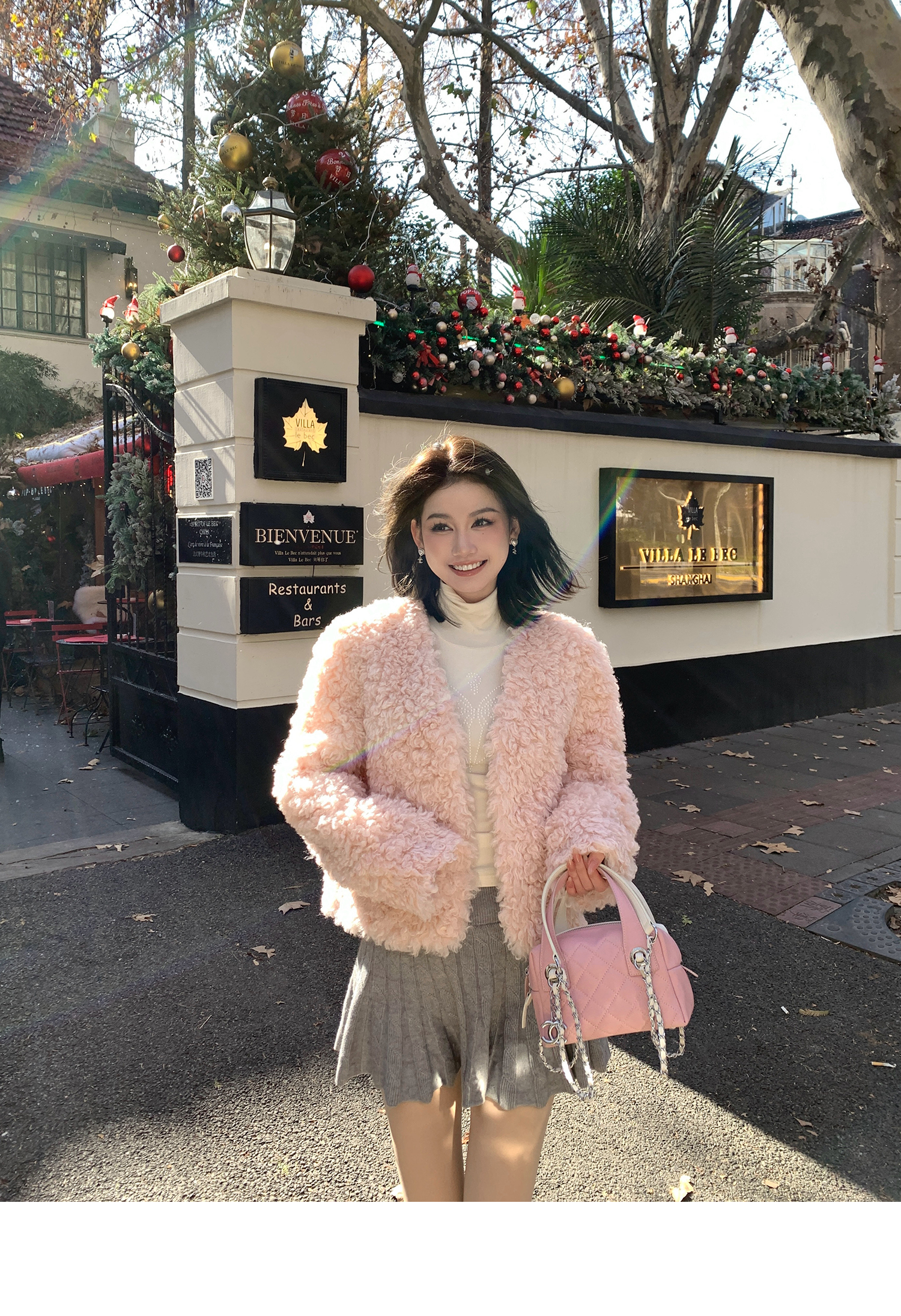 Pink Eco-Friendly Fur Coat - Women's Autumn/Winter Short Wool Curly Fit