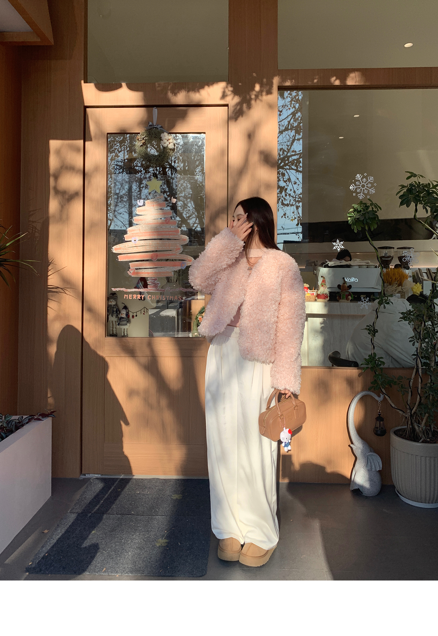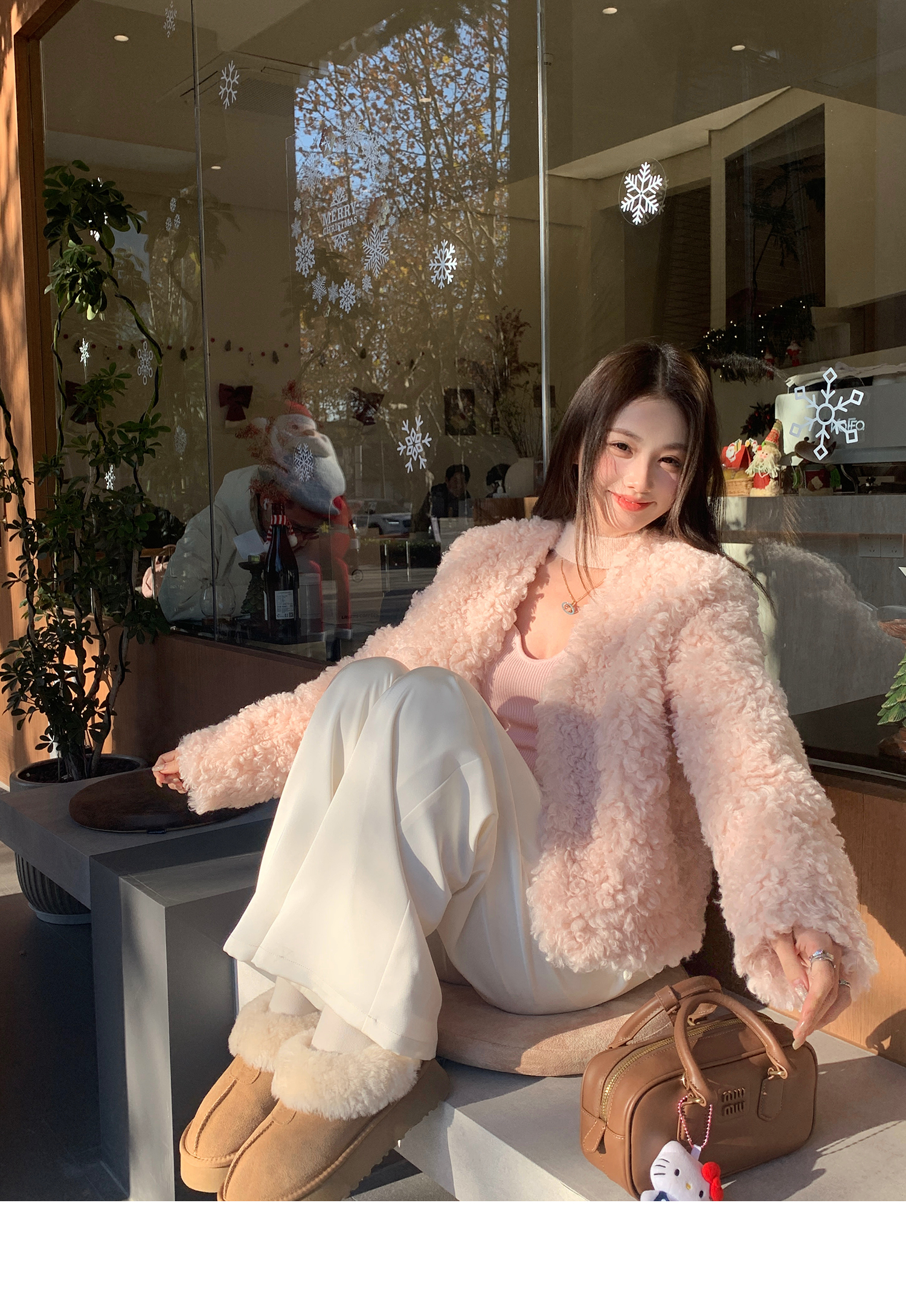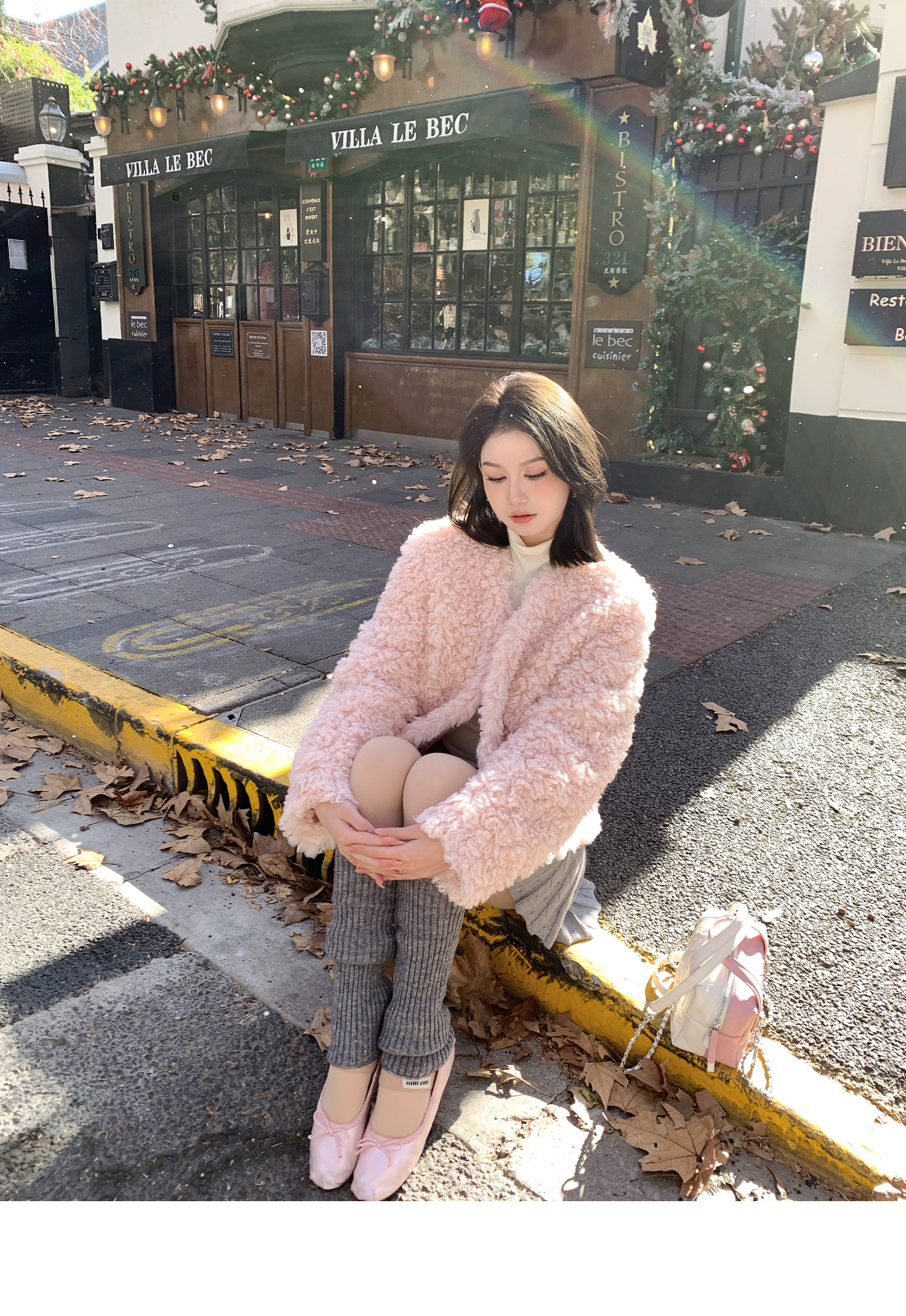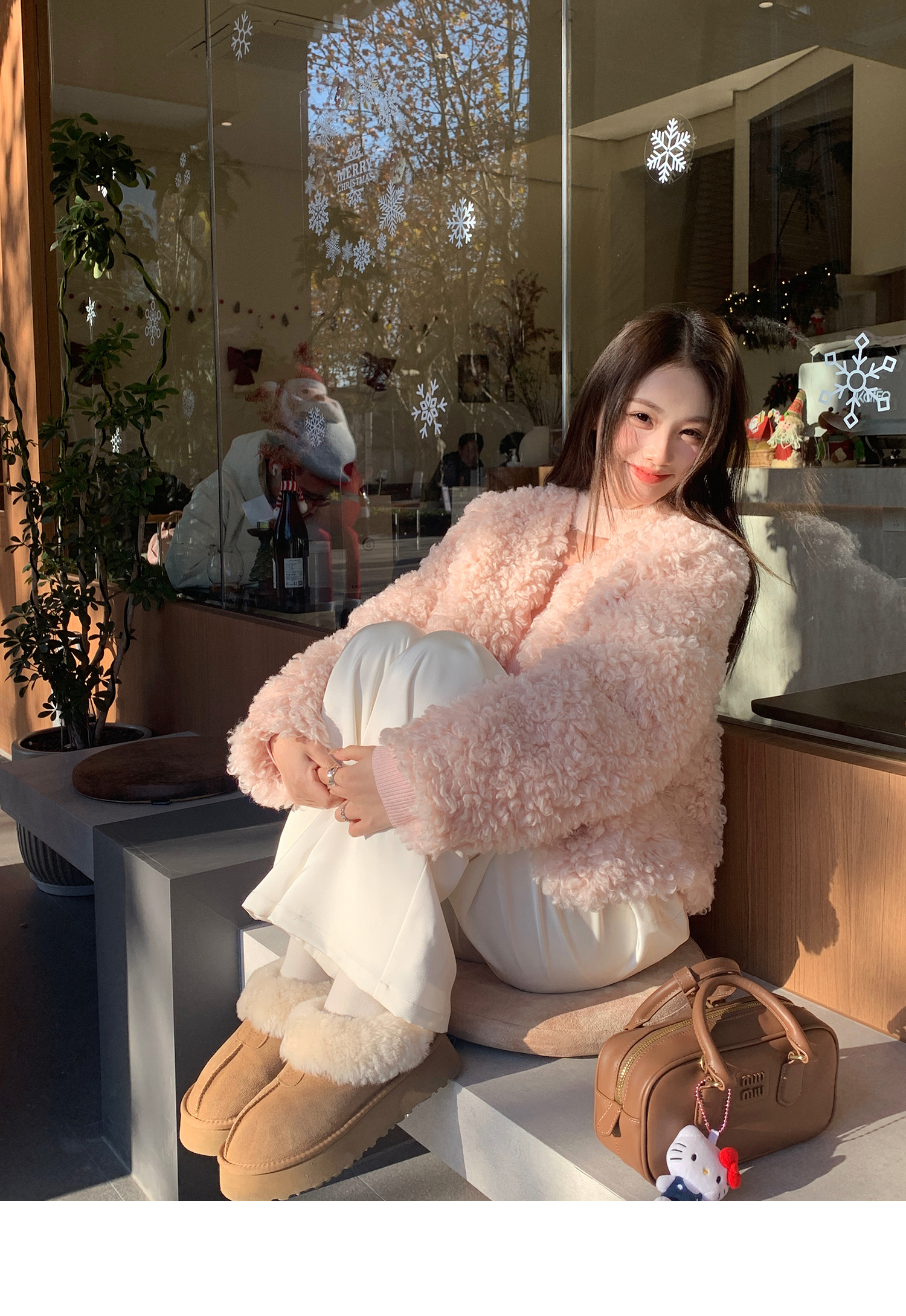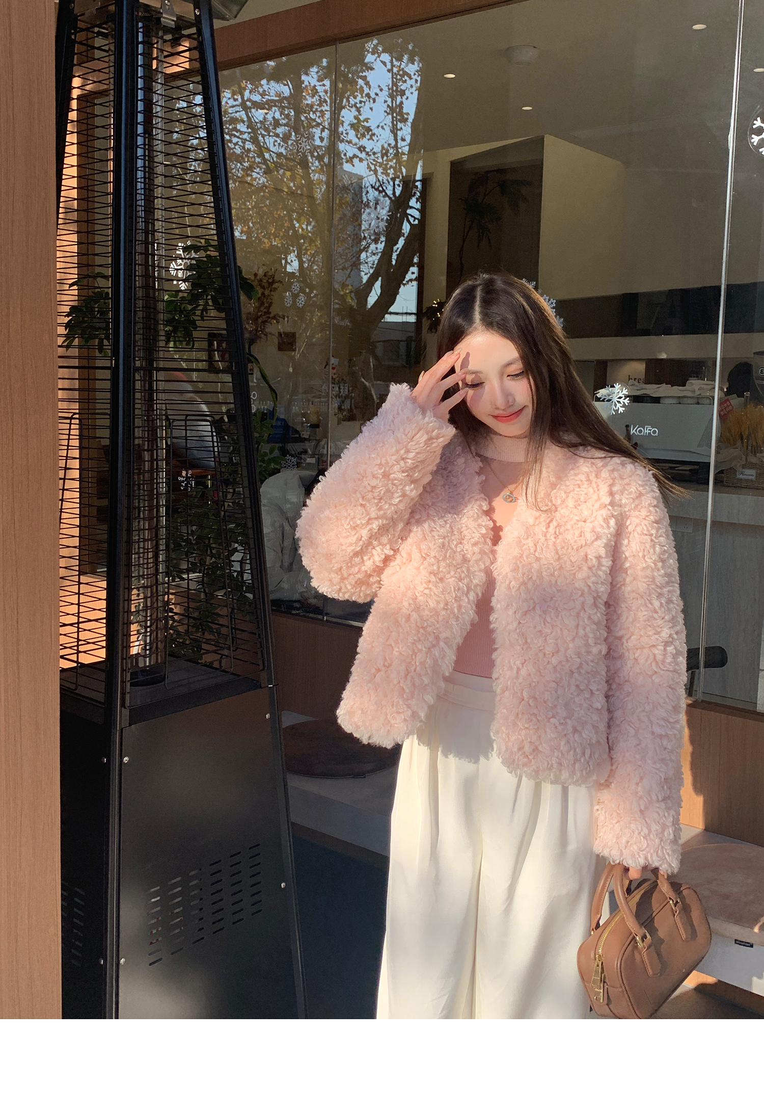 Pink Eco-Friendly Fur Coat - Women's Autumn/Winter Short Wool Curly Fit
