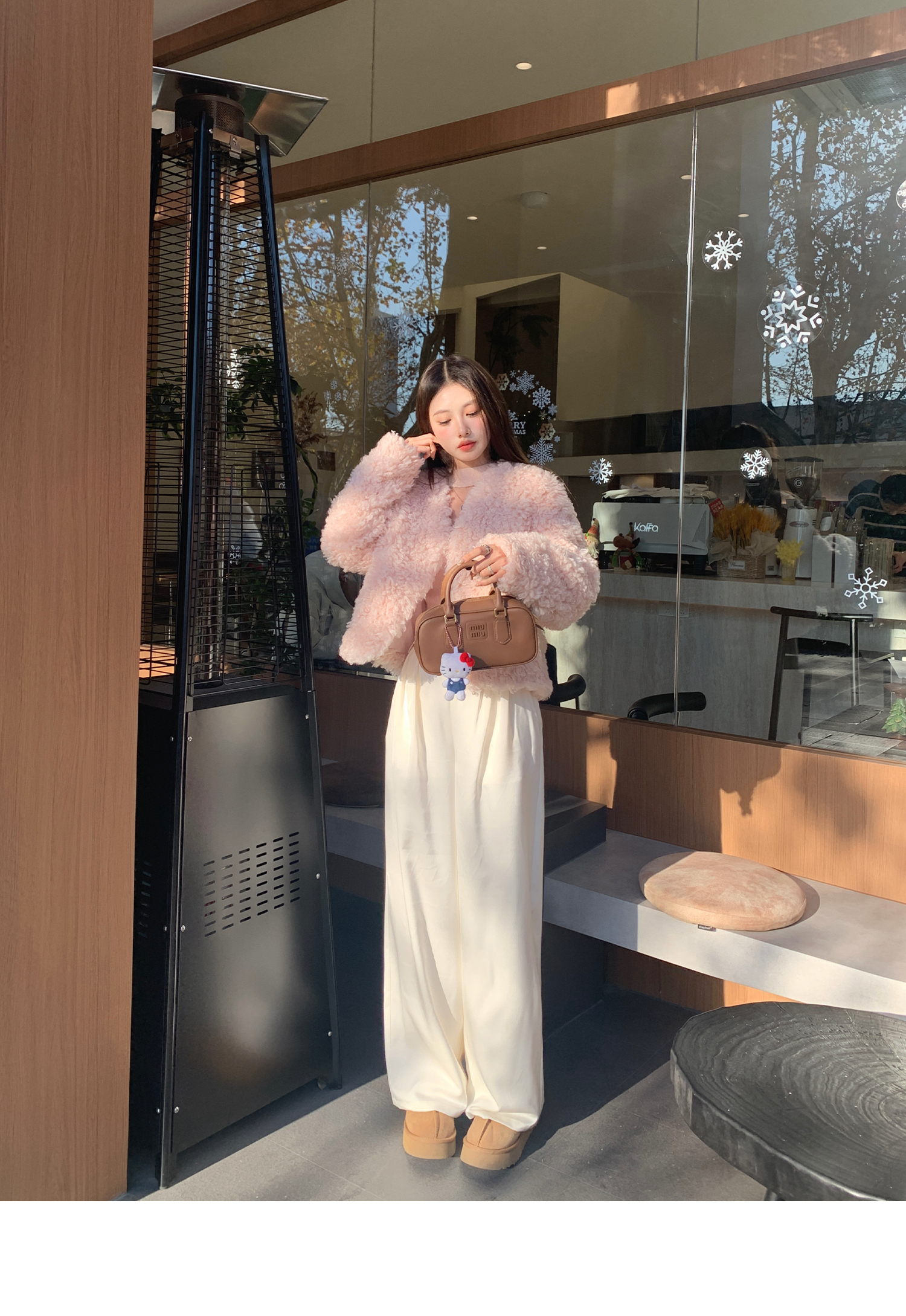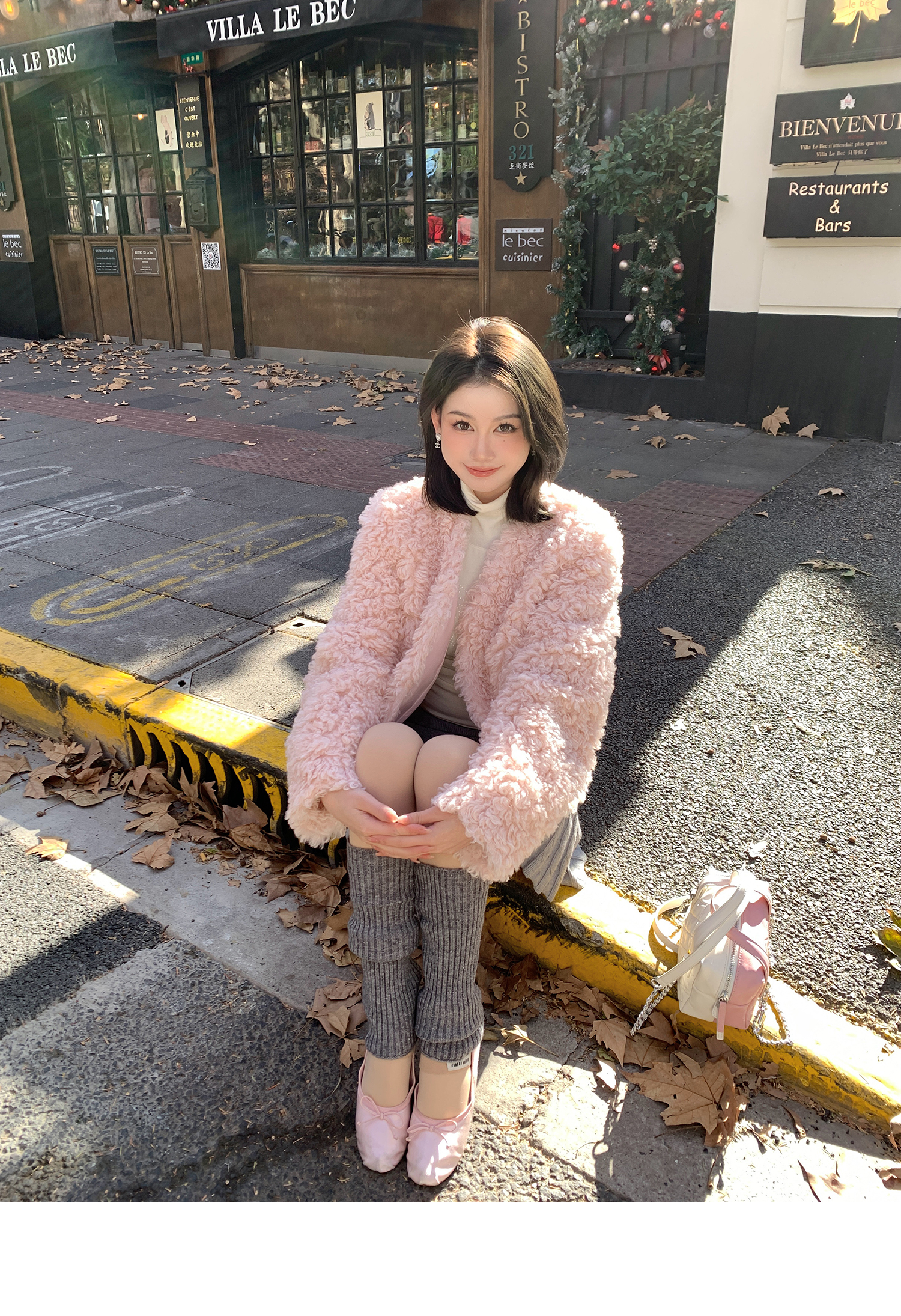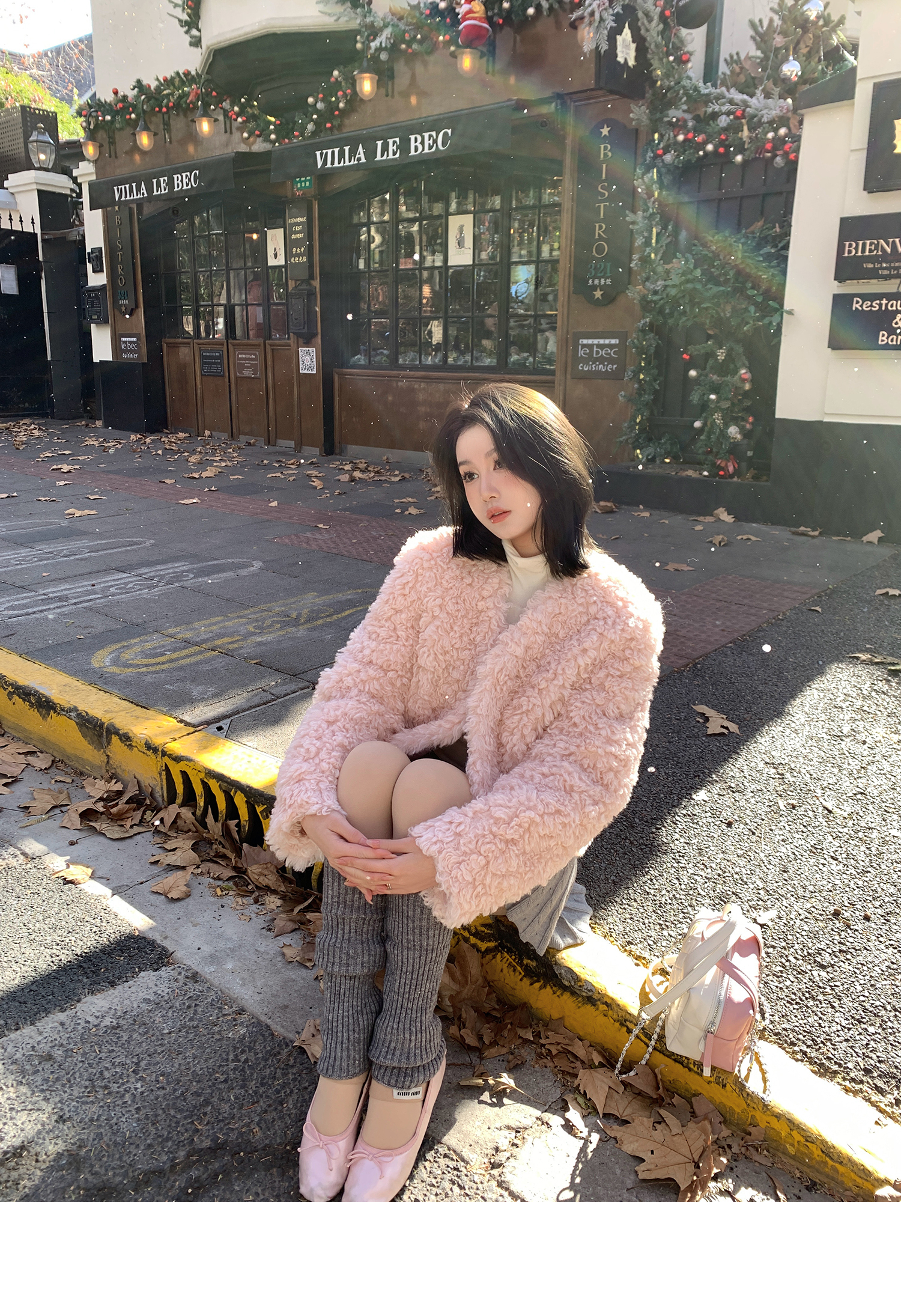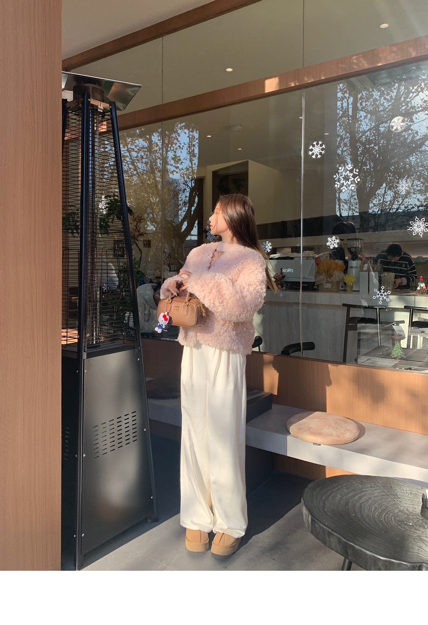 Pink Eco-Friendly Fur Coat - Women's Autumn/Winter Short Wool Curly Fit