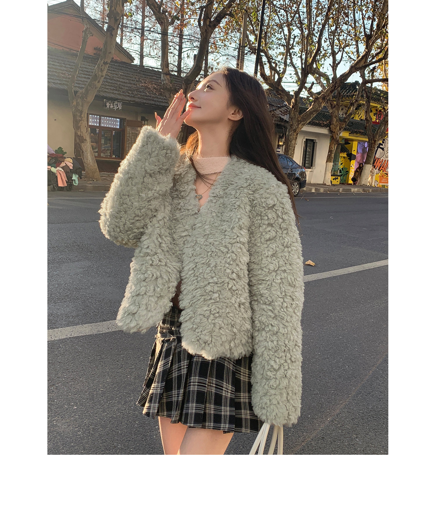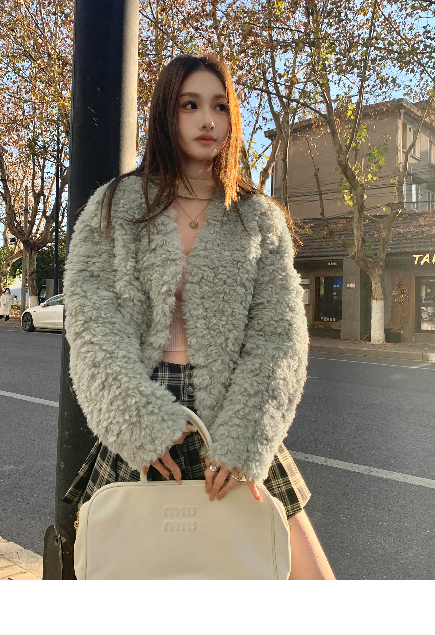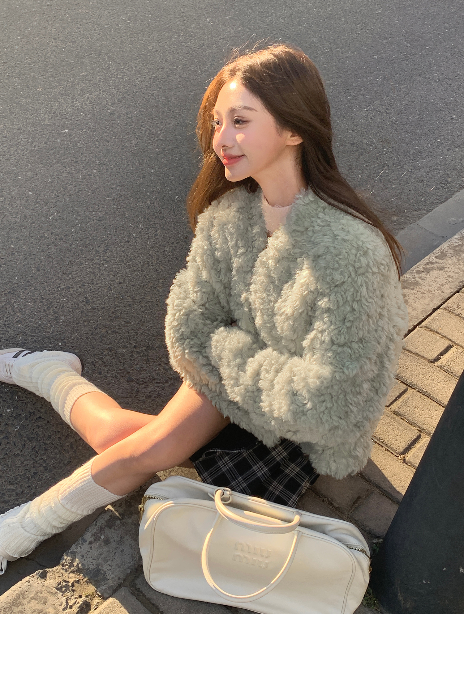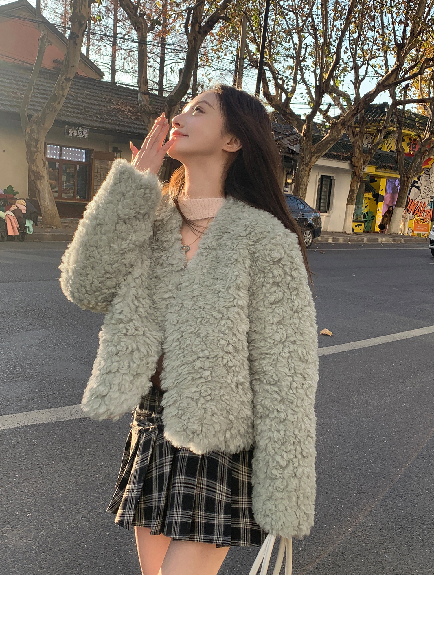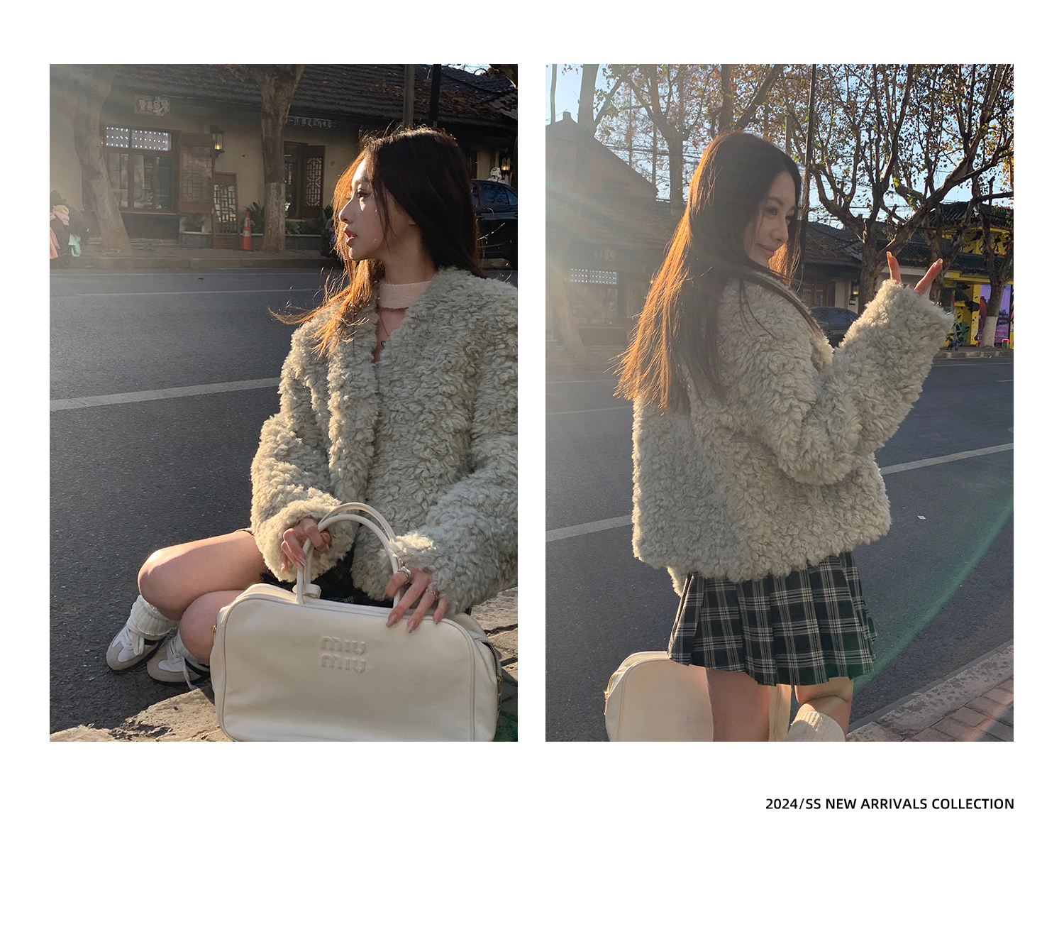 Pink Eco-Friendly Fur Coat - Women's Autumn/Winter Short Wool Curly Fit