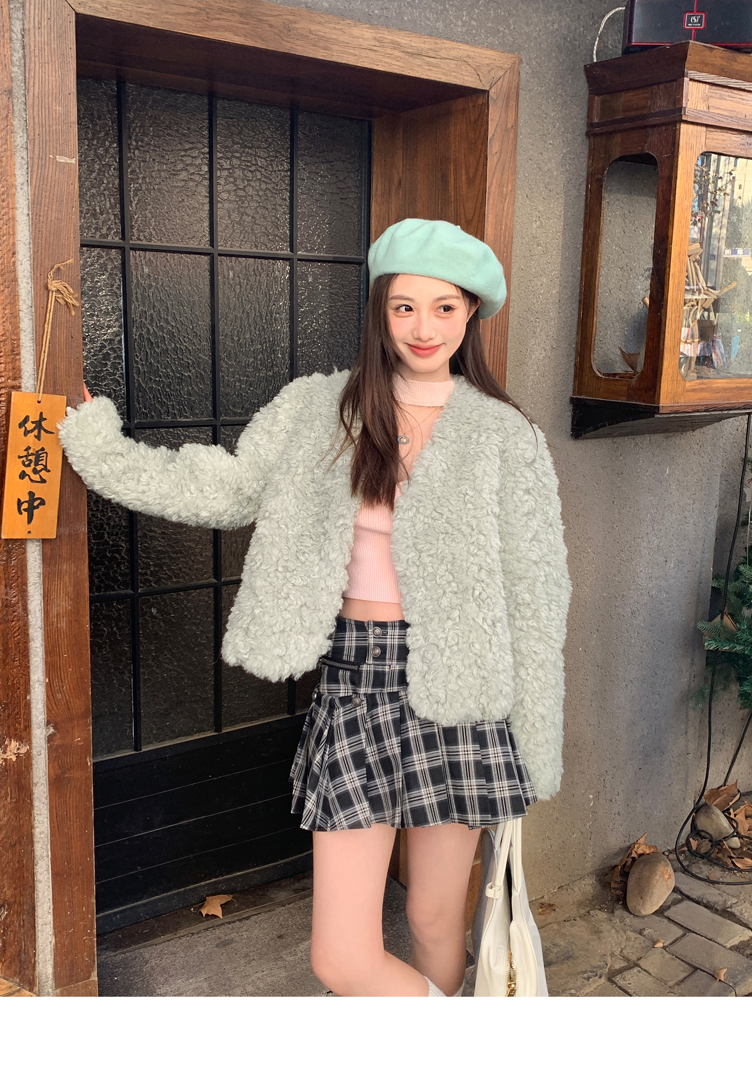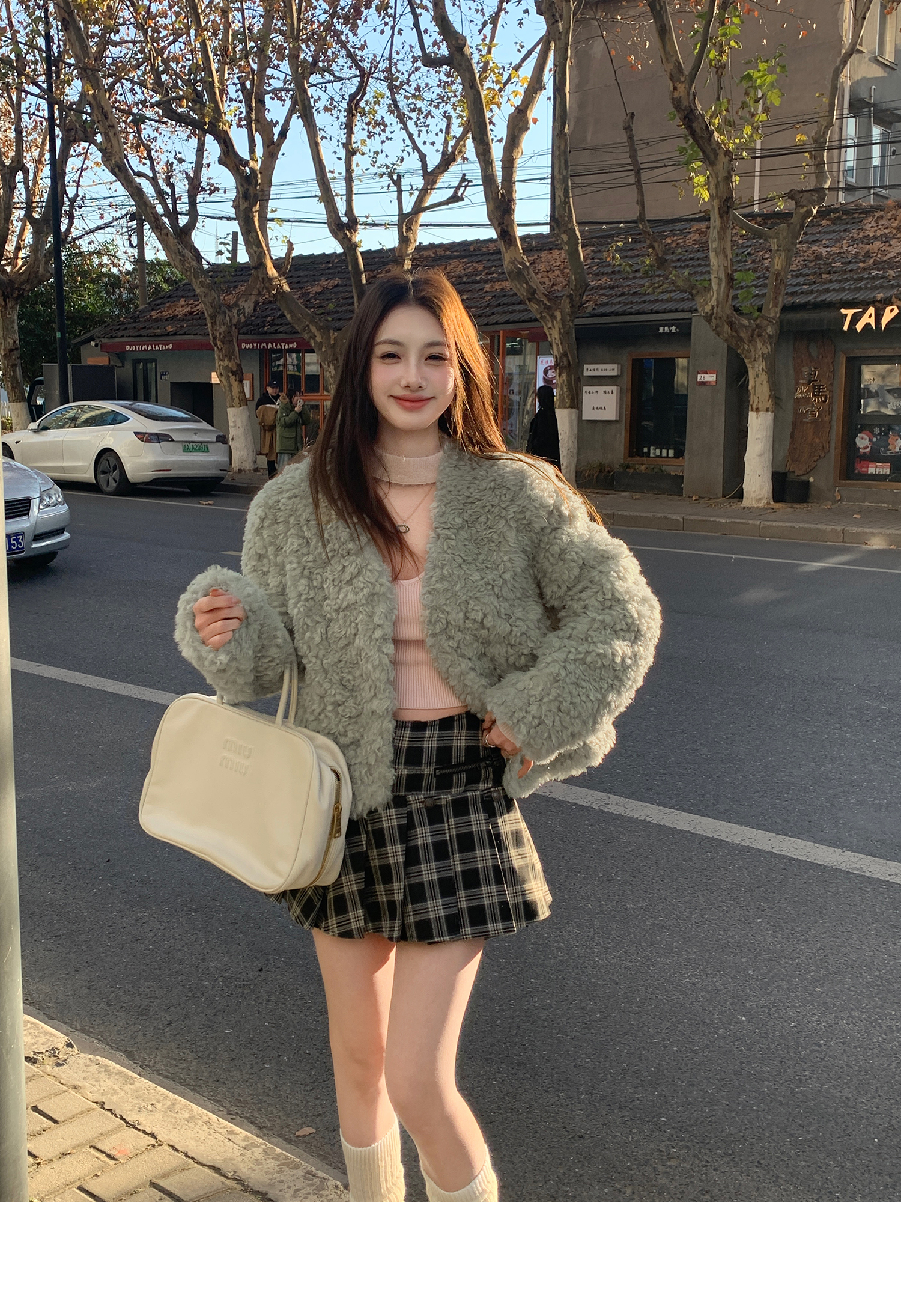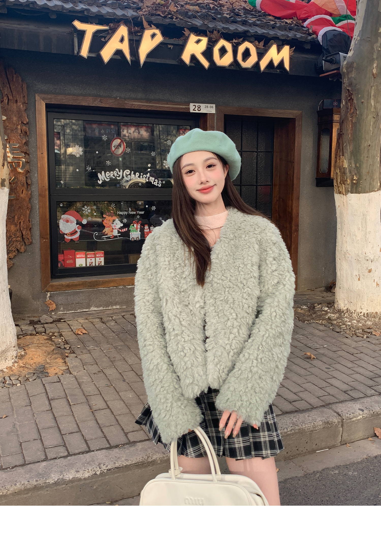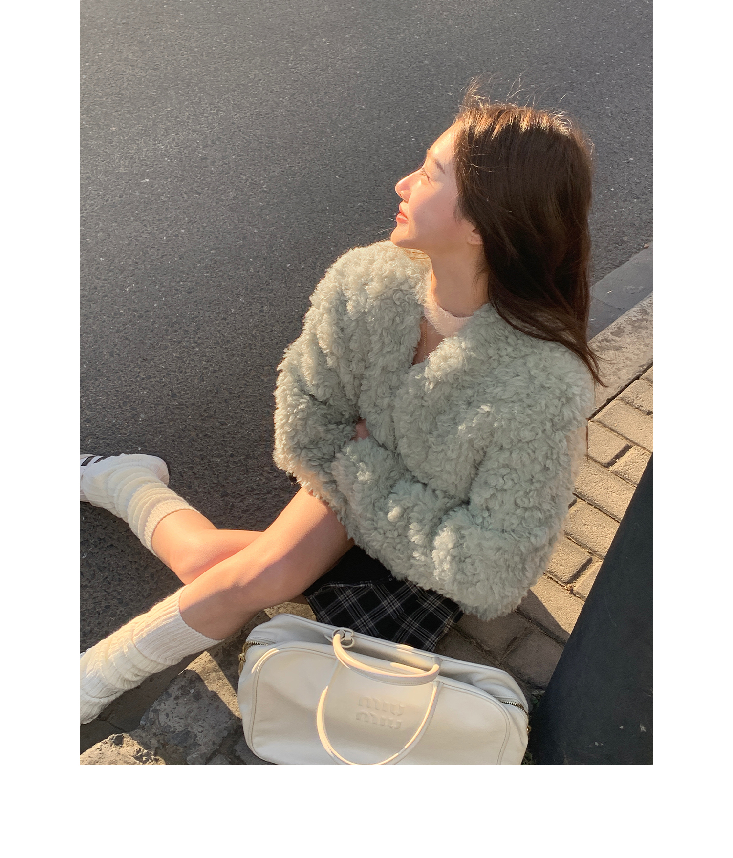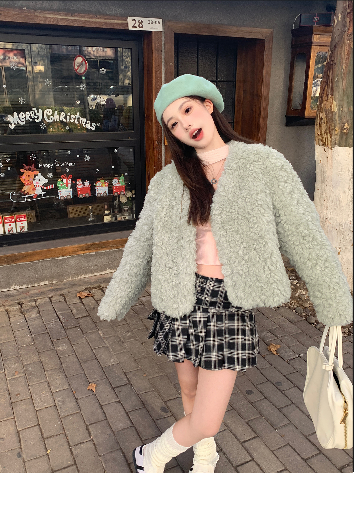 Pink Eco-Friendly Fur Coat - Women's Autumn/Winter Short Wool Curly Fit