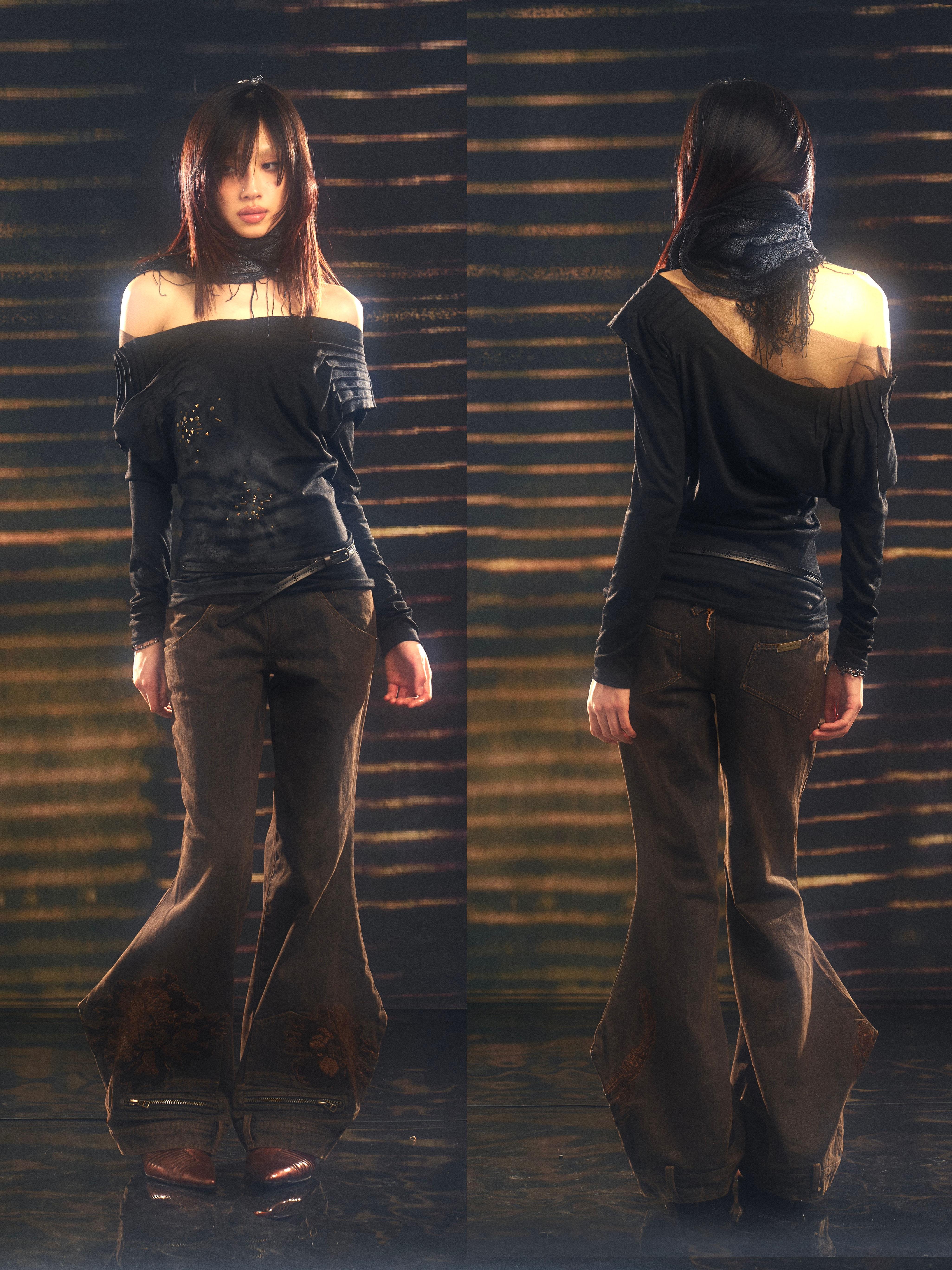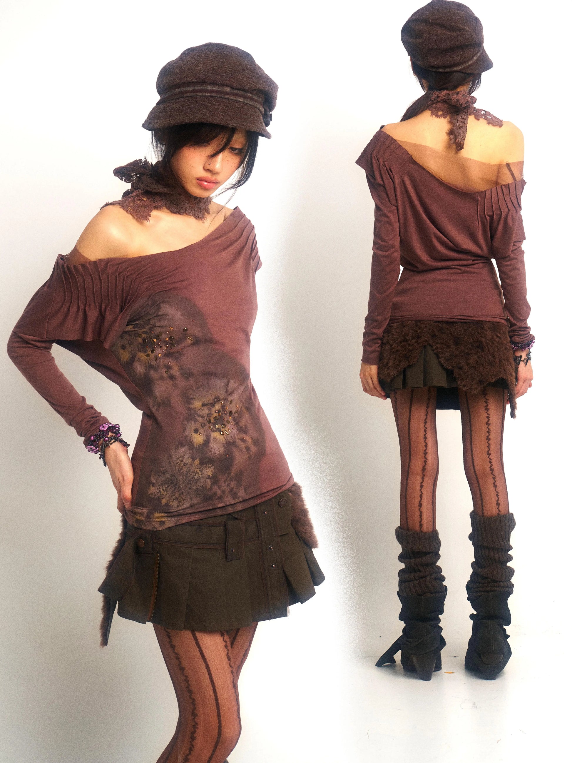 Metallic Swing Neck Printed Top – Retro Chic Fit