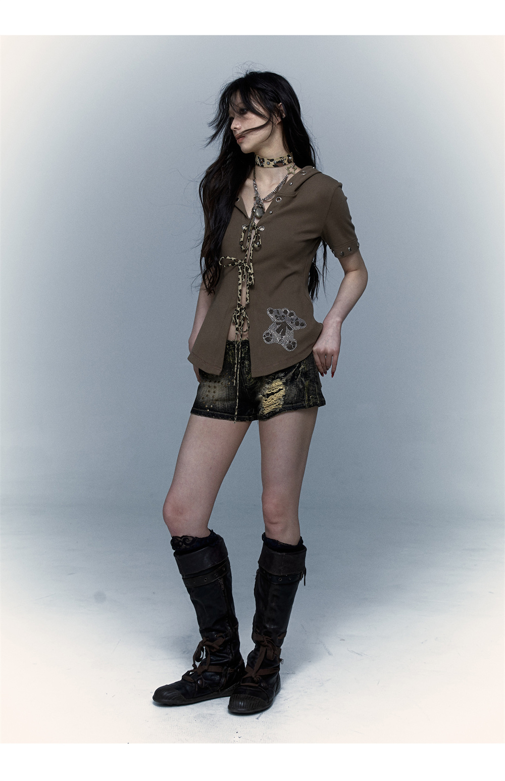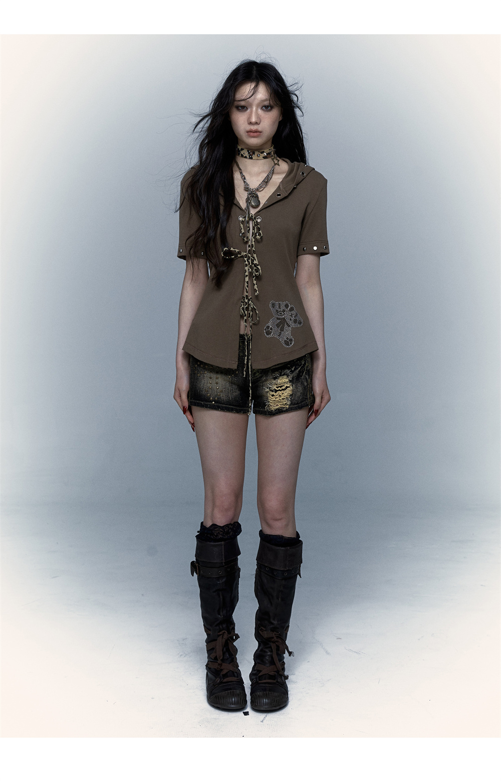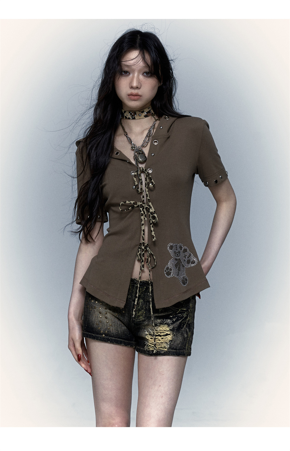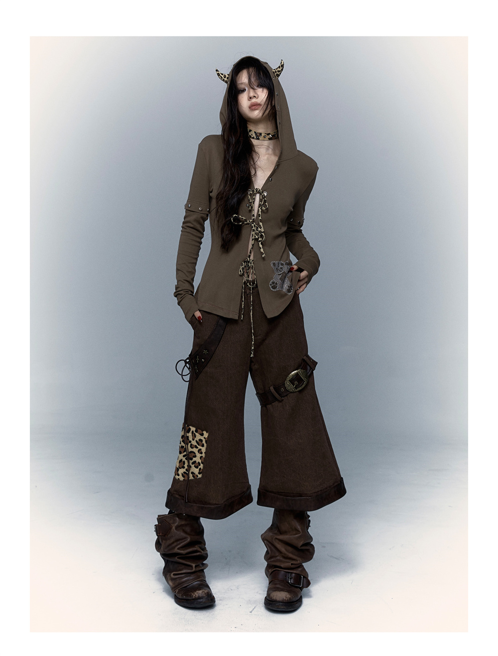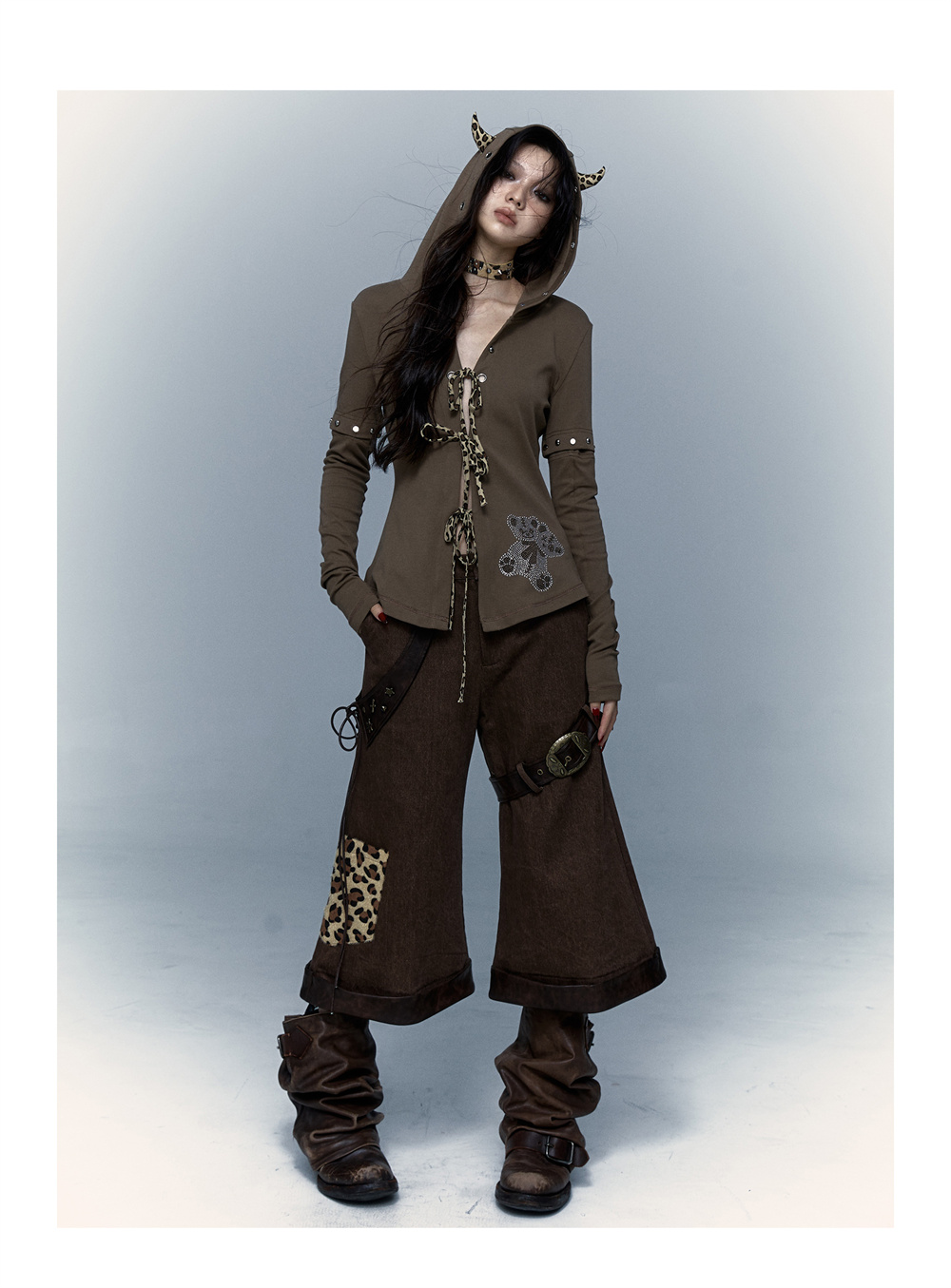 Devil Horn Bear Hoodie | Punk Hot Girl Detachable 롱 슬리브 T-shirt