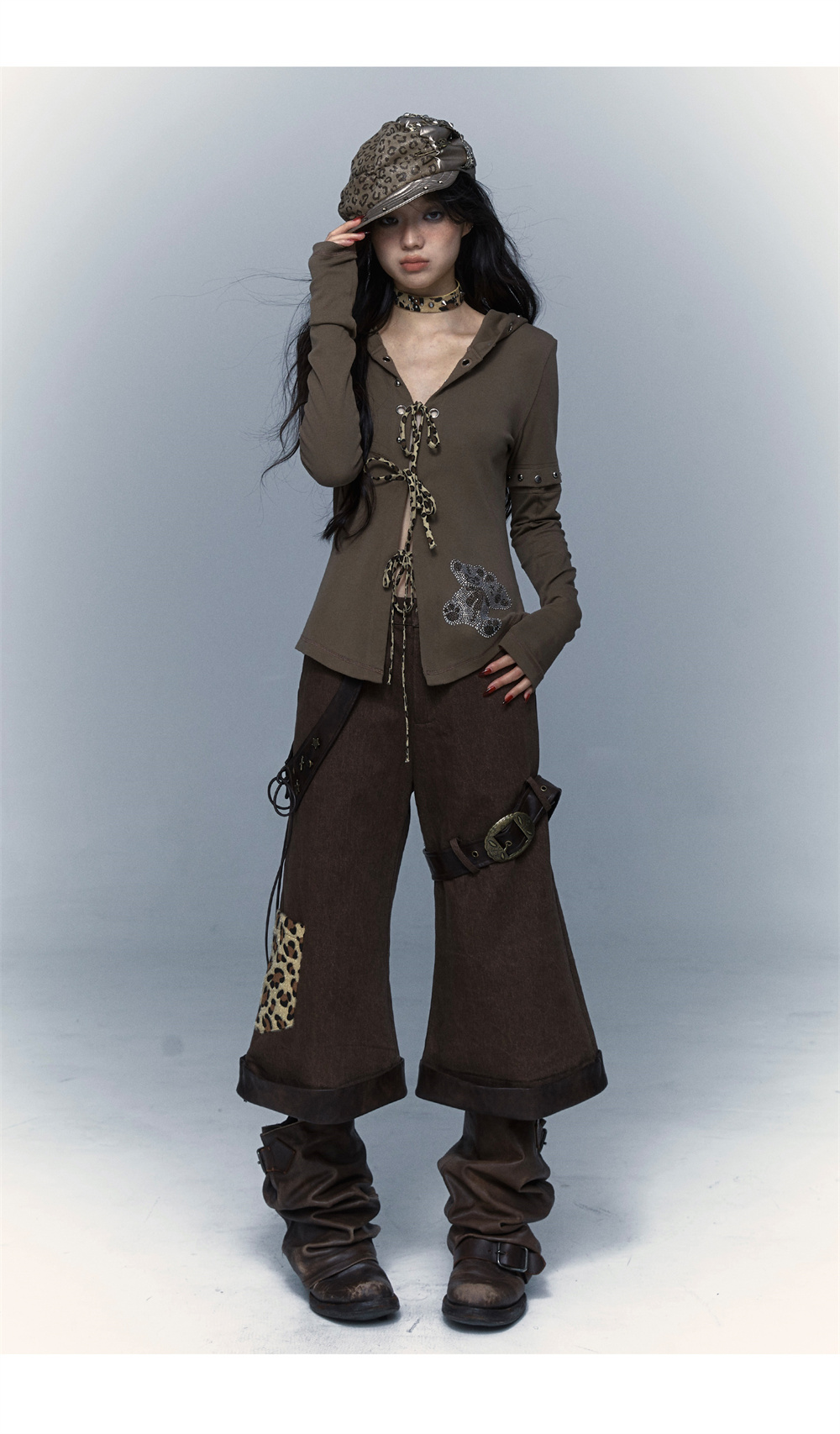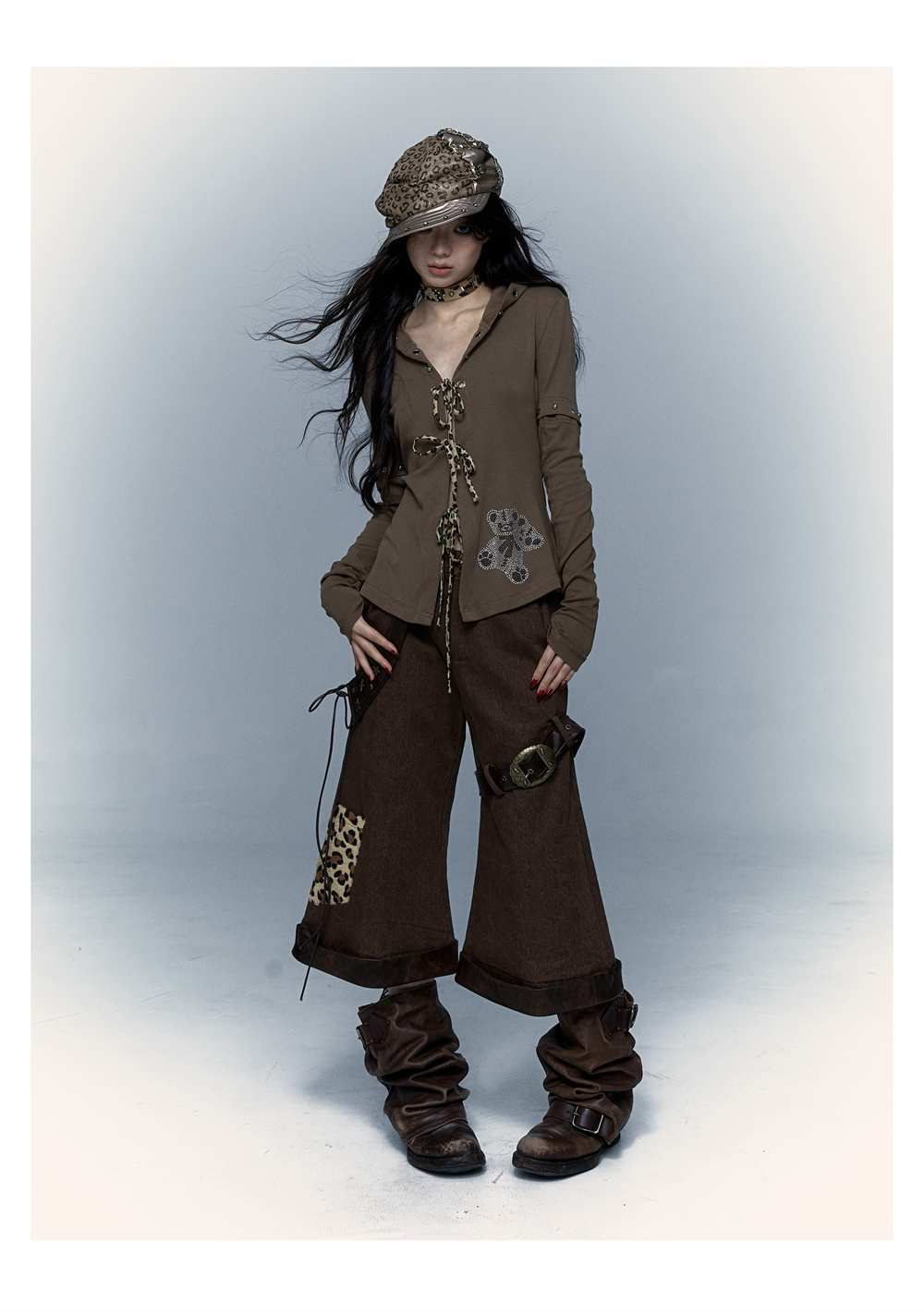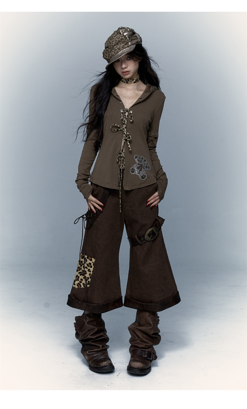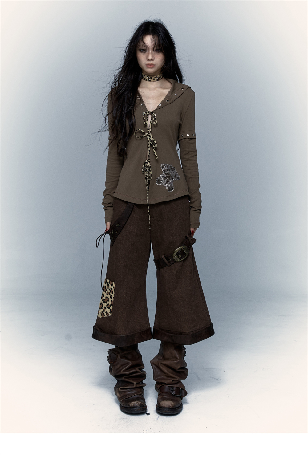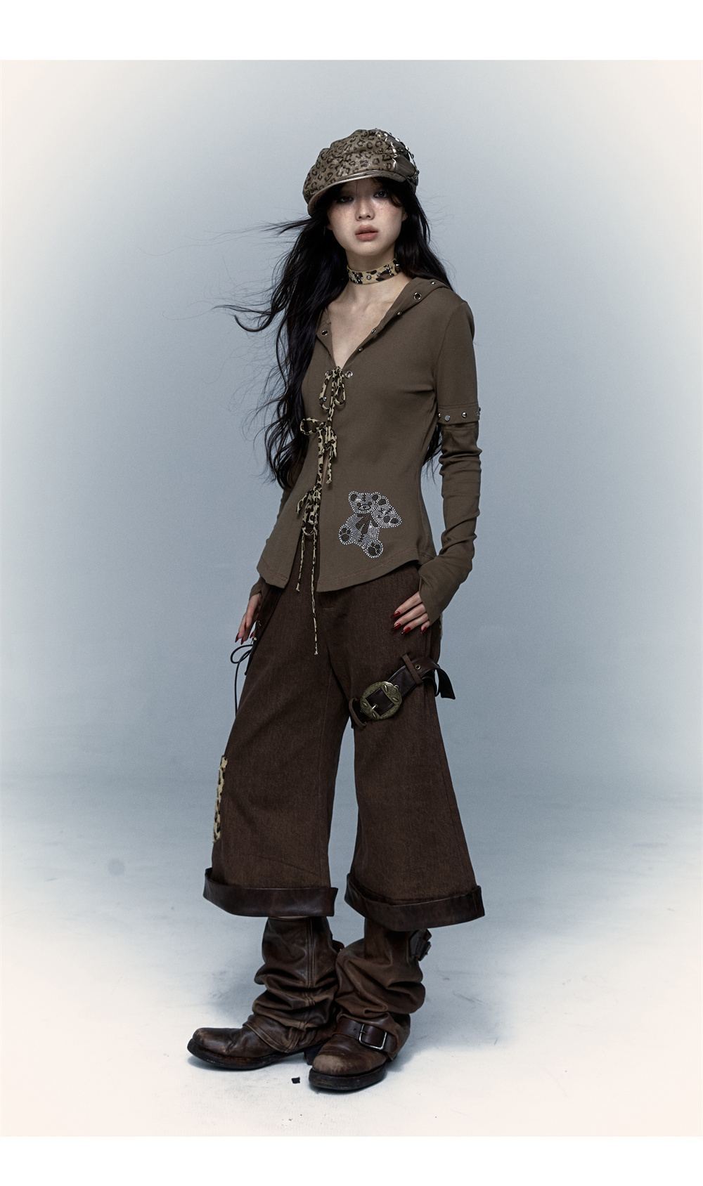 Devil Horn Bear Hoodie | Punk Hot Girl Detachable 롱 슬리브 T-shirt