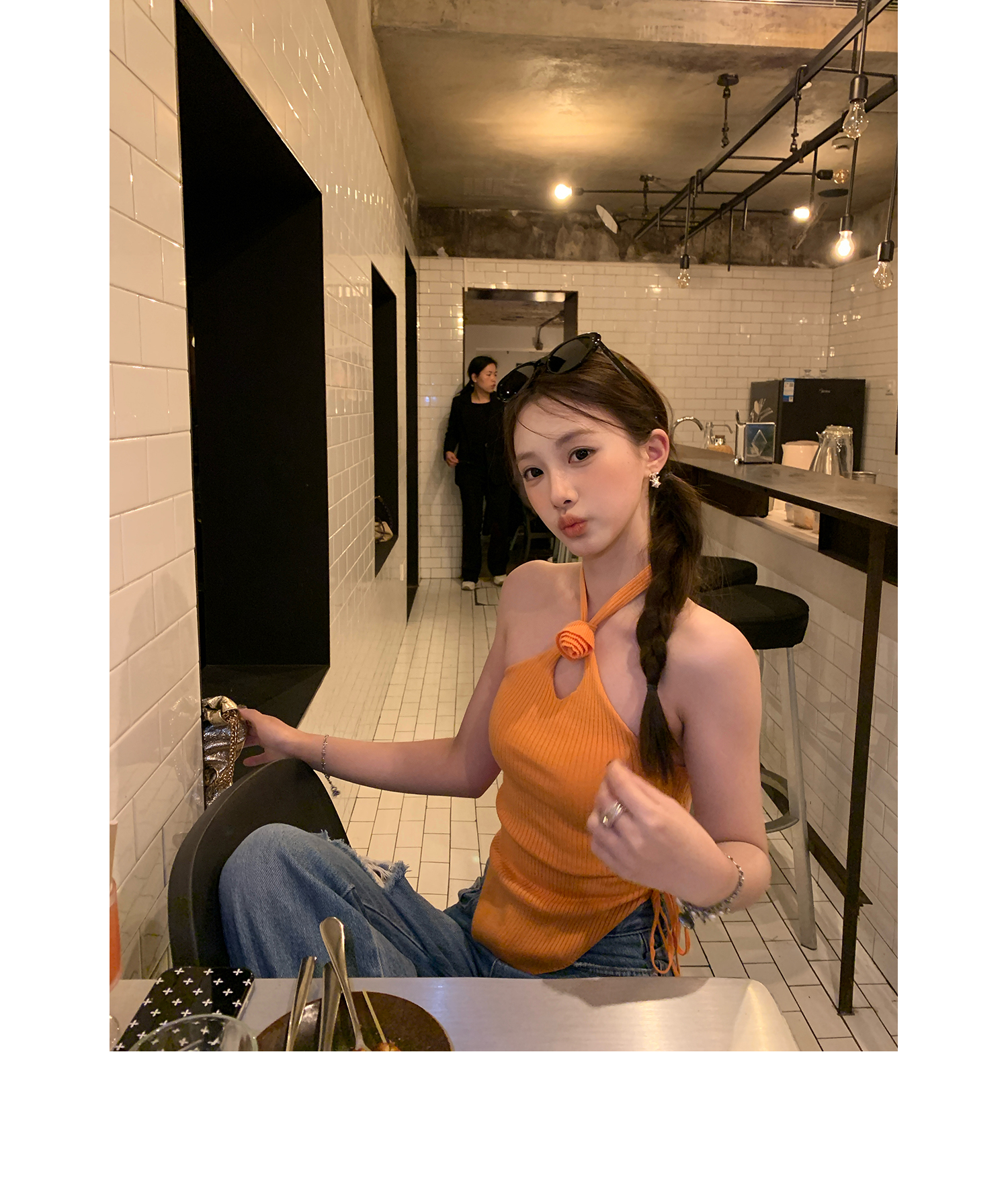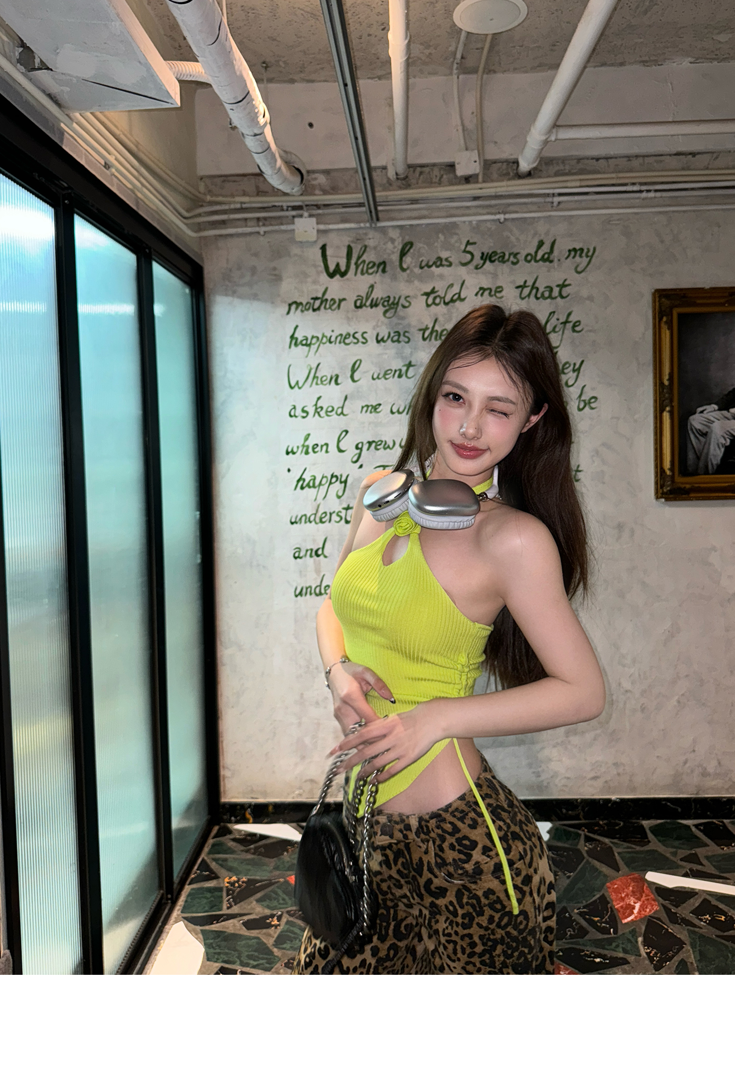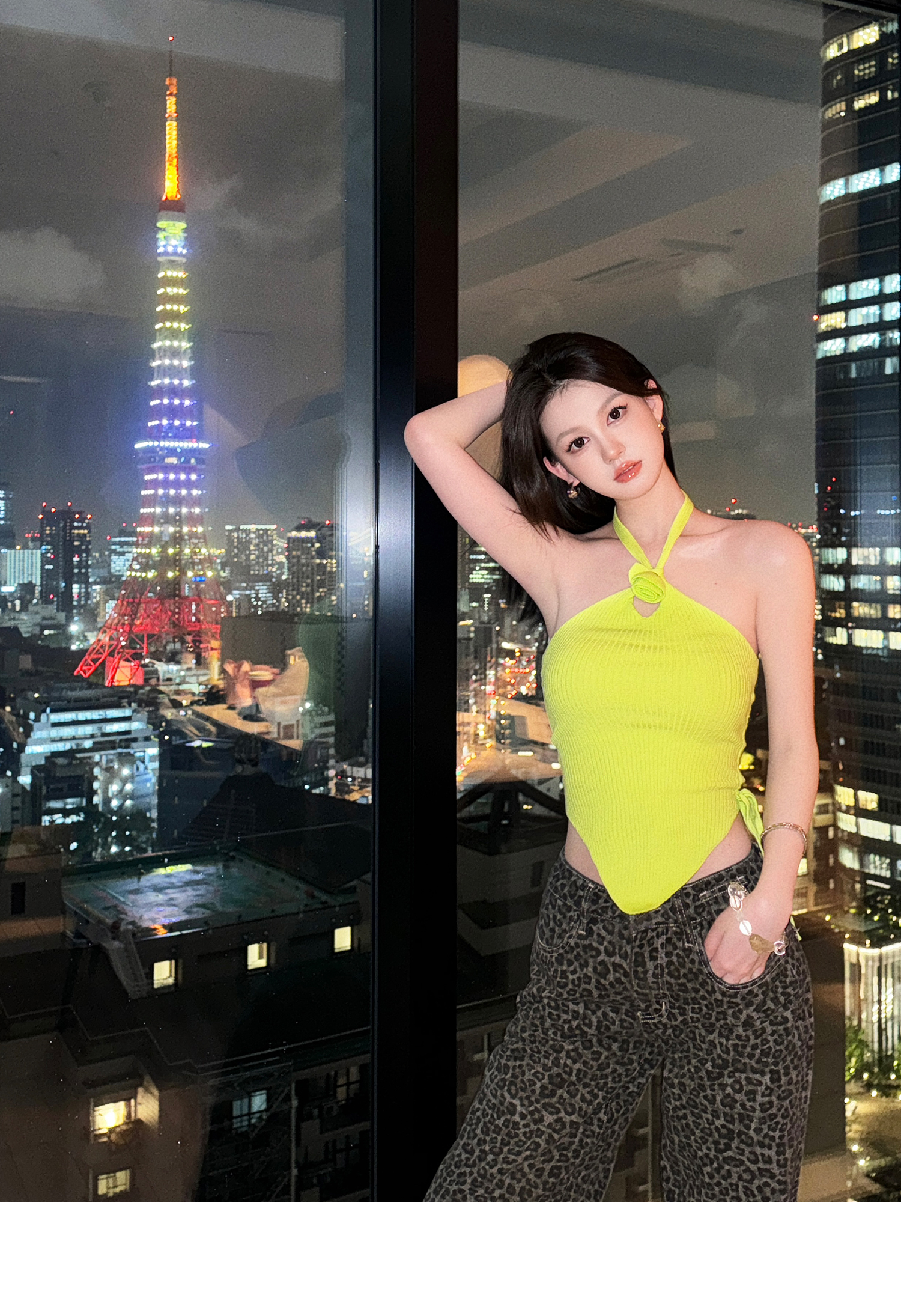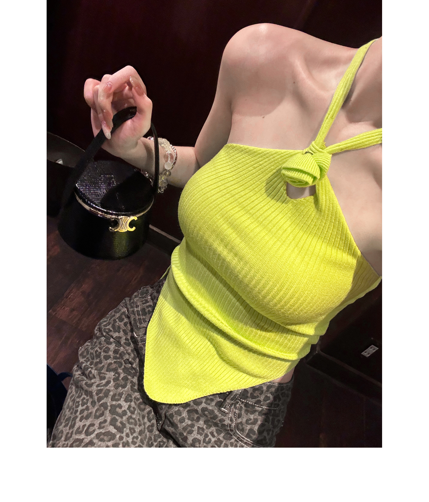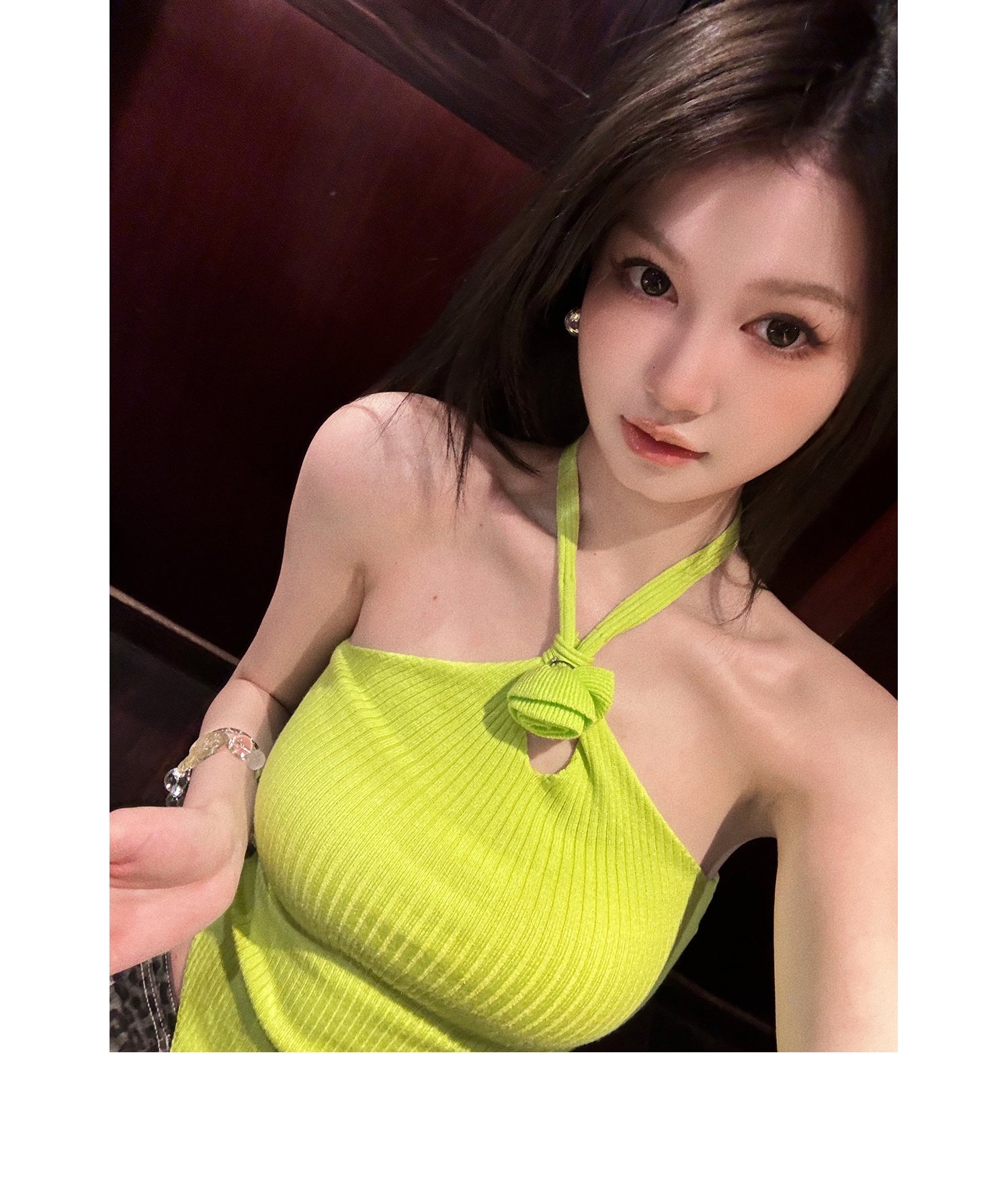 [Pure Sweet & Spicy] Green Halterneck Knitted Tank Top - Summer Style