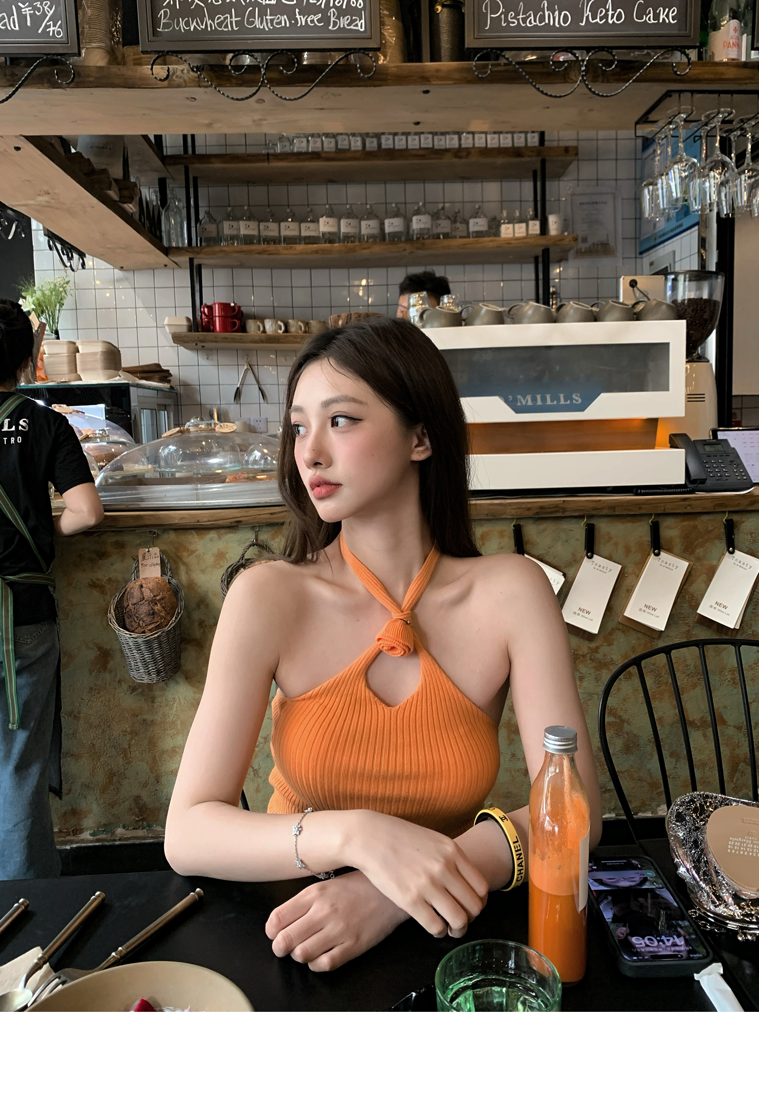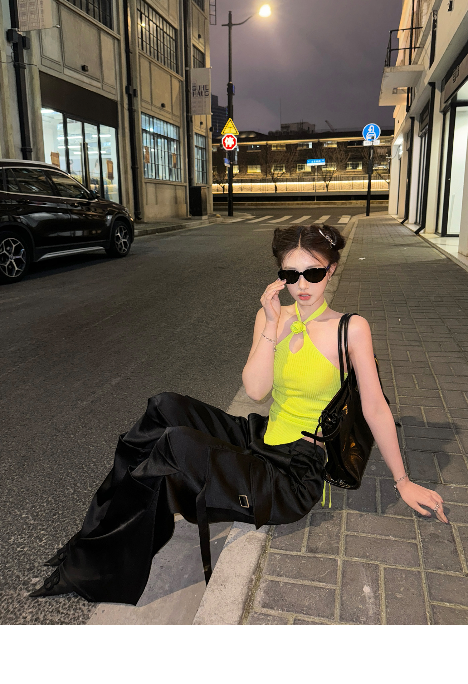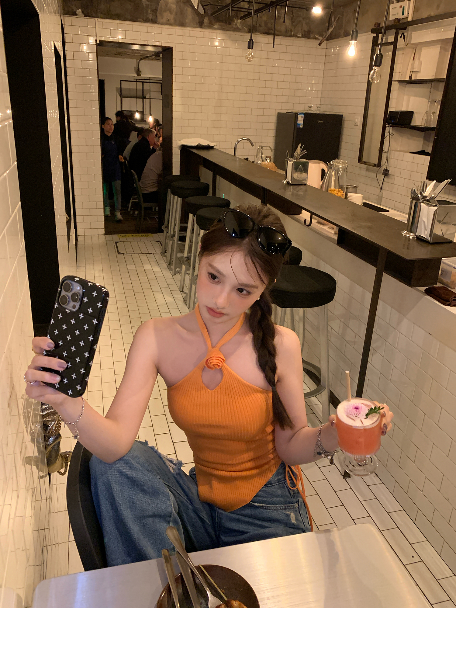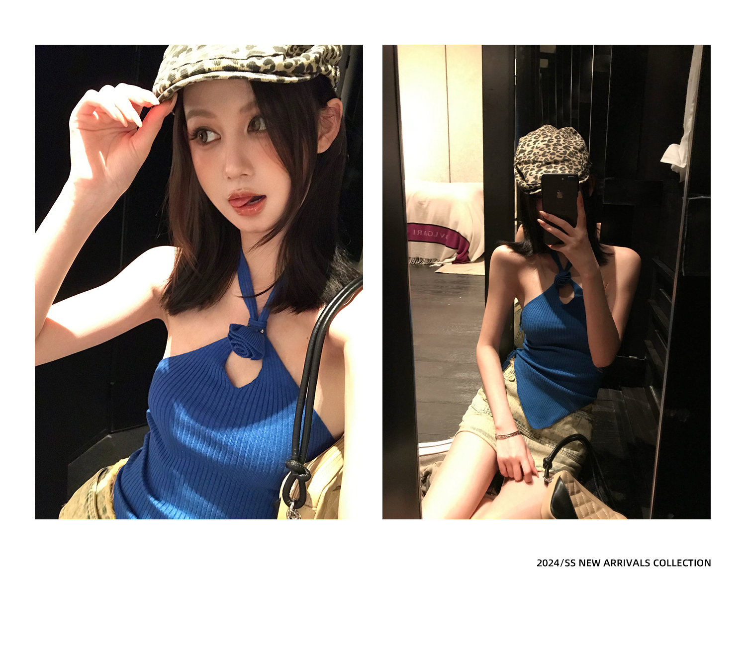 [Pure Sweet & Spicy] Green Halterneck Knitted Tank Top - Summer Style