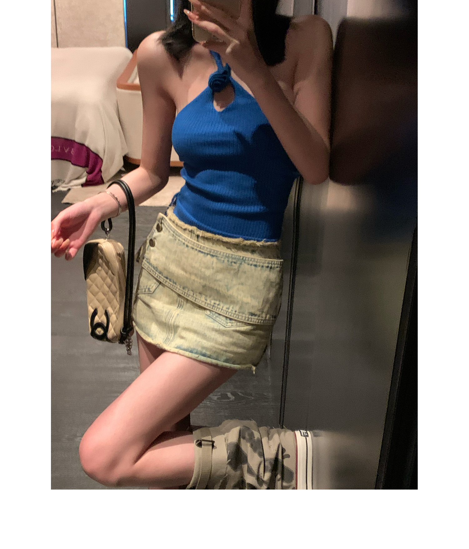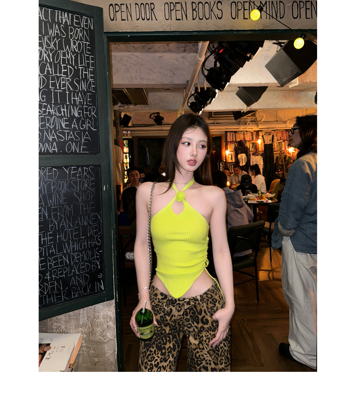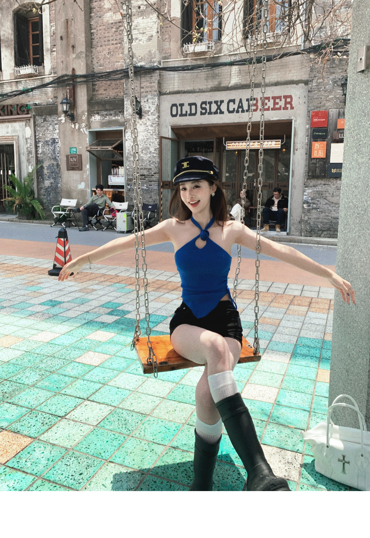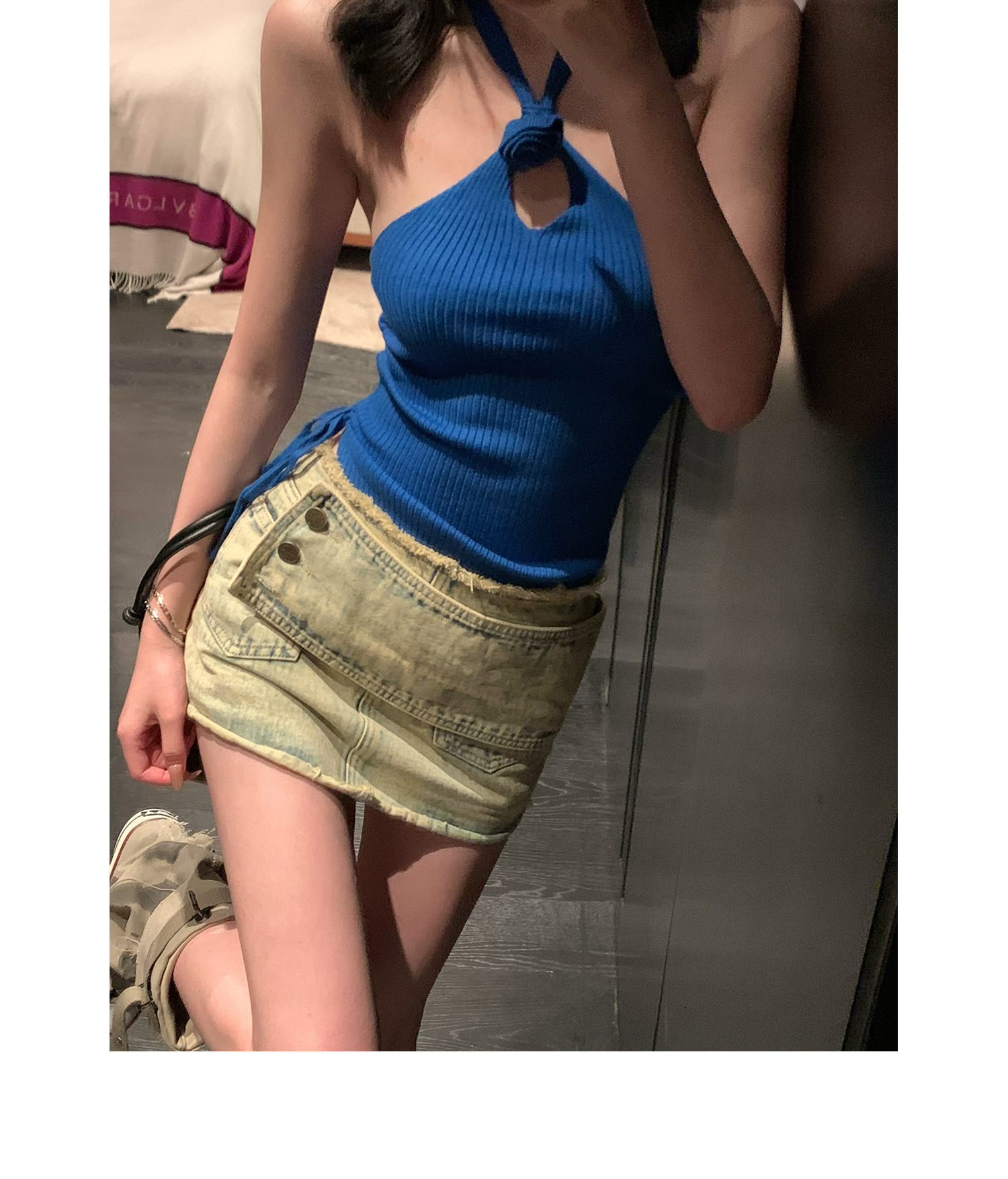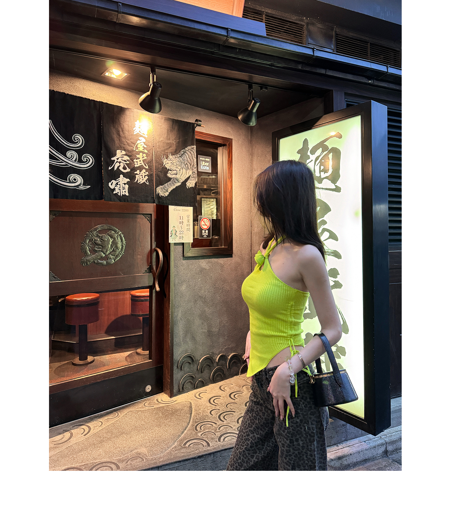 [Pure Sweet & Spicy] Green Halterneck Knitted Tank Top - Summer Style