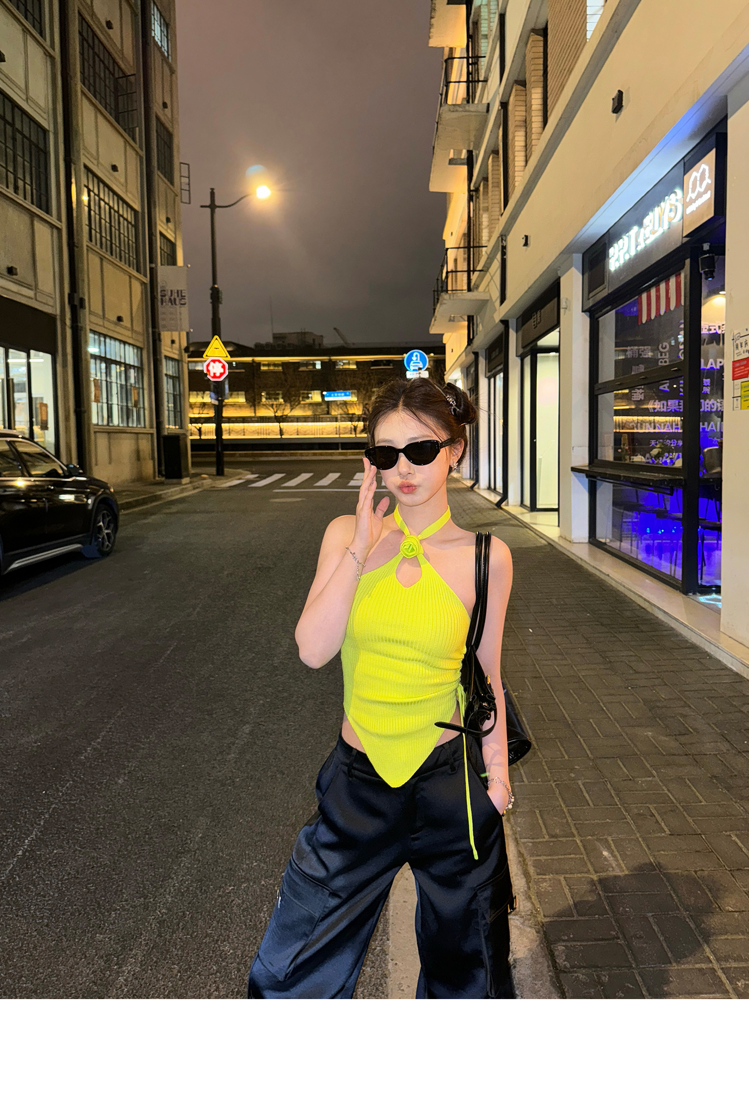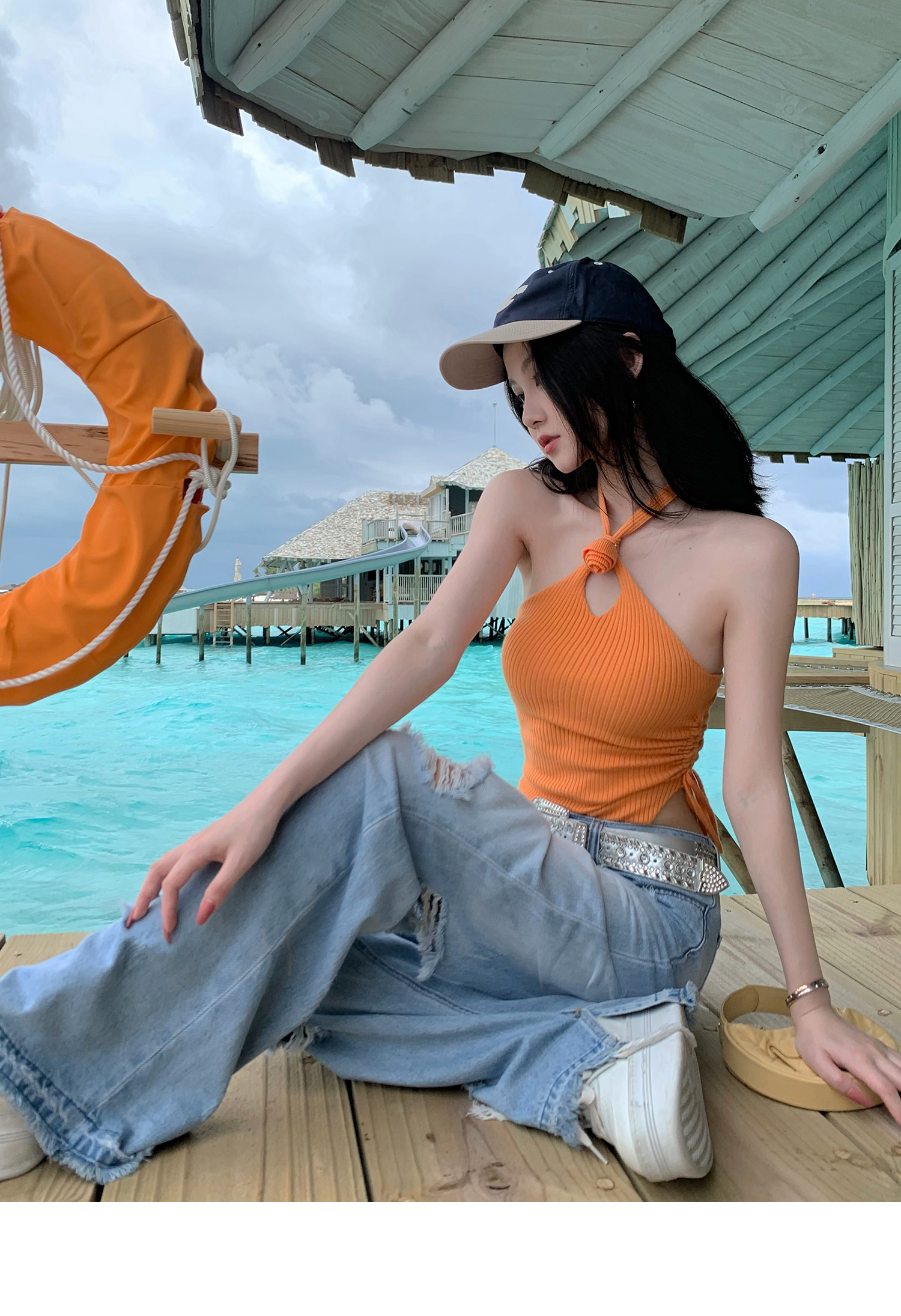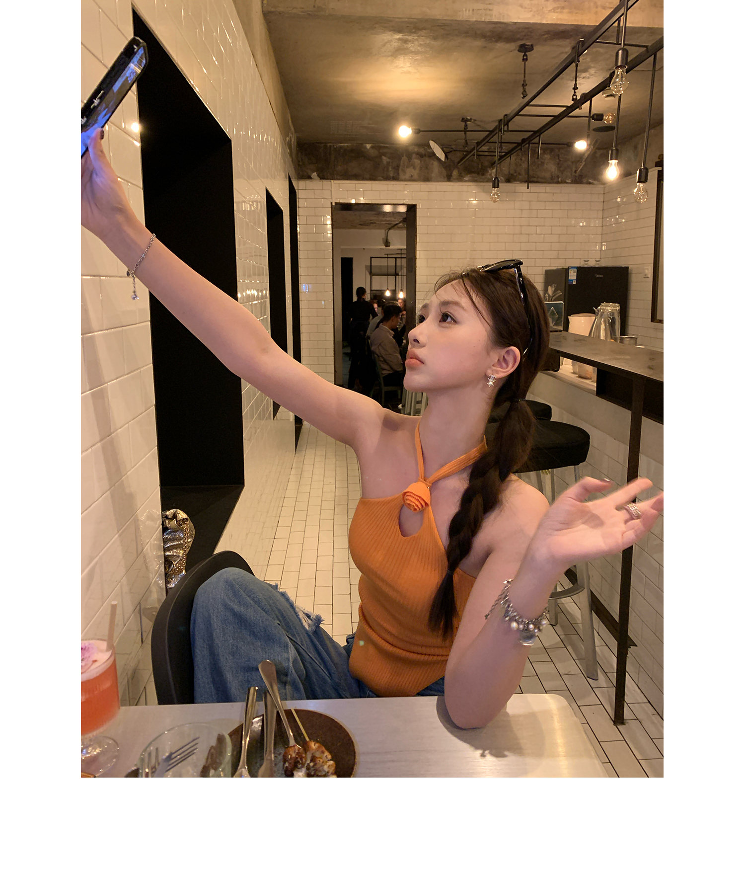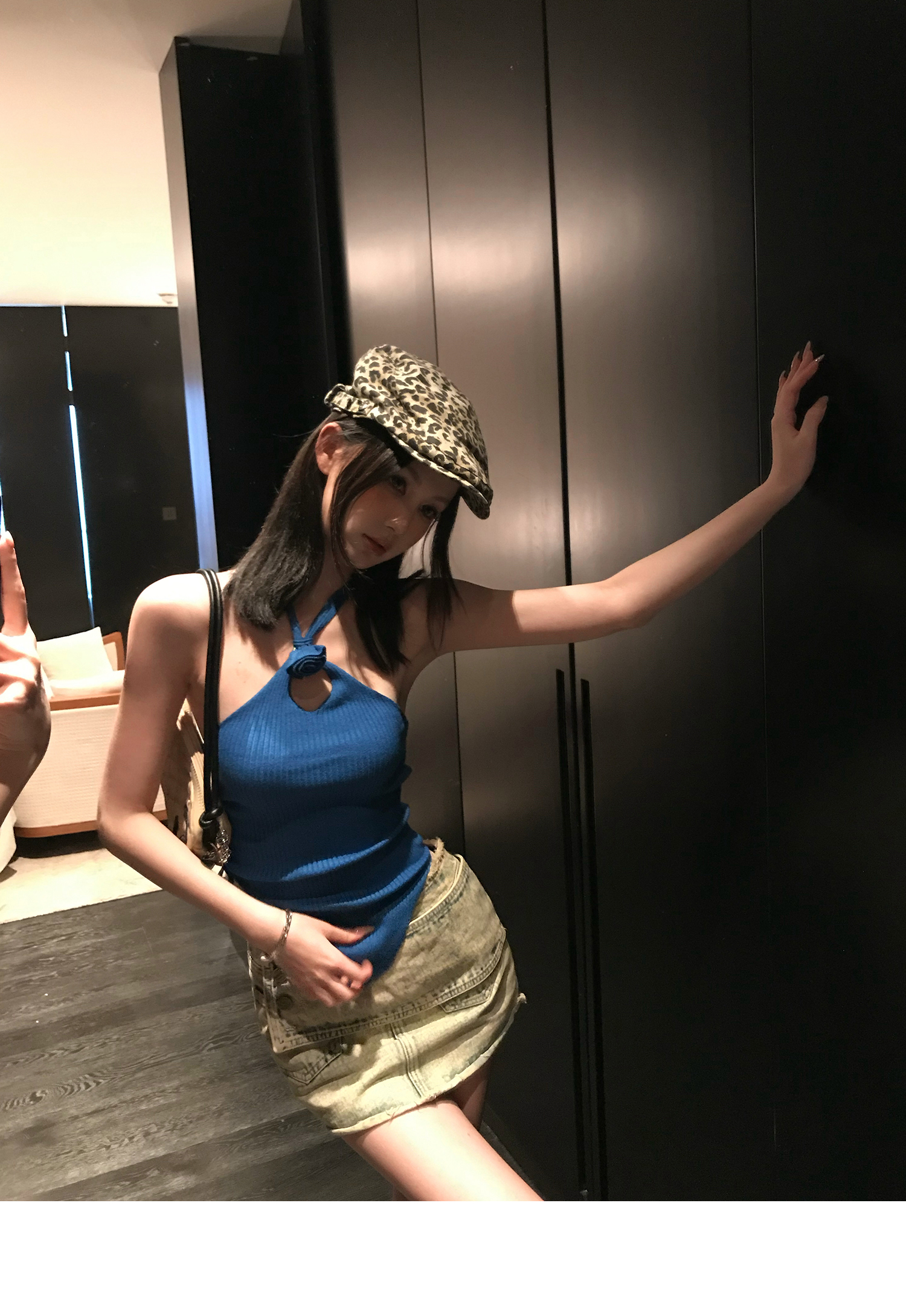 [Pure Sweet & Spicy] Green Halterneck Knitted Tank Top - Summer Style