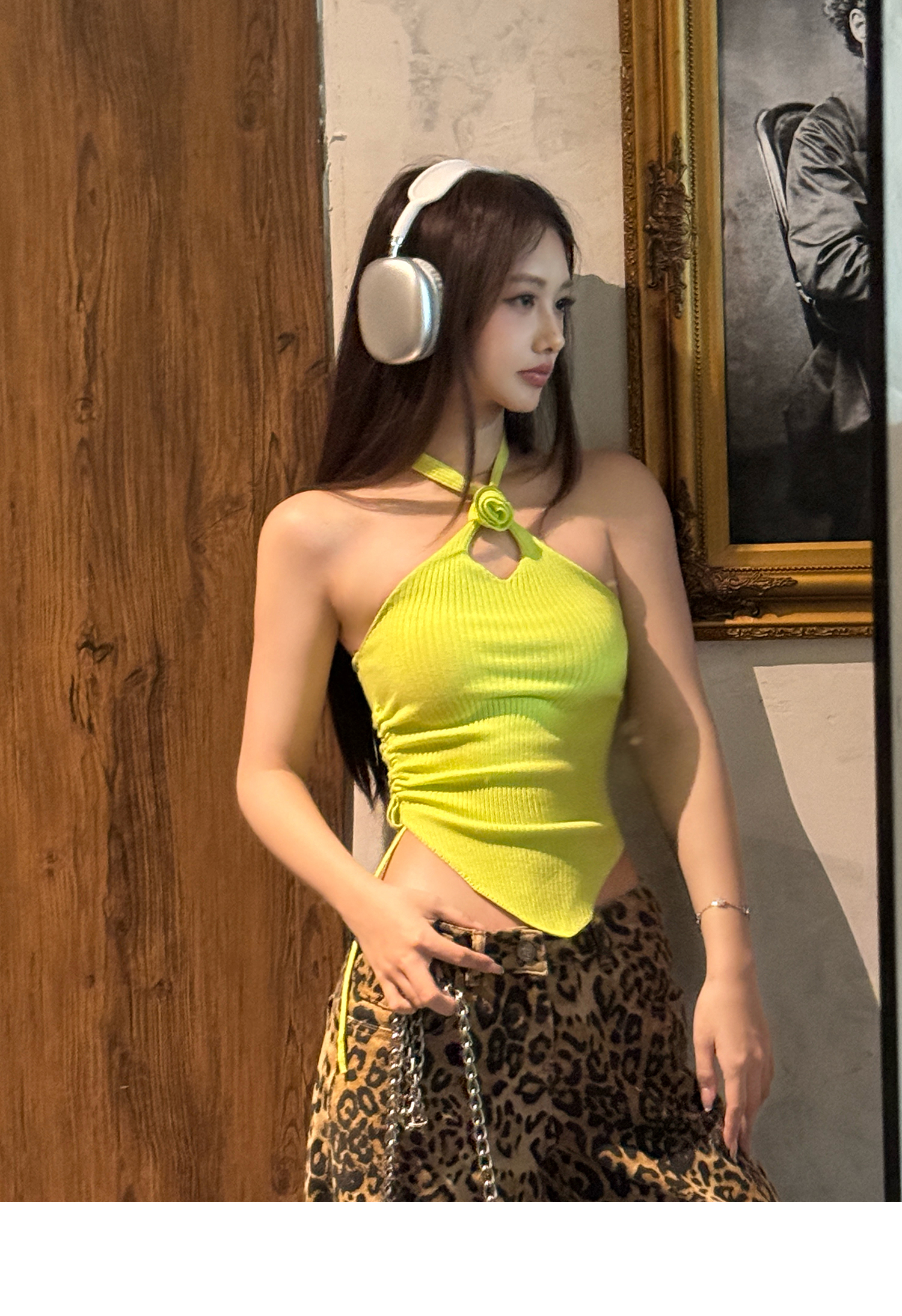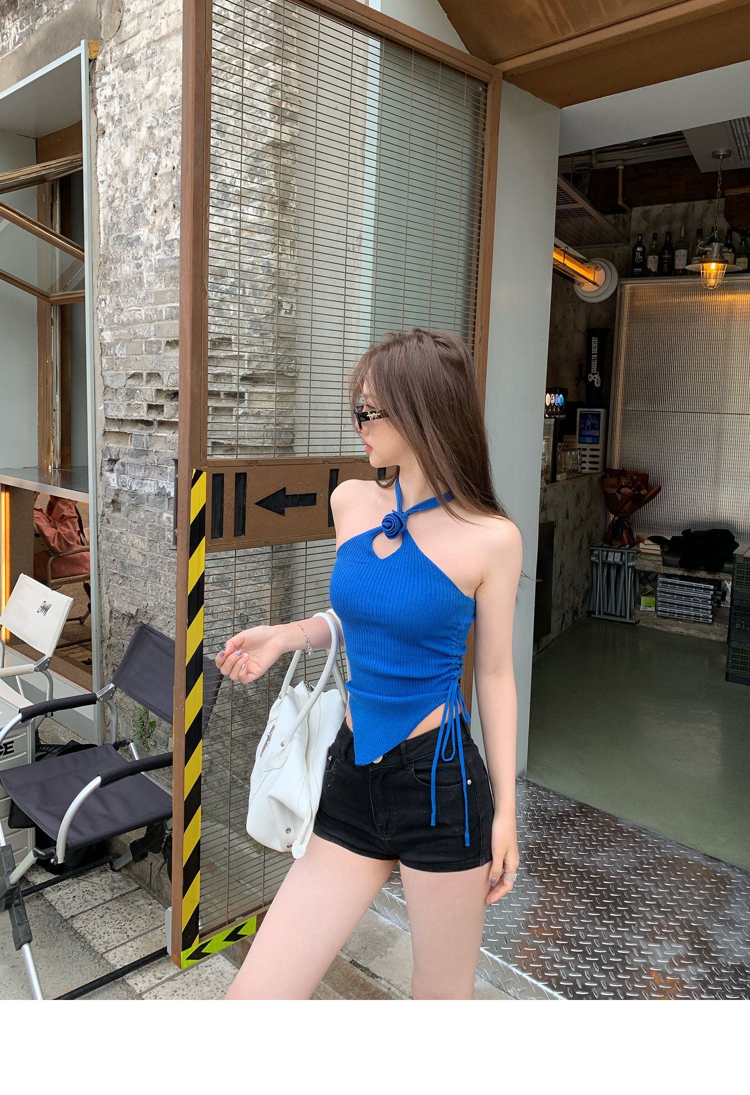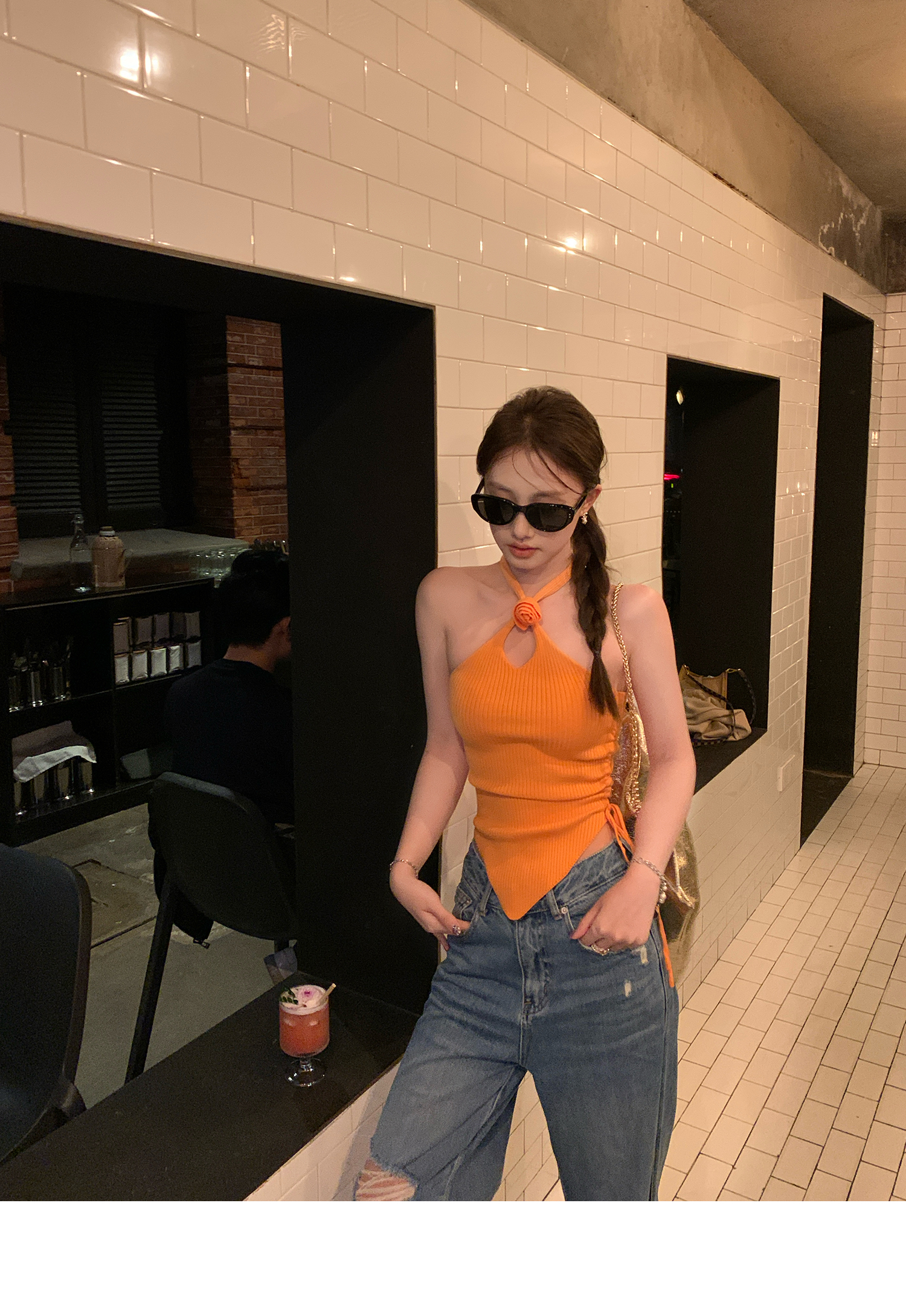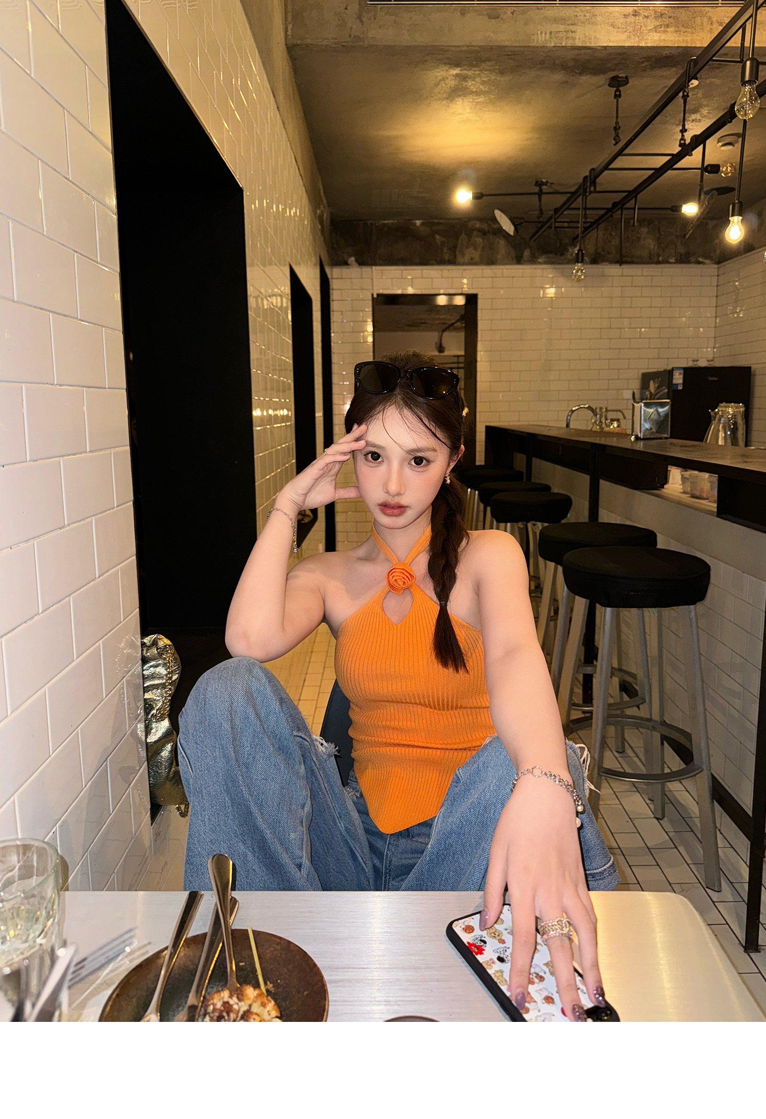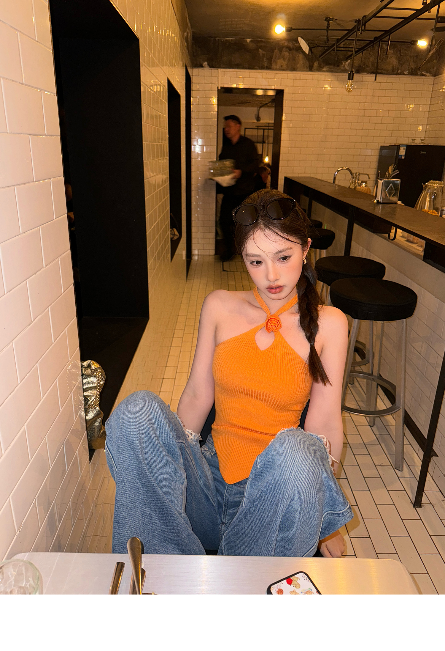 [Pure Sweet & Spicy] Green Halterneck Knitted Tank Top - Summer Style