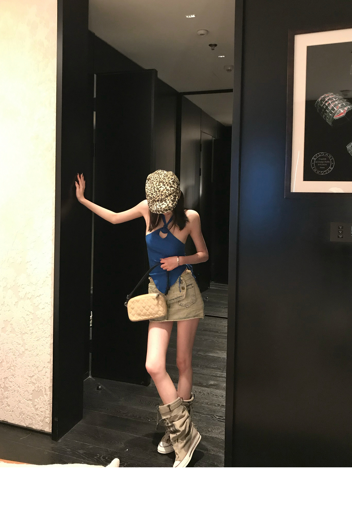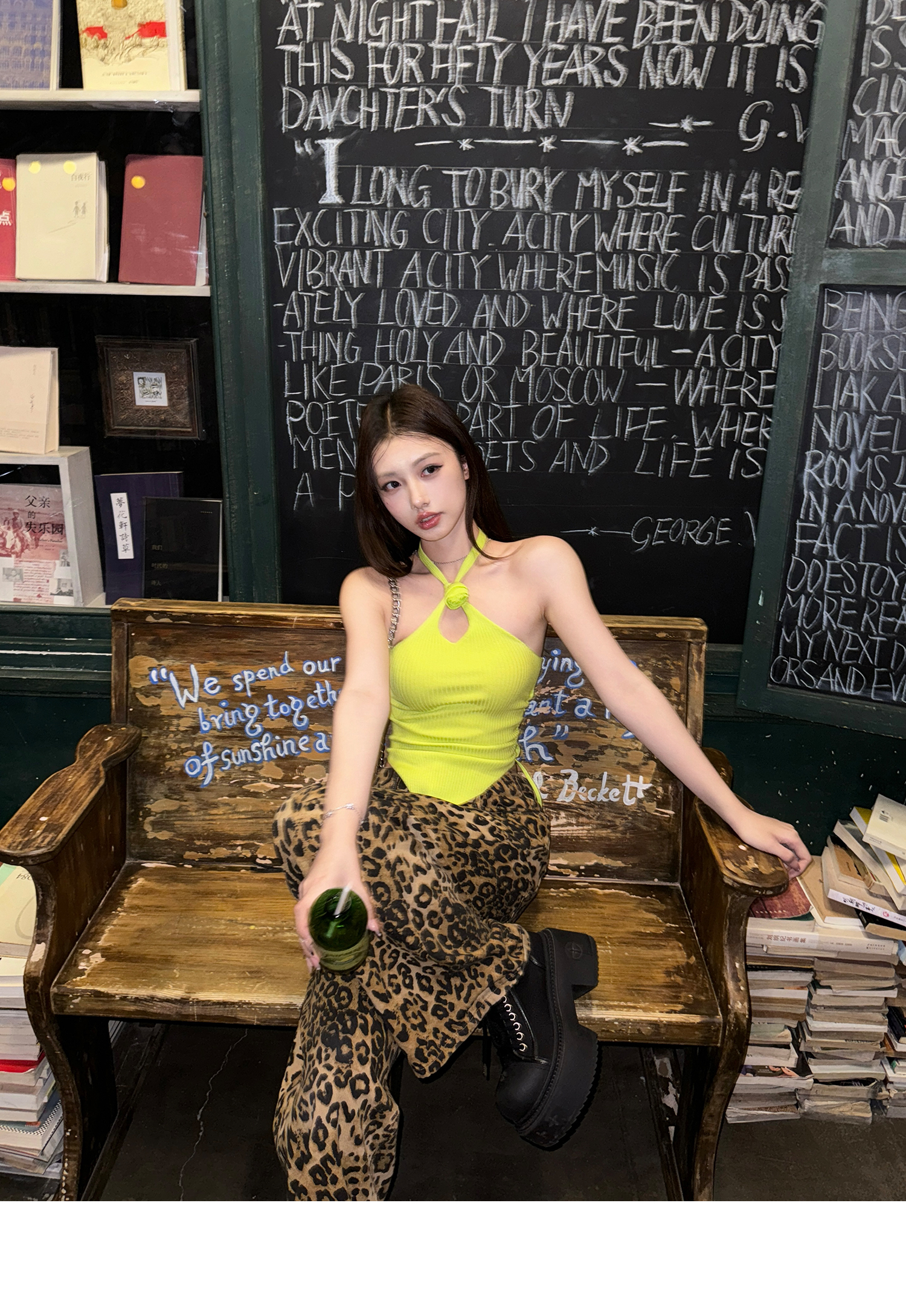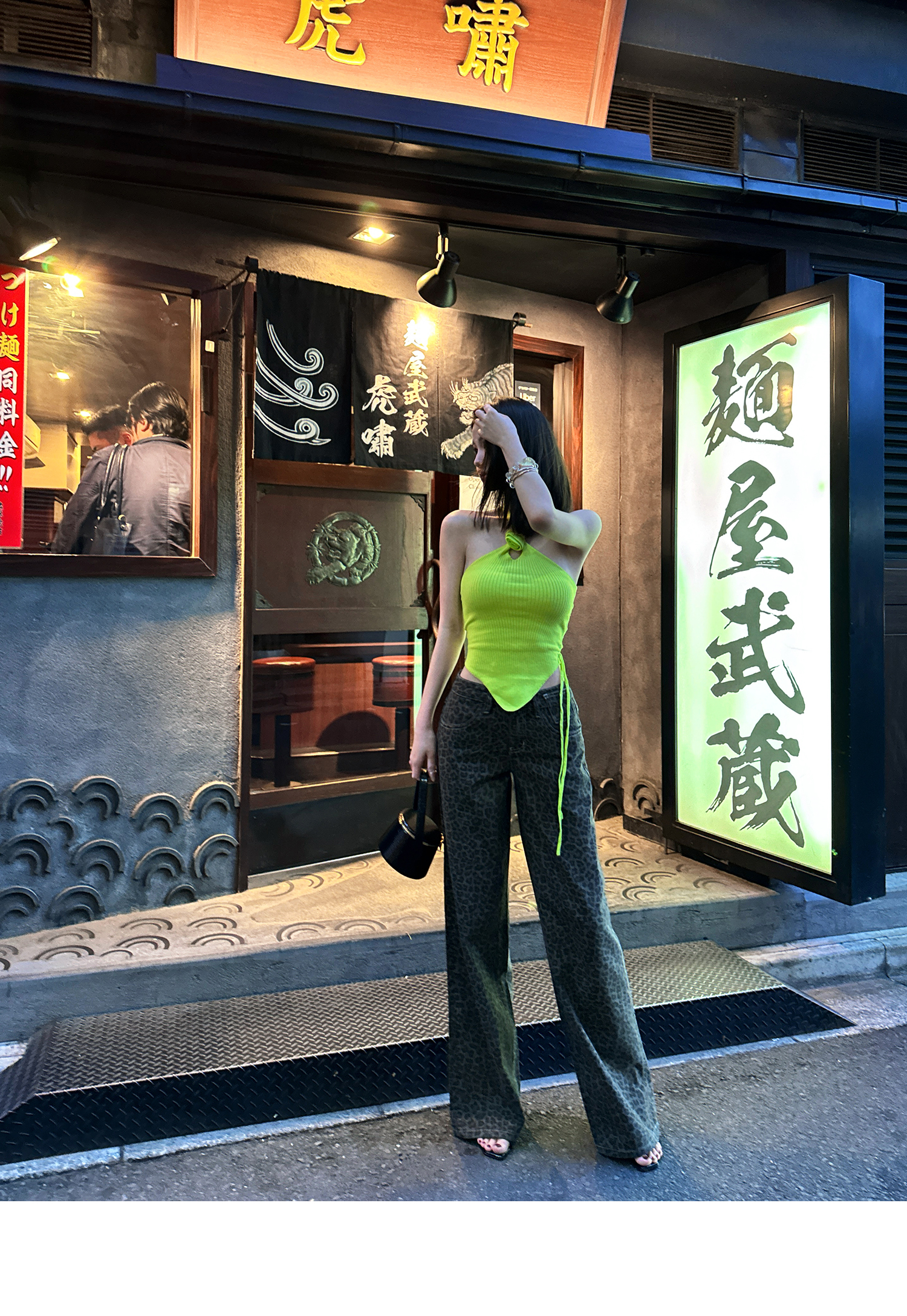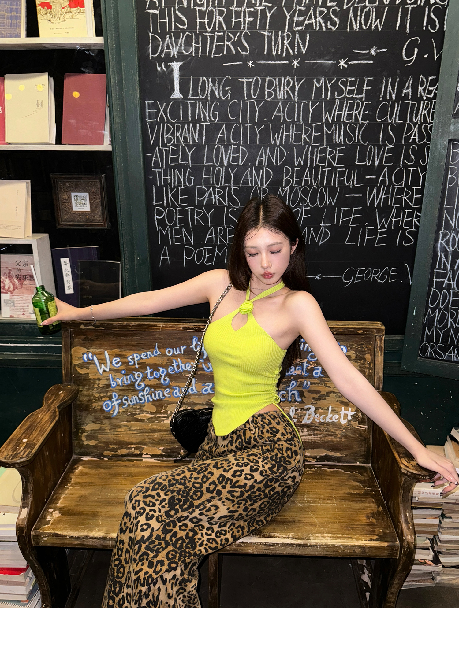 [Pure Sweet & Spicy] Green Halterneck Knitted Tank Top - Summer Style