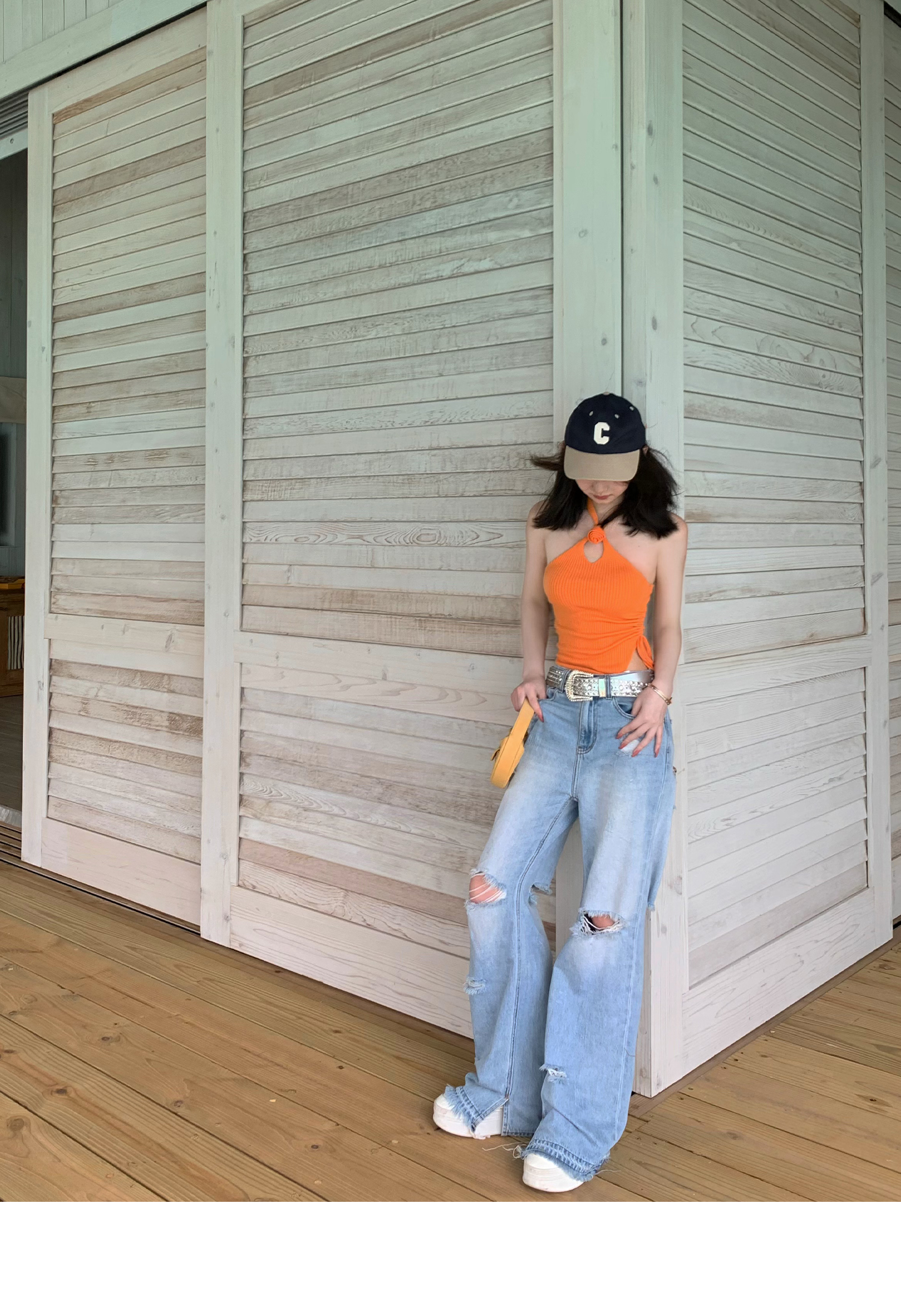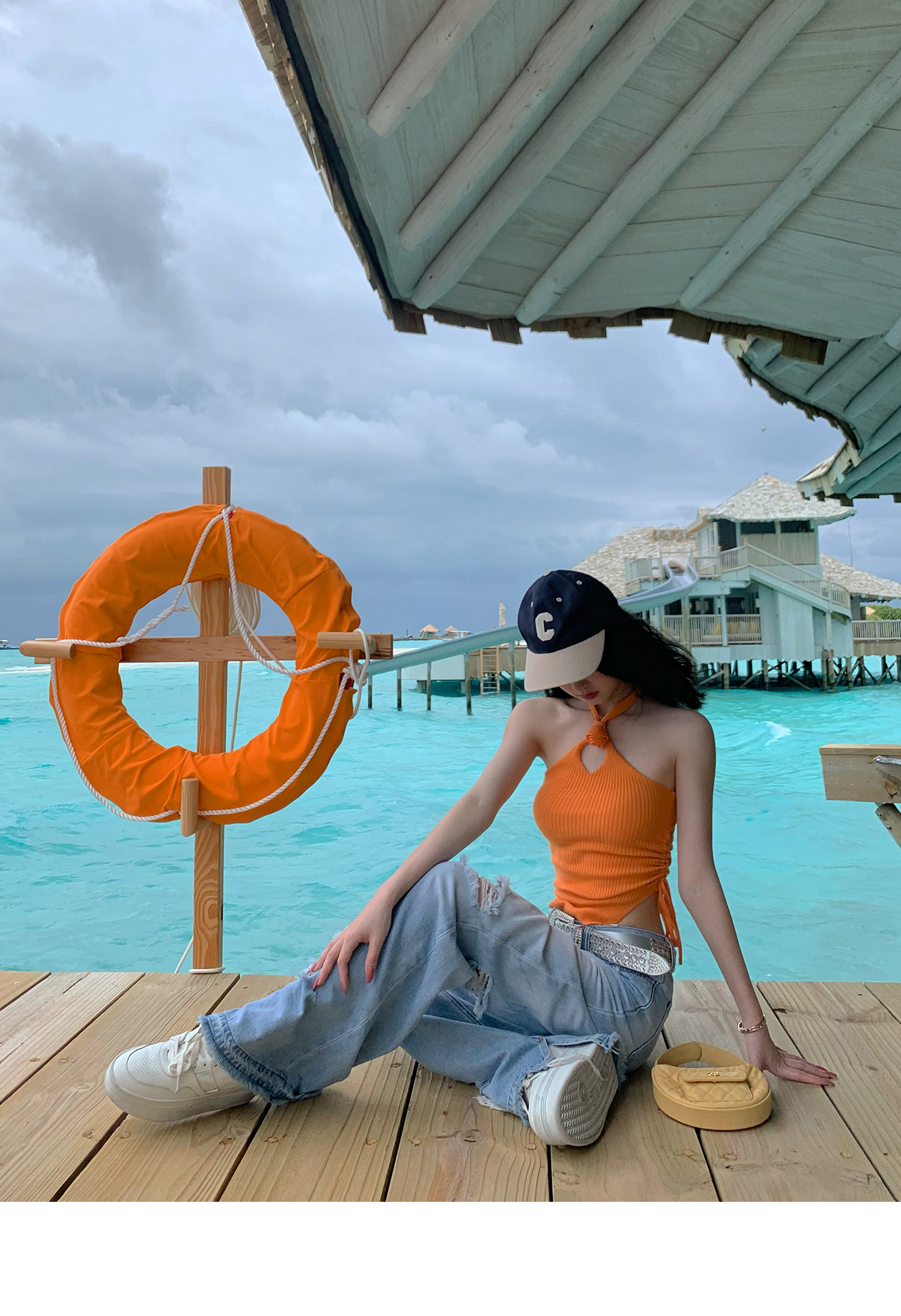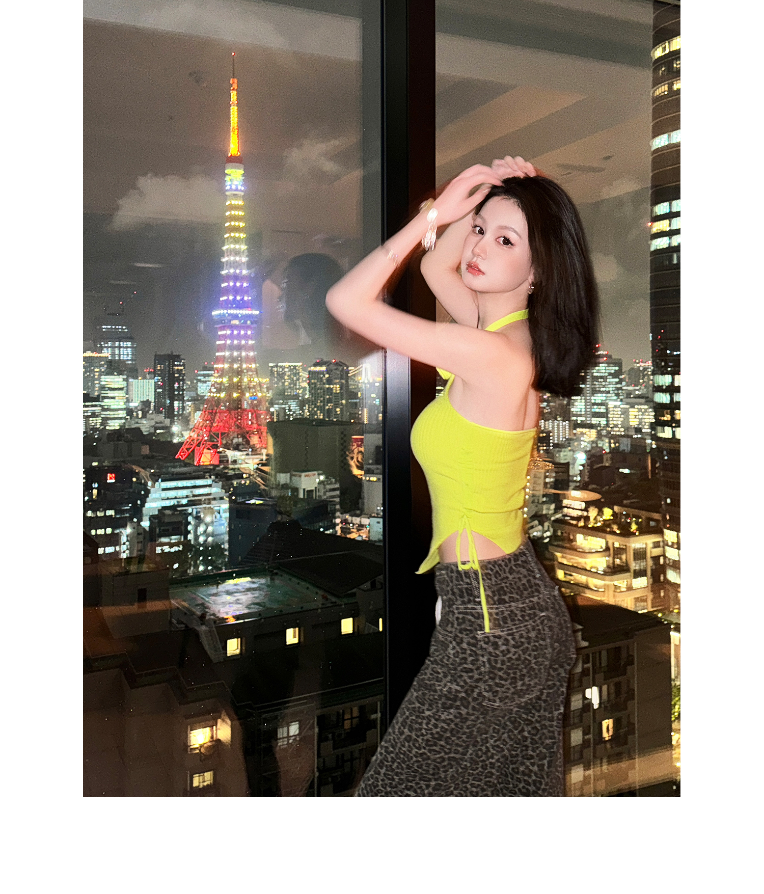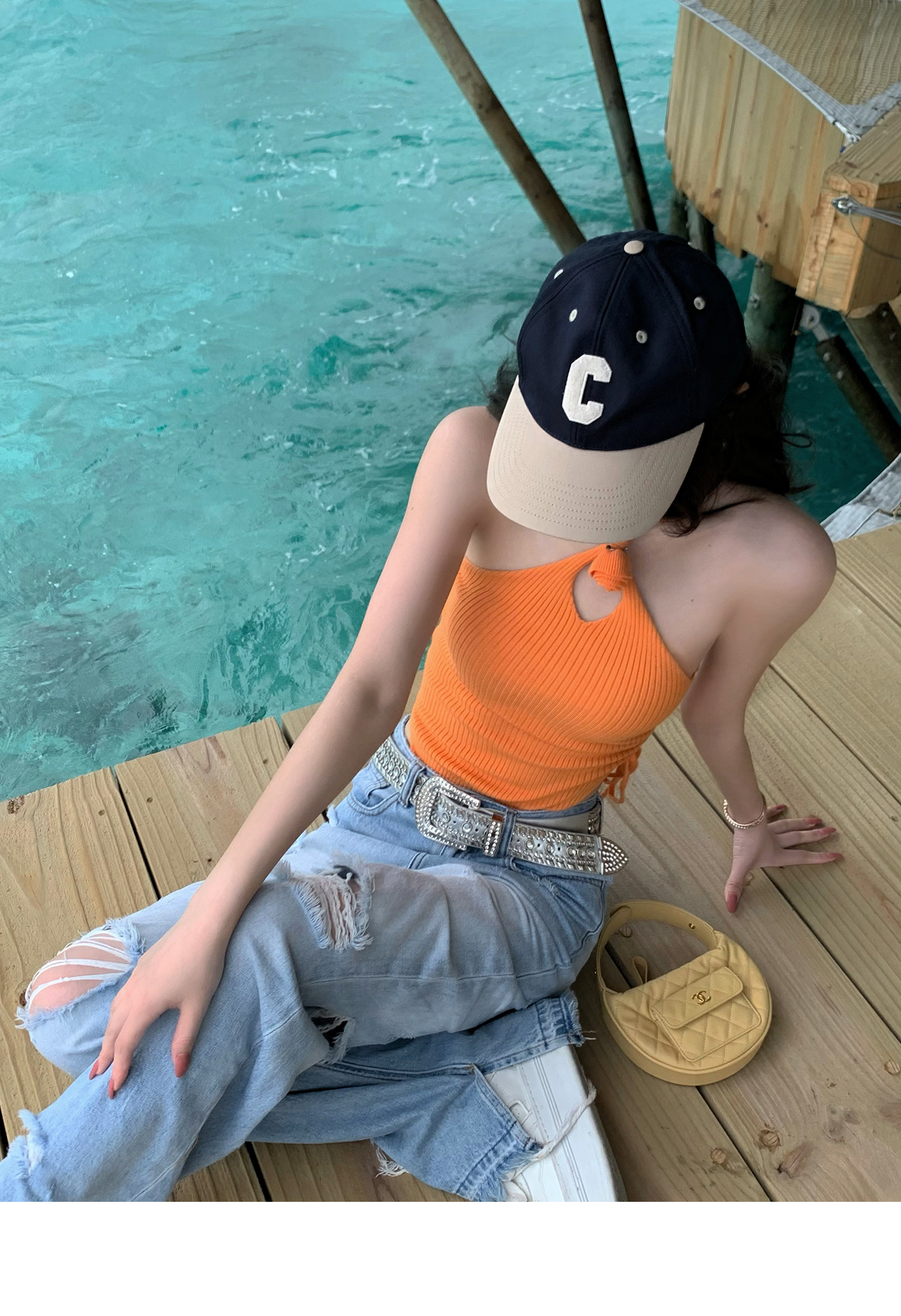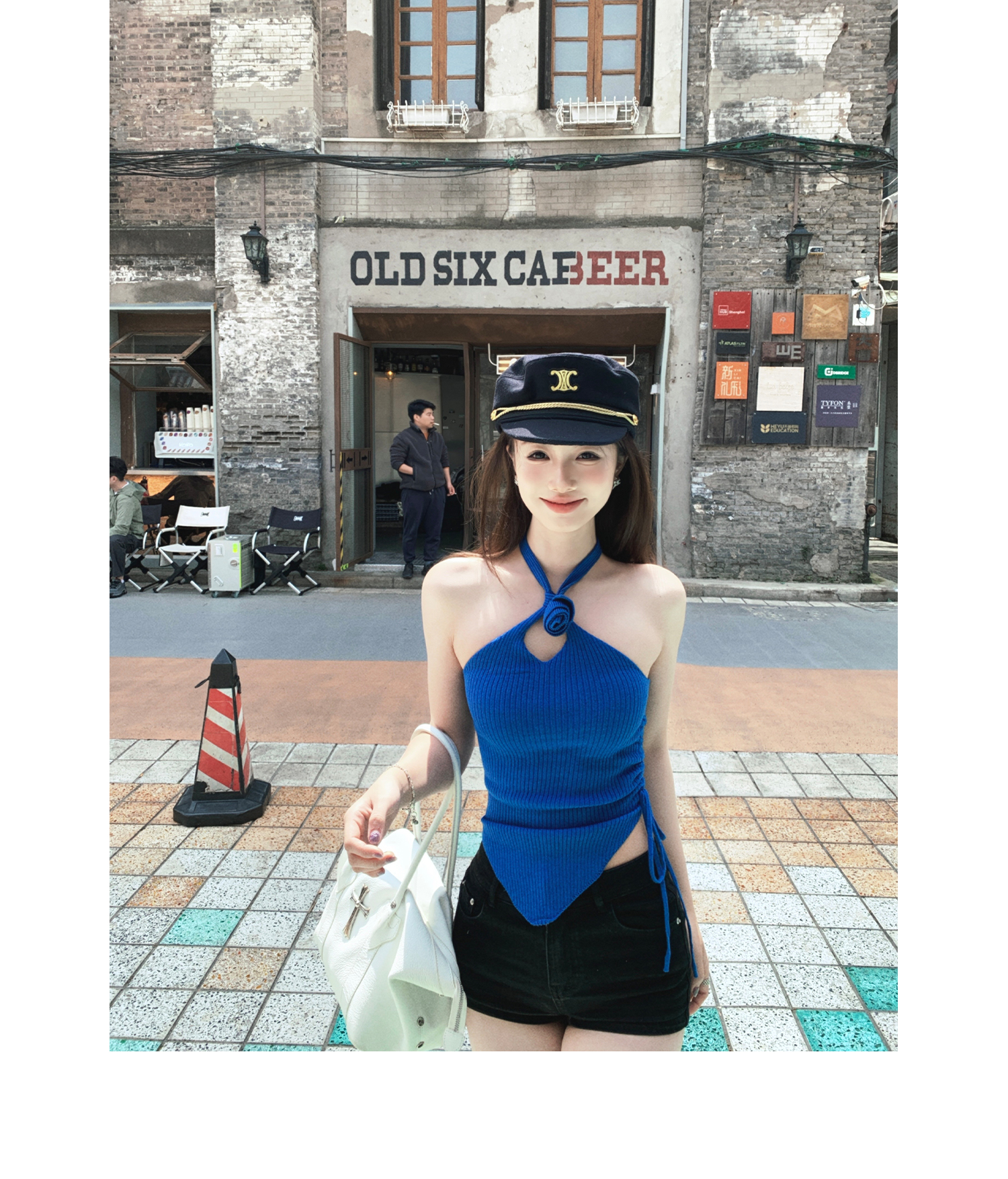 [Pure Sweet & Spicy] Green Halterneck Knitted Tank Top - Summer Style
