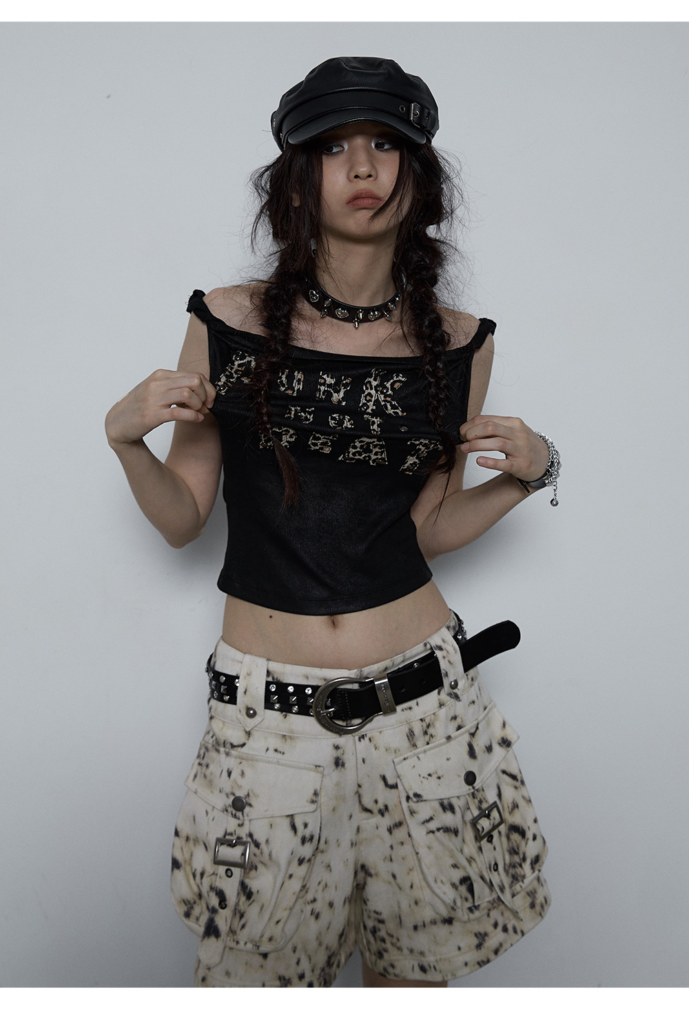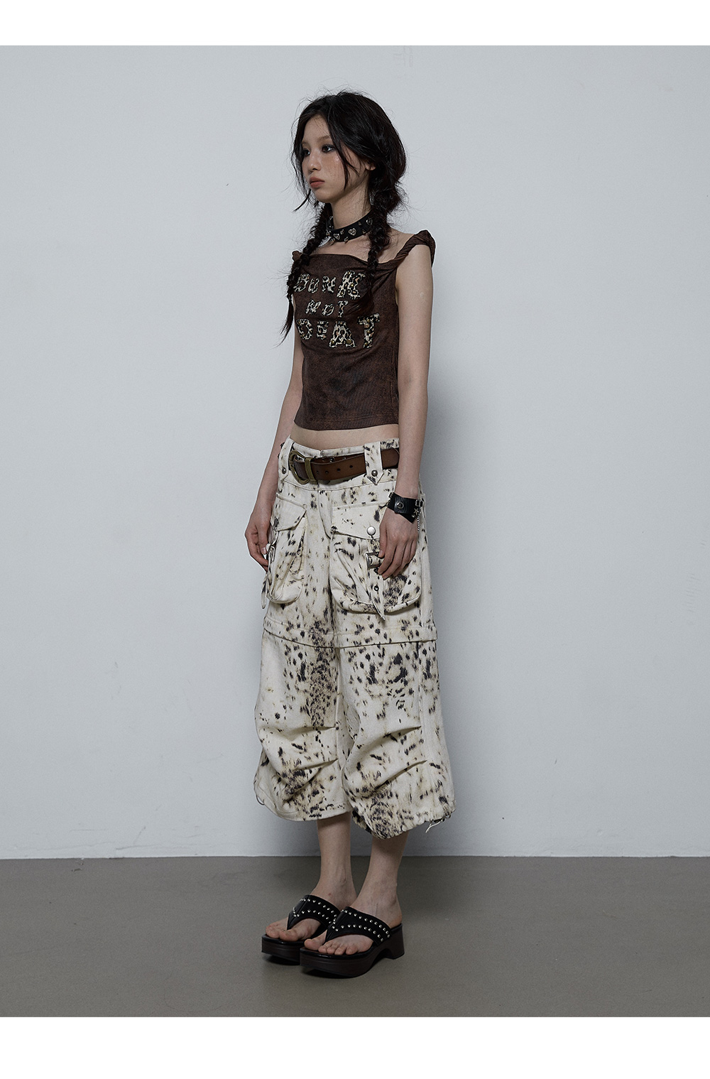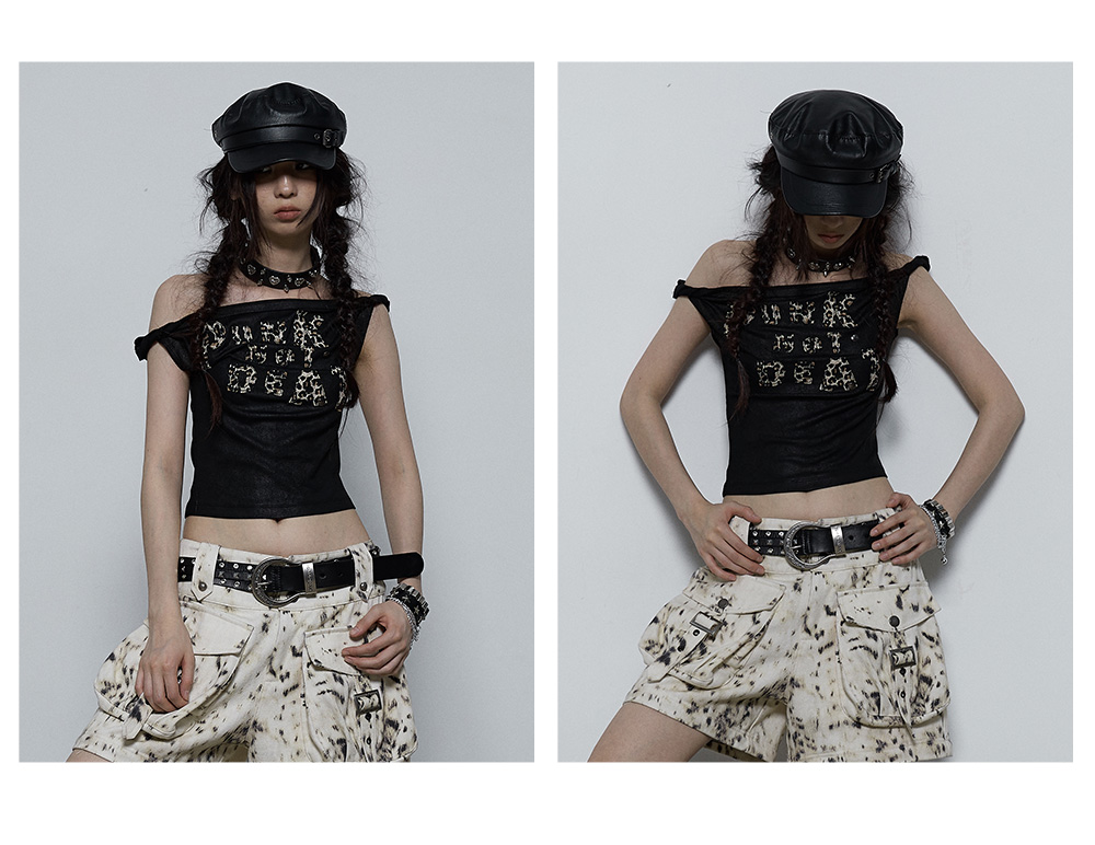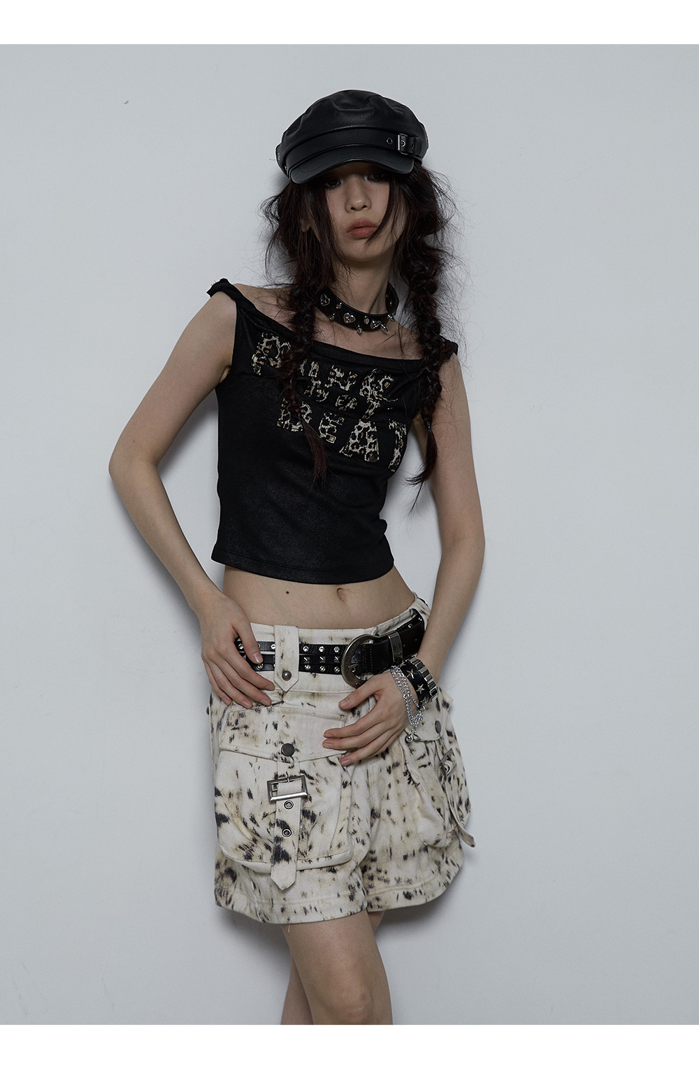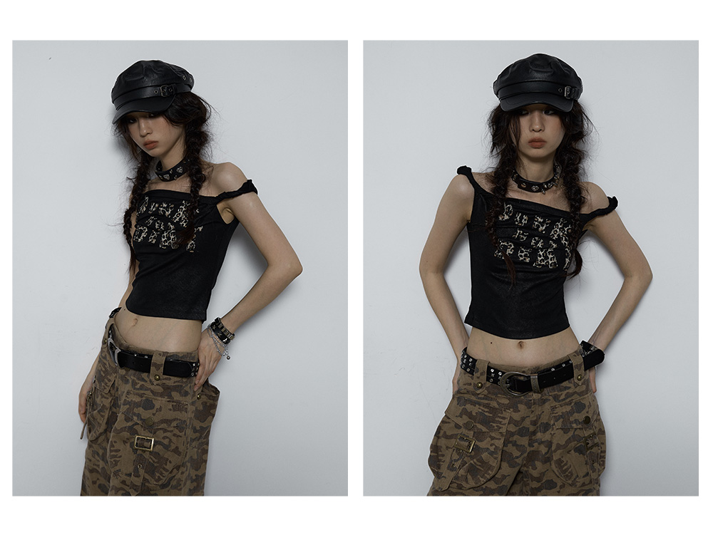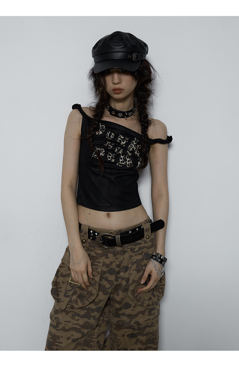 Leopard Spliced Sleeveless Tank Top | Curled Edge Retro Design