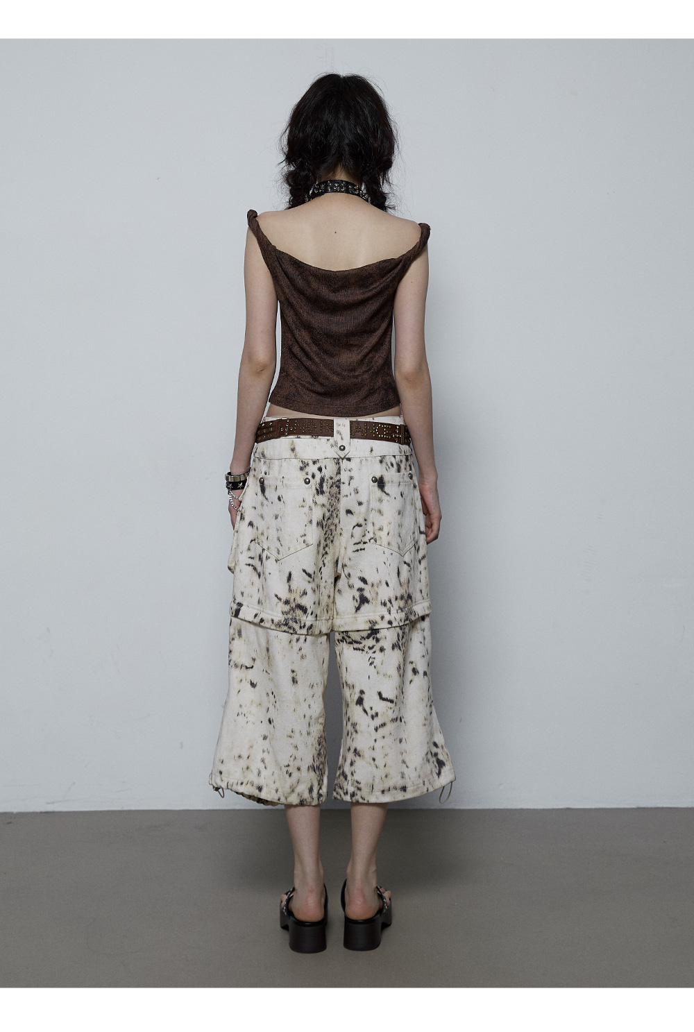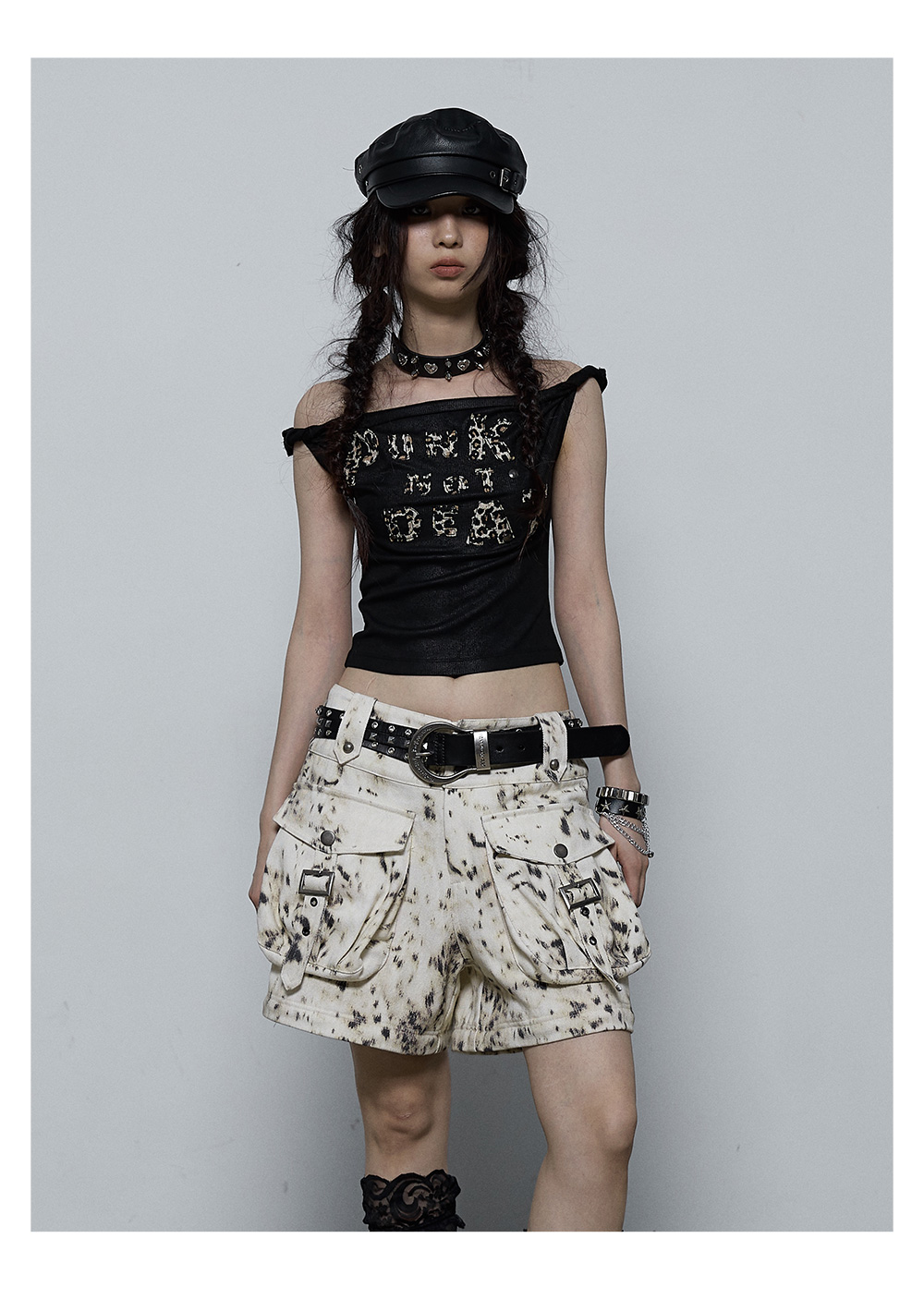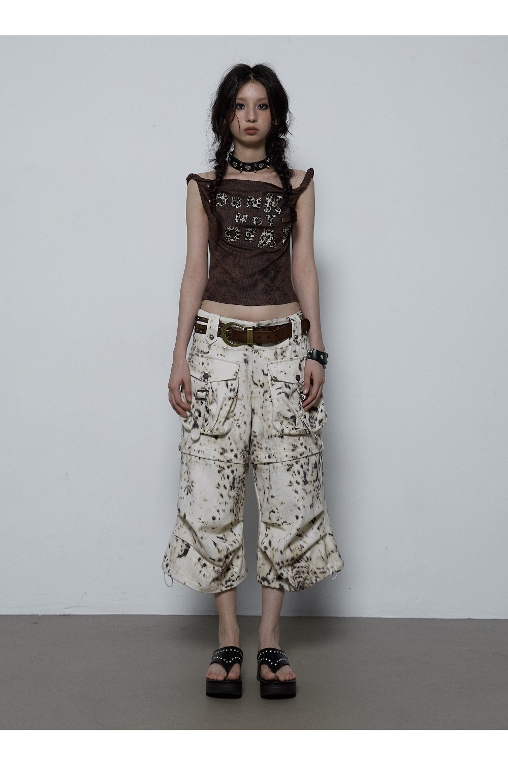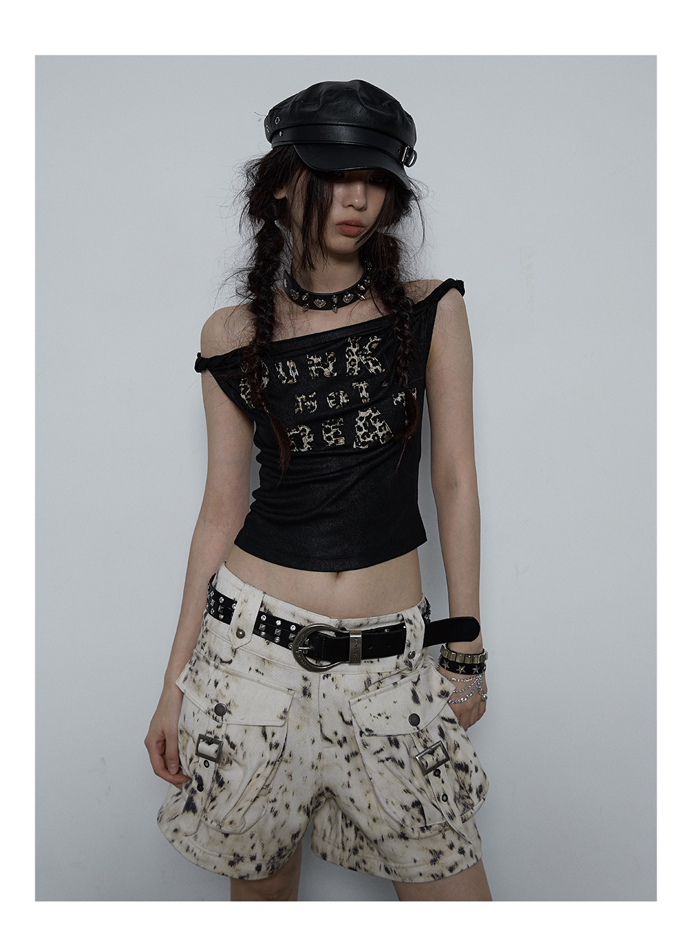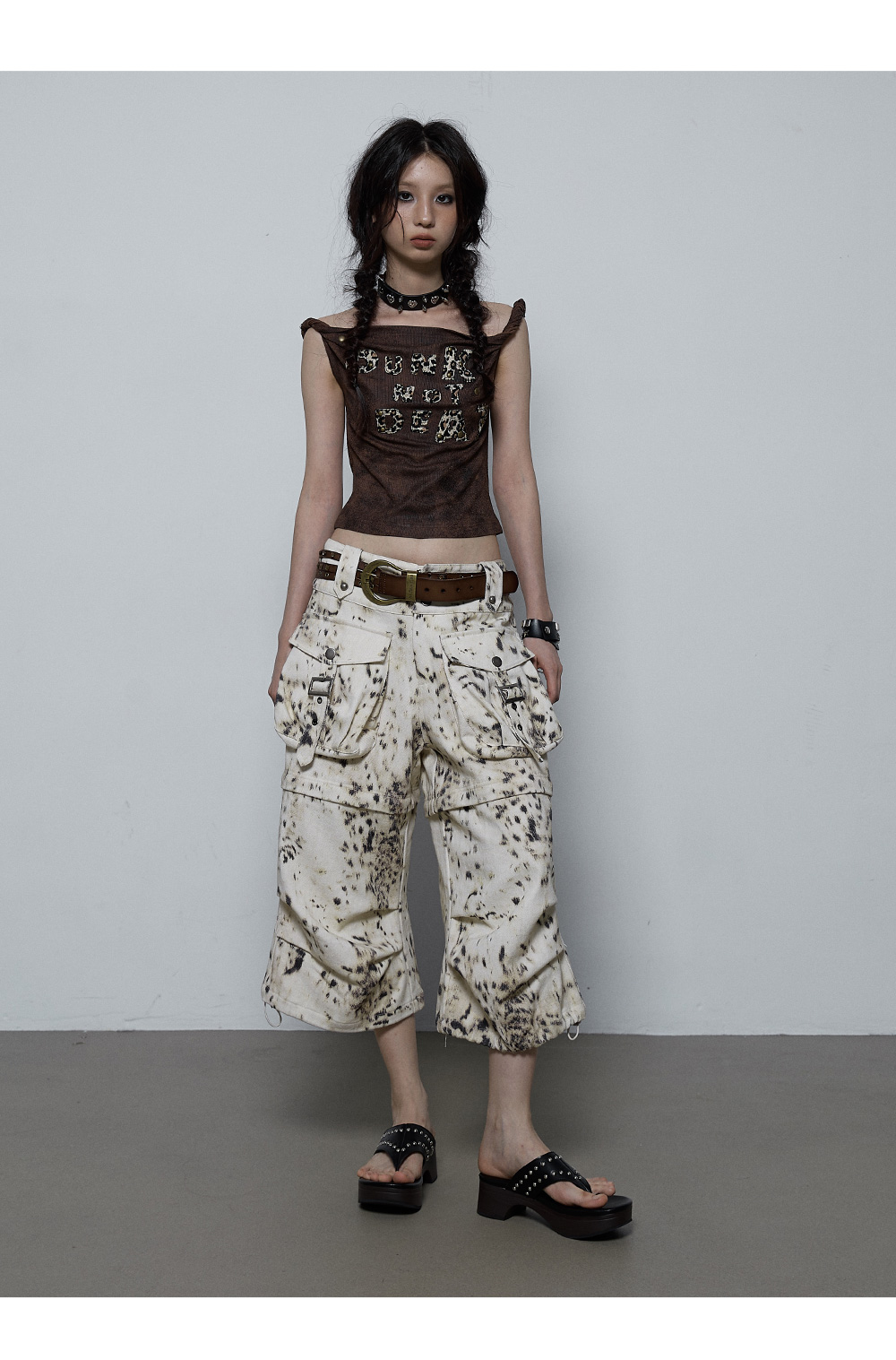 Leopard Spliced Sleeveless Tank Top | Curled Edge Retro Design