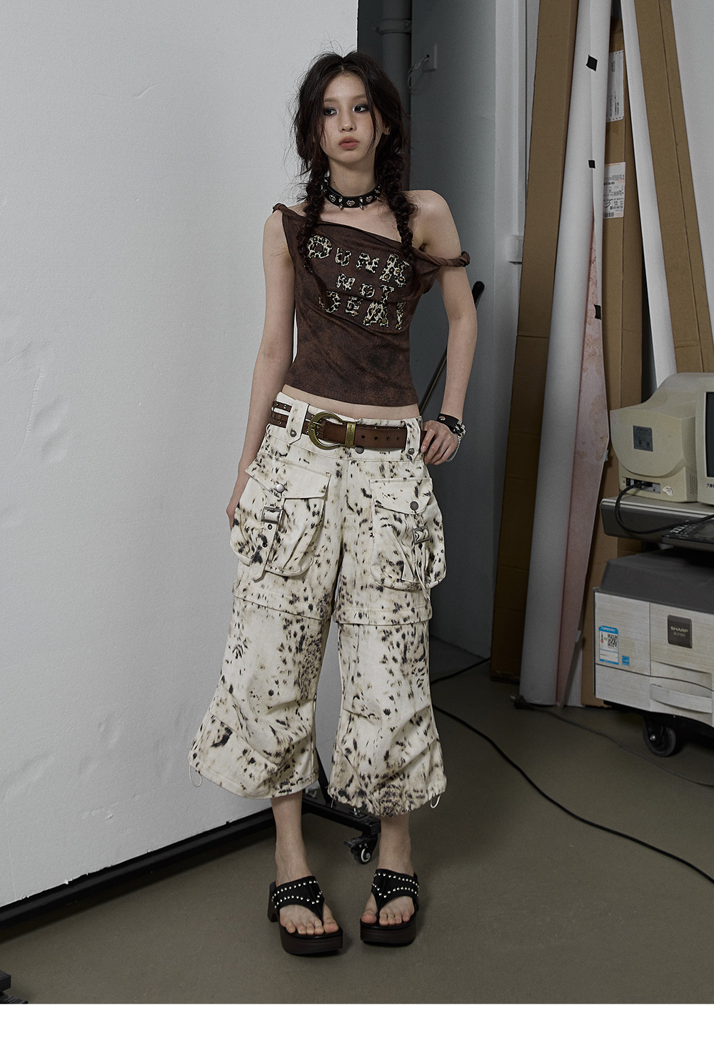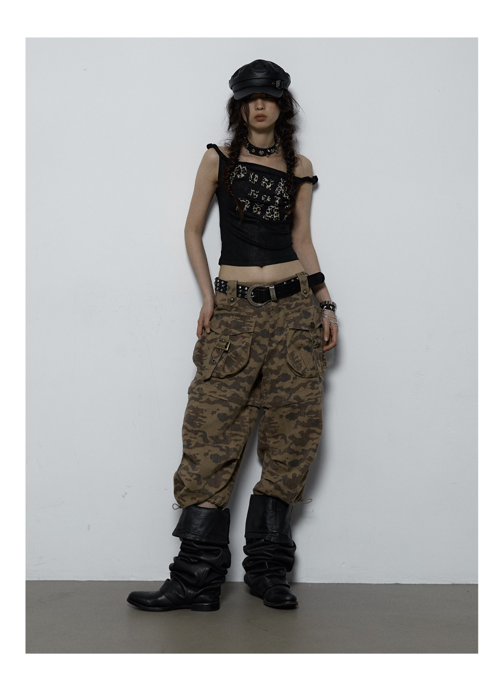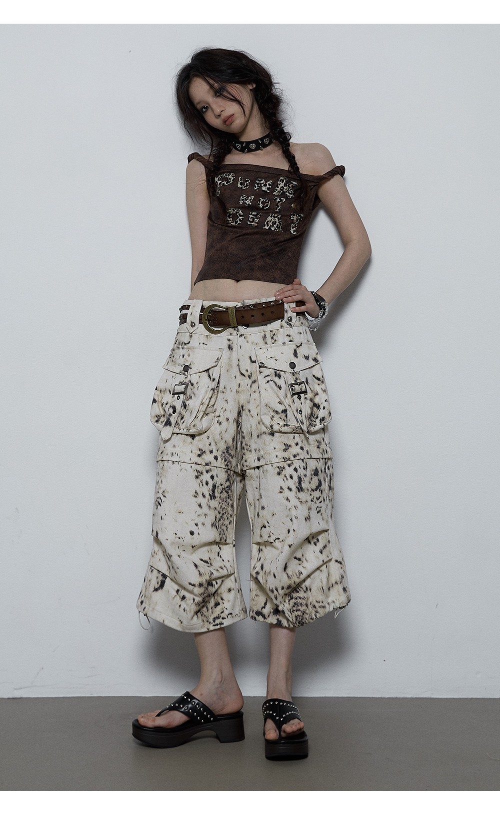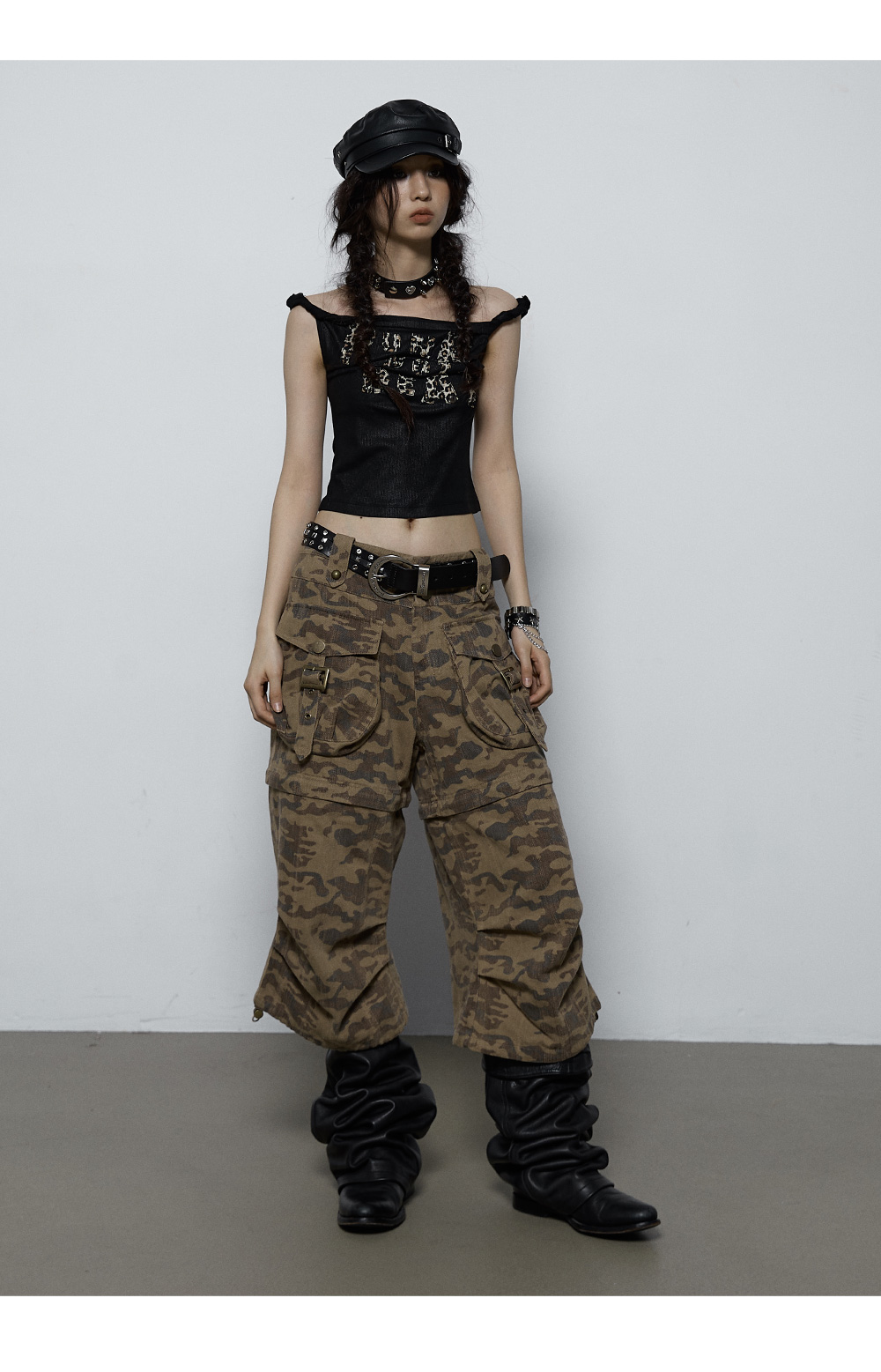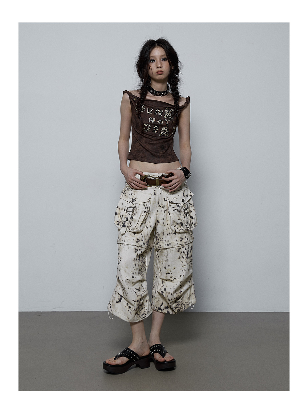 Leopard Spliced Sleeveless Tank Top | Curled Edge Retro Design