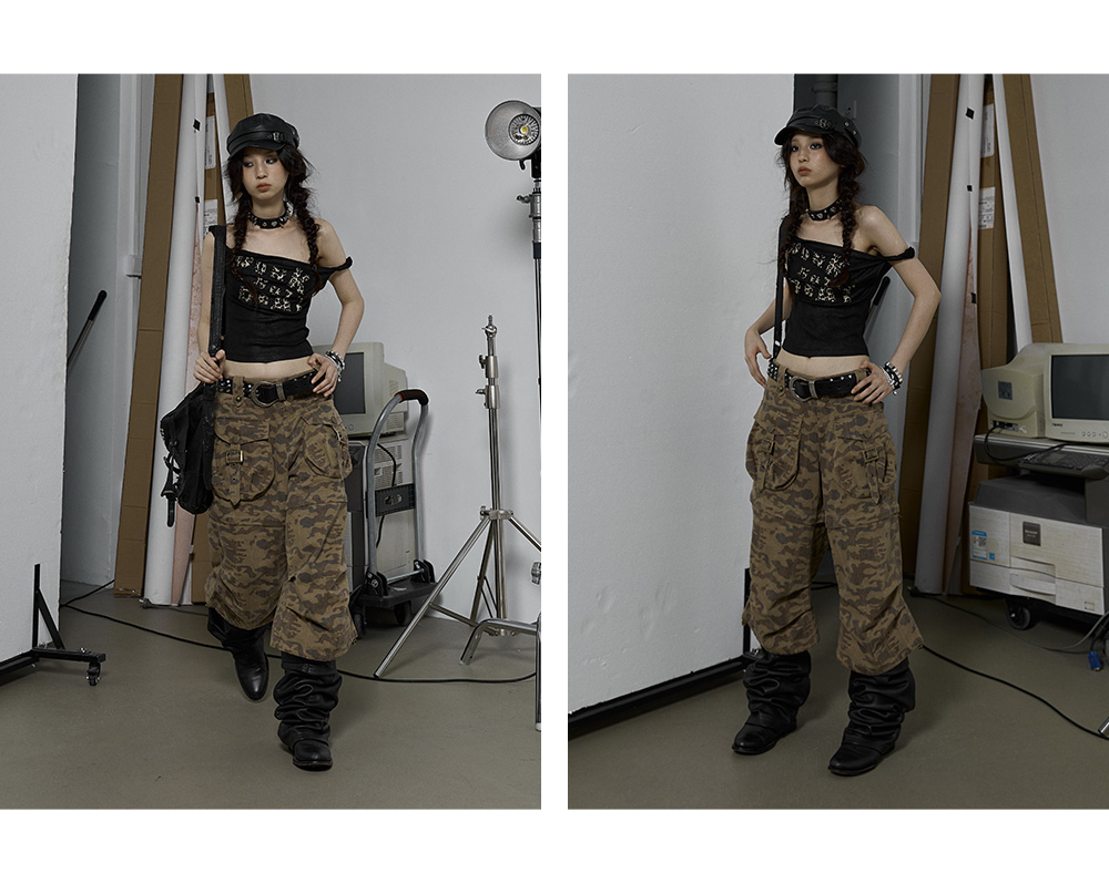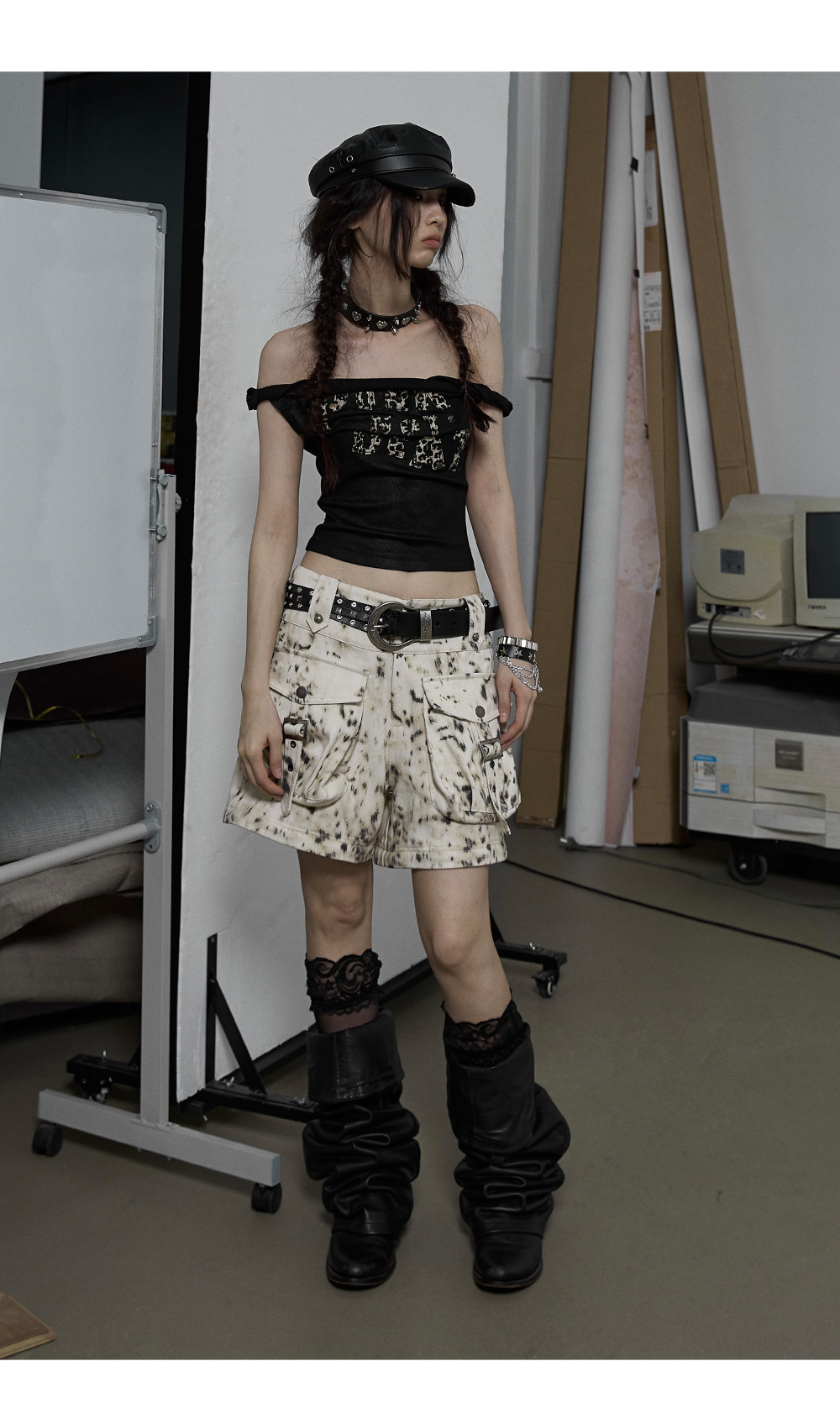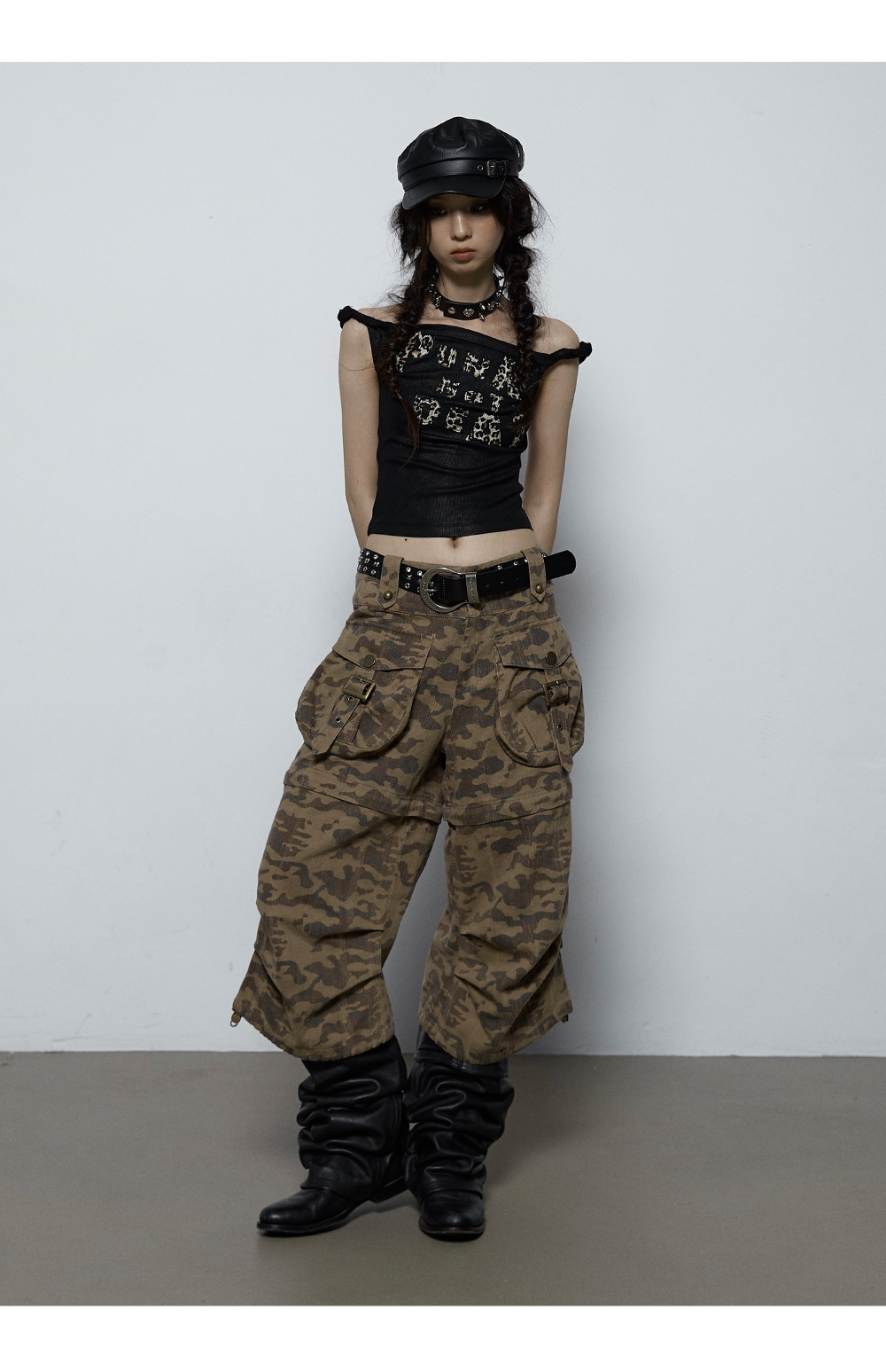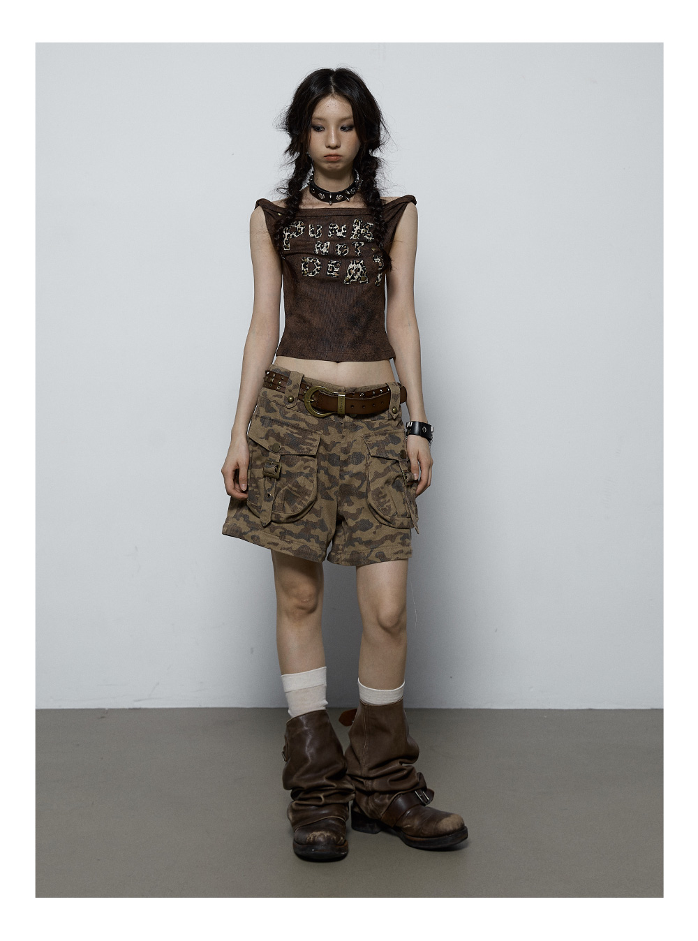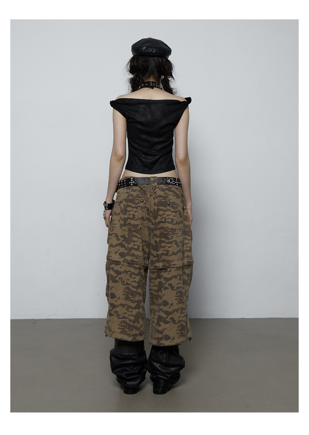 Leopard Spliced Sleeveless Tank Top | Curled Edge Retro Design