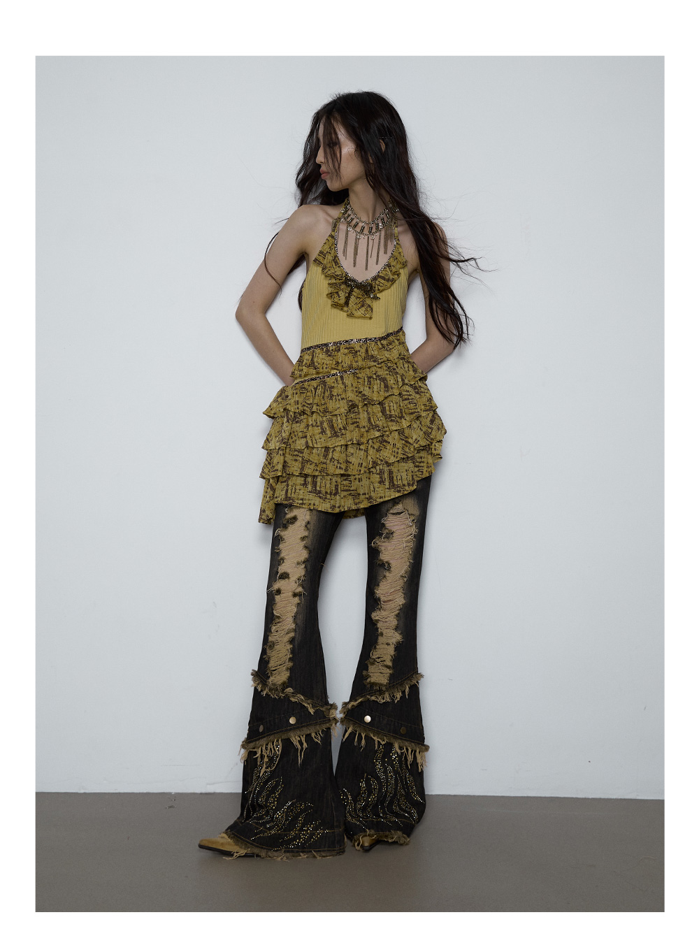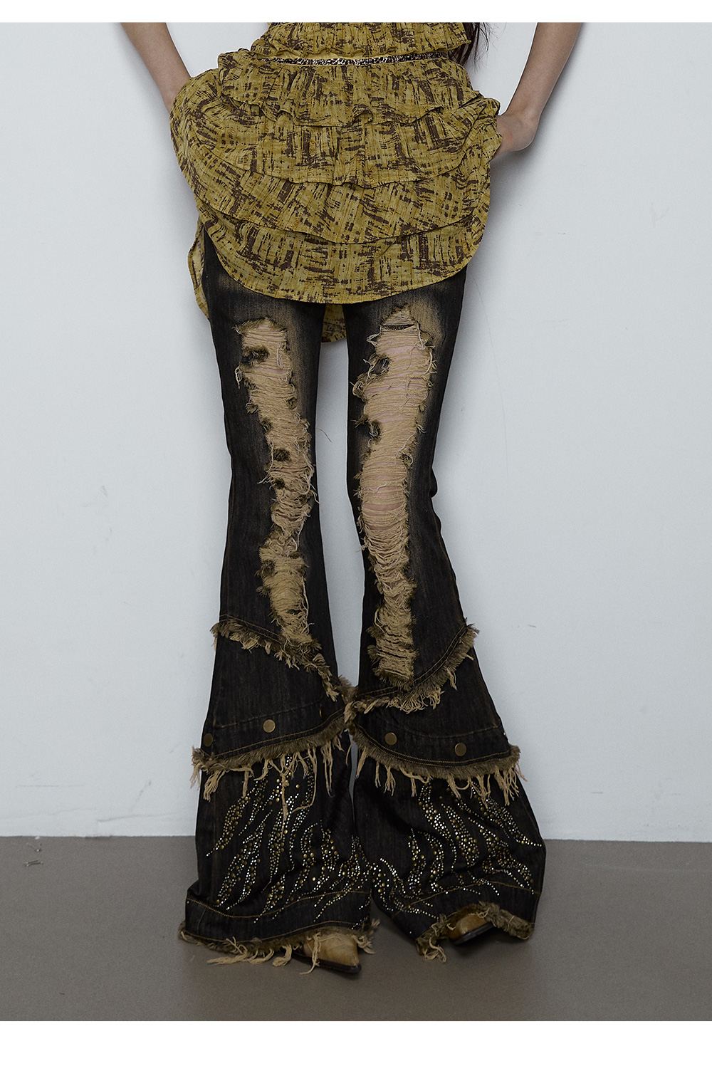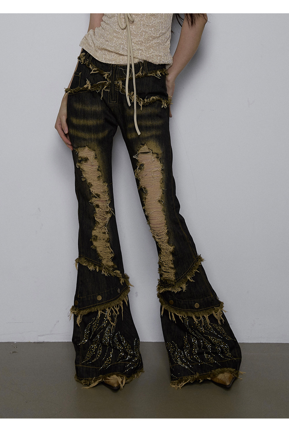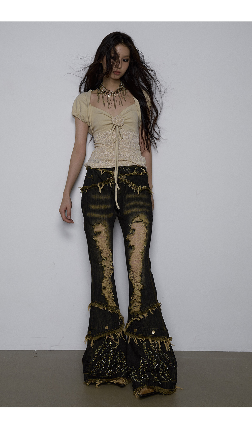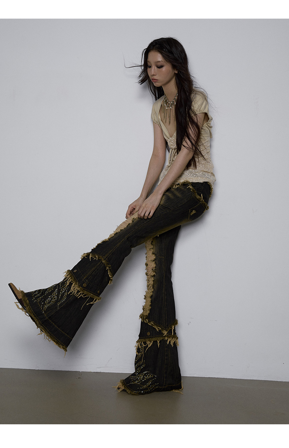 Ripped Raw Edge Cropped Flared Jeans | Retro Hot Girl Two-Wear Design