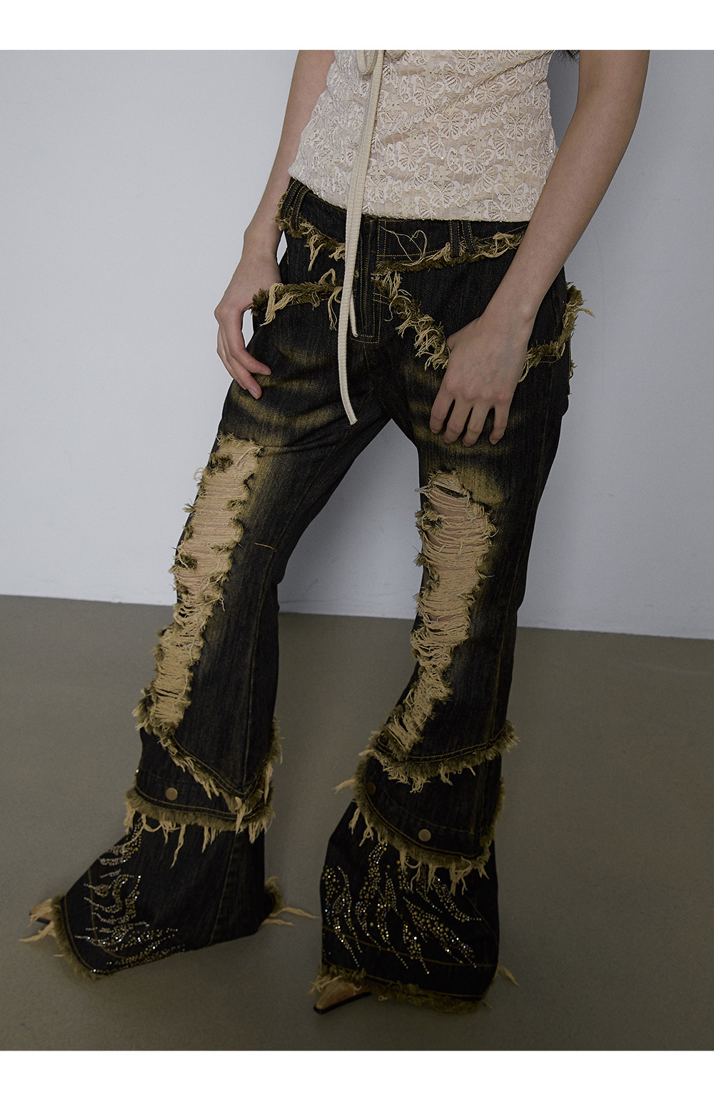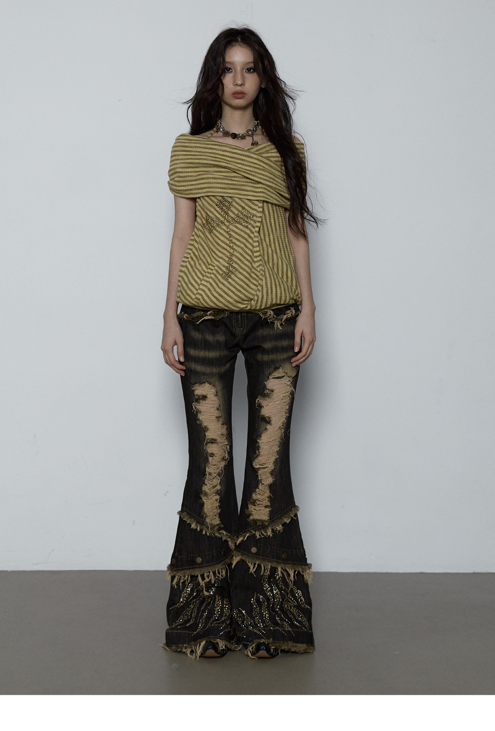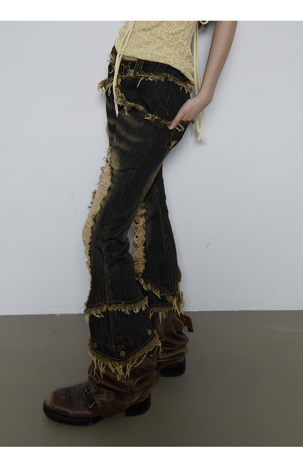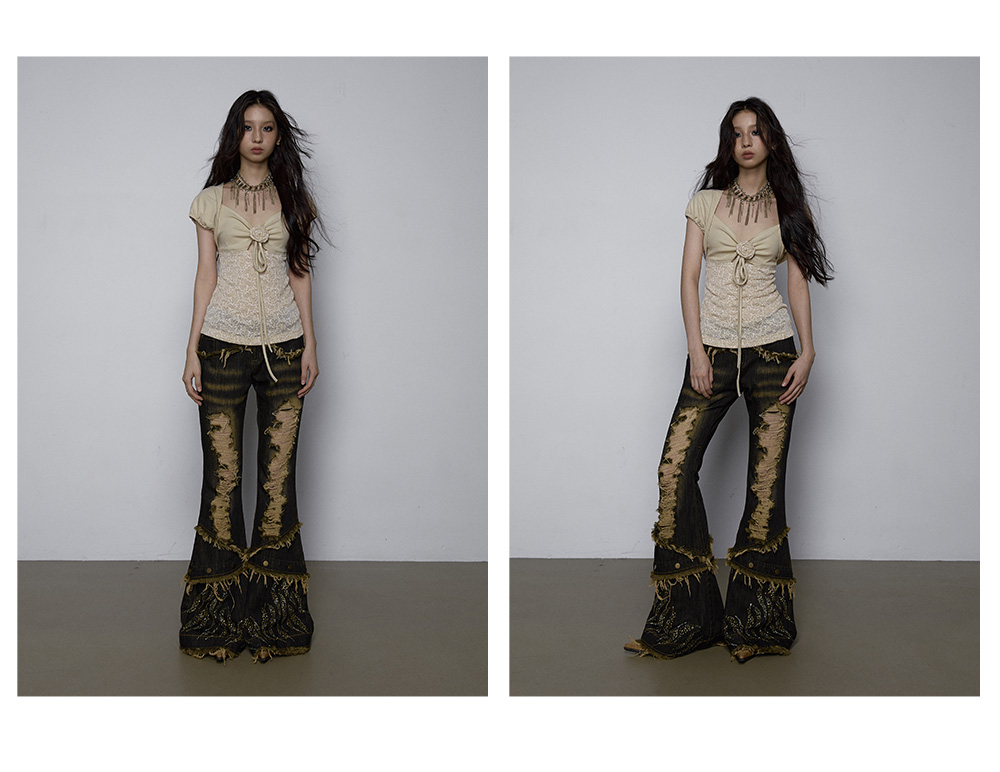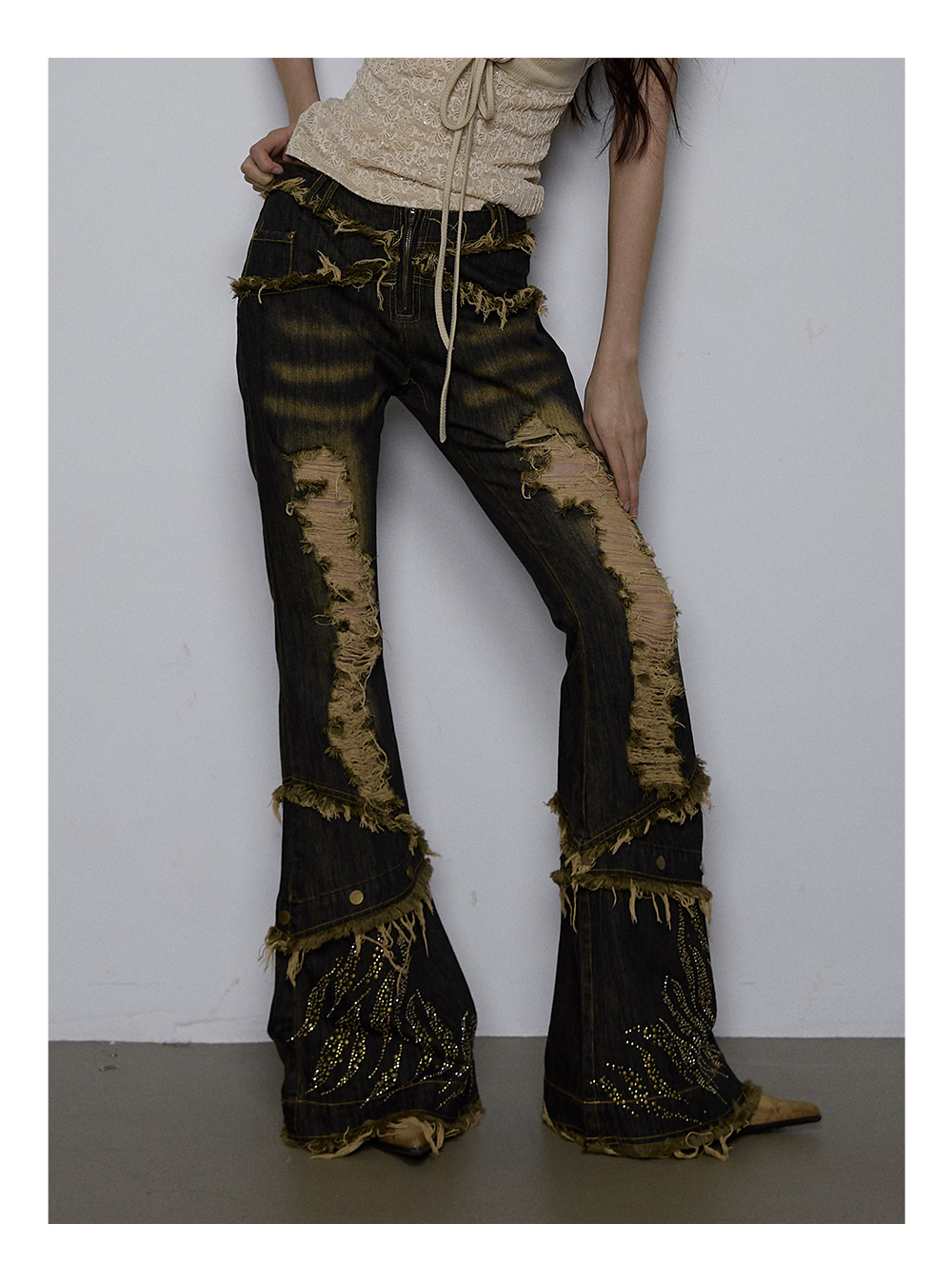 Ripped Raw Edge Cropped Flared Jeans | Retro Hot Girl Two-Wear Design