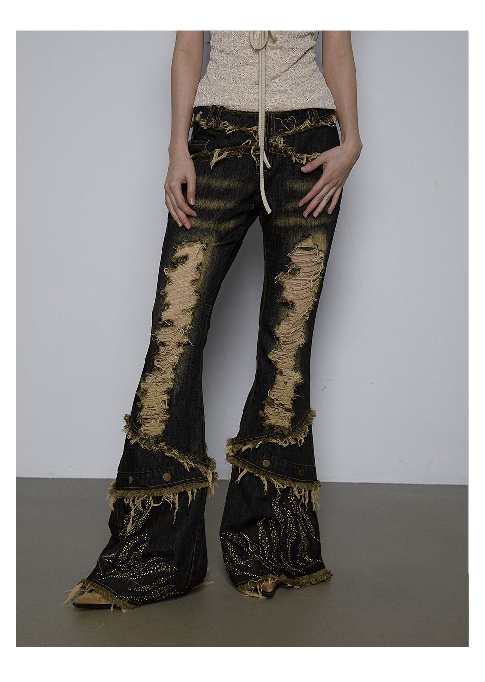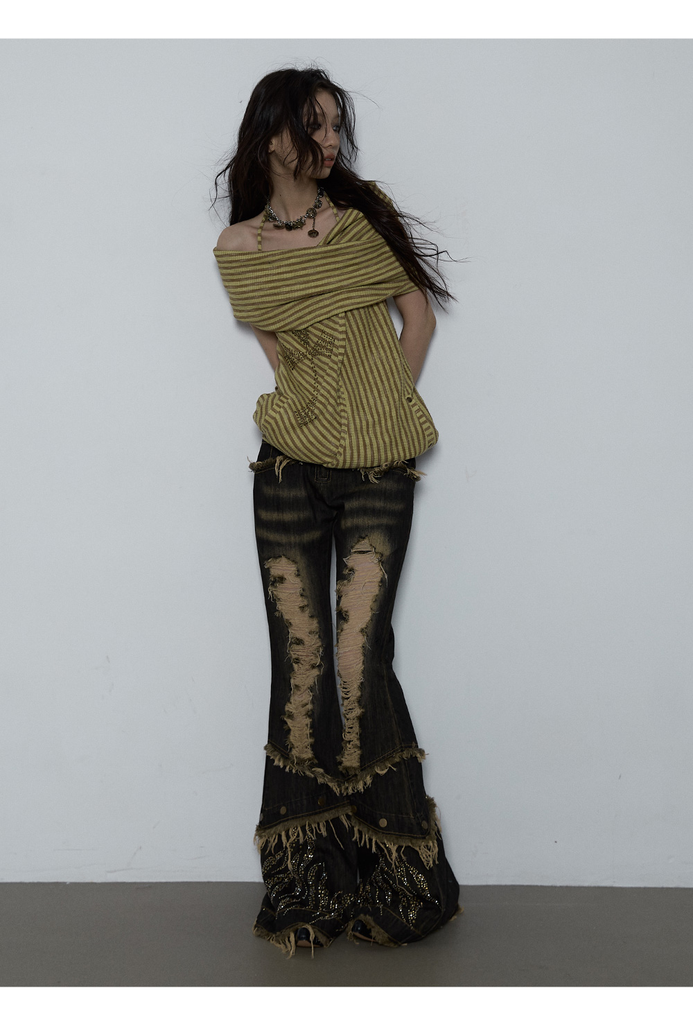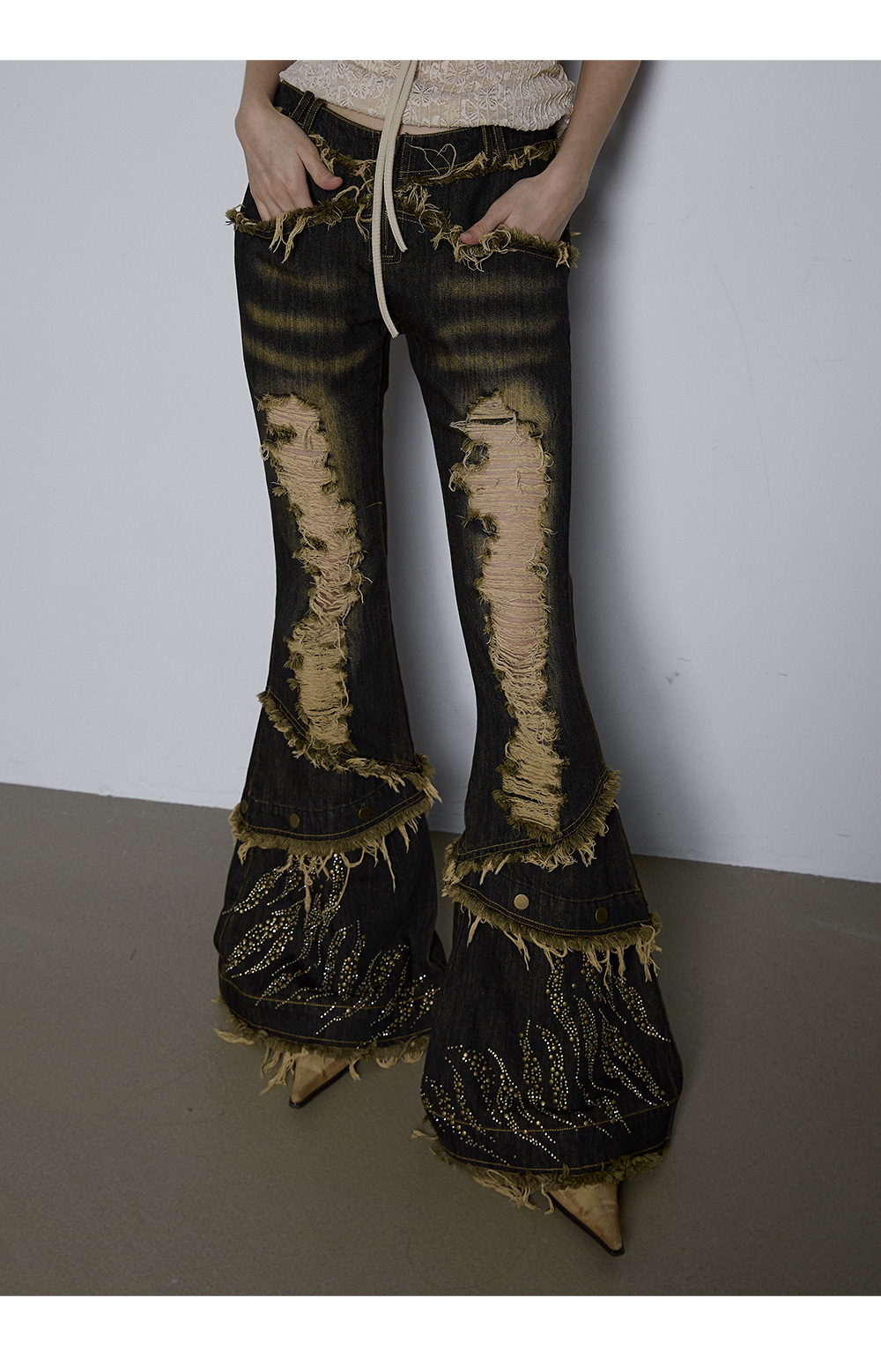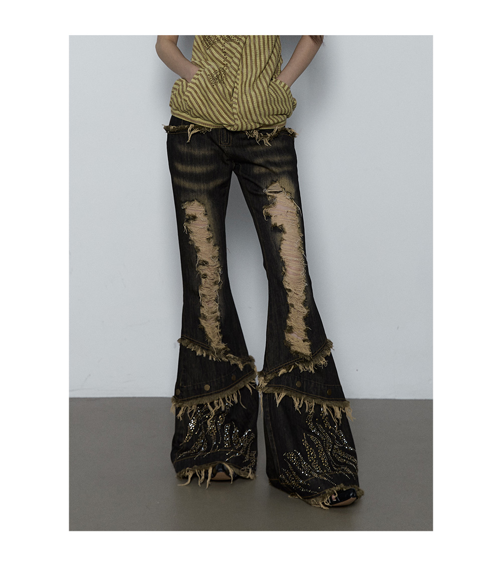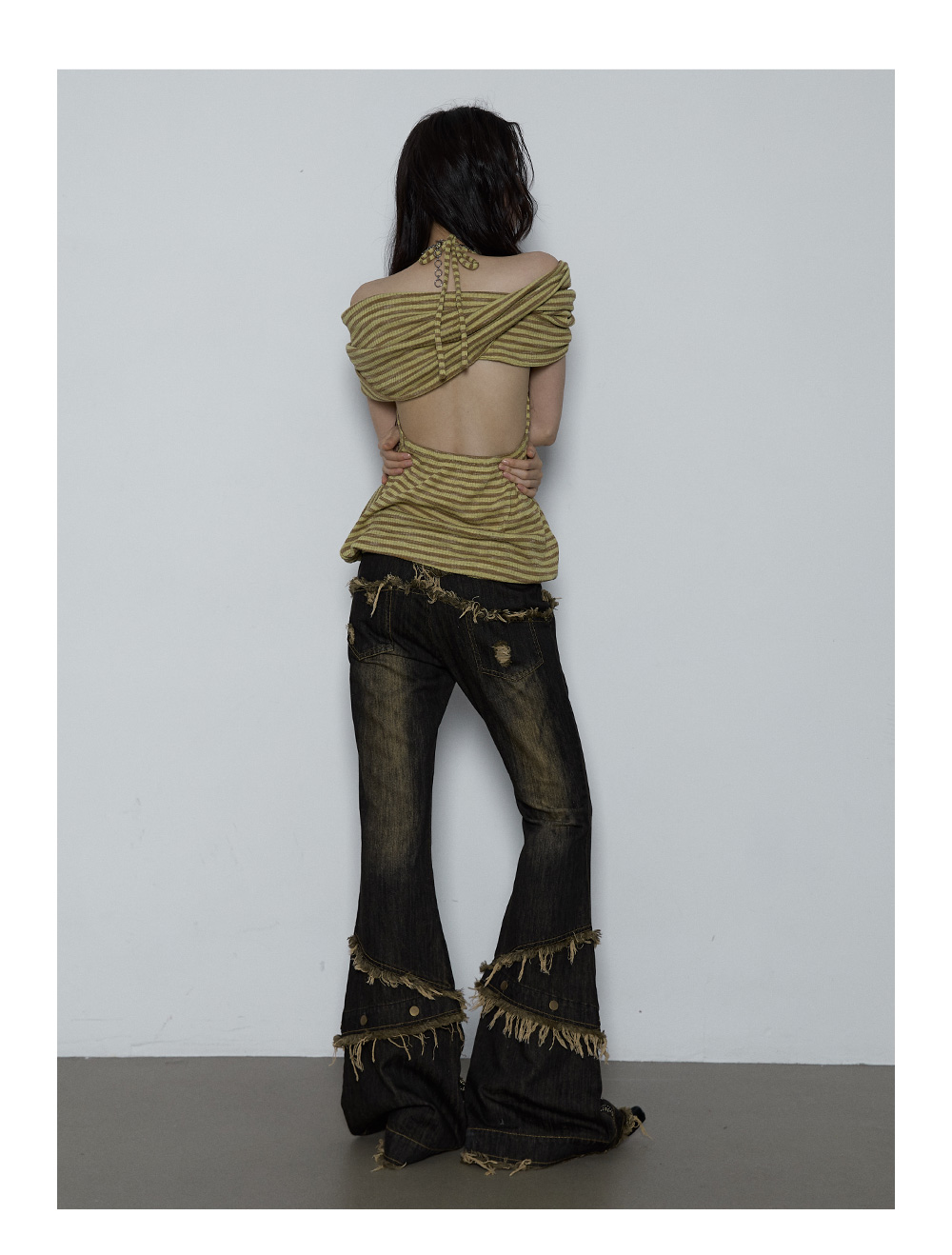 Ripped Raw Edge Cropped Flared Jeans | Retro Hot Girl Two-Wear Design
