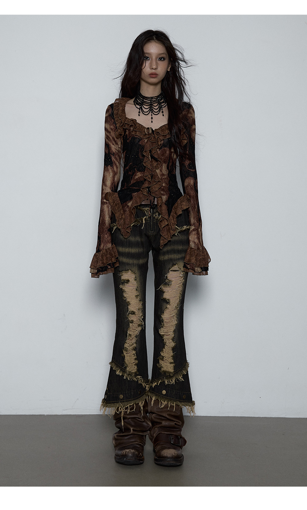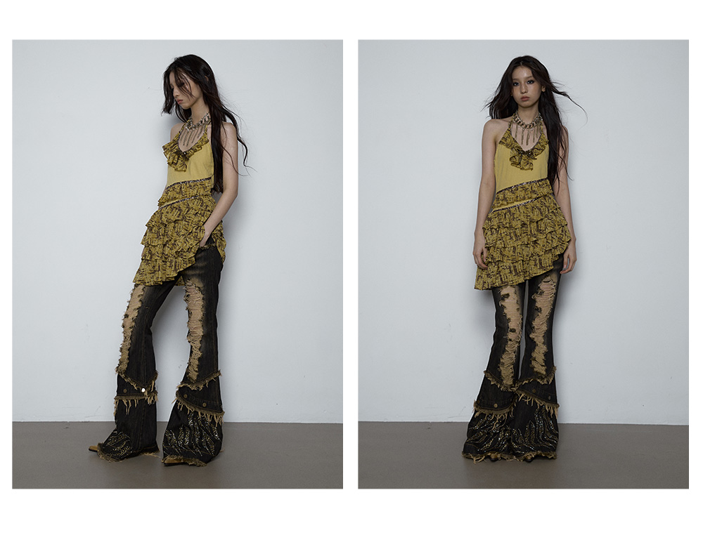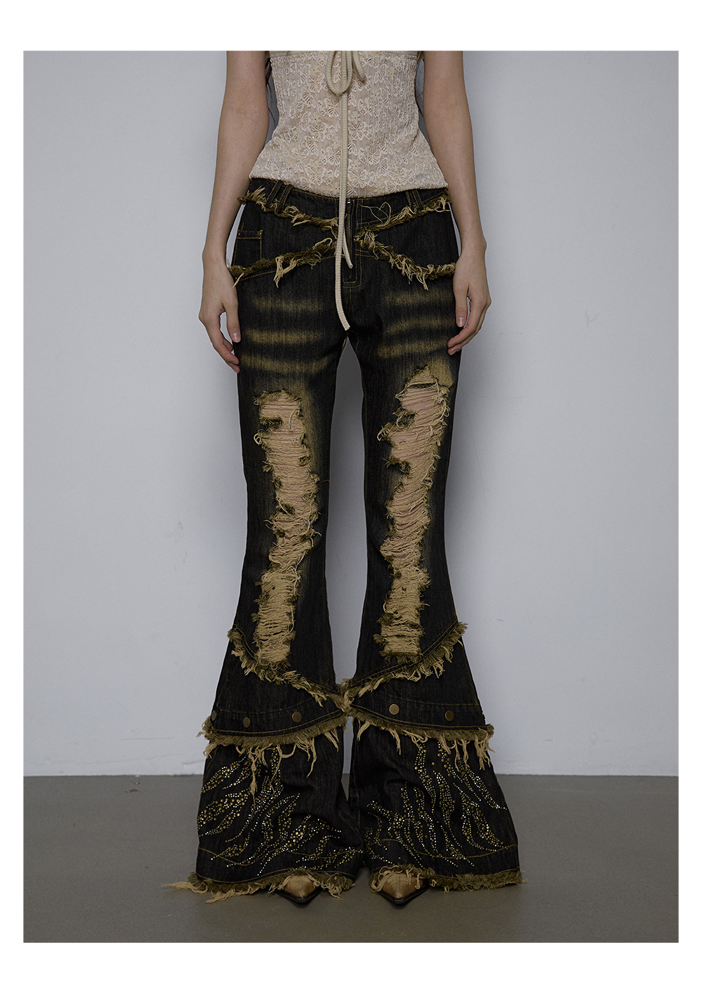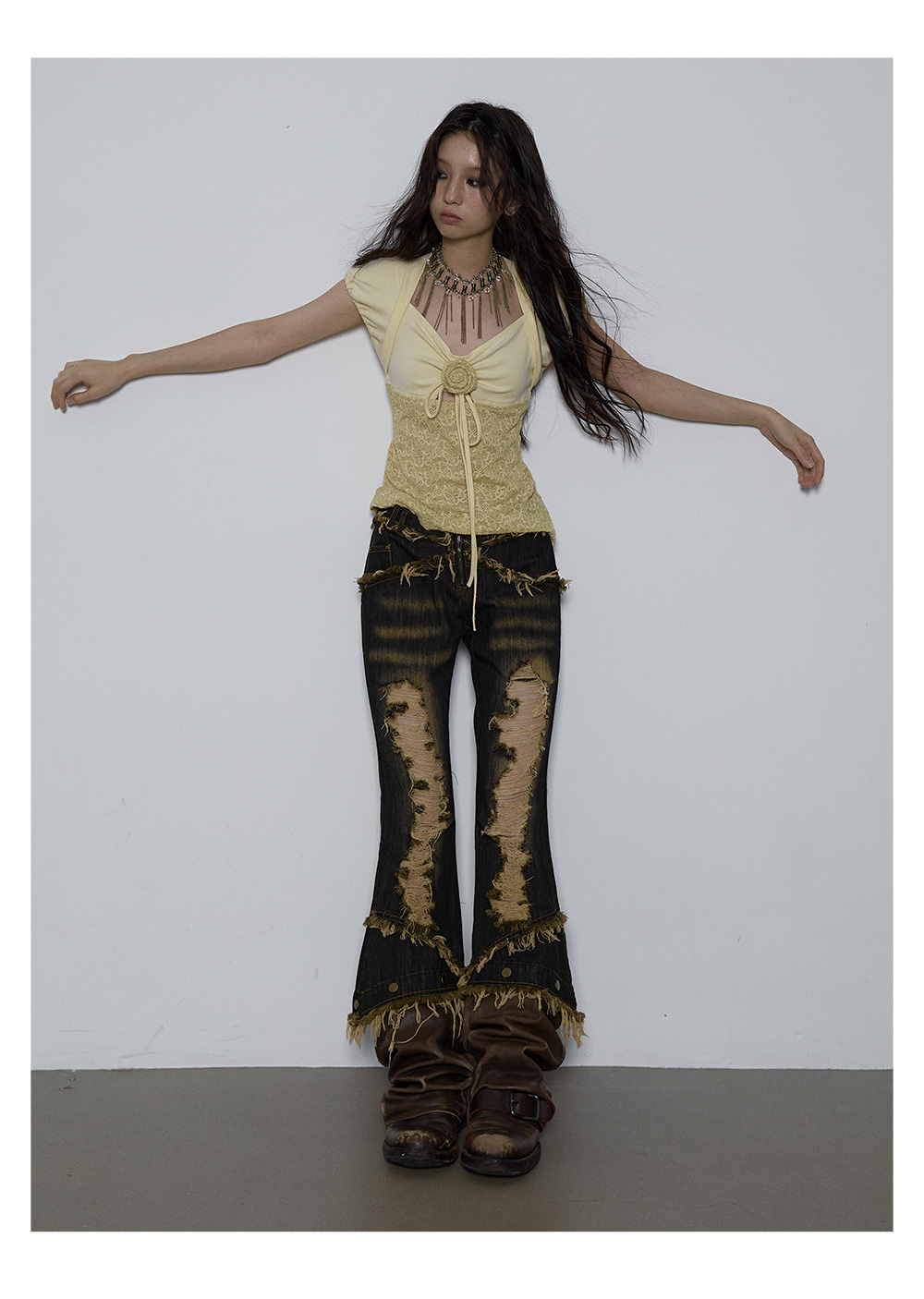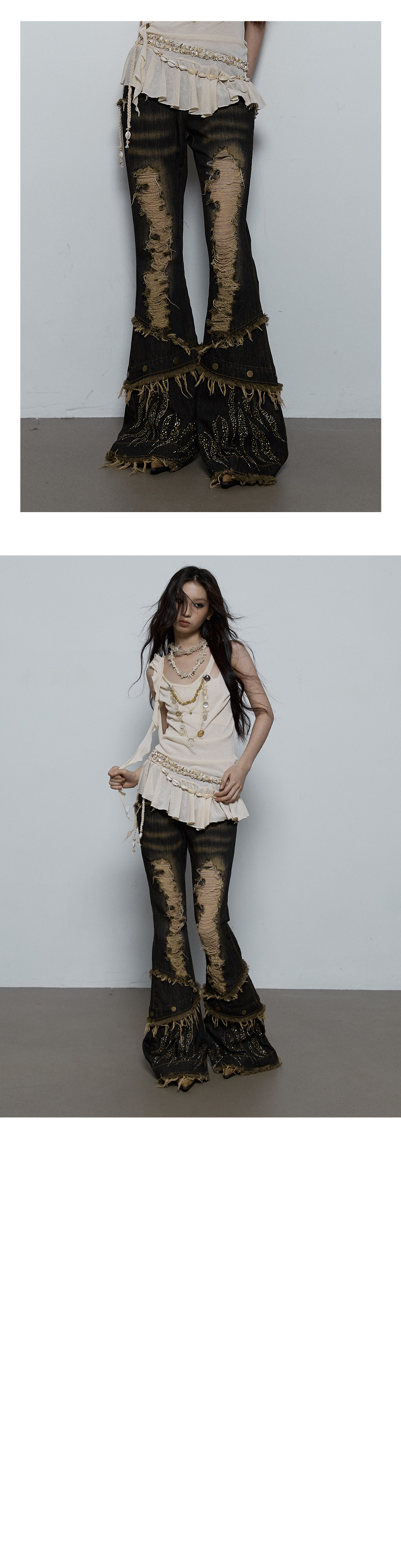 Ripped Raw Edge Cropped Flared Jeans | Retro Hot Girl Two-Wear Design