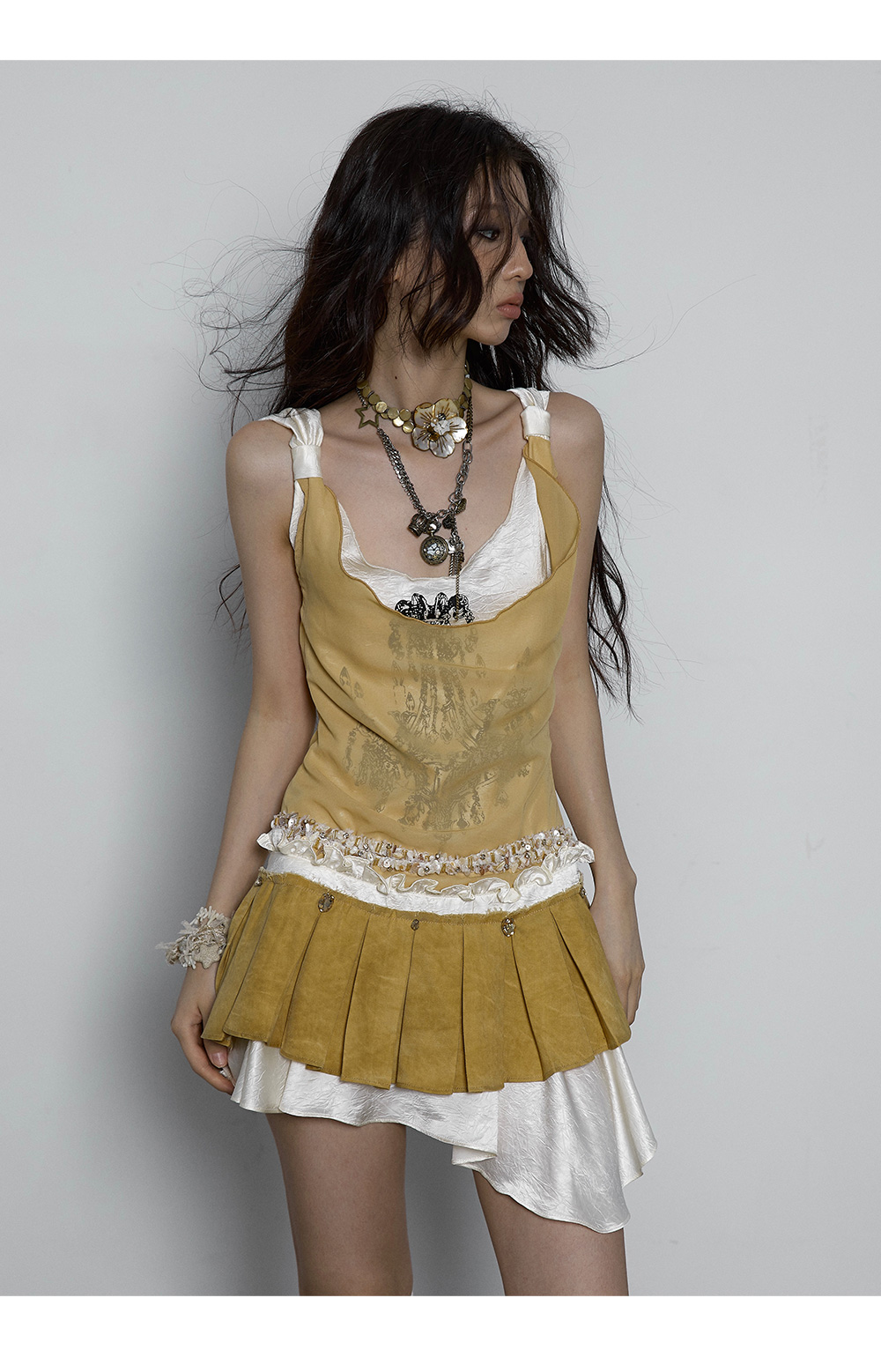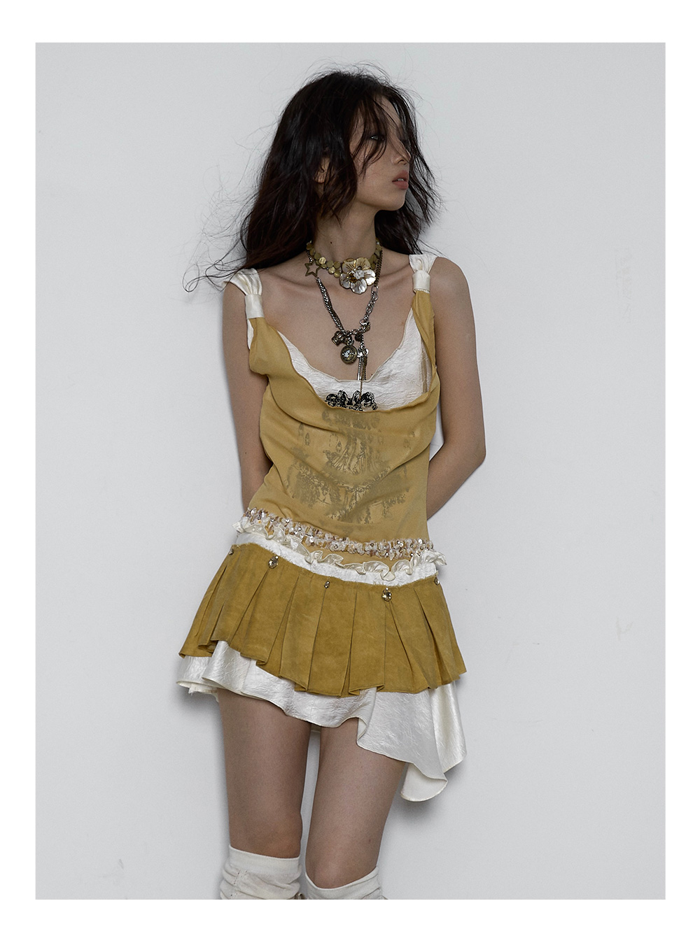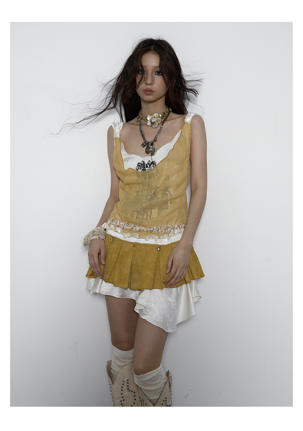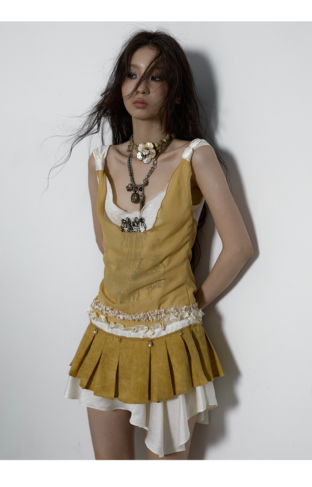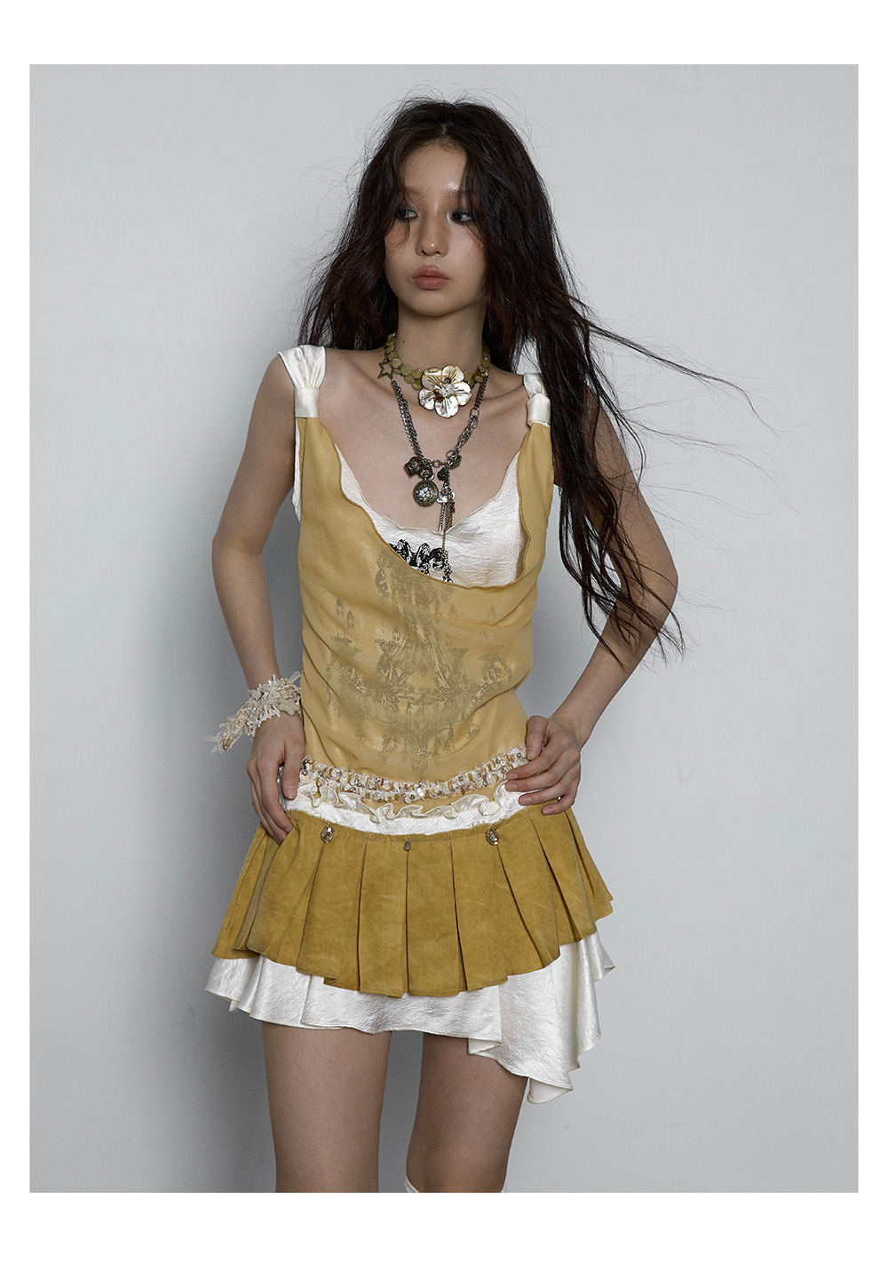Irregular Spliced Suspender Dress | Fake Two-Piece Retro Palace Style