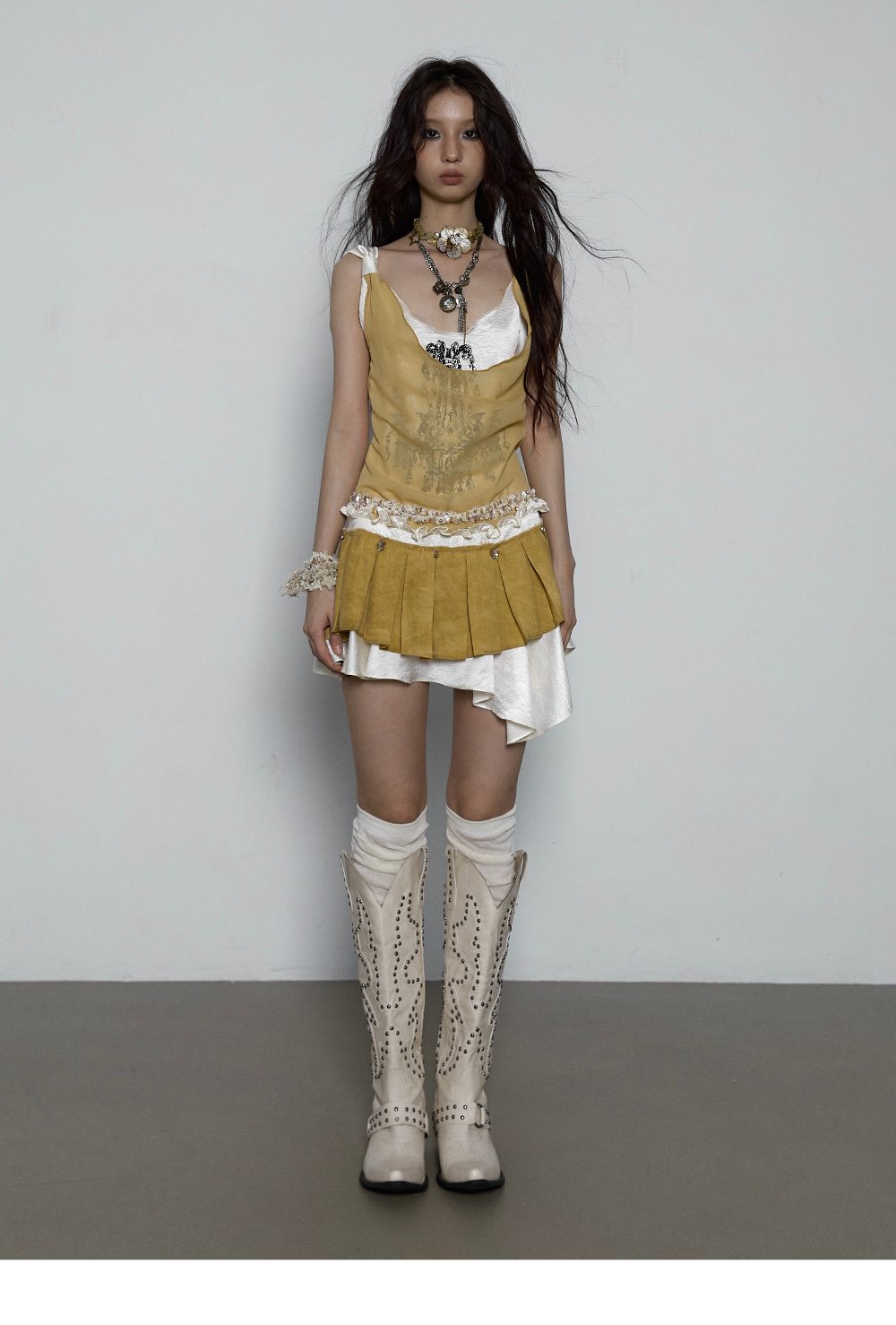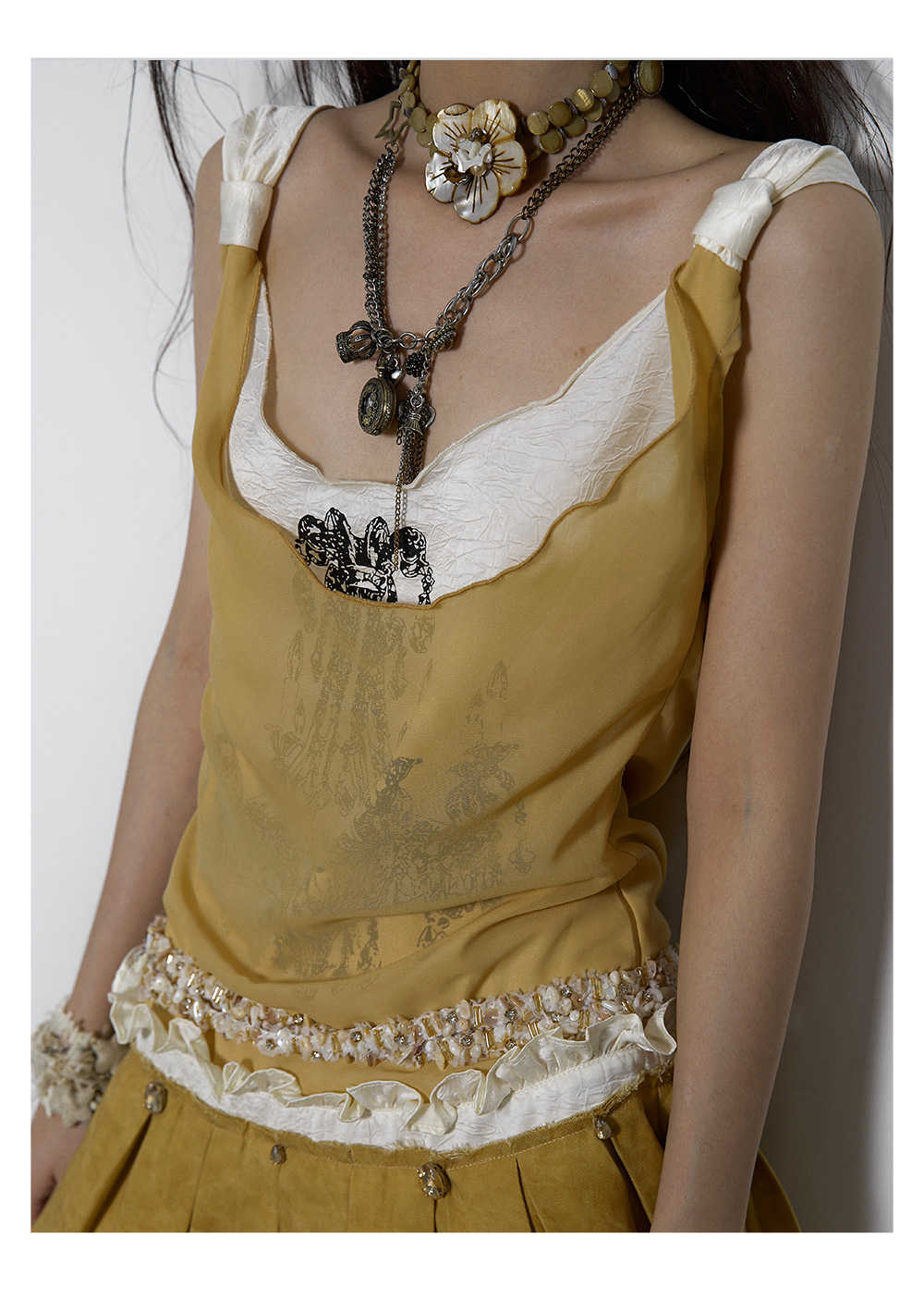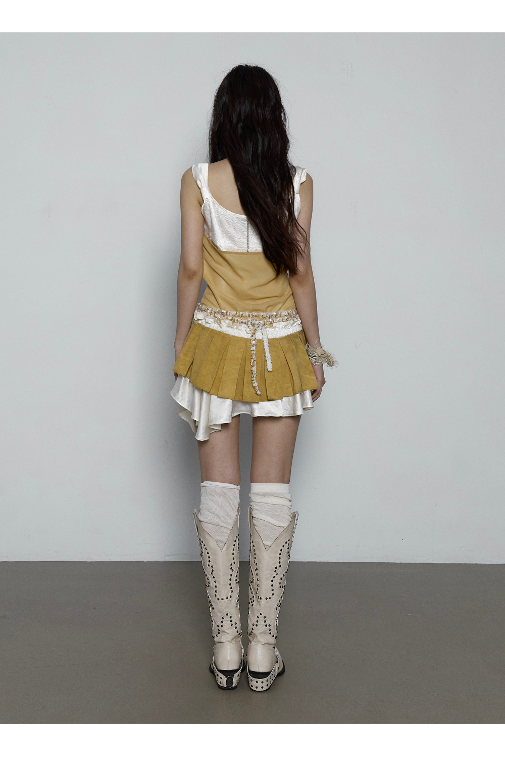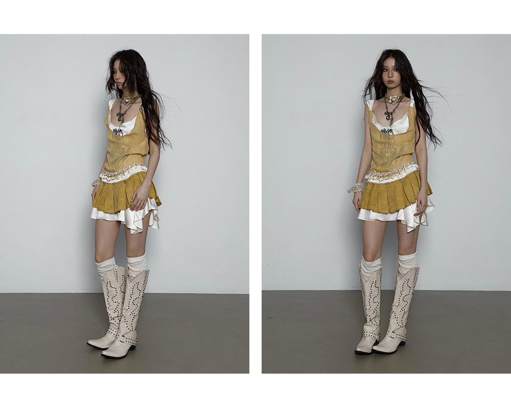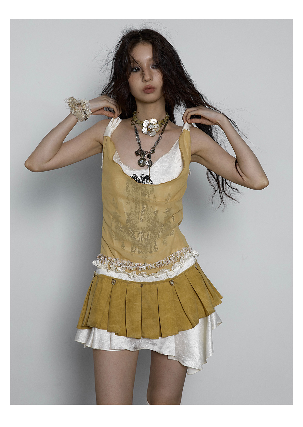 Irregular Spliced Suspender Dress | Fake Two-Piece Retro Palace Style