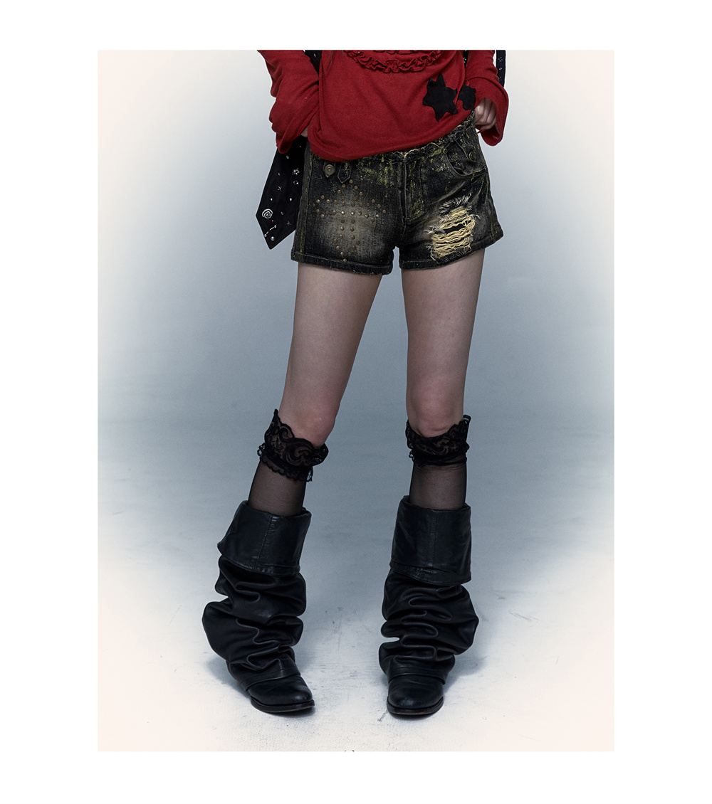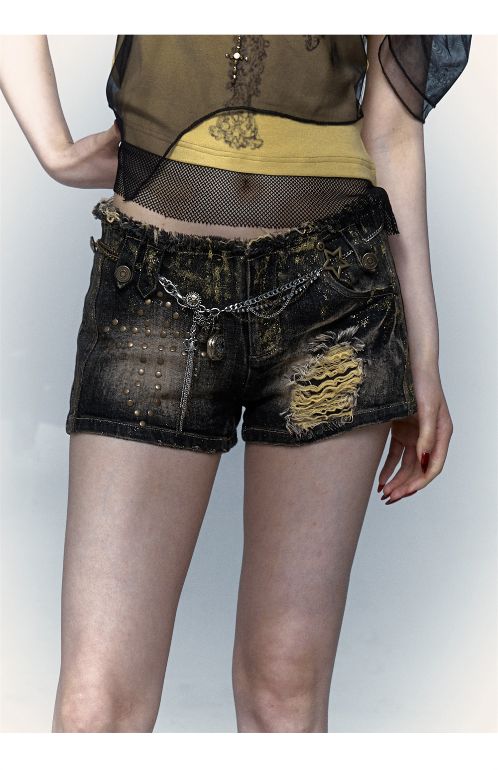 Low Waist Distressed Jeans Shorts | Retro Punk Hot Girl Style