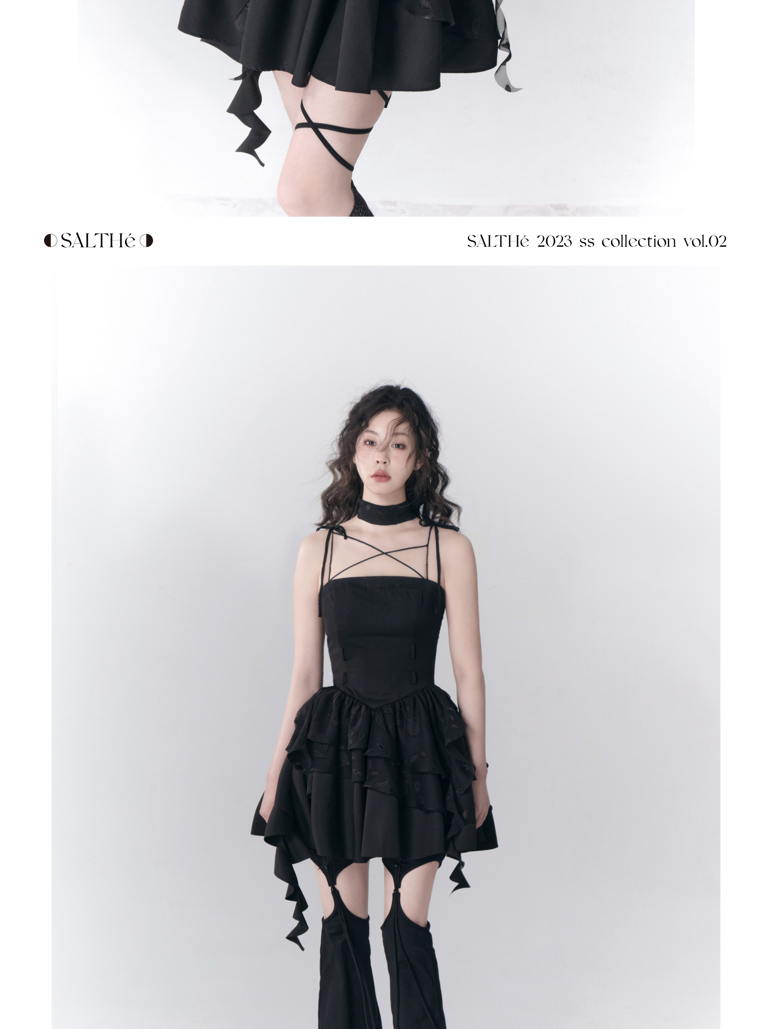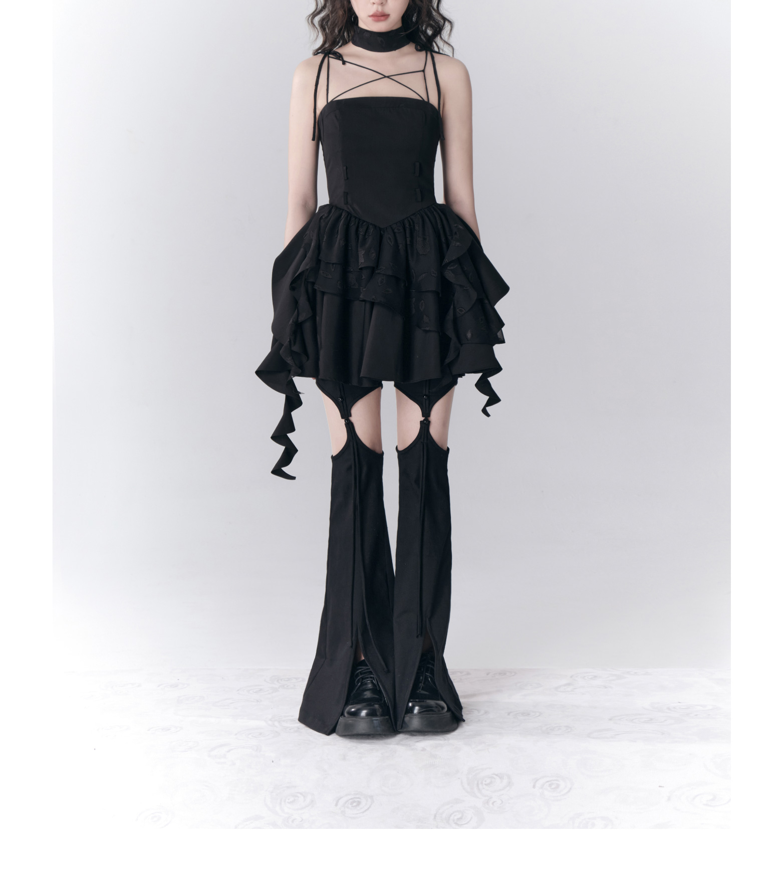 Ballet Nocturne Retro Punk Ruffle Edge Strappy Dress