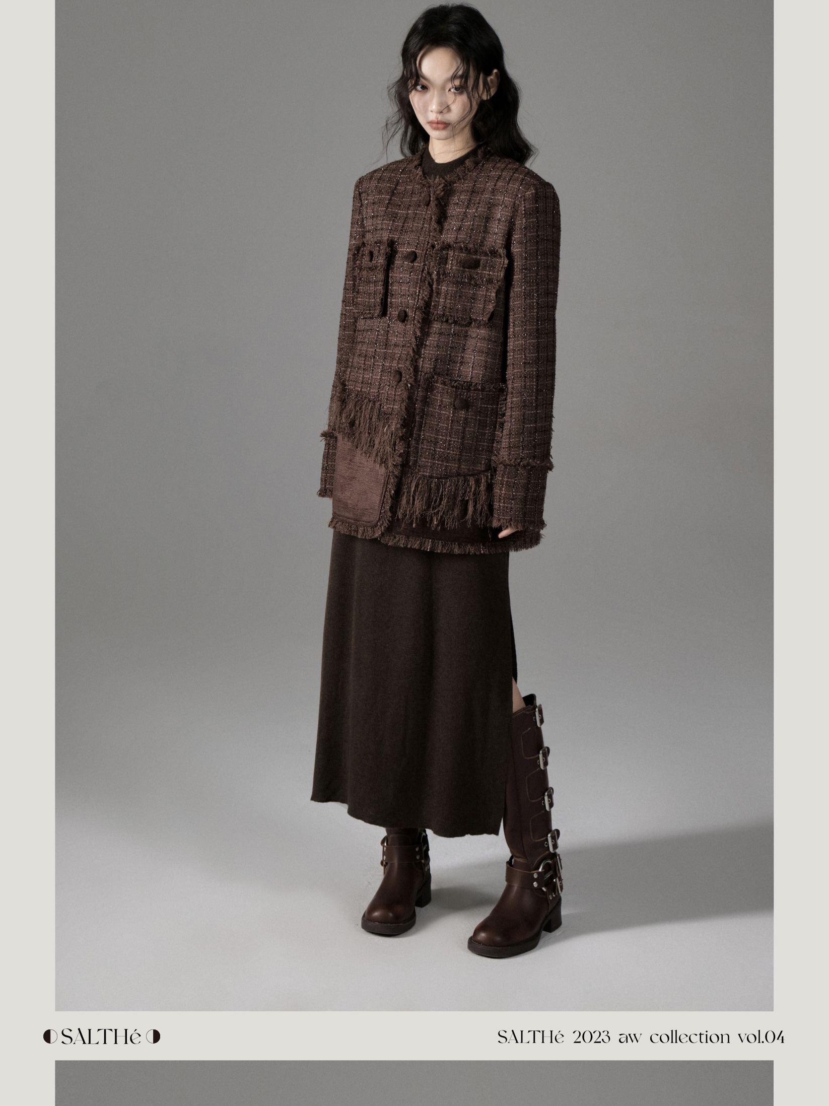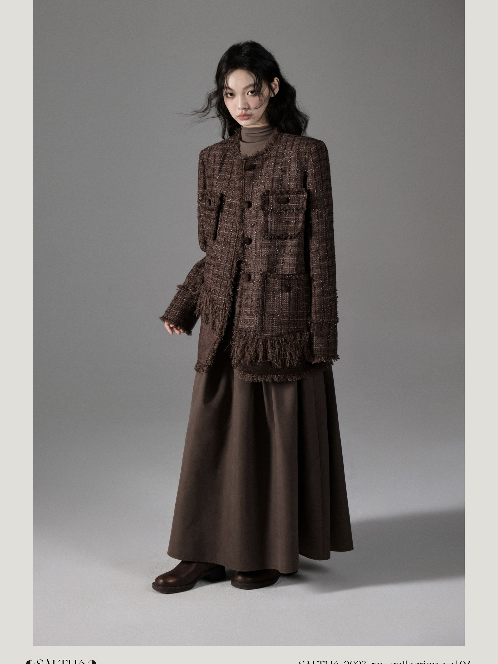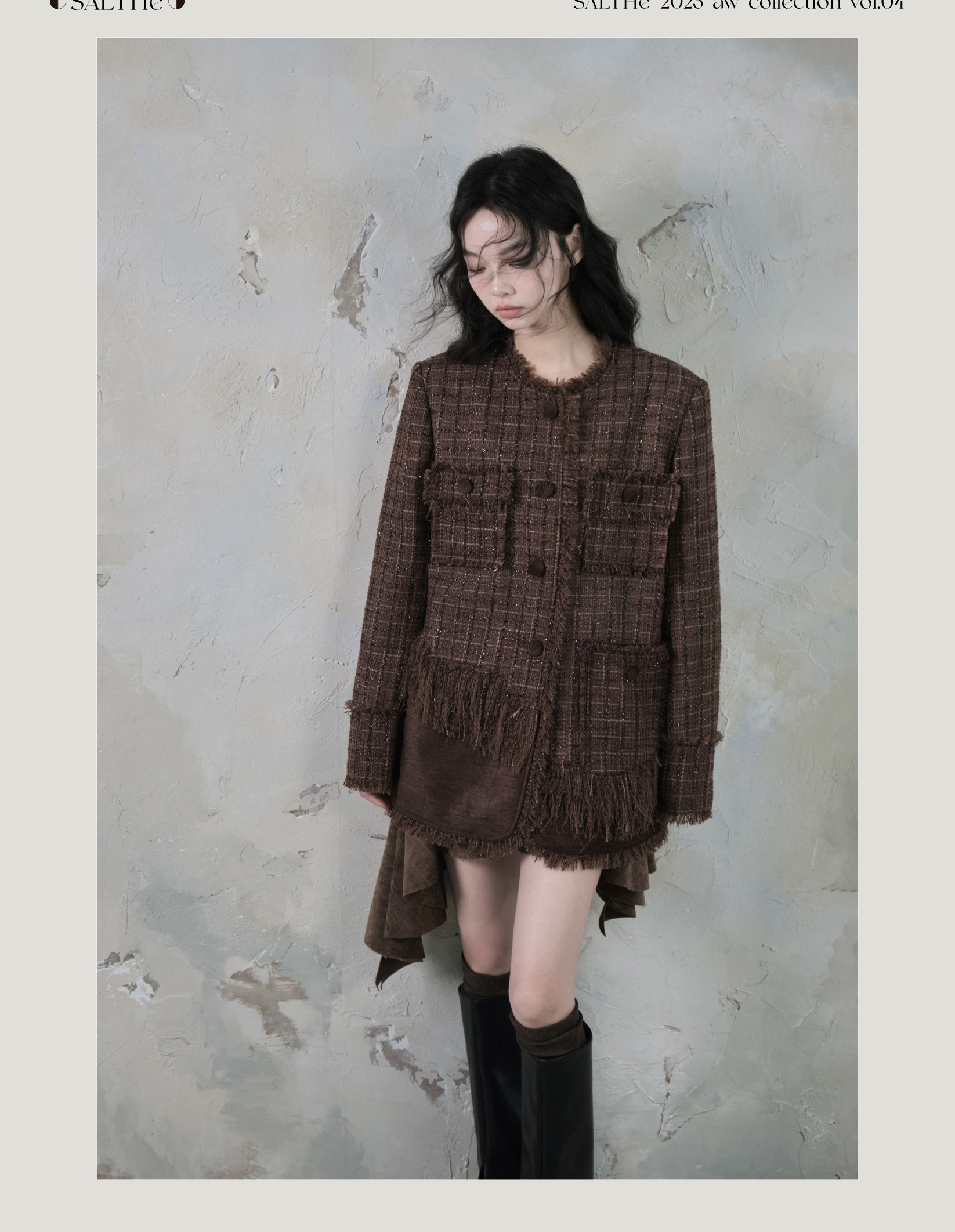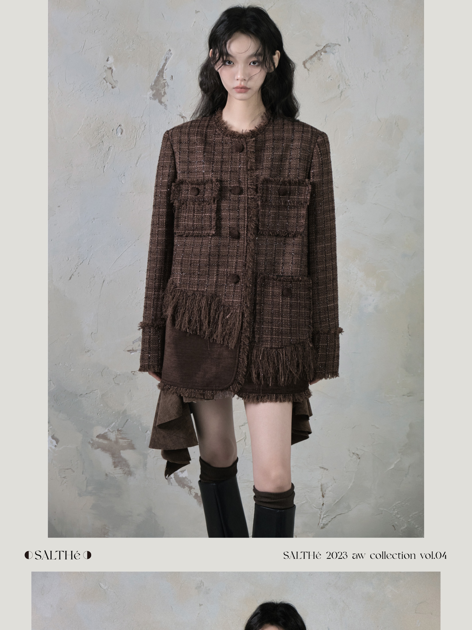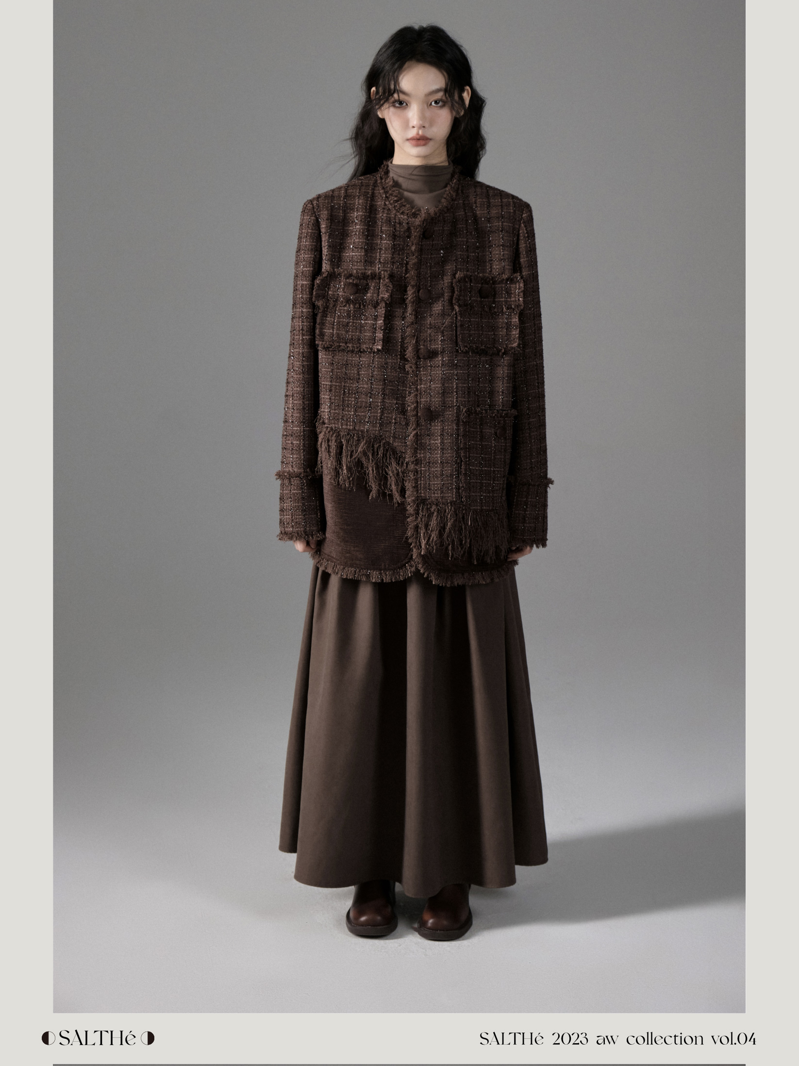 Chaos Twilight Rough Tweed Tassel Short Coat