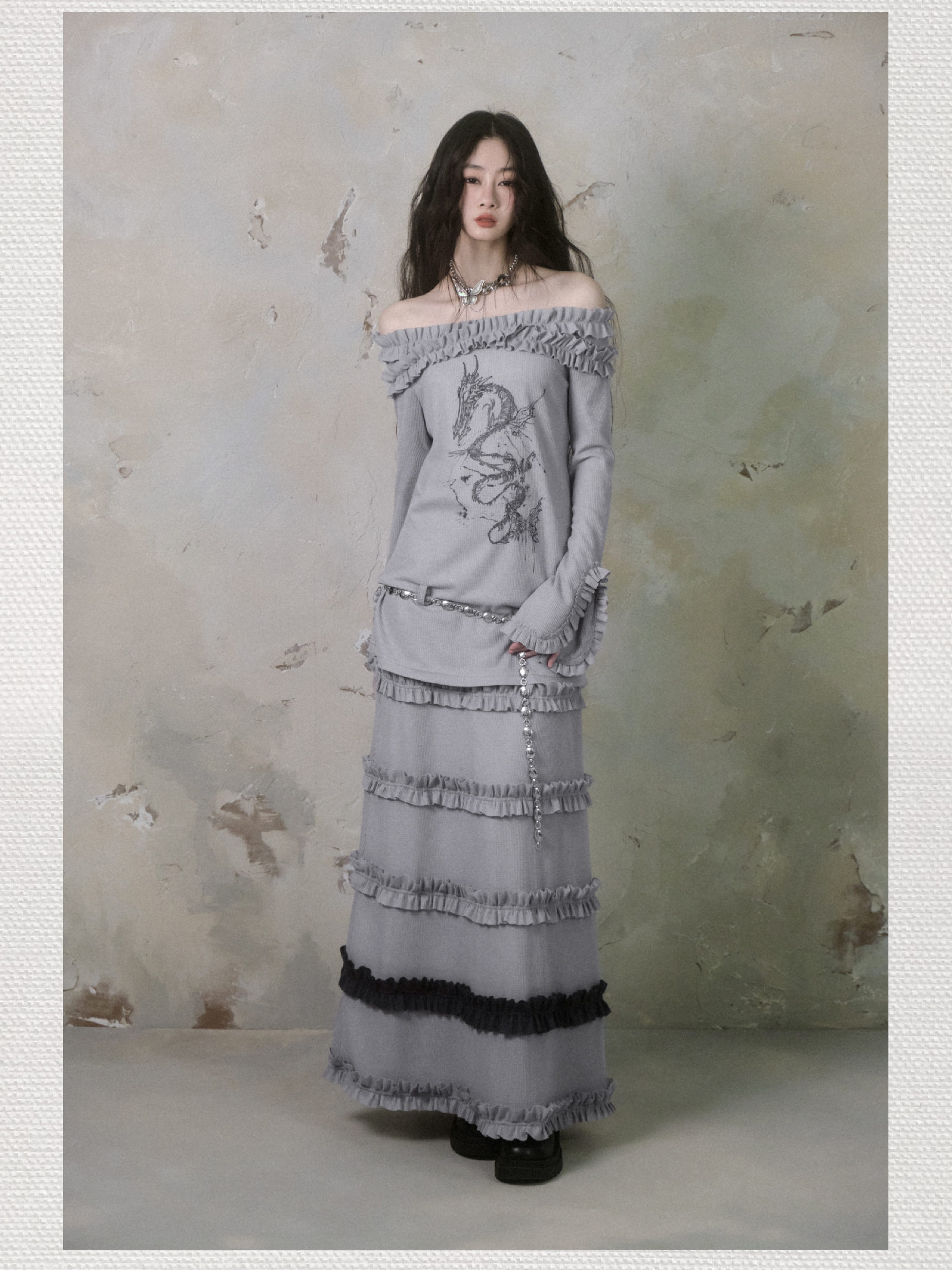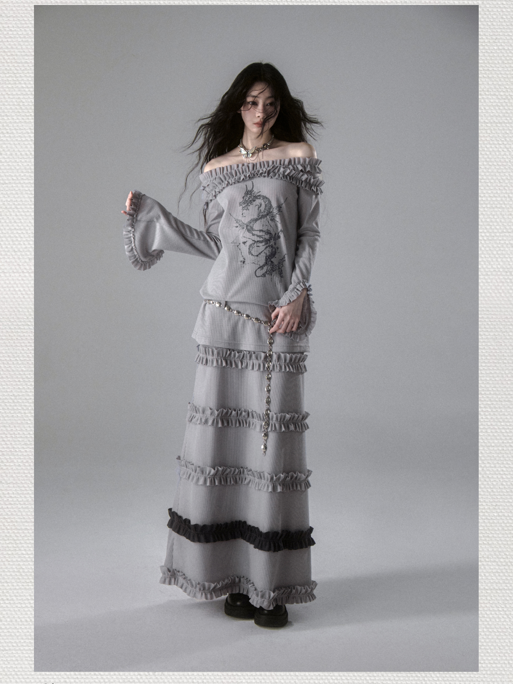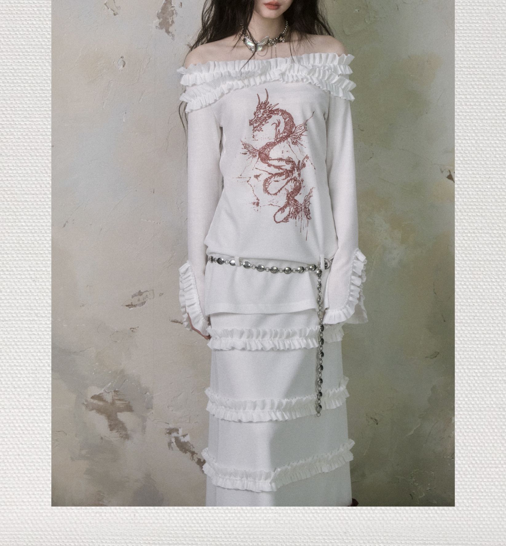 Dragon Chi Skeleton Sweet and Spicy One Shoulder Top