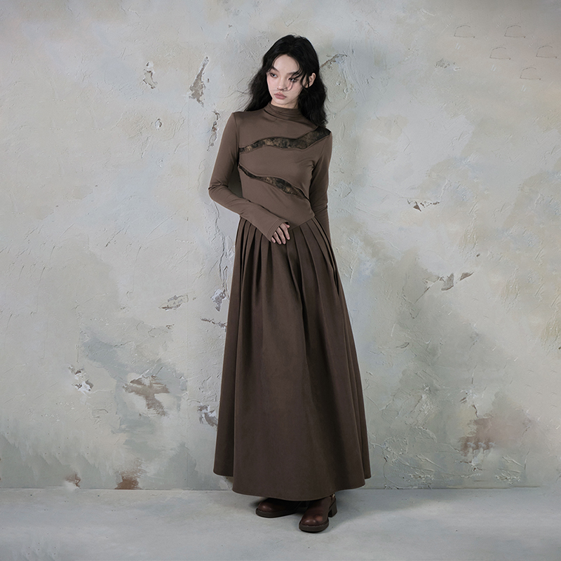 Frost Red Cloud Standing Cut Slim Fit Dress