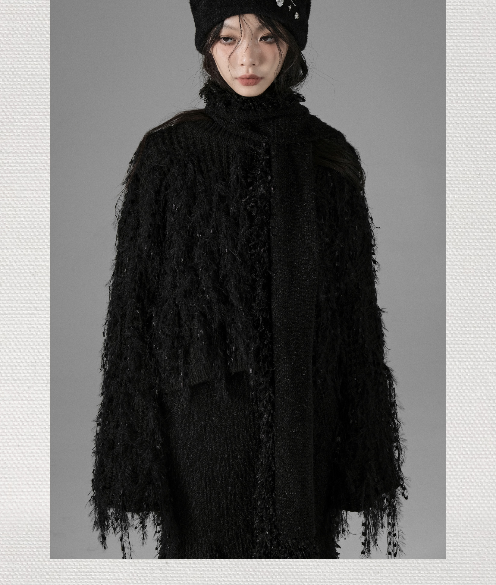 Half Cut Poetry Tassel Feather Round Neck Pullover
