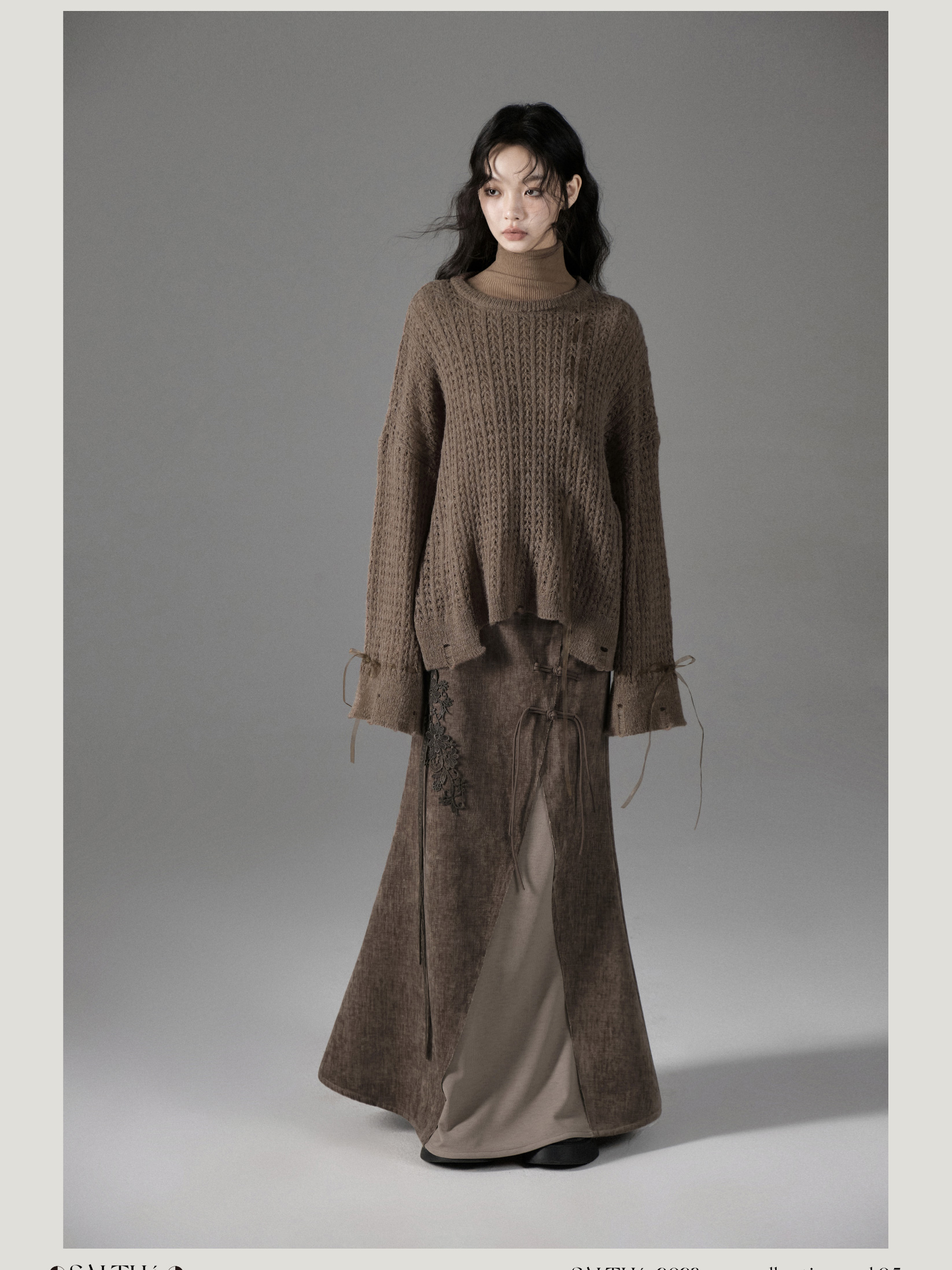 Mist Dyed Iris New Chinese Button Spliced A-line Skirt