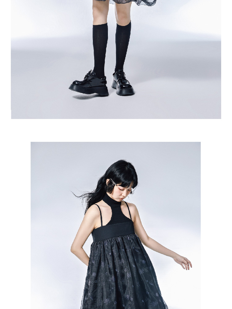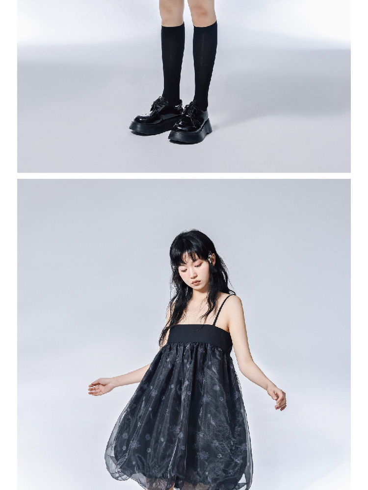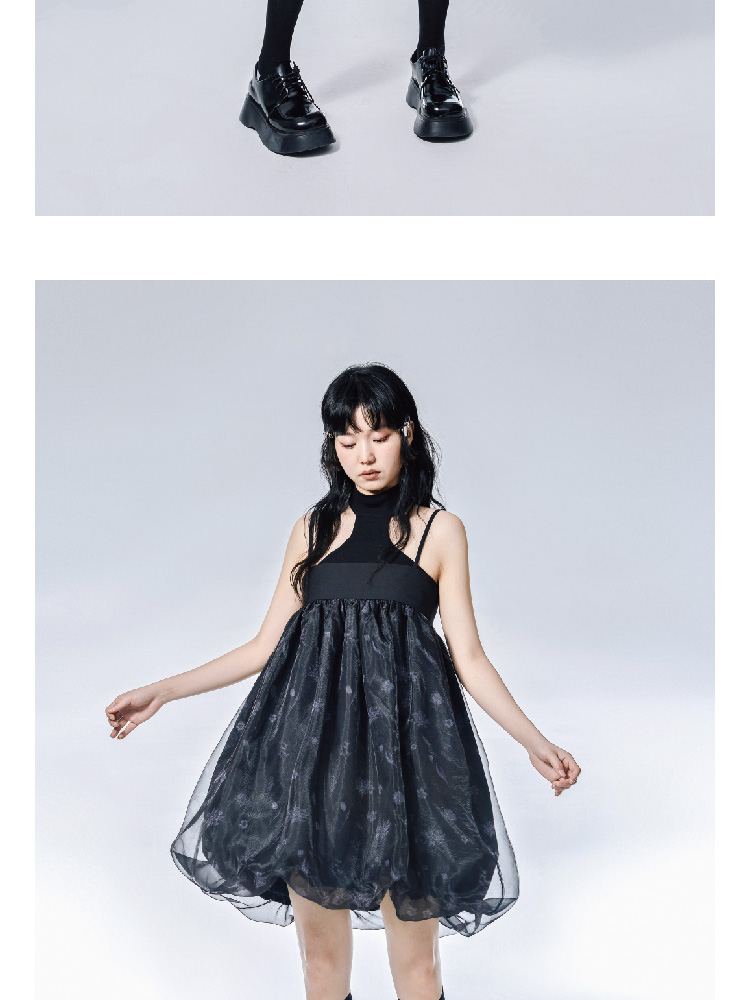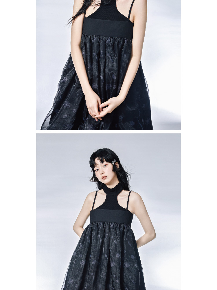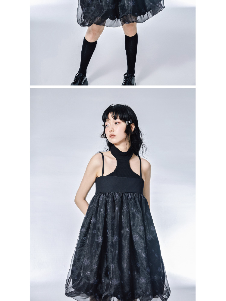 Pink Flower Print Organza Flower Bract Sling Dress